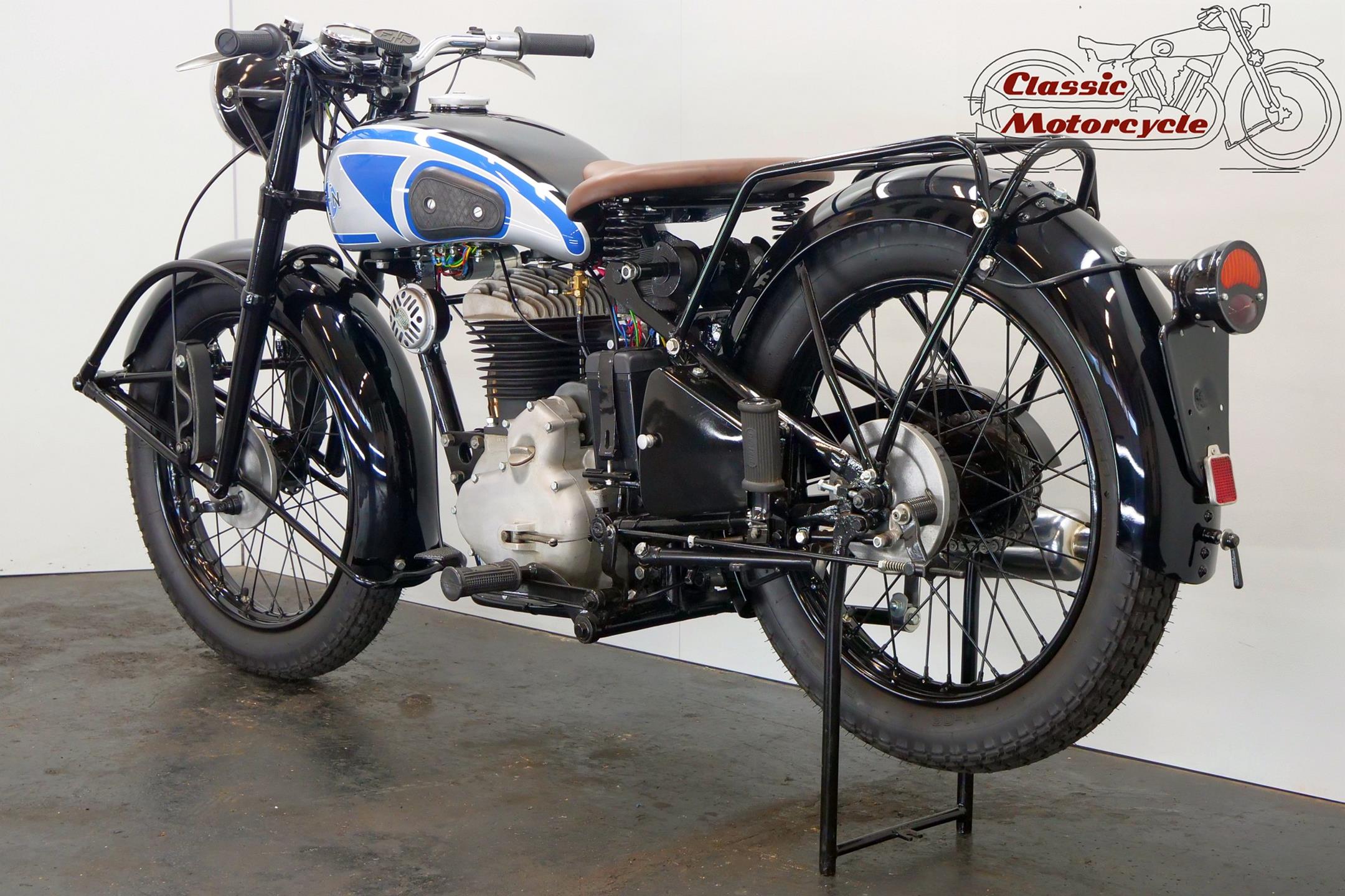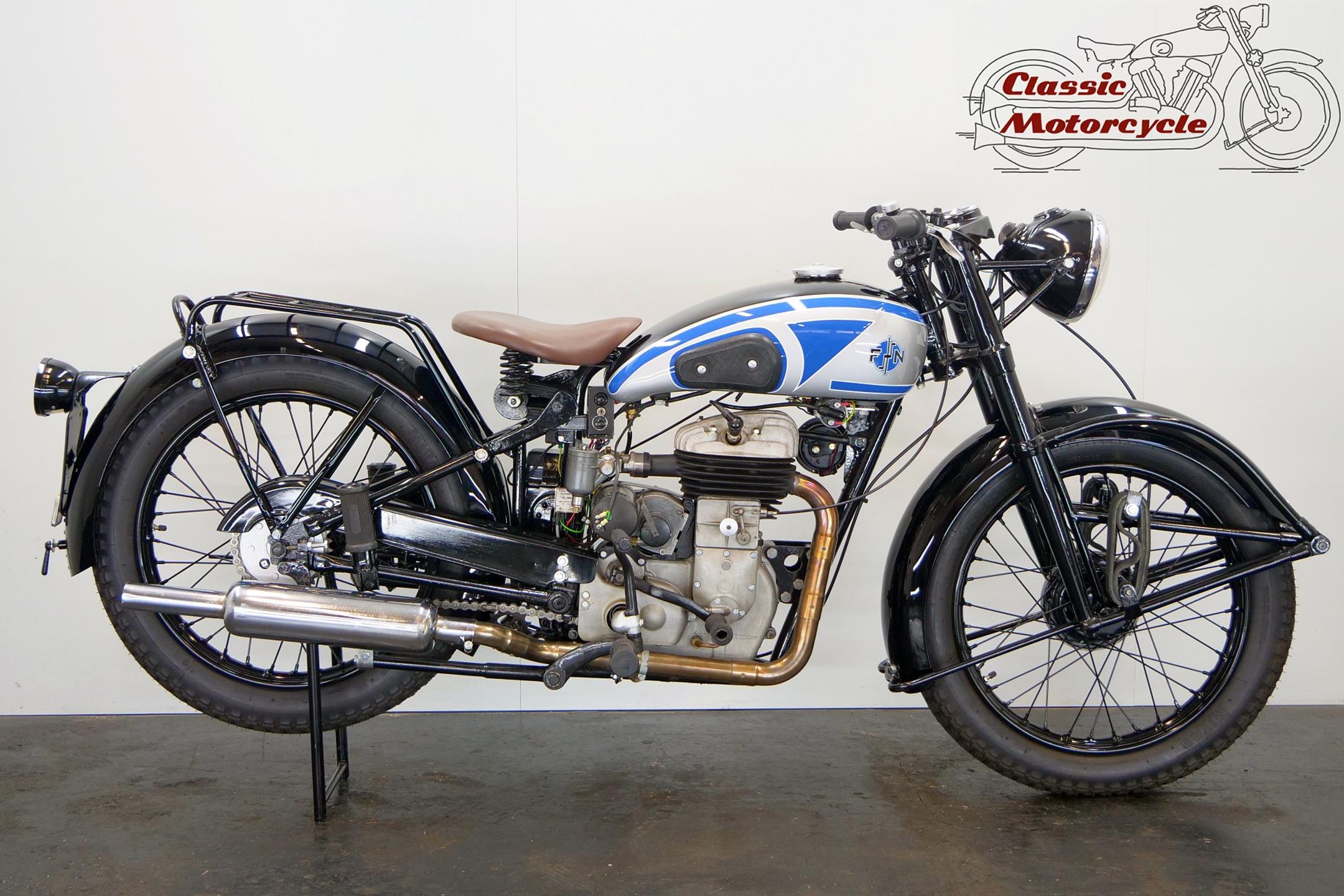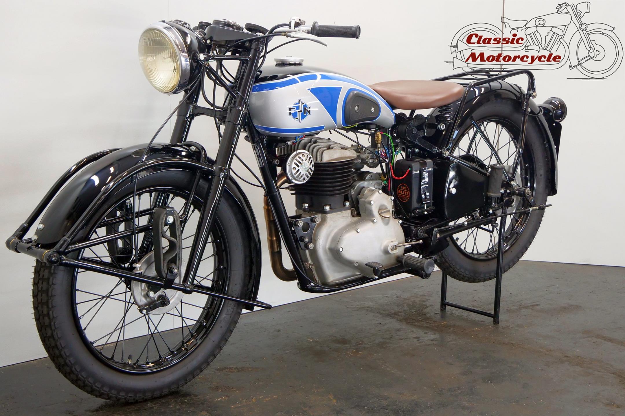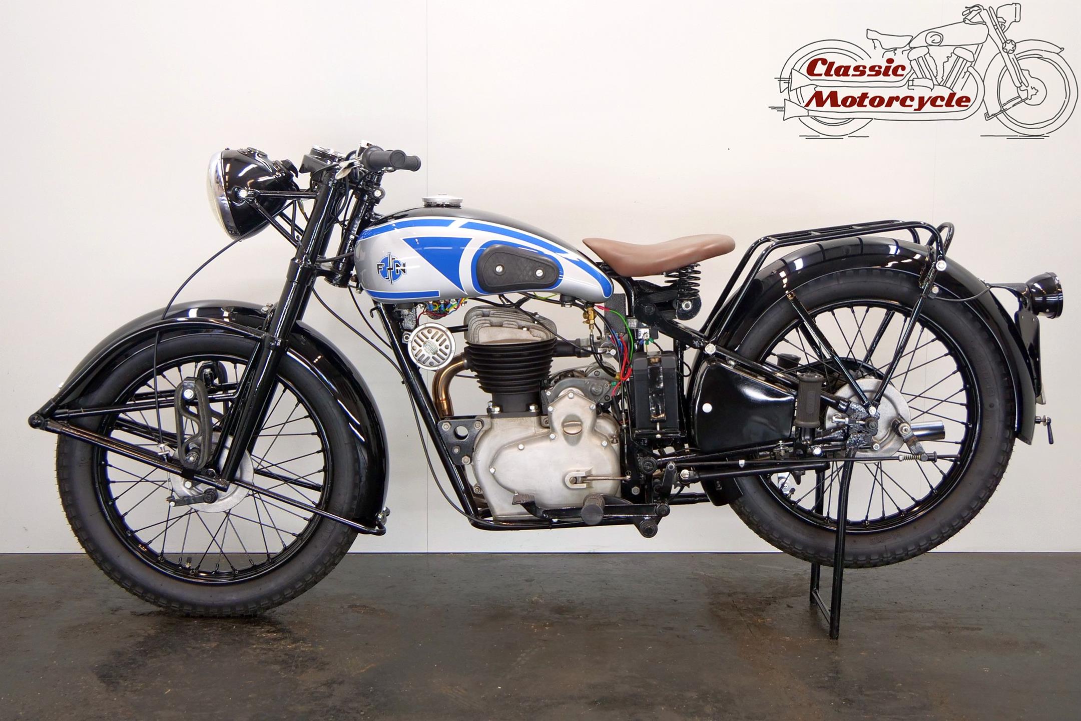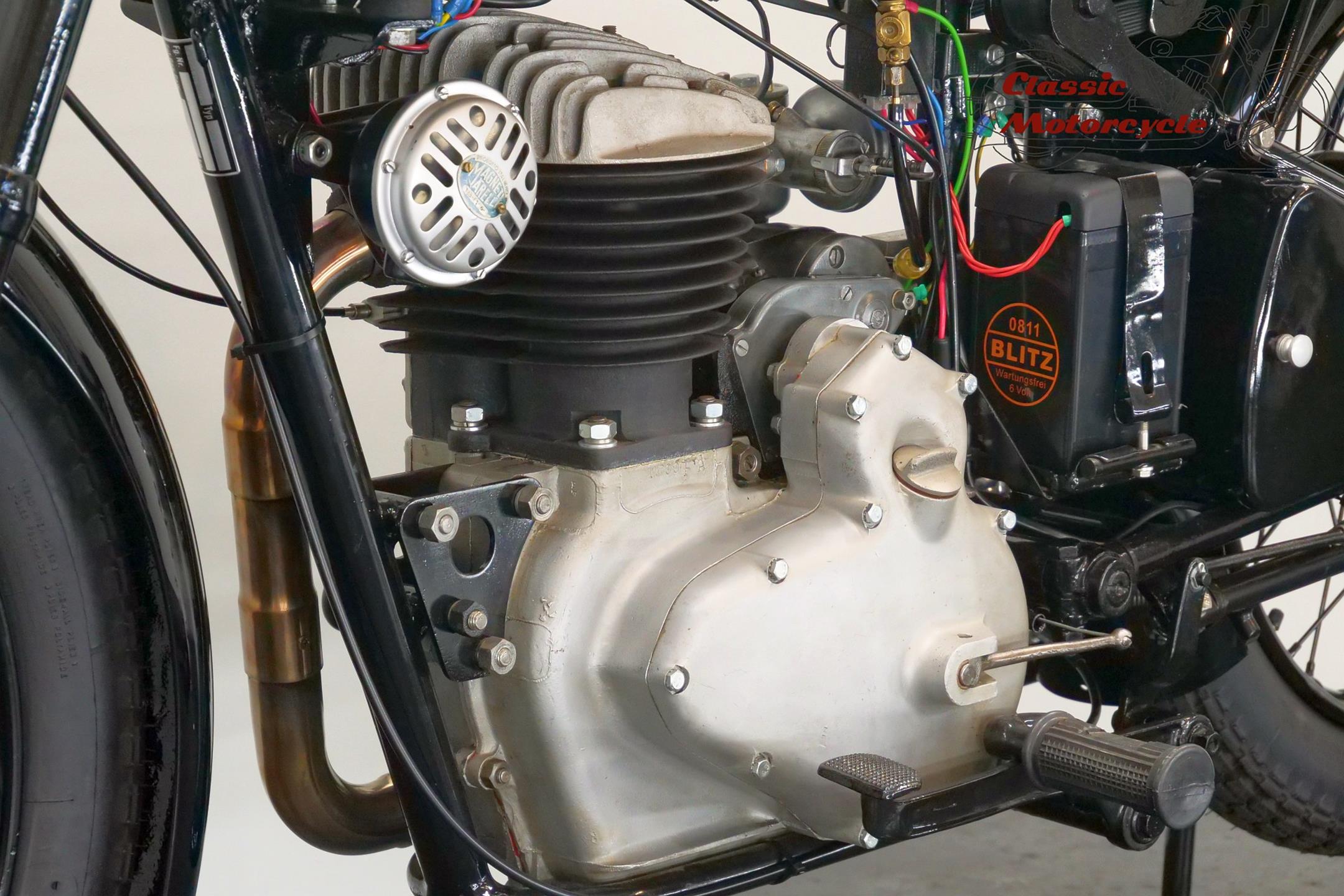 Fabrique Nationale d’Armes de Guerre, S.A., of Herstal, Belgium, had a long history with military organisations as suppliers of arms, notably guns, and only later did they achieve similar renown as manufacturers of military motorcycles. This example, believed to be the Model 13, which was introduced in 1947, is powered by a 448cc, side-valve engine which developed 11hp and drove through a four-speed, unit construction, foot-change gearbox. The distinctive rubber band suspension system, which this example features, was retained until 1951 when it was replaced by more conventional telescopic front suspension and trailing rear forks.