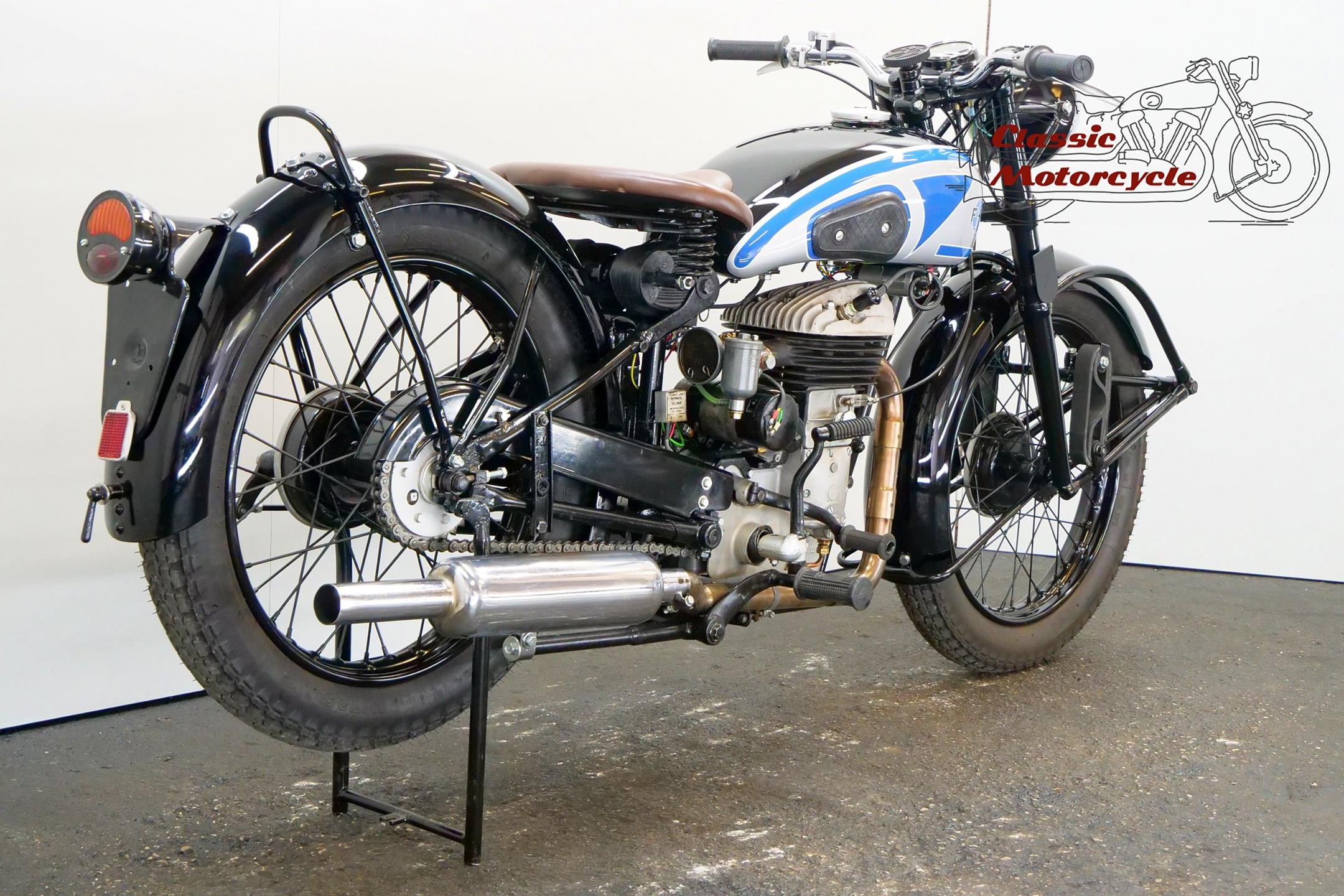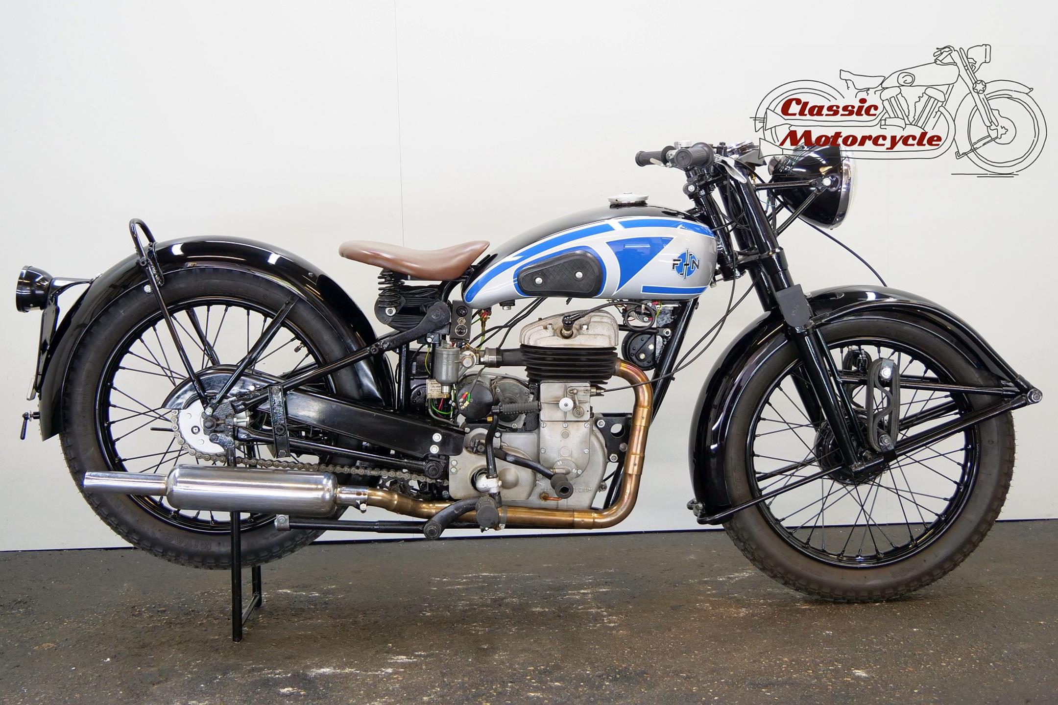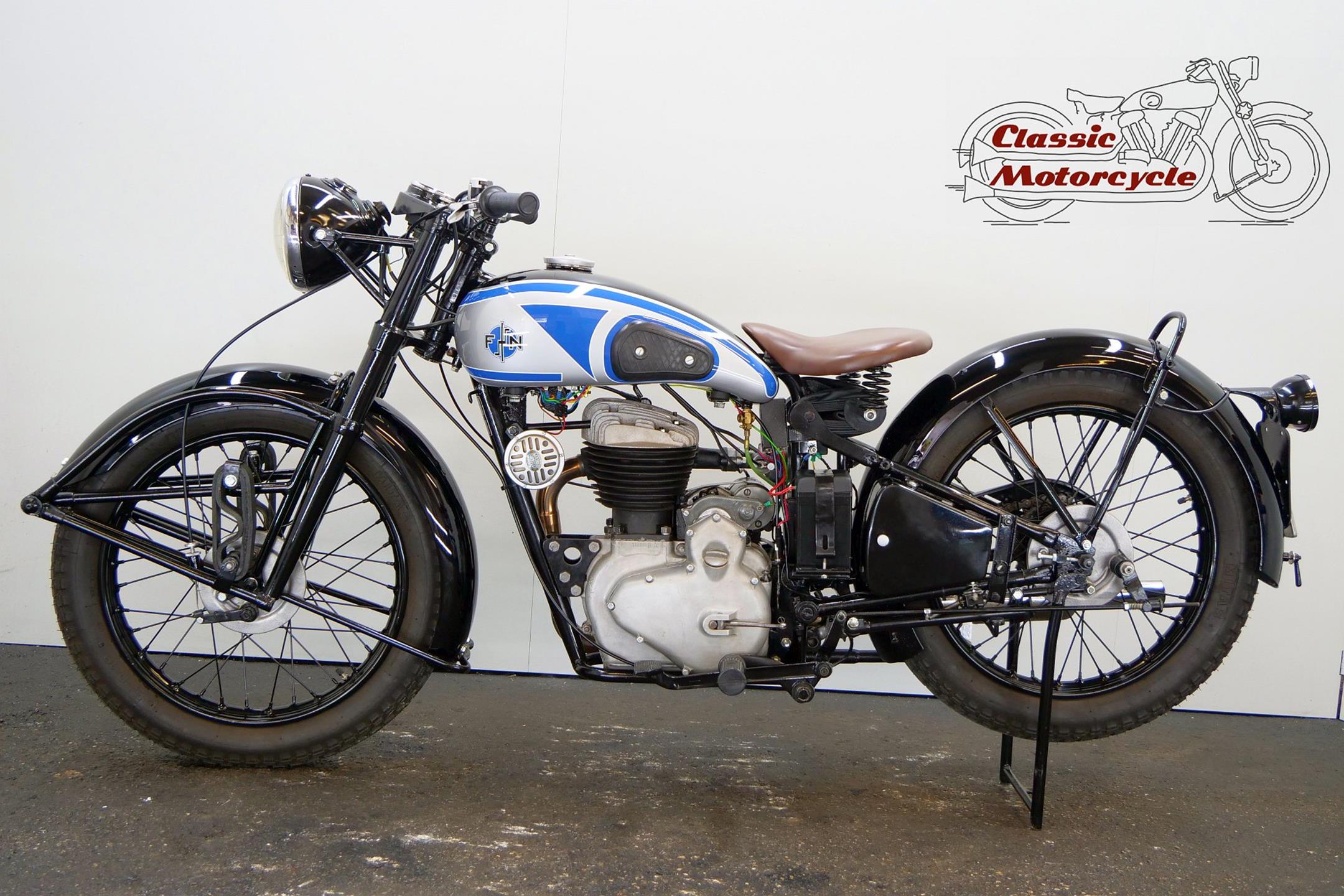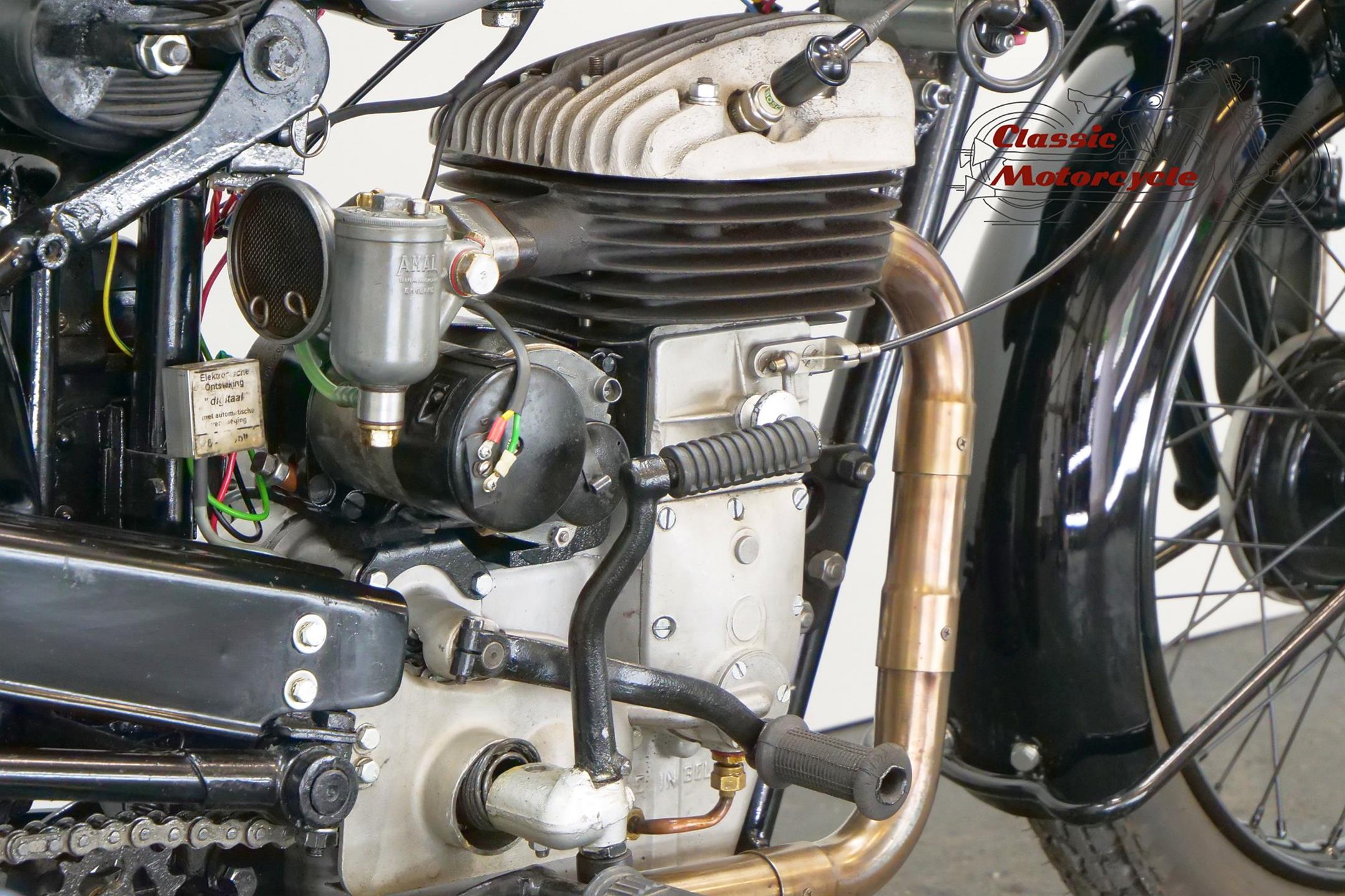 Fabrique Nationale d’Armes de Guerre, S.A., of Herstal, Belgium, had a long history with military organisations as suppliers of arms, notably guns, and only later did they achieve similar renown as manufacturers of military motorcycles. This example, believed to be the Model 13, which was introduced in 1947, is powered by a 448cc, side-valve engine which developed 11hp and drove through a four-speed, unit construction, foot-change gearbox. The distinctive rubber band suspension system, which this example features, was retained until 1951 when it was replaced by more conventional telescopic front suspension and trailing rear forks.