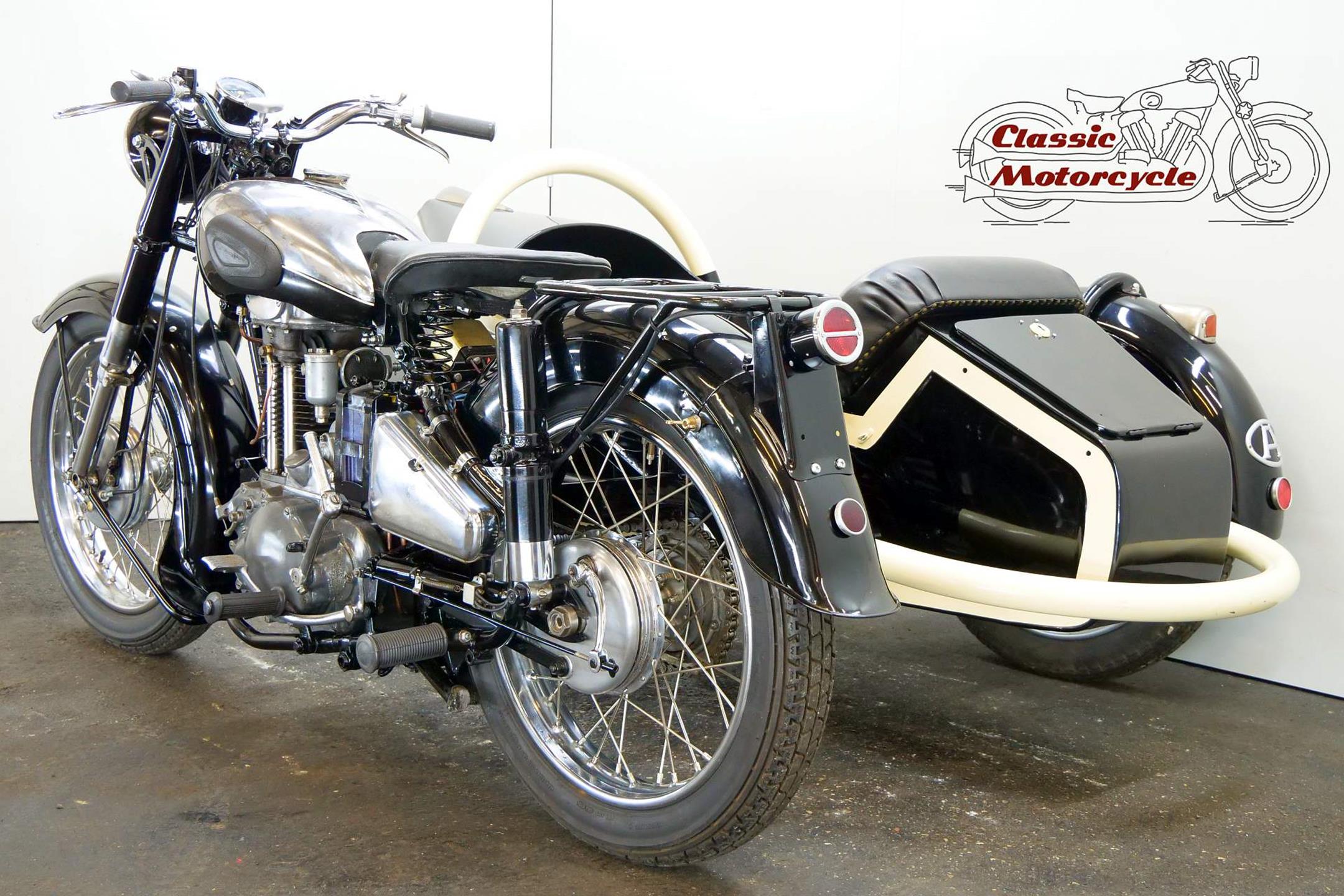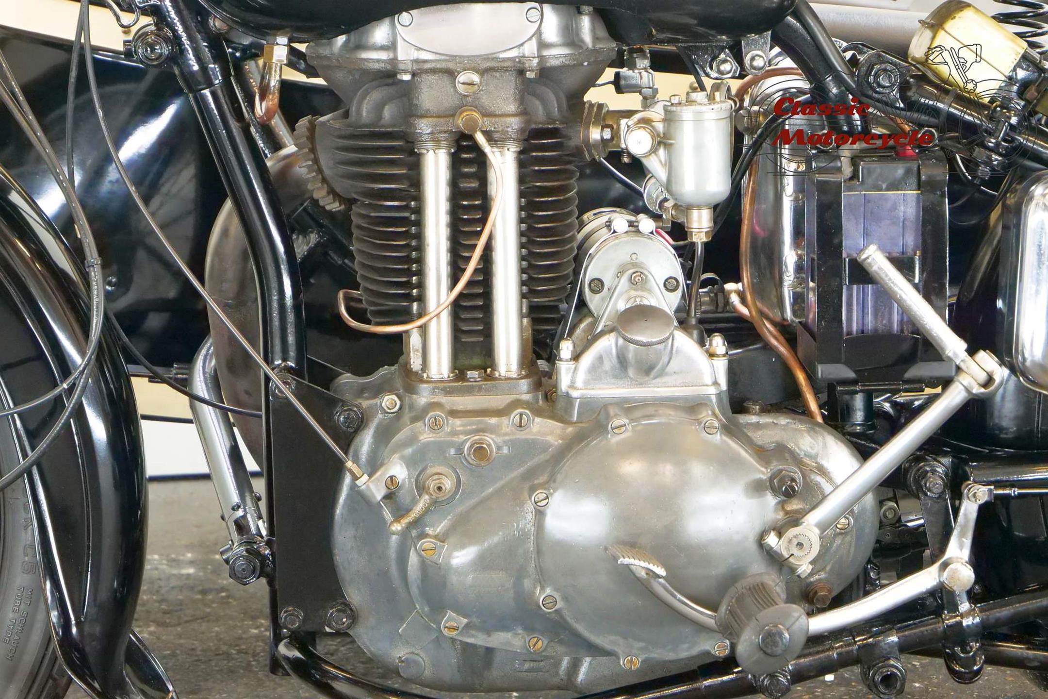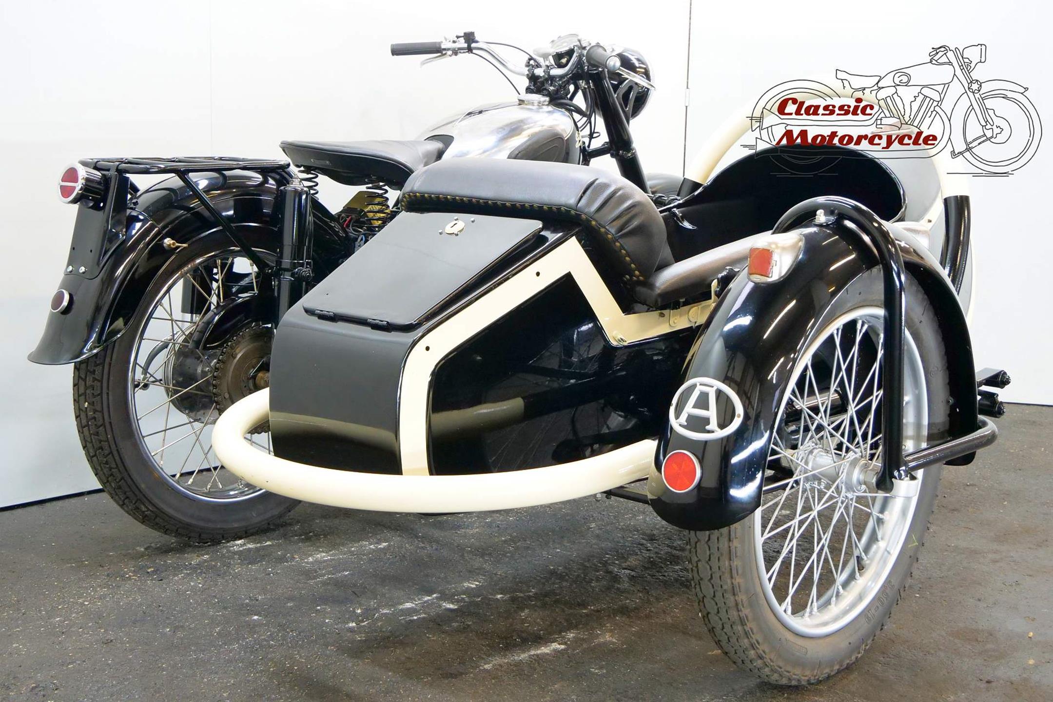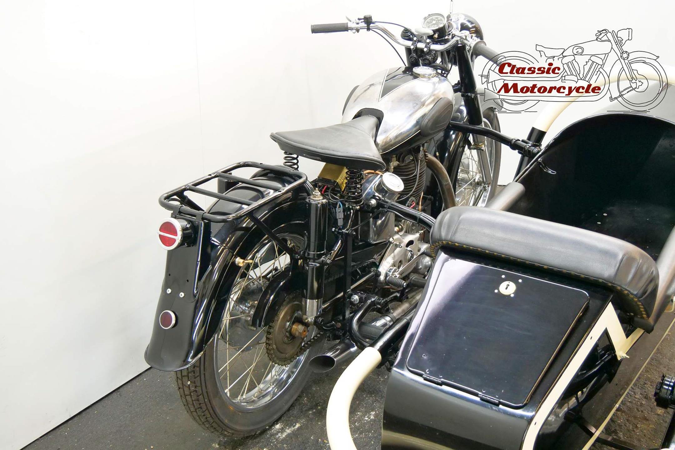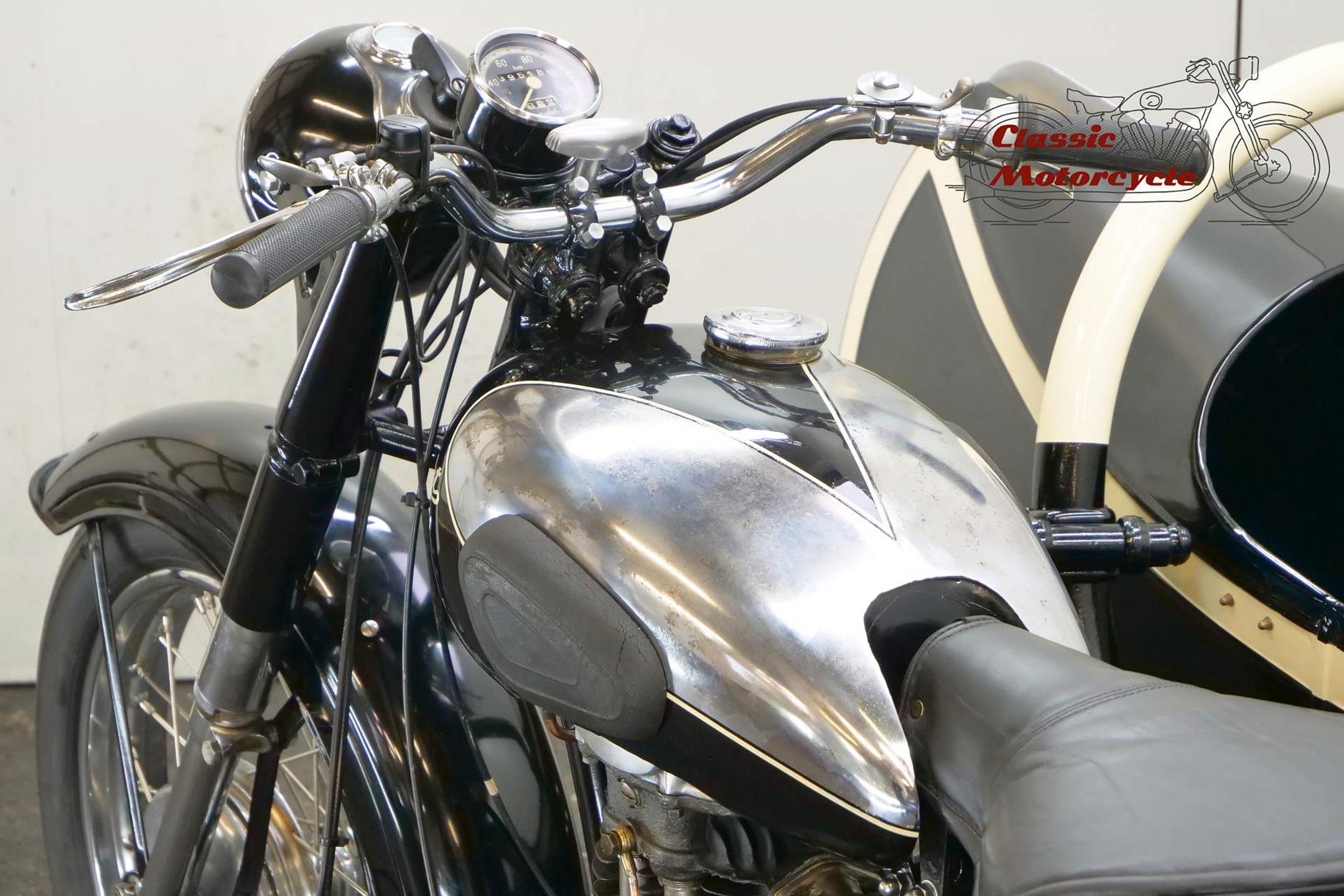 Not many of this 500cc ohv models has been produced and has survived. This combination has been restored a number of years ago. It spent its whole life in Austria and the old registration number is “W-24422”. The sidecar roof is not fitted on the sidecar but comes with this combination.