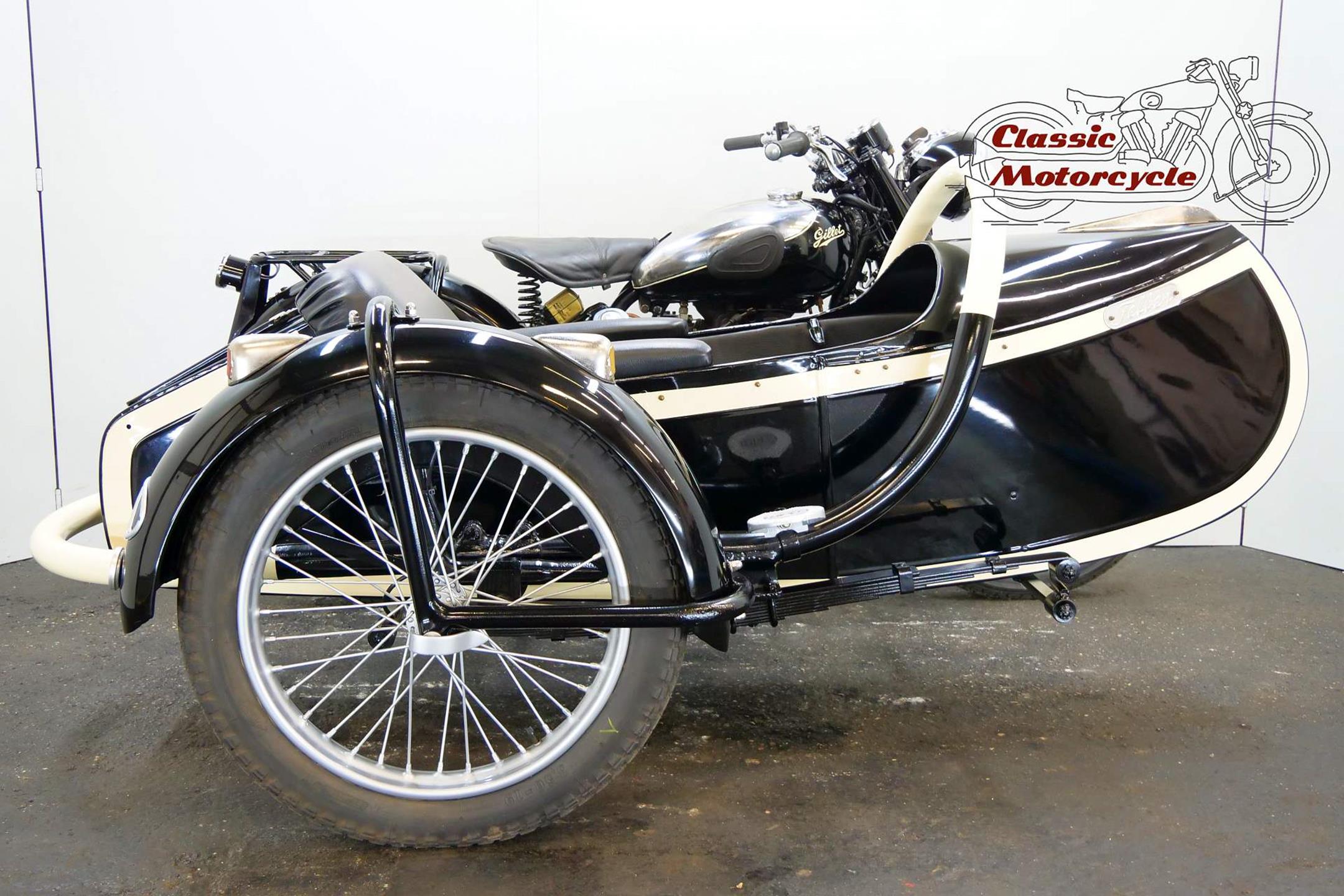 Founded by Leon Gillet in 1919, Gillet-Herstal, along with Sarolea and FN, became one of Belgium’s major motorcycle makers.Their motorcycles were built from 1919 to 1959. Production started with a 301cc Fernand Laguesse designed two-speed two-stroke. Although the company then concentrated on further two-stroke development, including an unusual rotary-valve model with one side of the mainshaft supporting three ratios for the gearbox, they also built motorcycles with Swiss MAG engines. Four-stroke engine development began during the mid-Twenties, but two-stroke experimentation continued, including the unit construction flat twin, two-stroke 720 Model with chain drive to rear wheel and shaft drive to the sidecar wheel supplied to the Belgian military 1938-40. Re-entering motorcycle production after WWII with four and then two-stroke commuter style models, telescopic front forks were adopted across the range. Swinging arm rear suspension was introduced in 1946 with the launch of the 239cc two-stroke Superconfort. Gradually, Gillet-Herstal moved over to an all two-stroke range, including a 125cc scooter built under licence from Bernardet, launched in 1953. The shrinking European motorcycle market led to Gillet-Hertsal joining in 1955 with Sarolea and FN in a vain attempt at survival. Even the introduction of a robust moped, built under licence across the group, couldn’t save this once famous marque.