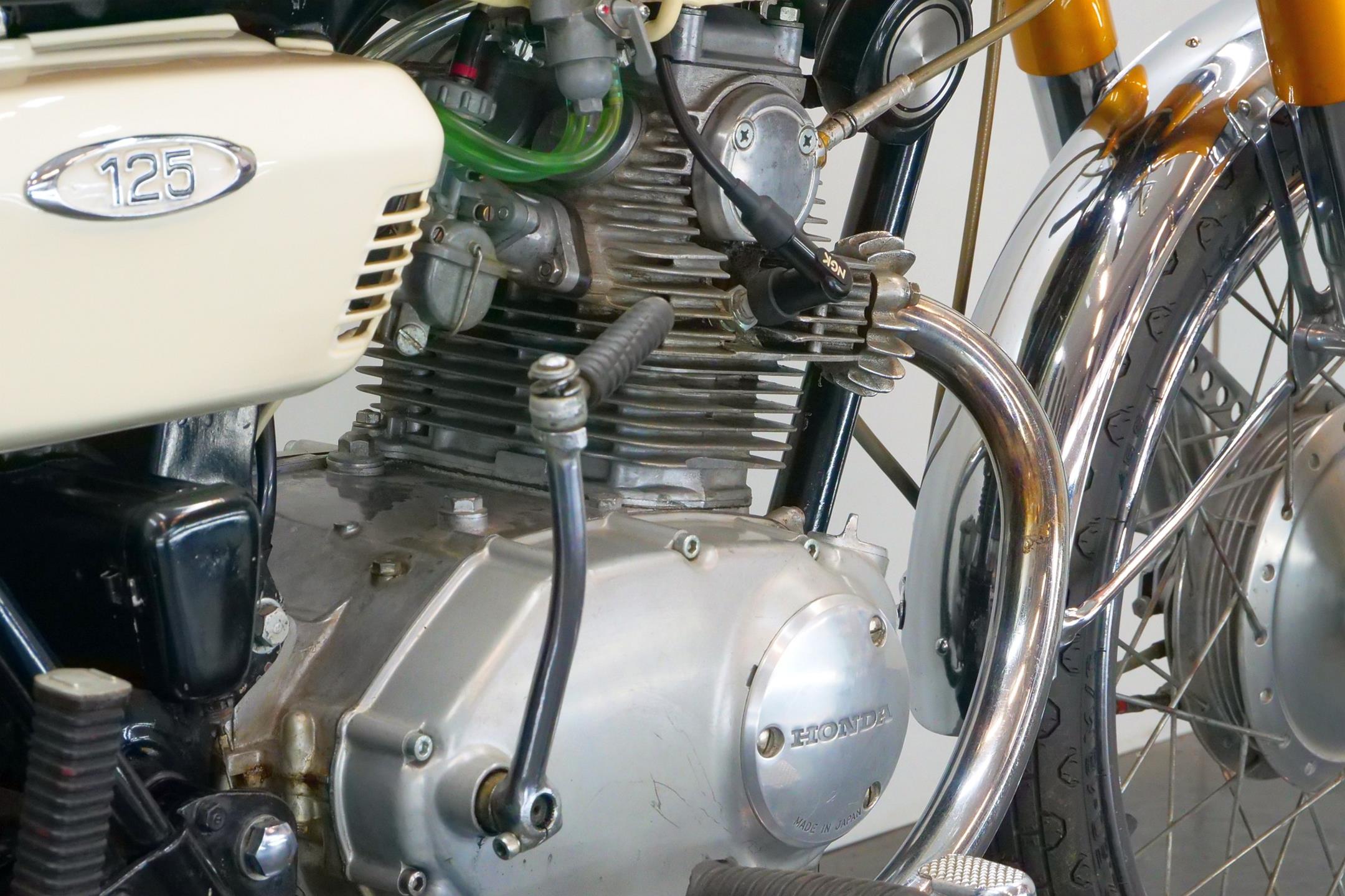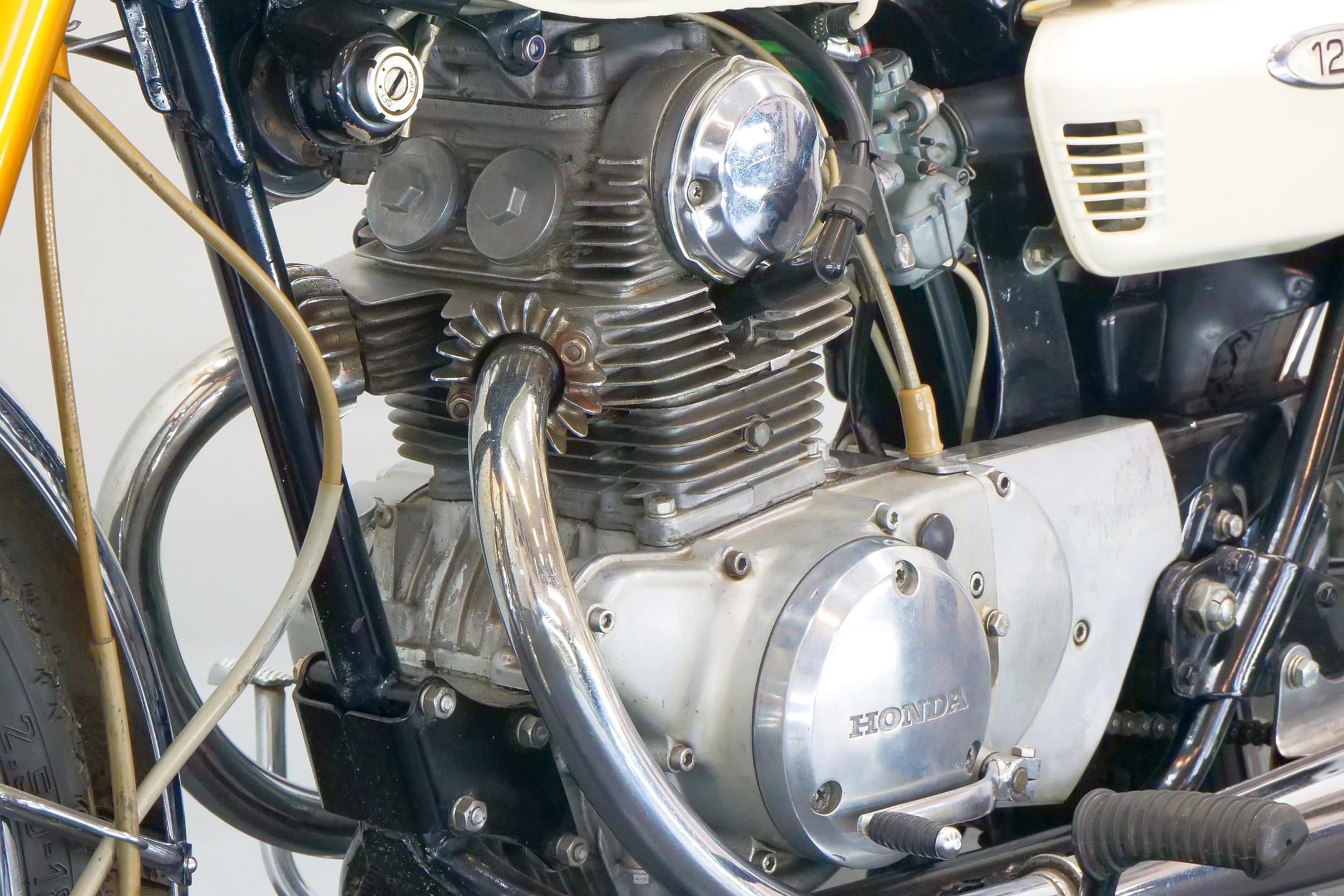 Replacing the much loved Cb92 in 1964 the CB93 was a most worthy replacement, sharing a similar chassis and braking system to the exotic Honda CR93 race machine, this 15ps bike could top 128mph and looked simply superb, and incidentally sharing many components with the CB96 or CB160 as it was more commonly referred to. In 1966 the CB93 suffix was dropped and the model became just a CB125, sharing much in common with the outgoing model, mainly the centre cam drive engine. In 1967, the CB125SS adopted the much lighter and more compact side cam drive engine, and with cylinders much closer together was even smoother. Power remained at 15ps, but now at 11000 rpm, with a model now weighing in at only 111kg some 16kg lighter. This model compromised by only four speeds and no rev-counter was replaced the following year with the CB125 K2 with similar chassis, but now with 5 speeds and a speedometer/rev-counter recessed into the headlight. This is probably the best and fastest of it’s genre, the Japan model having an electric start, the general export model did not. The K2 model also introduced new ‘candy’ colour schemes to the quarter litre class, and like it’s predecessor lasted only one year before replacement with the new upright CB125K3 with a semi fabricated frame, which led the way for all the rest of the k series and B6 model 125’s which were all powered by the same lightweight ultra compact twin cylinder engine. The final CB125 sports twin was the CB125T range first launched in 1977, this was the fastest four stroke production 125cc twin ever produced, and still has not been bettered up to the present day it’s 16bhp @11500 rpm engine propelled this bike, in the right hands to 88 mph! All subsequent Honda CB125 twins have used this 44mm x 41mm bore and stroke engine, from sports bikes to cruisers in various states of tune, but by the end of the 1980’s Honda stopped producing 125 twins.