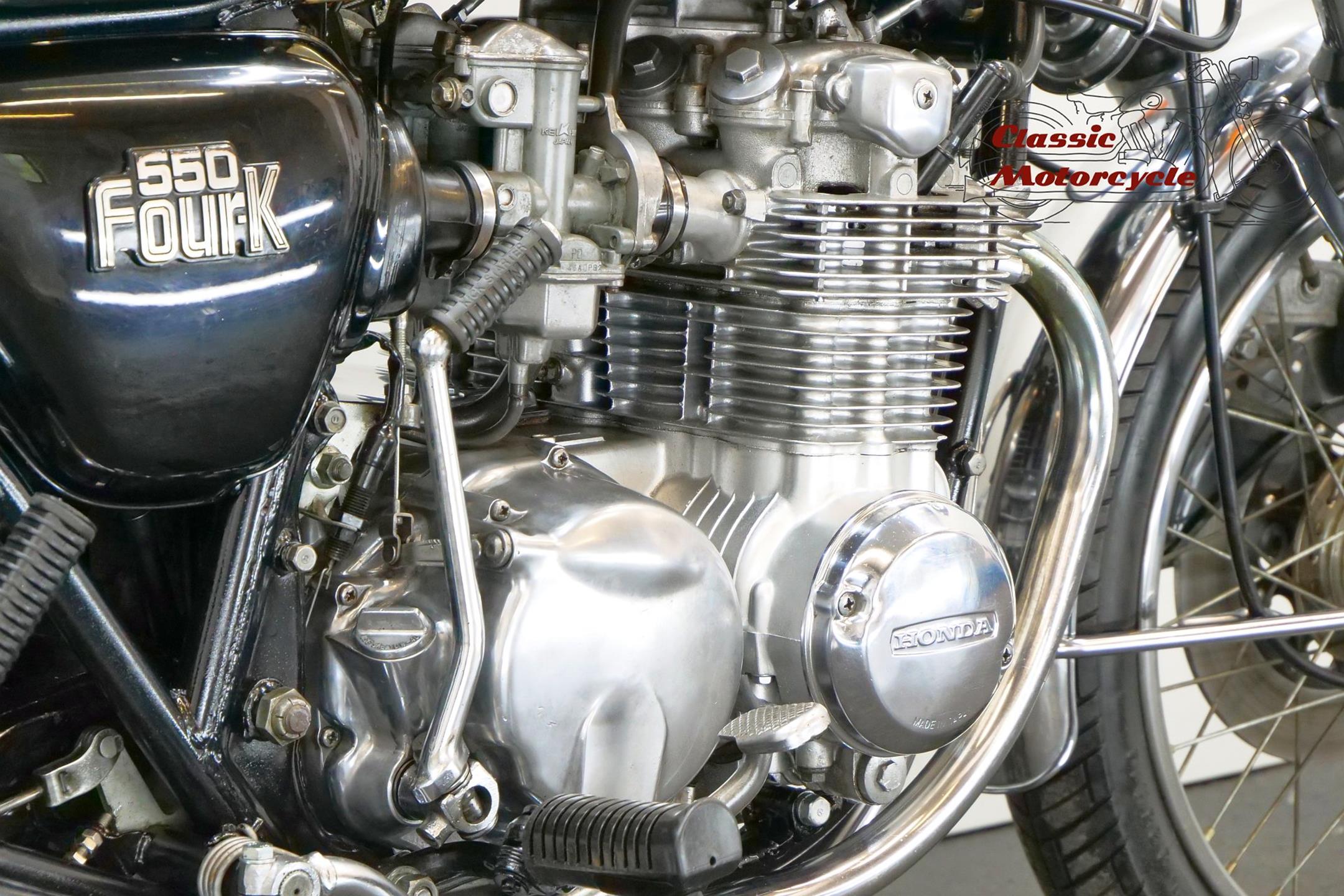 Honda followed its sensational CB750 with a range of smaller fours, the first of which - the CB500 - appeared in 1971. The half-liter newcomer was just as well specified as its larger brother, boasting an air-cooled, wet sump, (single) overhead-camshaft, two-valve engine, five-speed gearbox, electric starter and disc front brake. The engine produced 50hp at 8.500rpm. Bike magazine reckoned there were several reasons for preferring the smaller four: 'For starters the 500 is a lighter machine with a shorter wheelbase. It therefore has a better power-to-weight ratio than its bigger brother and, significantly, it handles better through the curves. In fact, the 500 is faster up to 60mph in a straight line and its 80mph only a fraction of a second behind the 750. Upping the engine capacity by 10 percent, the CB550 offered the same blend of performance and civility when it first arrived in the USA in late 1973.
