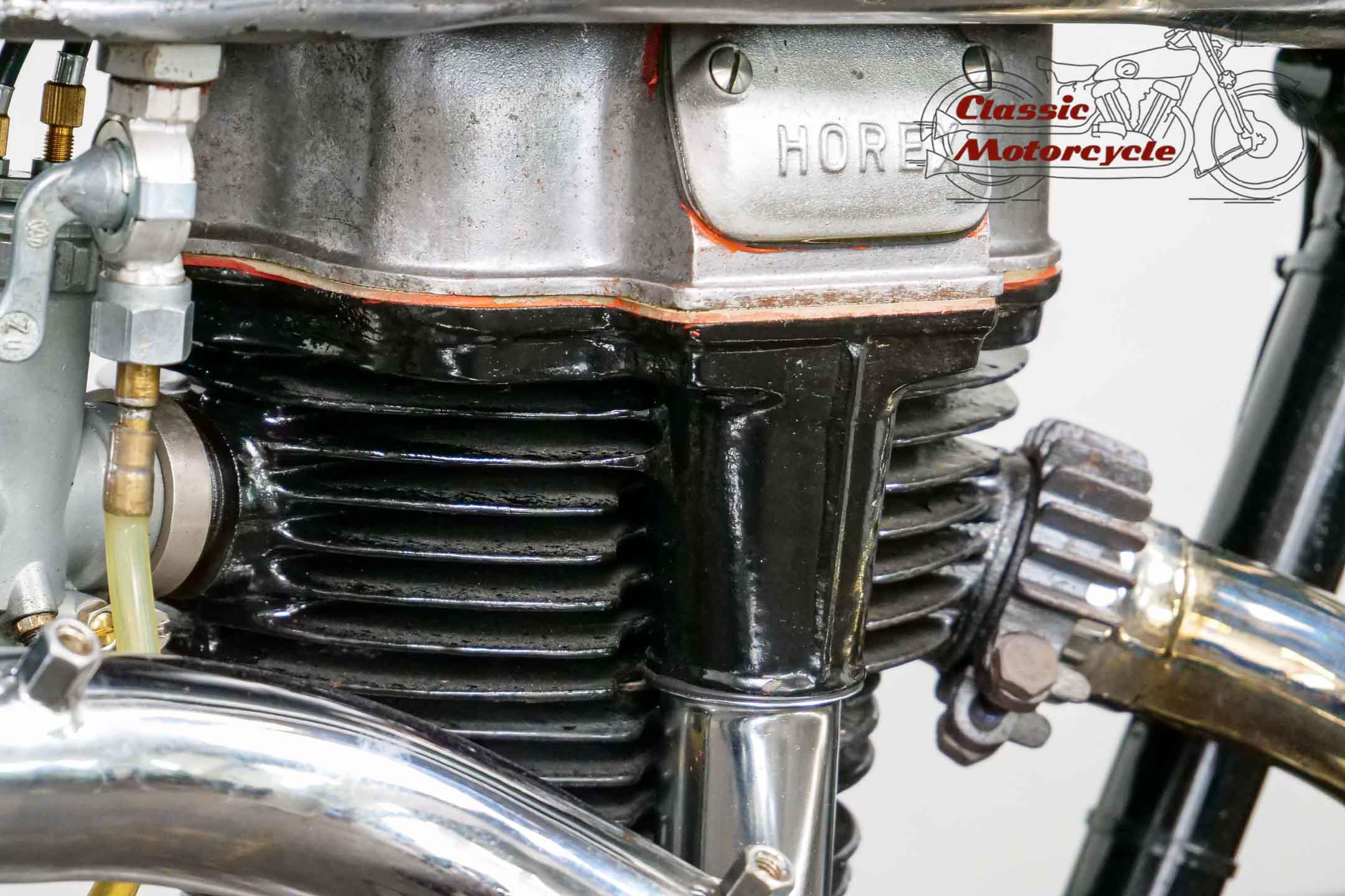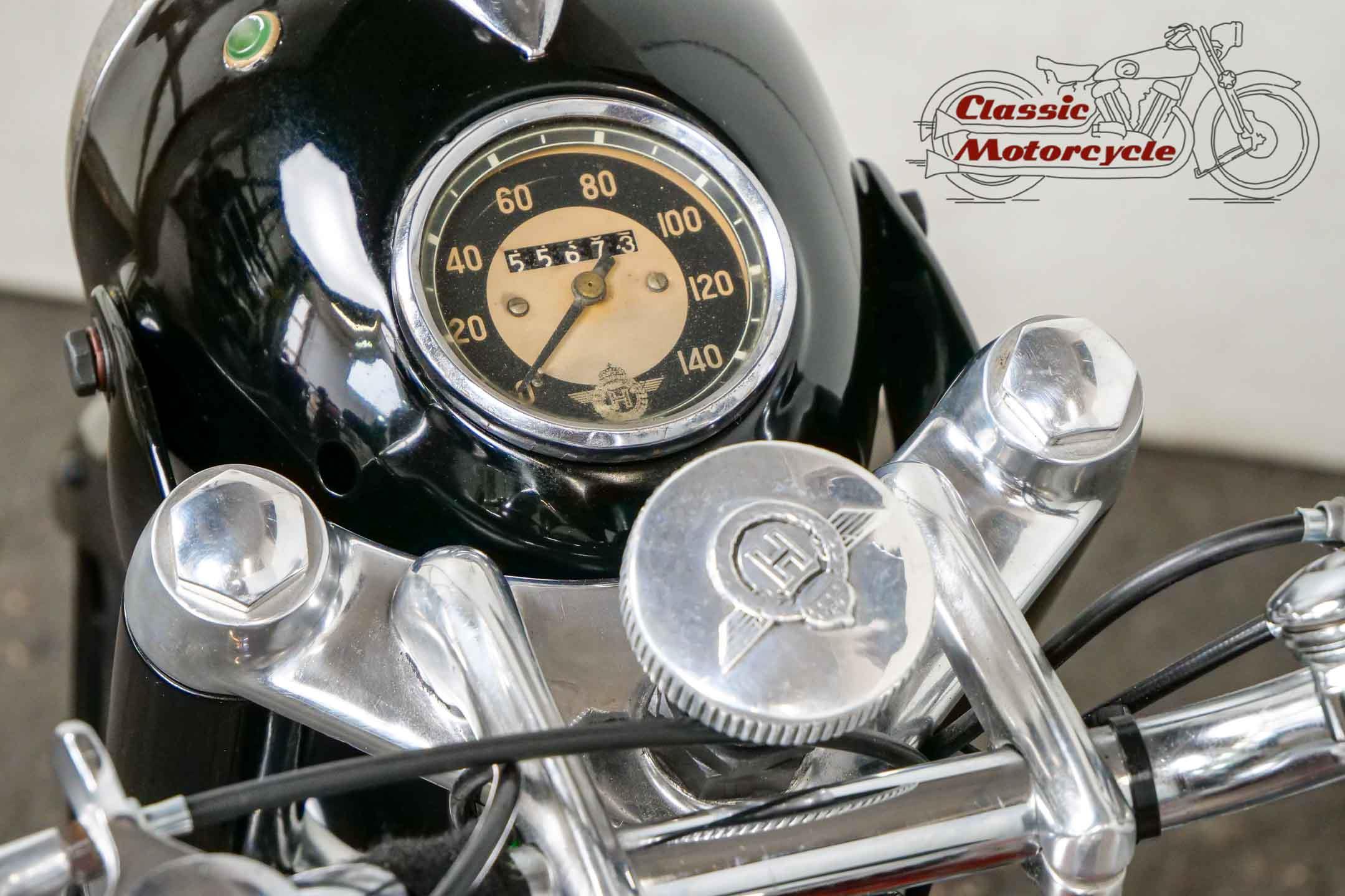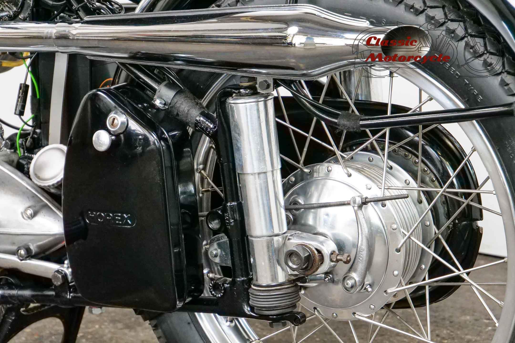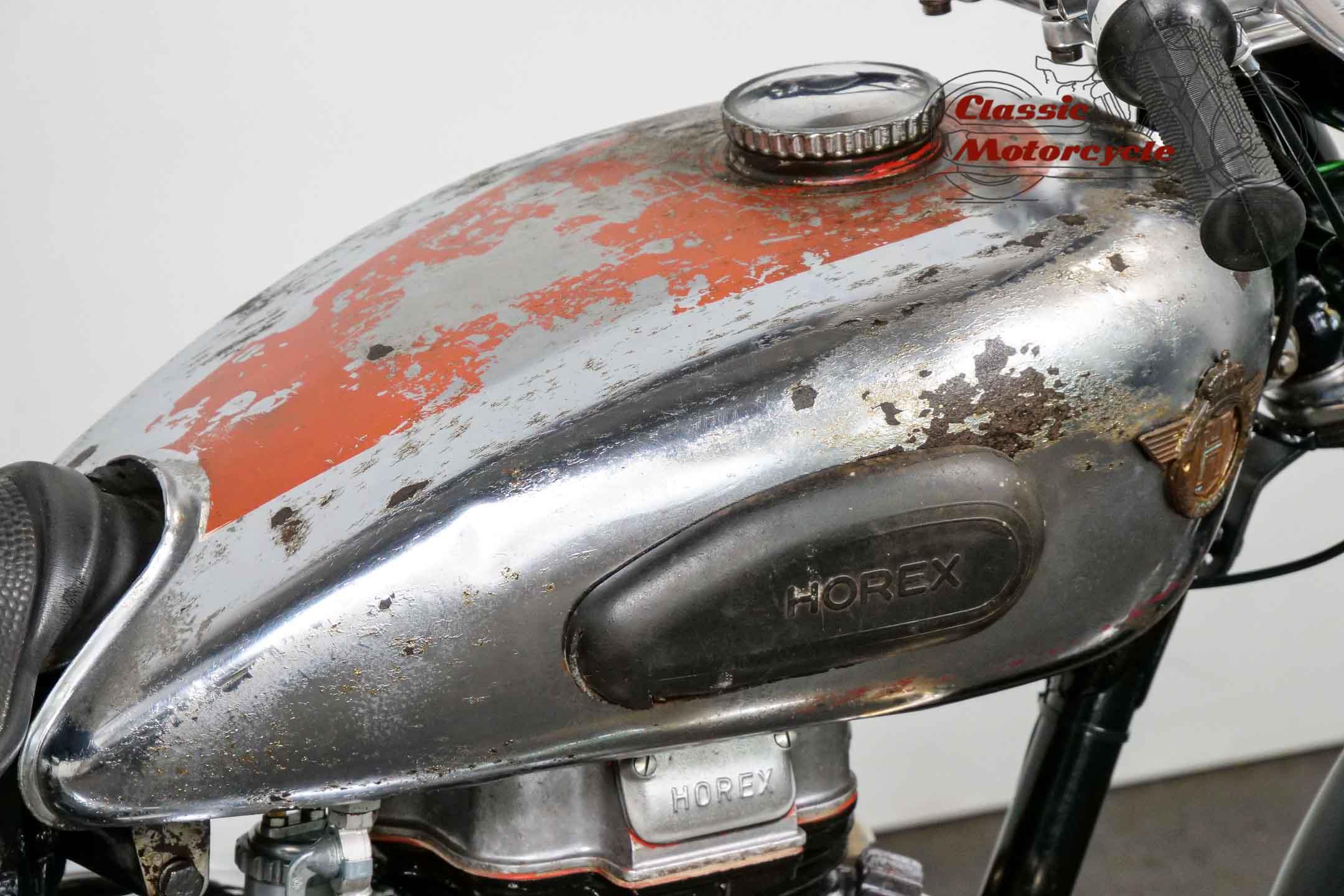 This Horex was recently overhauled and is equipped with electronic ignition. The high pipe exhaust was a sporty detail of the “Geländesport” model. Nice features like the untouched tank in original condition complete the bike. The Regina is ready to ride.