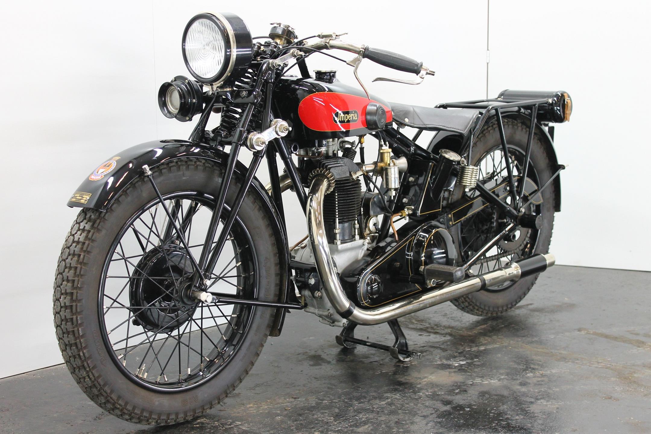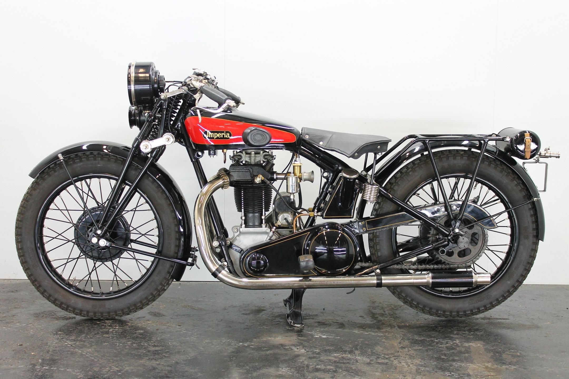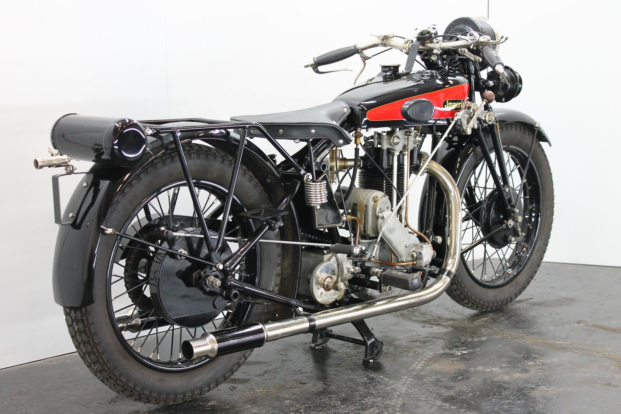 Fr. Becker's Imperia factory at Cologne, Kölner Motorrad und Maschinenbau (K.M.B.), initially built 247cc and 347cc ohv Blackburne-engined machines and also versions with the 490cc single-cylinder ohv JAP, but most had Swiss MAG power units of 346cc, 496cc, 596cc, 746cc and 996cc. With the exception of the smallest, all were ioe or ohv V-twins. Becker became insolvent in 1926 and the brothers Felix and Rolf Schröldter purchased Imperia and moved the factory to Bad Godesberg. Early in the 1930s famed Dutch designer Arthur F. Dom joined the firm, and during this period models with MAG 497cc IOE, 678cc V-twin ohv JAP and Sturmey-Archer 346cc engines were developed, but mainly 248cc, 348cc and 498cc four-valve Rudge-built Python proprietary ohv four-valve singles. The Imperia Python machines were widely used in competition. 1933 saw the introduction of Villiers-engined models of 150 & 200cc. That same year, import of foreign engines into Germany became increasingly difficult due to high taxes imposed by the Nazi government, and Dom, being a foreign national, left. Locally sourced Bark two- and four-stroke engines were employed in several models, and Rolf Schröldter designed a range of new and very unconventional two-strokes. The first was a 348cc double-piston single with the pistons running in opposite directions and a single sparkplug in the centre, based on a Junkers patent. There were really two crankshafts, one on each side of the cylinder. They were connected by a chain and on top was a supercharger. This aircooled engine was developing well in 1935 when an international ban on alcohol fuels in racing took force, and major cooling problems were encountered when running benzine fuel. Imperia again ran into financial difficulties, due in the main to the production of too many unconventional designs. These included a 498cc horizontally-opposed two-stroke twin with Trilok gearbox and shaft drive, and the company was also building 746cc sports and racing cars. As a result, production was halted towards the end of 1935.