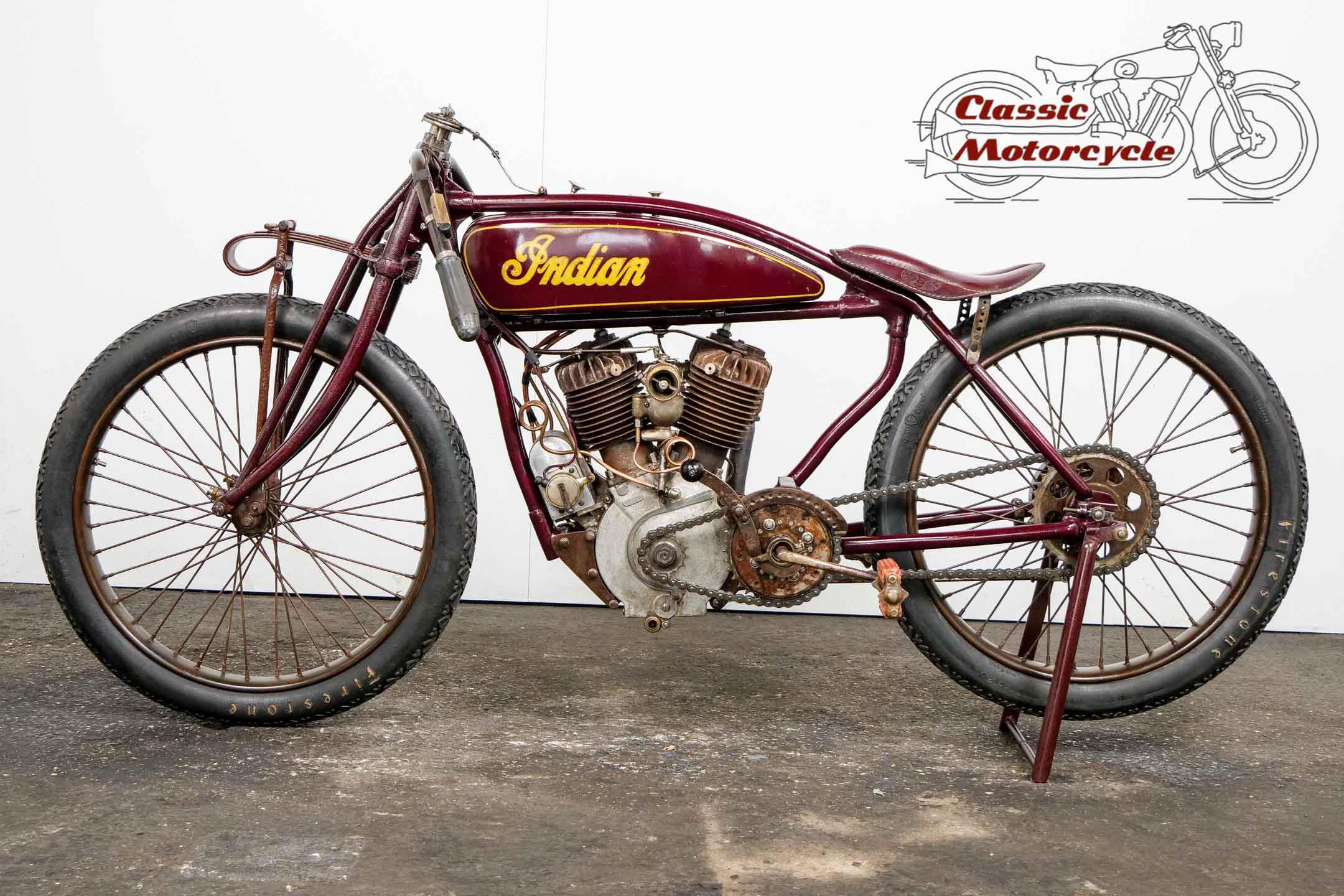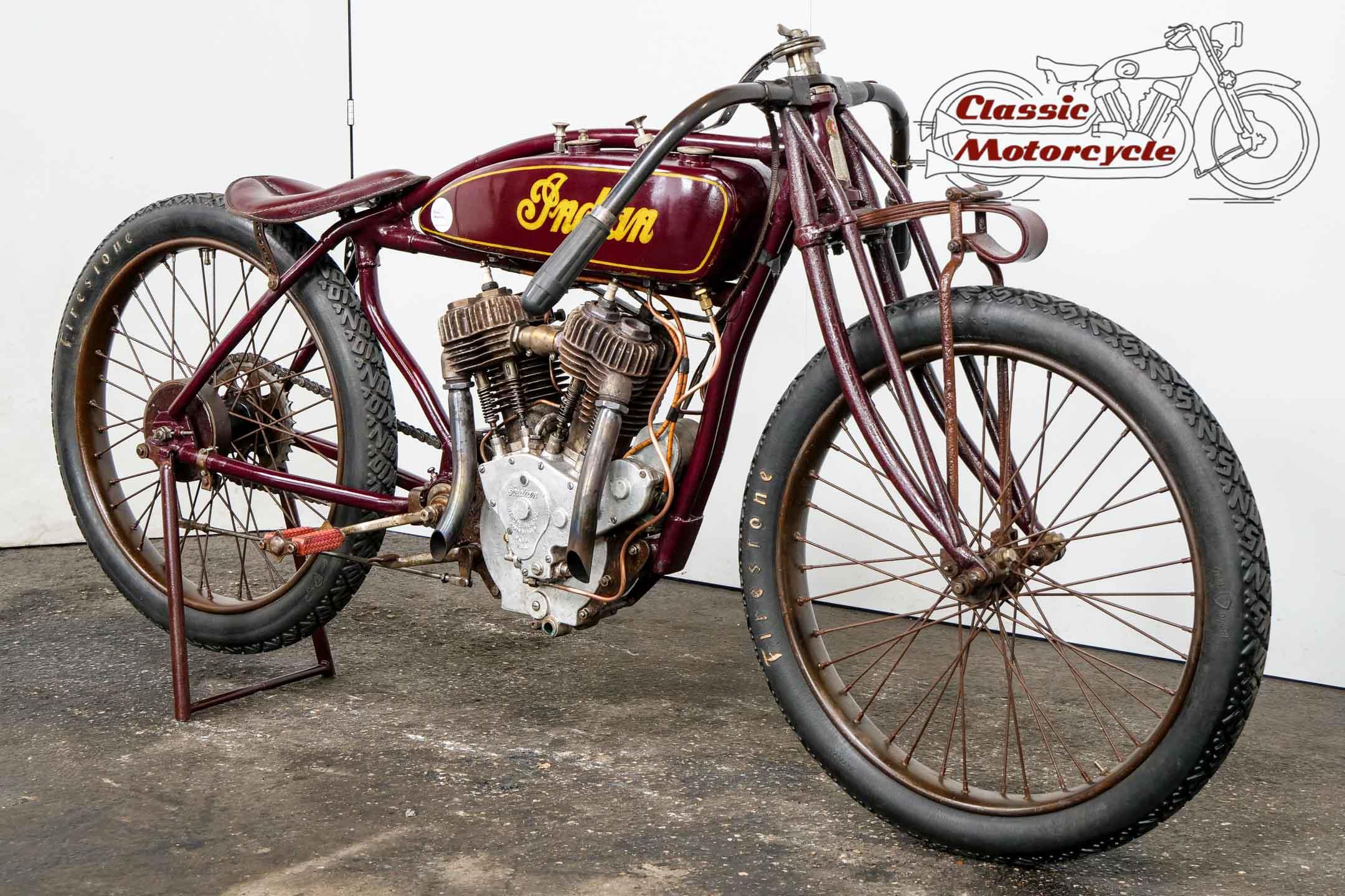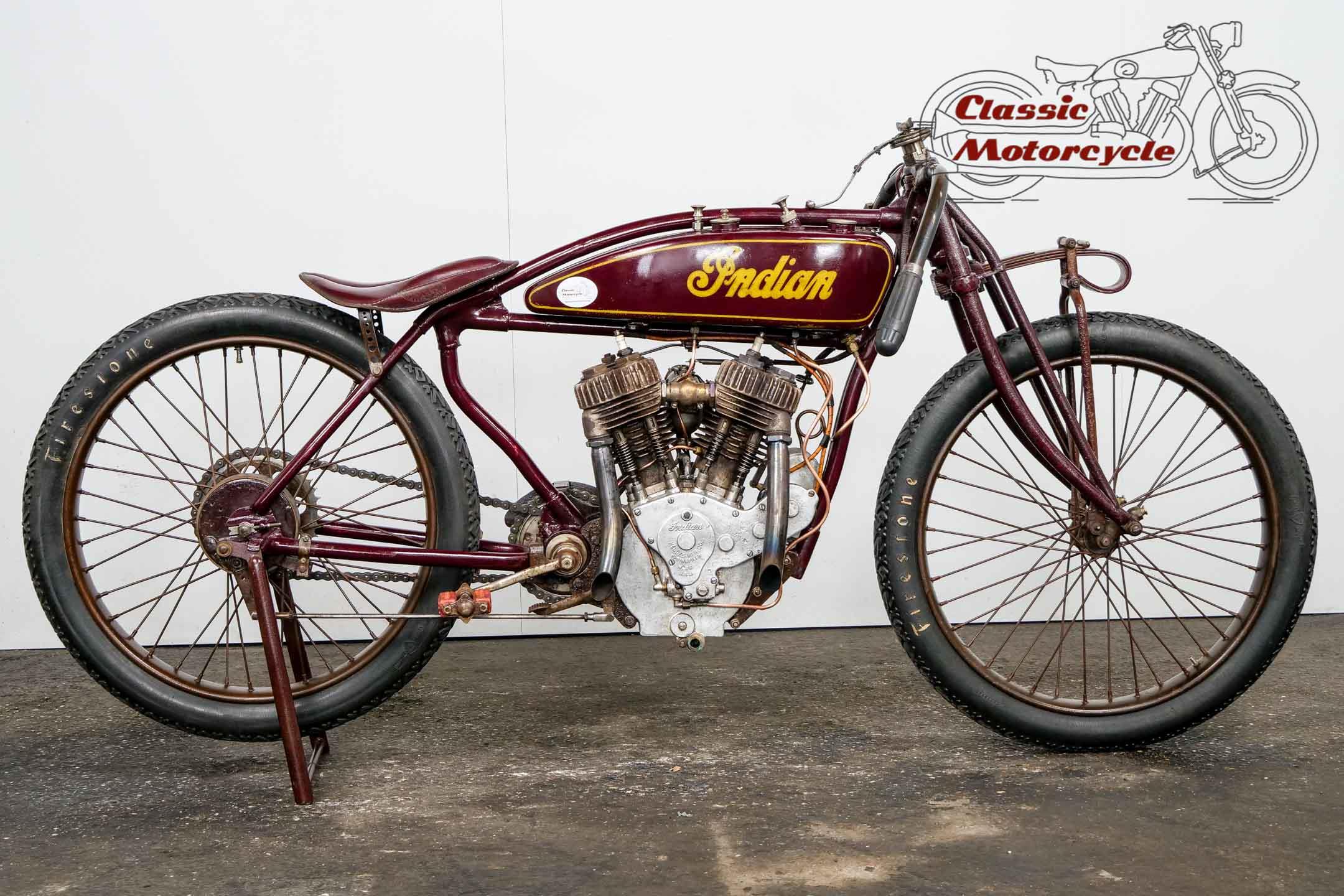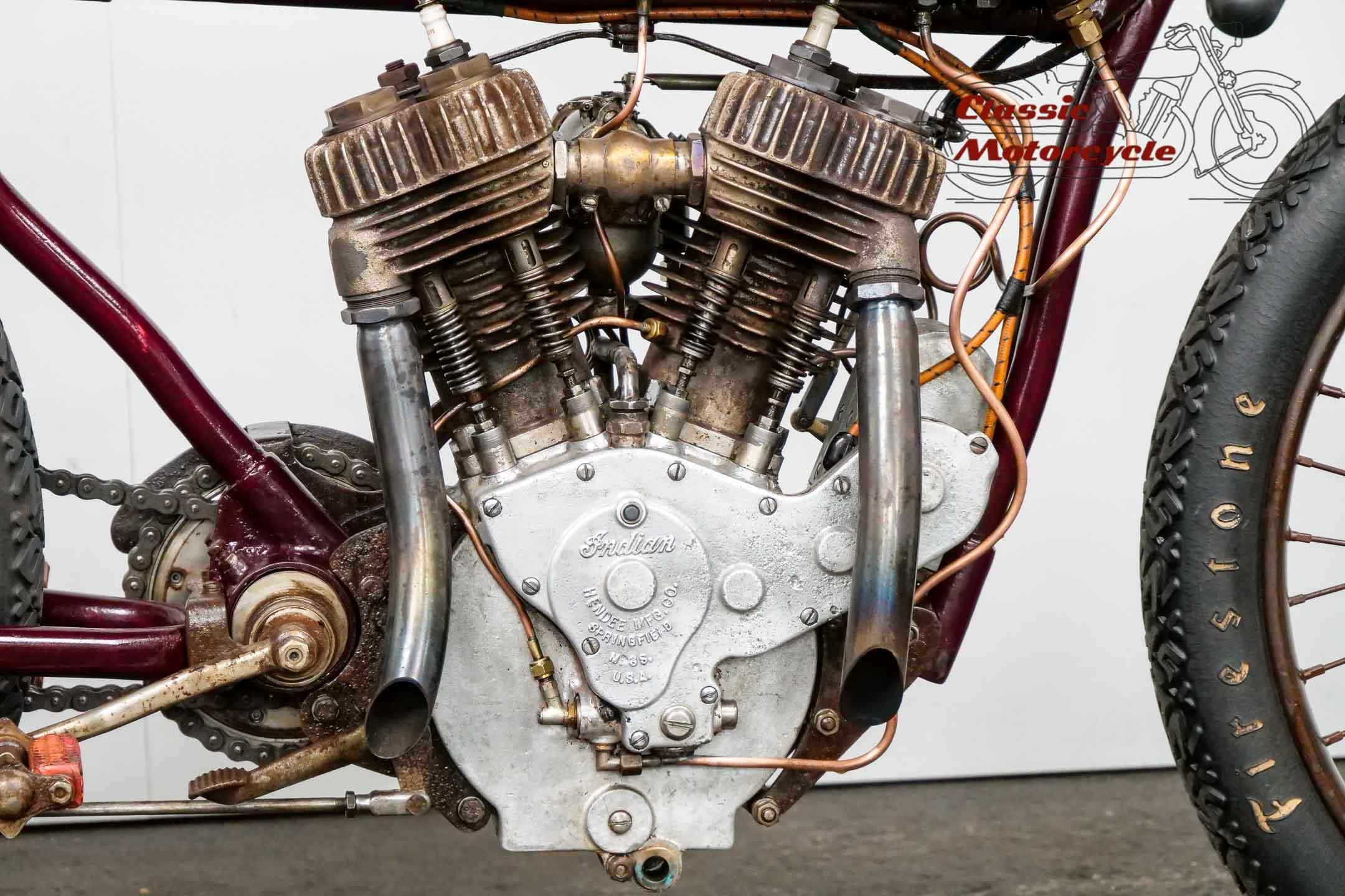 Competition between the major American motorcycle manufacturers was fierce in the 20th Century’s opening decades, a factor that greatly accelerated technological development. In Indian’s case, the need to stay ahead of rivals Excelsior and Harley-Davidson prompted the introduction of an eight-valve v-twin racer in 1911 and then in 1916 a new 1000cc flat head (sidevalve) v-twin - the Powerplus - was introduced to replace the production F-head (inlet over exhaust) type. Development of the Powerplus had been initiated after Harley-Davidson trounced Indian in the 300-mile Venice road race in the spring of 1915, chief designer Charles Gustafson suggesting that a well-designed sidevalve ought to prove good enough to beat the Harleys. The 42-degree v-twin configuration of the existing Oscar Hedstrom-designed F-head engine was retained, but with side valves and increased use of roller bearings. Gustafson’s intuition did indeed prove correct, the new 1000cc twin proving more powerful than its predecessor right from the start, hence the ‘Powerplus’ name. In September 1919 the Powerplus racer appeared with a new Harley-style frame, open at the bottom, that used the engine as a stressed member. A revised Daytona version of this frame was introduced the following year featuring top tubes and steering head lowered by an inch or two to achieve a lower saddle position. Readily recognized by its ‘S’ shaped seat tube, the Daytona frame quickly became the Indian factory racers’ favorite.