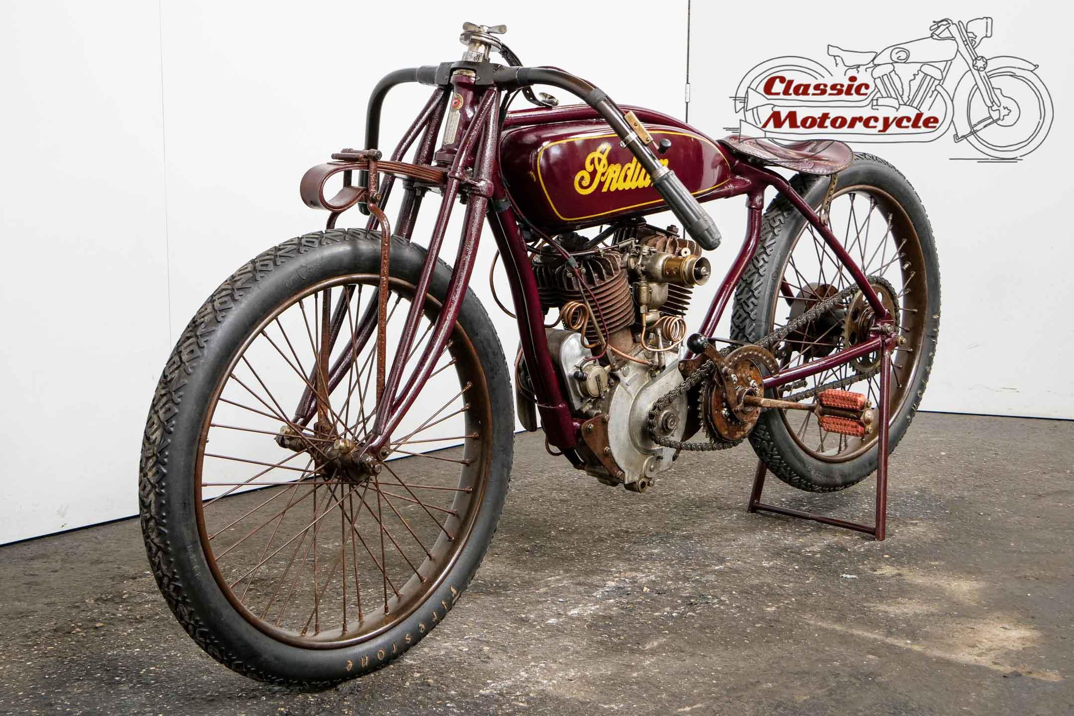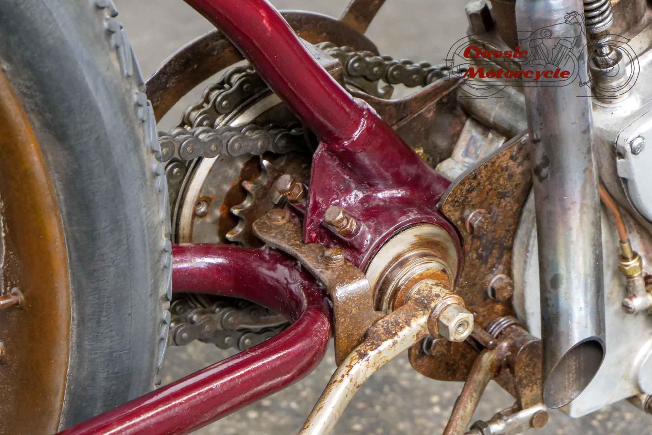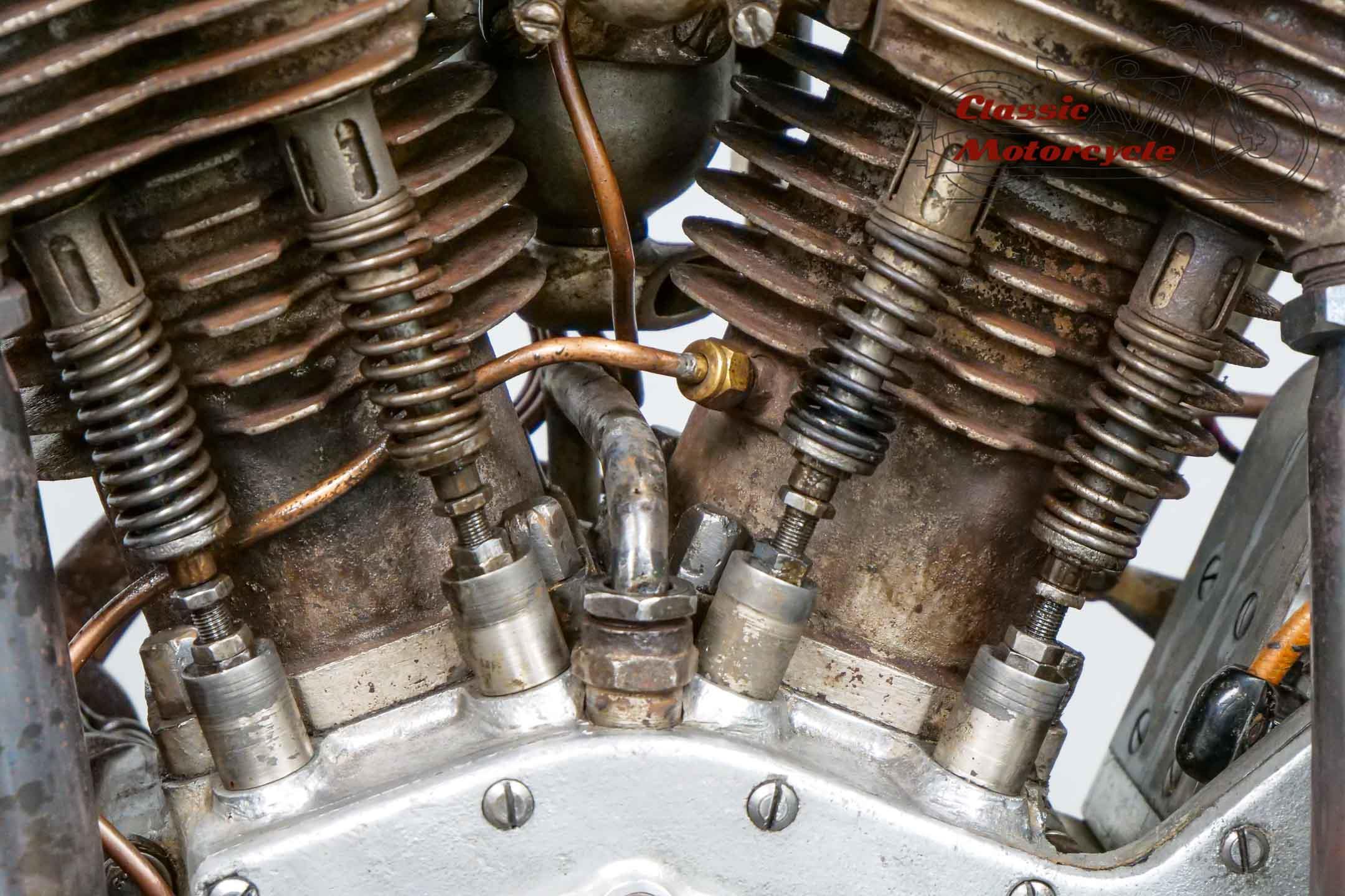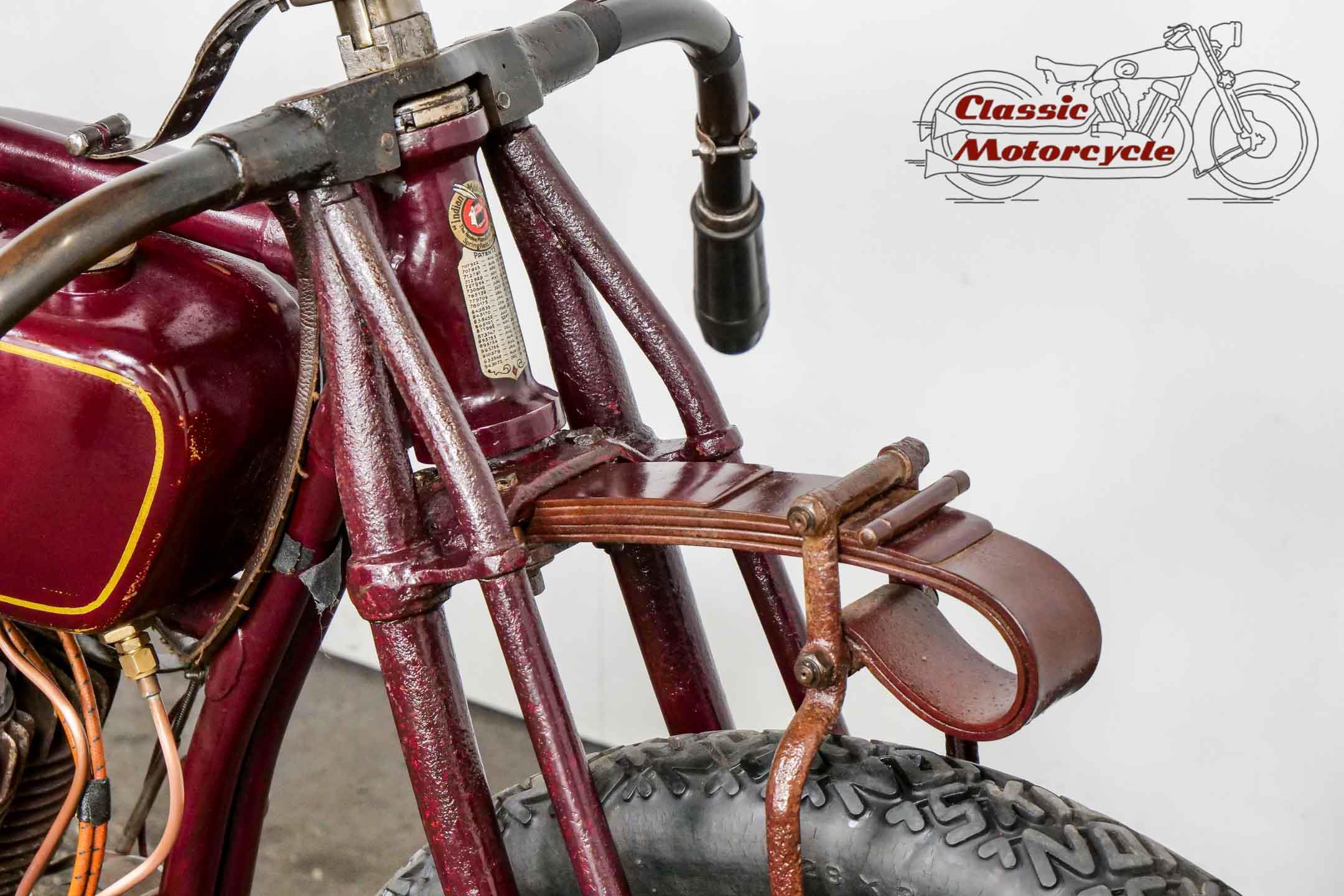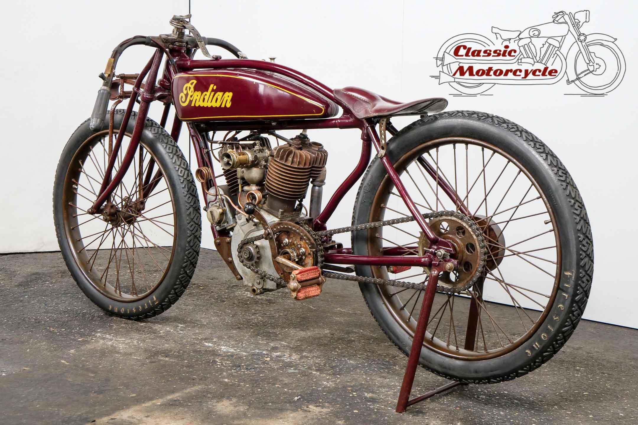 Competition between the major American motorcycle manufacturers was fierce in the 20th Century’s opening decades, a factor that greatly accelerated technological development. In Indian’s case, the need to stay ahead of rivals Excelsior and Harley-Davidson prompted the introduction of an eight-valve v-twin racer in 1911 and then in 1916 a new 1000cc flat head (sidevalve) v-twin - the Powerplus - was introduced to replace the production F-head (inlet over exhaust) type. Development of the Powerplus had been initiated after Harley-Davidson trounced Indian in the 300-mile Venice road race in the spring of 1915, chief designer Charles Gustafson suggesting that a well-designed sidevalve ought to prove good enough to beat the Harleys. The 42-degree v-twin configuration of the existing Oscar Hedstrom-designed F-head engine was retained, but with side valves and increased use of roller bearings. Gustafson’s intuition did indeed prove correct, the new 1000cc twin proving more powerful than its predecessor right from the start, hence the ‘Powerplus’ name. In September 1919 the Powerplus racer appeared with a new Harley-style frame, open at the bottom, that used the engine as a stressed member. A revised Daytona version of this frame was introduced the following year featuring top tubes and steering head lowered by an inch or two to achieve a lower saddle position. Readily recognized by its ‘S’ shaped seat tube, the Daytona frame quickly became the Indian factory racers’ favorite.