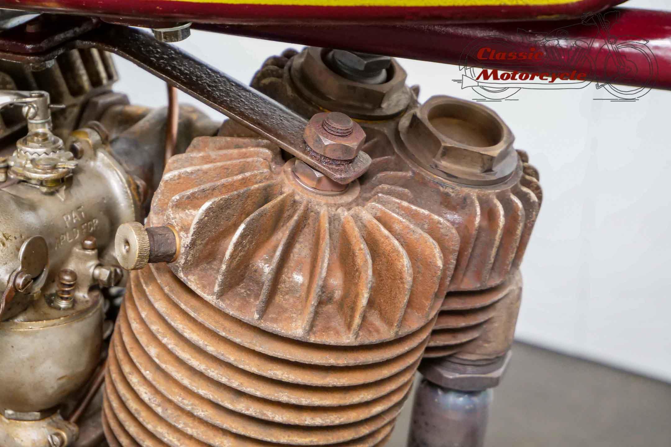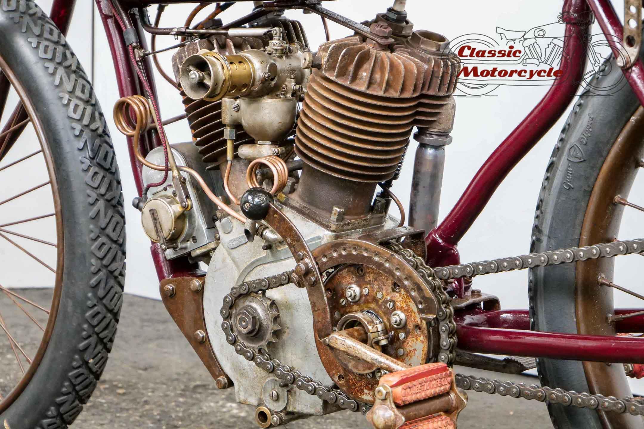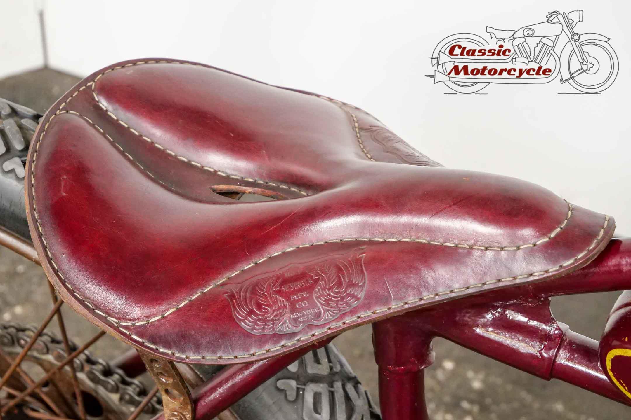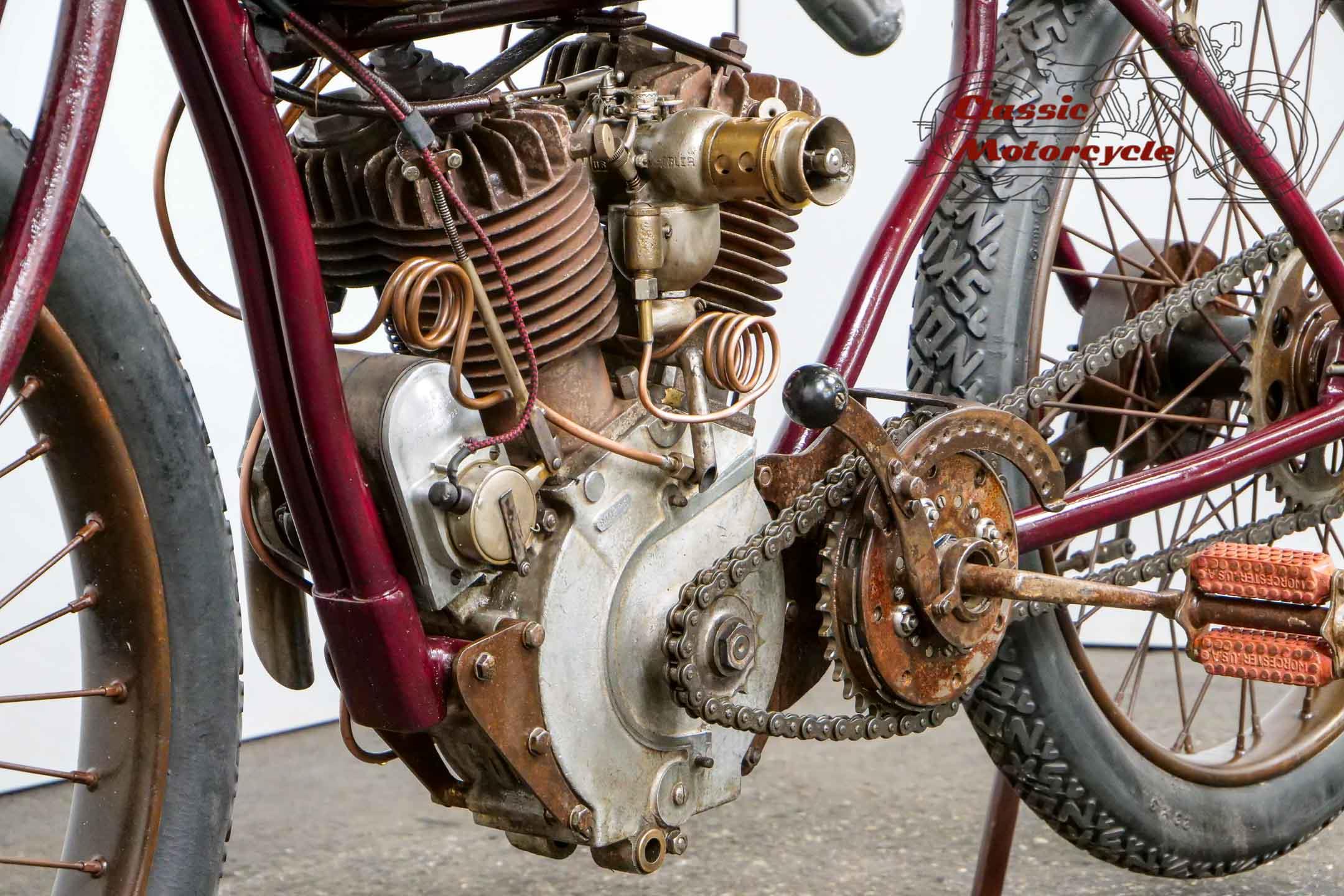 Competition between the major American motorcycle manufacturers was fierce in the 20th Century’s opening decades, a factor that greatly accelerated technological development. In Indian’s case, the need to stay ahead of rivals Excelsior and Harley-Davidson prompted the introduction of an eight-valve v-twin racer in 1911 and then in 1916 a new 1000cc flat head (sidevalve) v-twin - the Powerplus - was introduced to replace the production F-head (inlet over exhaust) type. Development of the Powerplus had been initiated after Harley-Davidson trounced Indian in the 300-mile Venice road race in the spring of 1915, chief designer Charles Gustafson suggesting that a well-designed sidevalve ought to prove good enough to beat the Harleys. The 42-degree v-twin configuration of the existing Oscar Hedstrom-designed F-head engine was retained, but with side valves and increased use of roller bearings. Gustafson’s intuition did indeed prove correct, the new 1000cc twin proving more powerful than its predecessor right from the start, hence the ‘Powerplus’ name. In September 1919 the Powerplus racer appeared with a new Harley-style frame, open at the bottom, that used the engine as a stressed member. A revised Daytona version of this frame was introduced the following year featuring top tubes and steering head lowered by an inch or two to achieve a lower saddle position. Readily recognized by its ‘S’ shaped seat tube, the Daytona frame quickly became the Indian factory racers’ favorite.