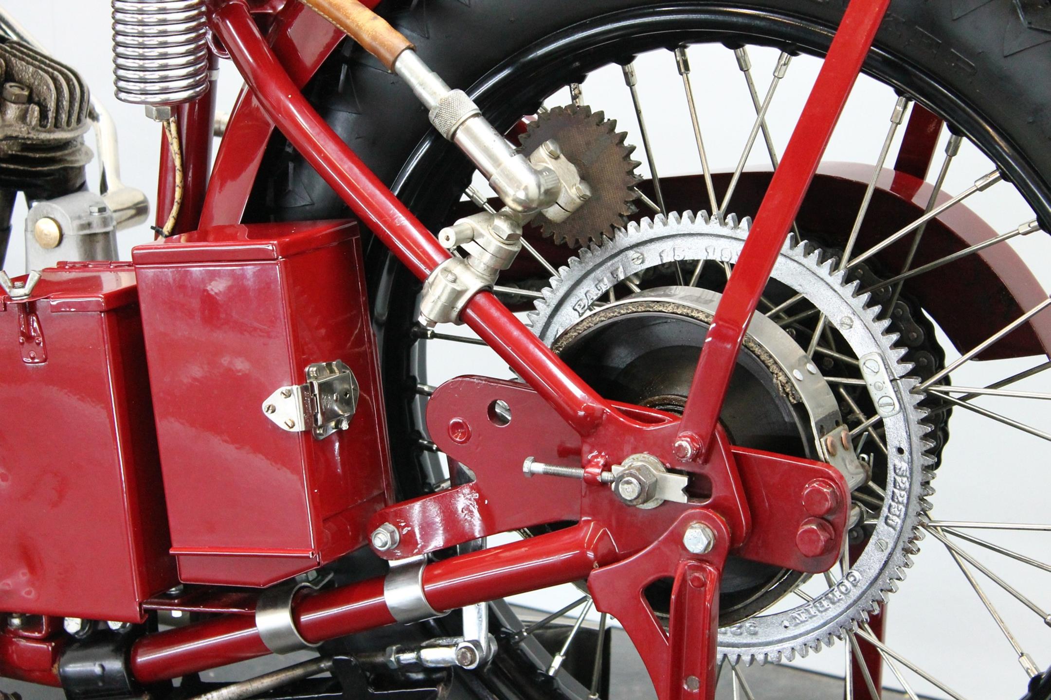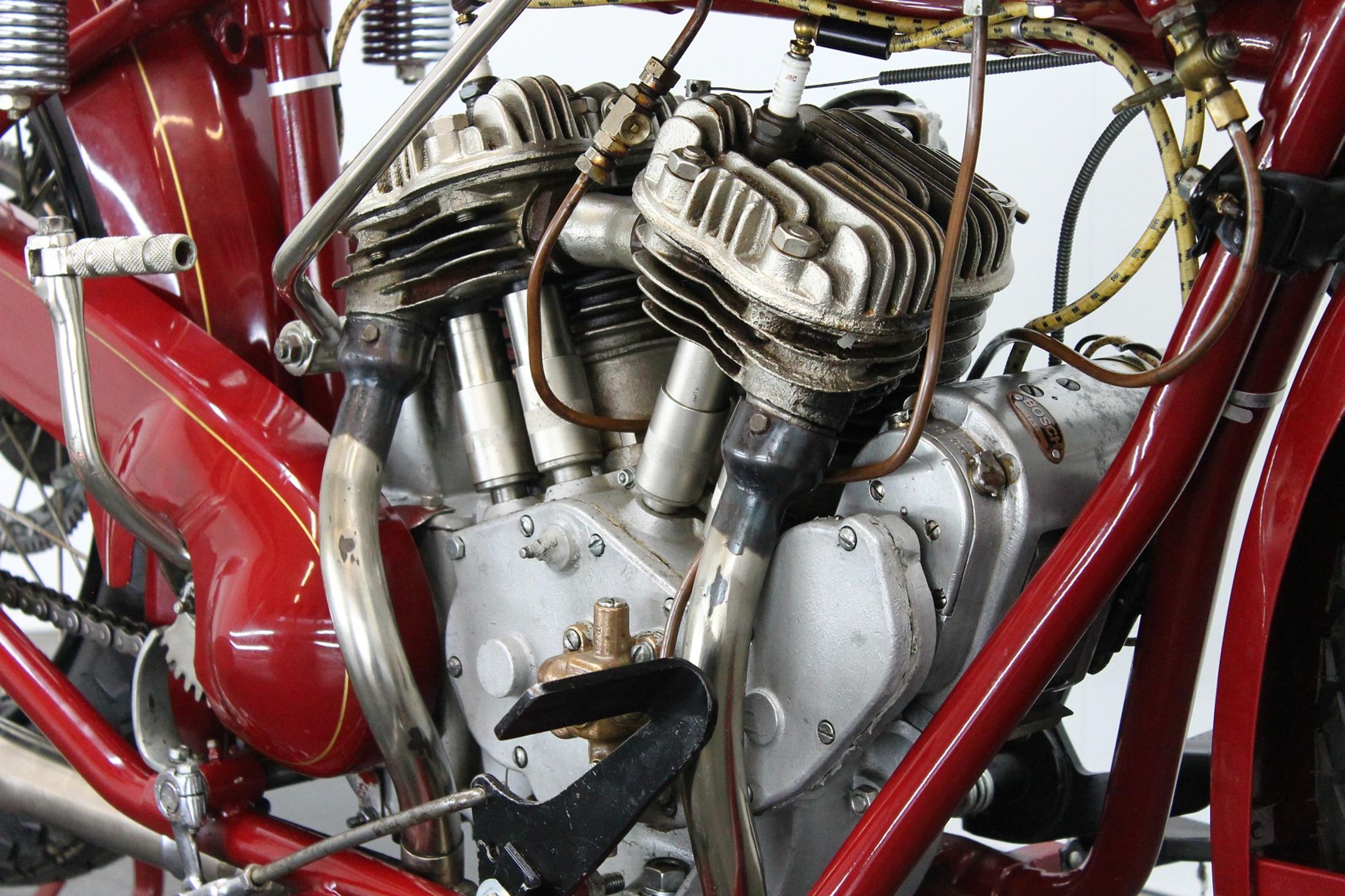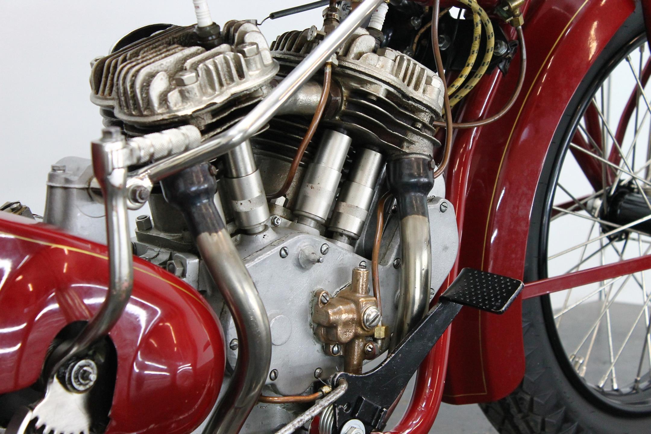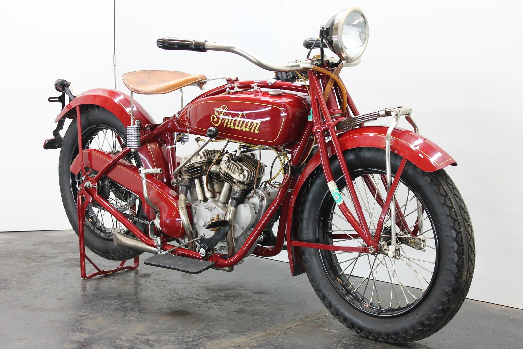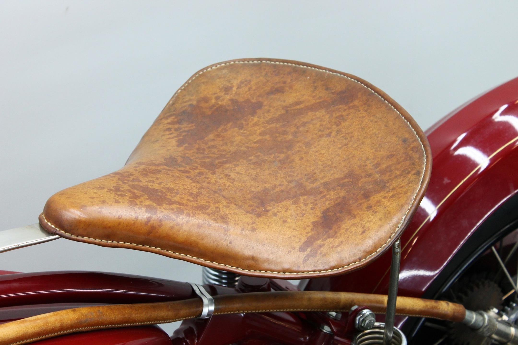 The Indian V-Twin mediated the picture of THE real American motorcycle. This 600cc Scout has been restored years ago to high standard. This bike has full equipment and is fitted with a lighting set, Schebler carburetor and a Corbin speedo. It is waiting to be driven on the road.