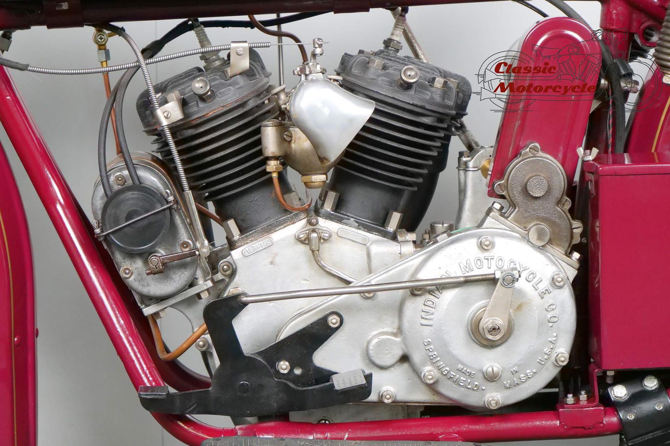 A smaller Indian v-twin model, the 37cu in (600cc) Scout, joined the existing 61cu in (1,000cc) Powerplus twin for 1920. In a somewhat unusual departure, this new smaller Indian twin featured primary drive by helical gears, rather than the more usual chain, and soon gained a reputation for indestructibility: “You can’t wear out an Indian Scout,” claimed the company’s advertising. In other respects the sidevalve v-twin motor followed the successful Powerplus formula. Detachable cylinder heads were the Scout’s big news for 1925 and two years later a 45 cu in (750cc) variant arrived, to be followed in April 1928 by the 101 Scout. The latter featured a revised 750cc engine in a new, longer-wheelbase frame, and this medium-weight sports model would prove an immense success for the Springfield firm, so much so that its replacement in 1931 by a heavier Chief-framed model was greeted with dismay. In 1932, a smaller, 30.5cu in (500cc) Junior Scout was introduced and this model - referred to as the Scout Pony from 1937 and the Thirty-Fifty from 1940 - continued in production into the war years alongside a revitalised 45cu in Sport Scout.