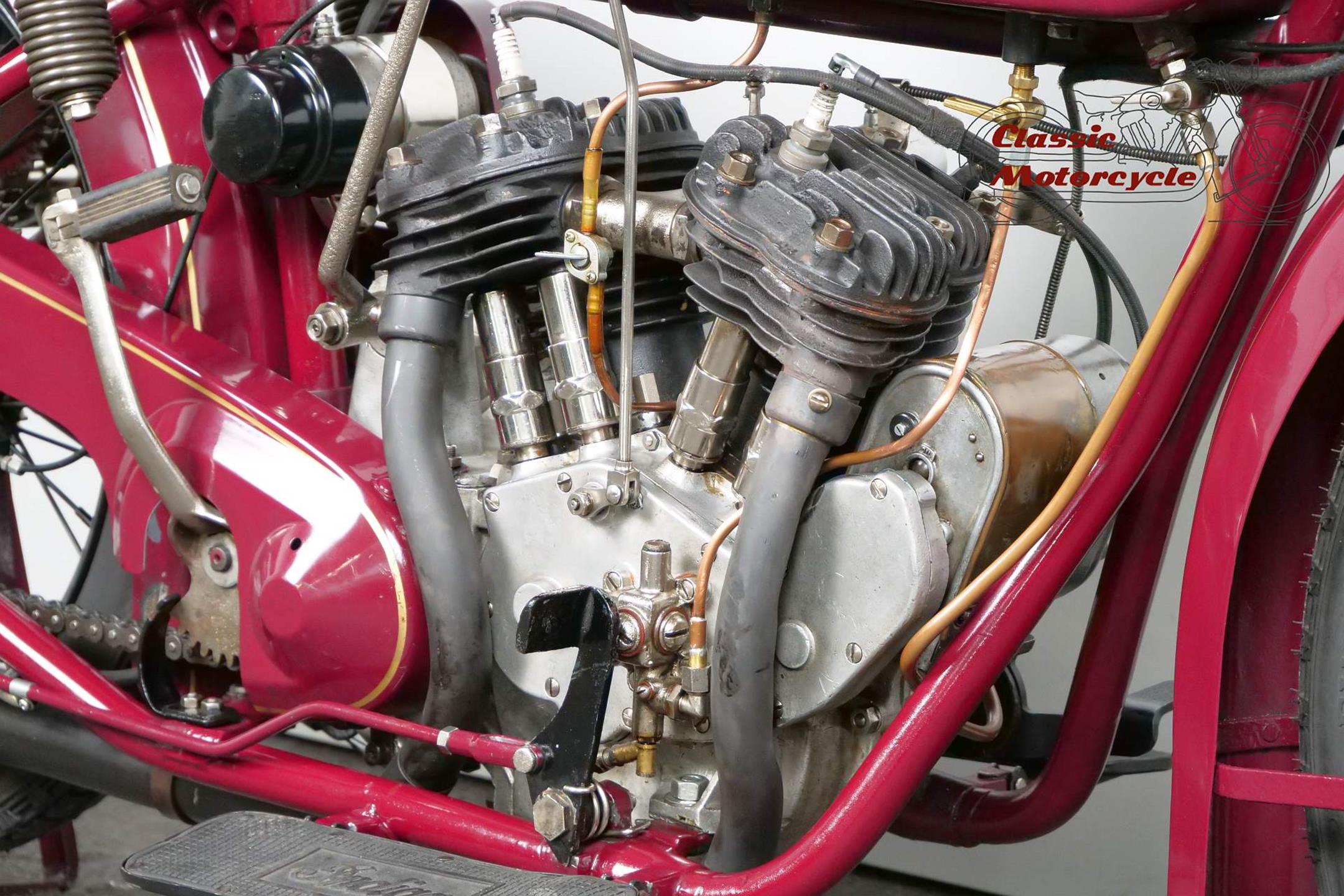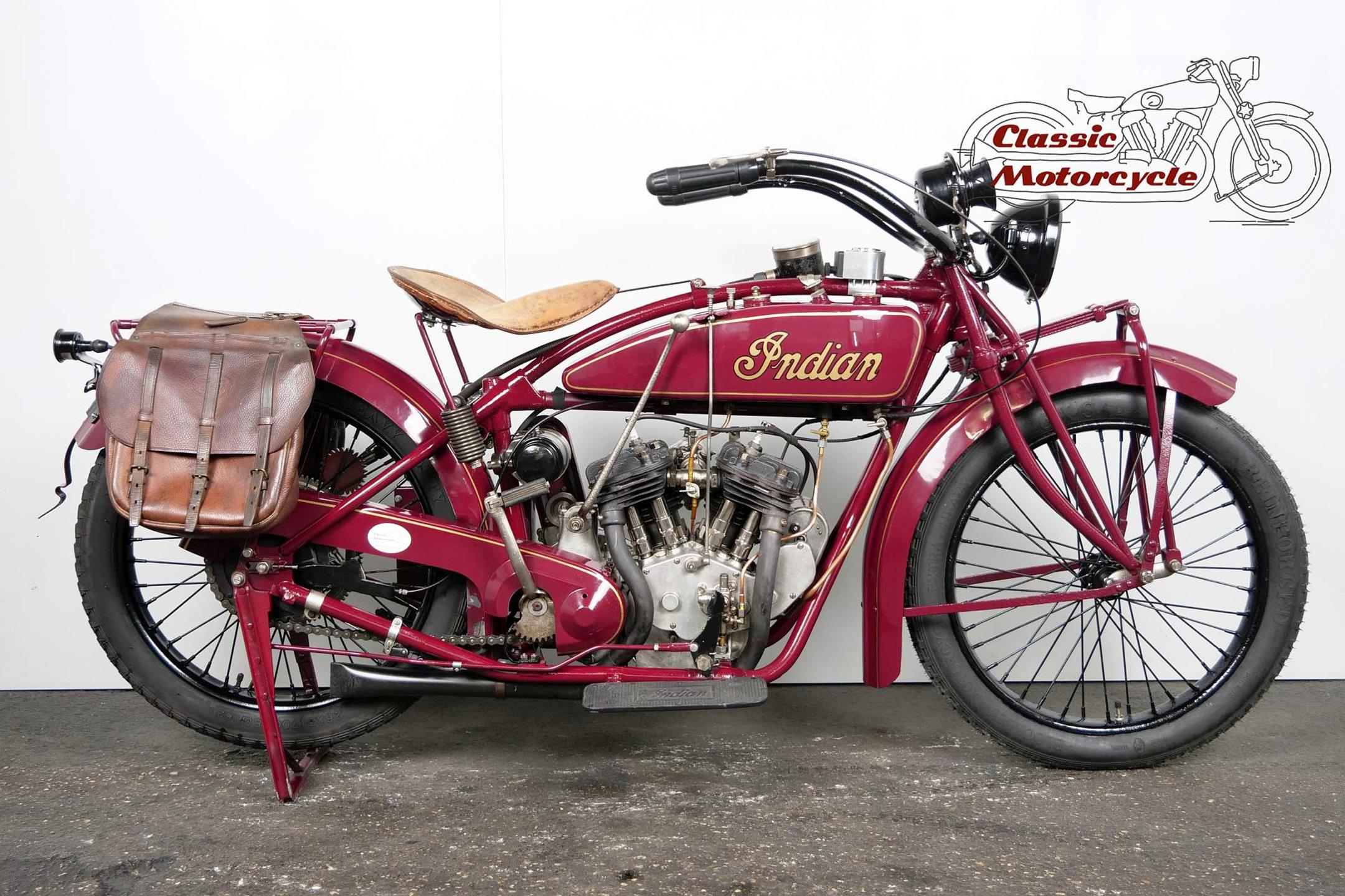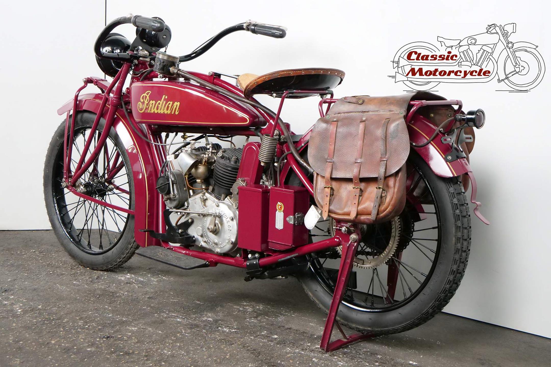 The invoices of the restoration and records of the work done on the engine and gearbox and pictures during the restoration are present. Pictures were taken before the restoration which is still present. The bike is equipped with a Schebler carburetor, lighting set, leather side bags, amp meter, Corbin speedo as well as a practical side stand. The Scout is ready to ride and will be handed over with complete Austrian papers.