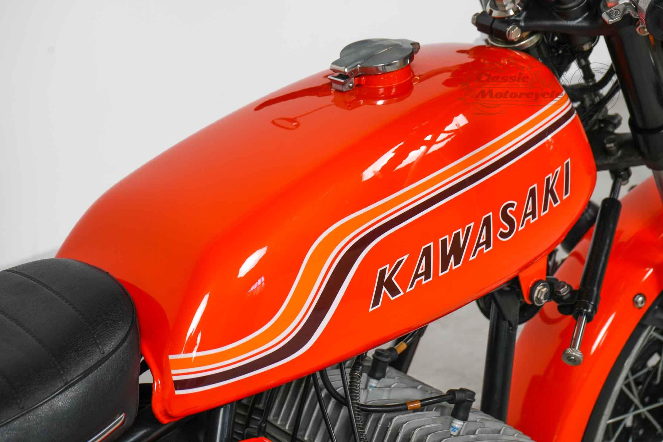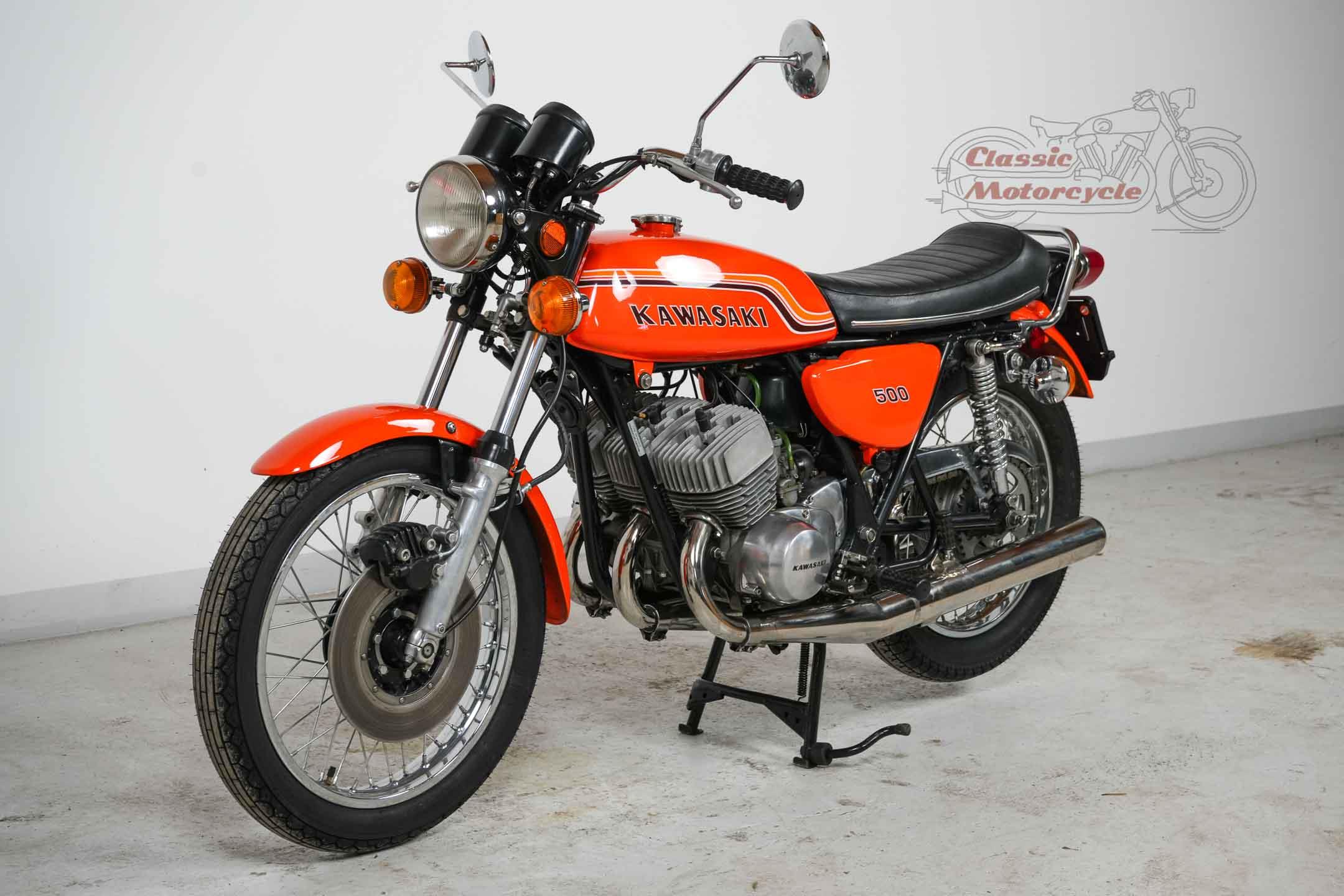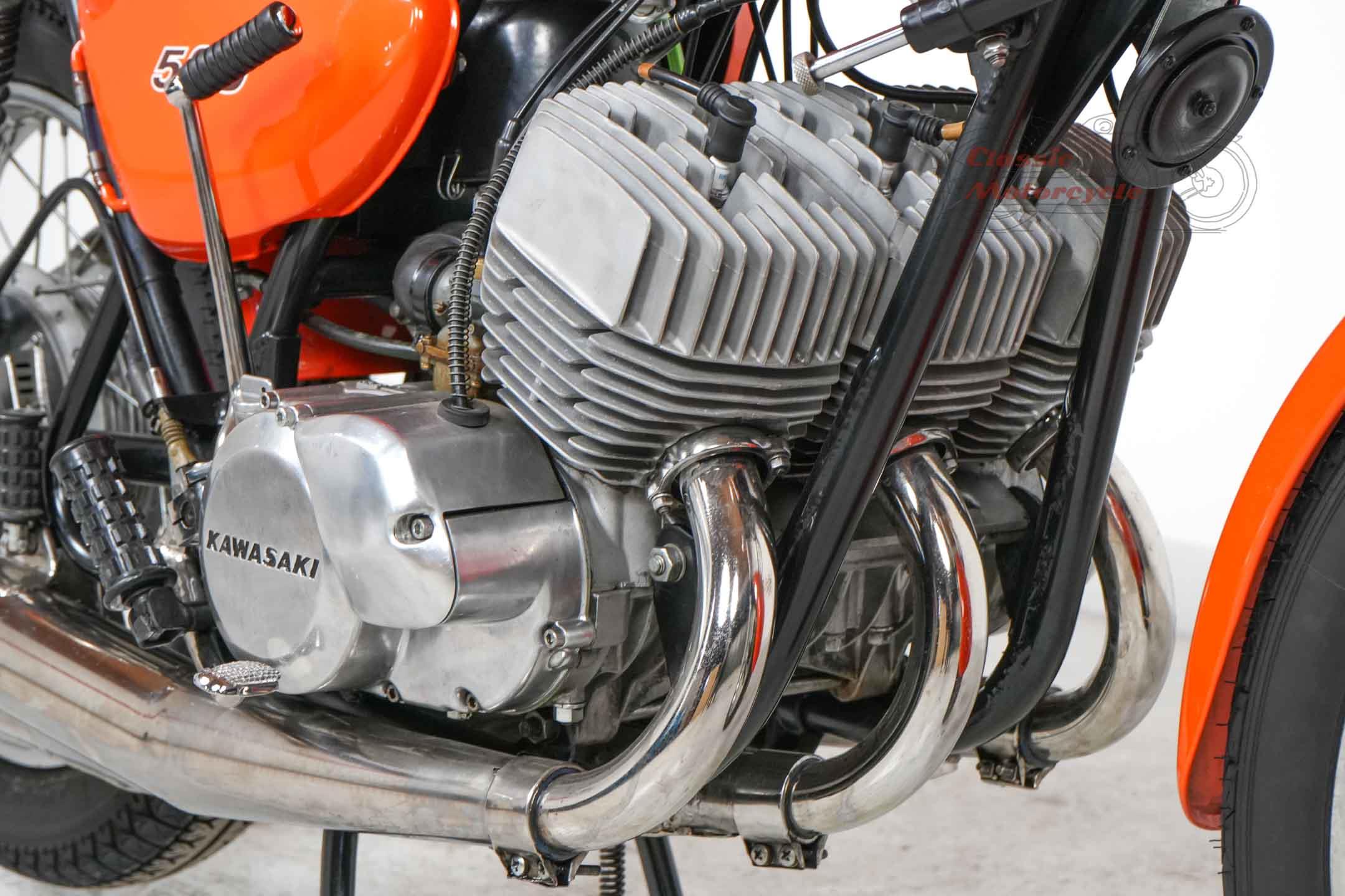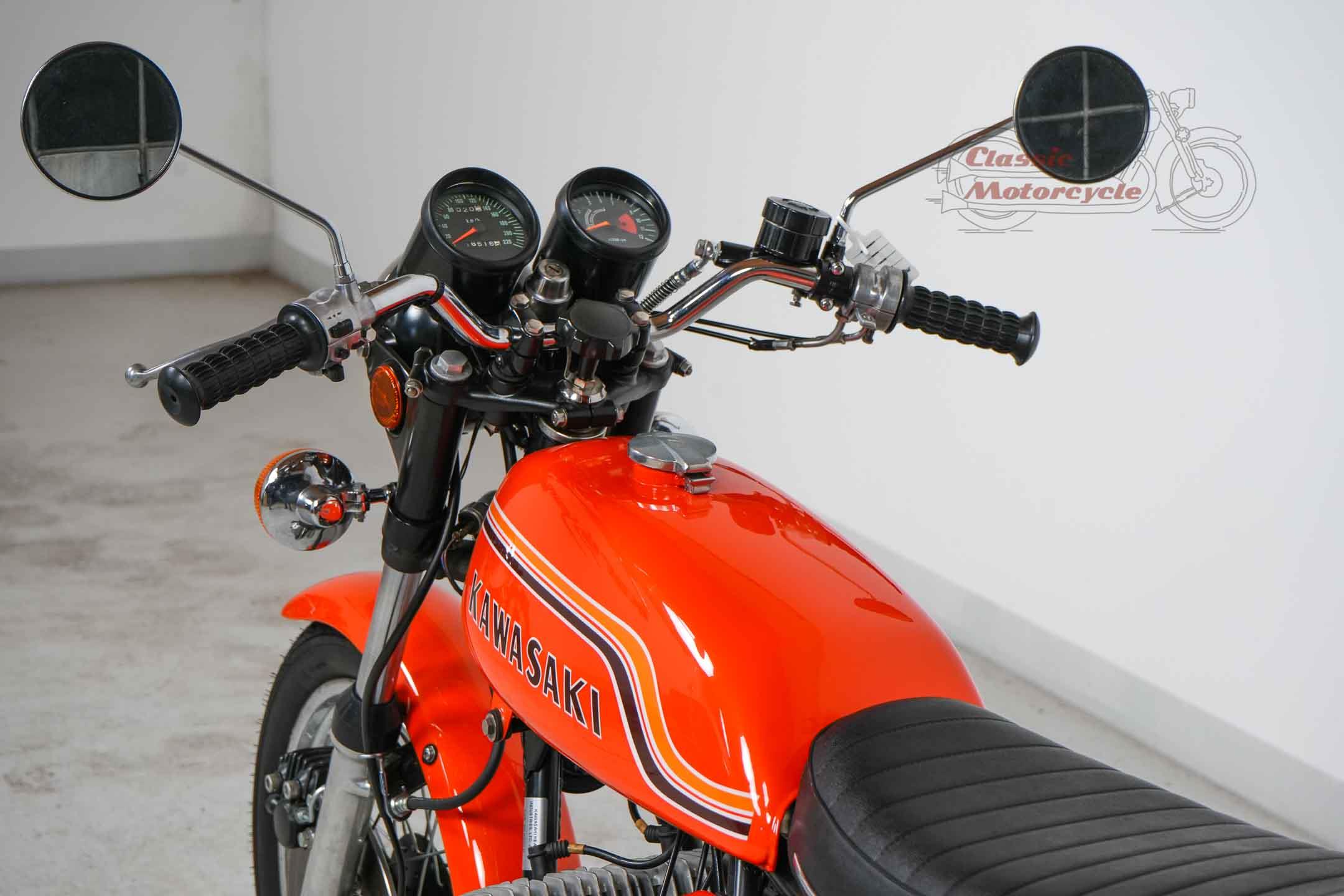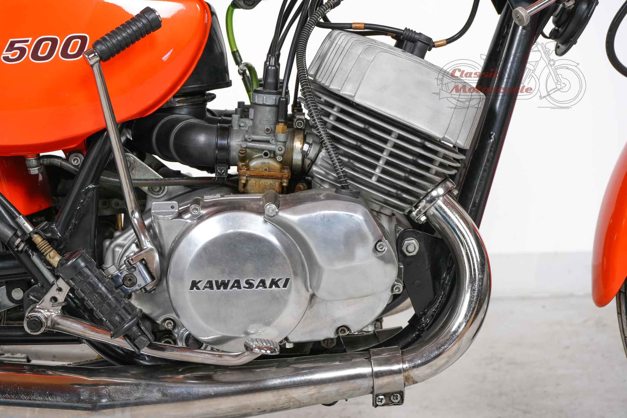 This Kawasaki comes from the Widowmaker model series. The 500cc engine produced almost 60hp with its 3 cylinders. Today these machines are sought-after collector's items. The machine is running. The carburettors should be adjusted again. It will be handed over with old invoices, operating instructions, parts list and all the paperwork from Switzerland.