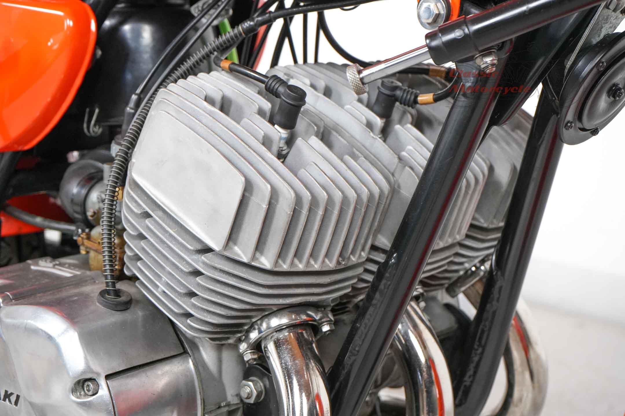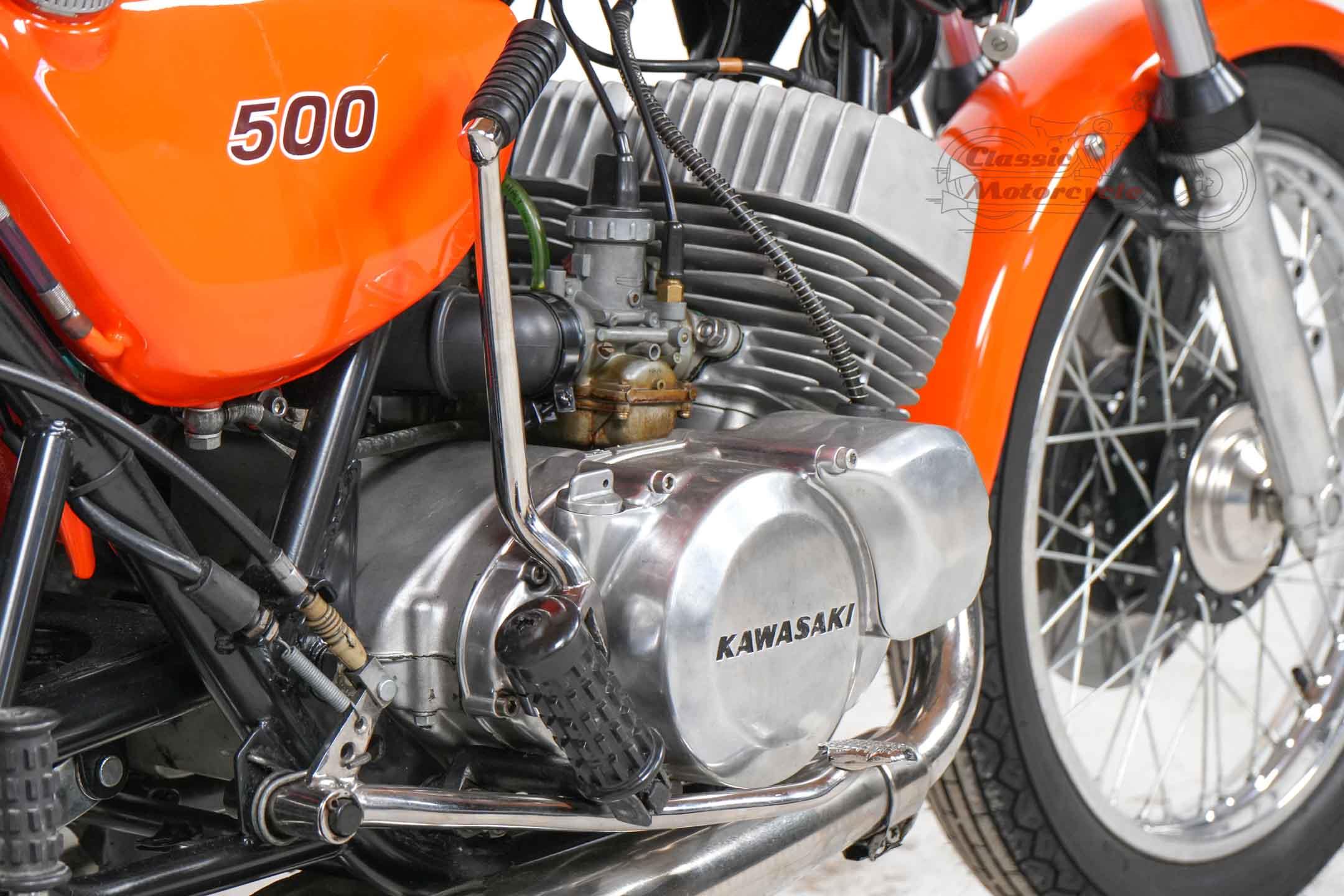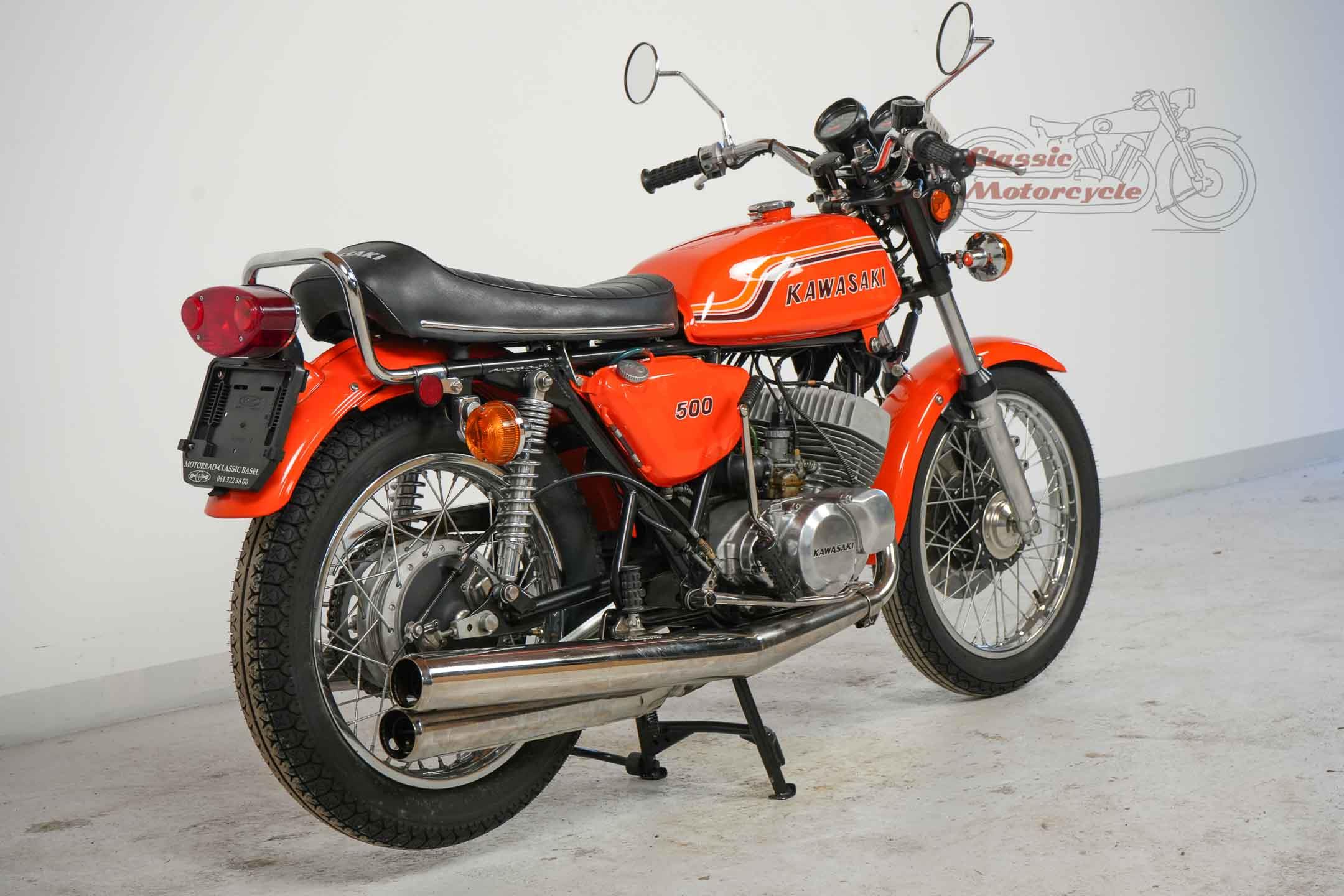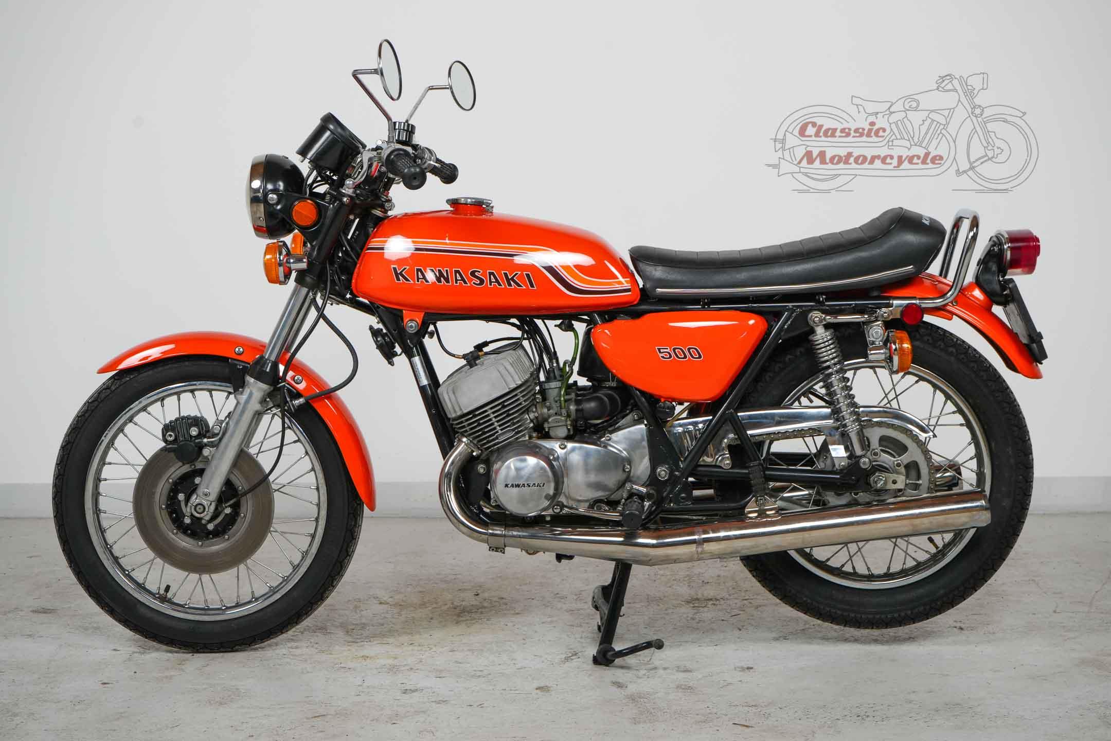 This Kawasaki comes from the Widowmaker model series. The 500cc engine produced almost 60hp with its 3 cylinders. Today these machines are sought-after collector's items. The machine is running. The carburettors should be adjusted again. It will be handed over with old invoices, operating instructions, parts list and all the paperwork from Switzerland.
