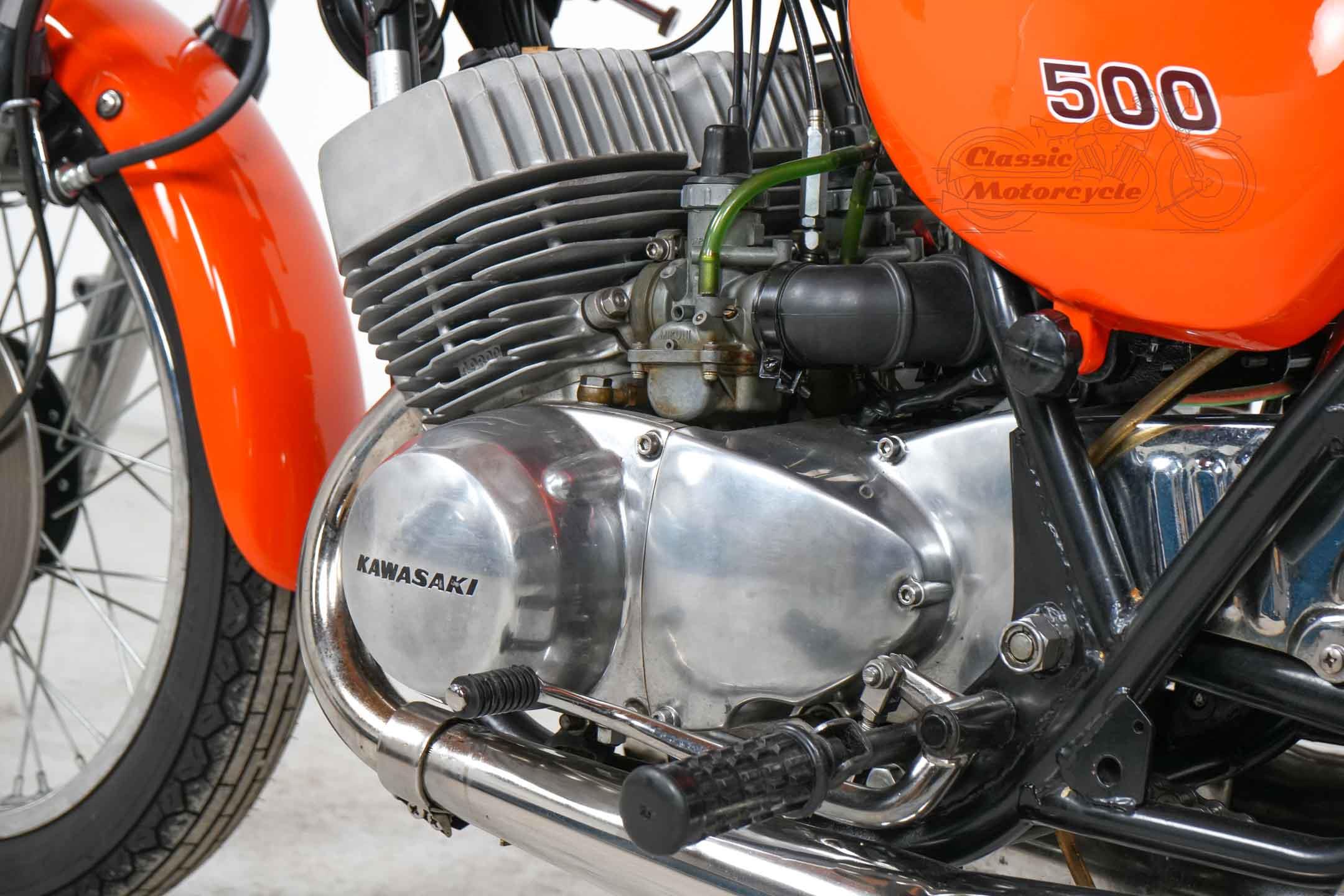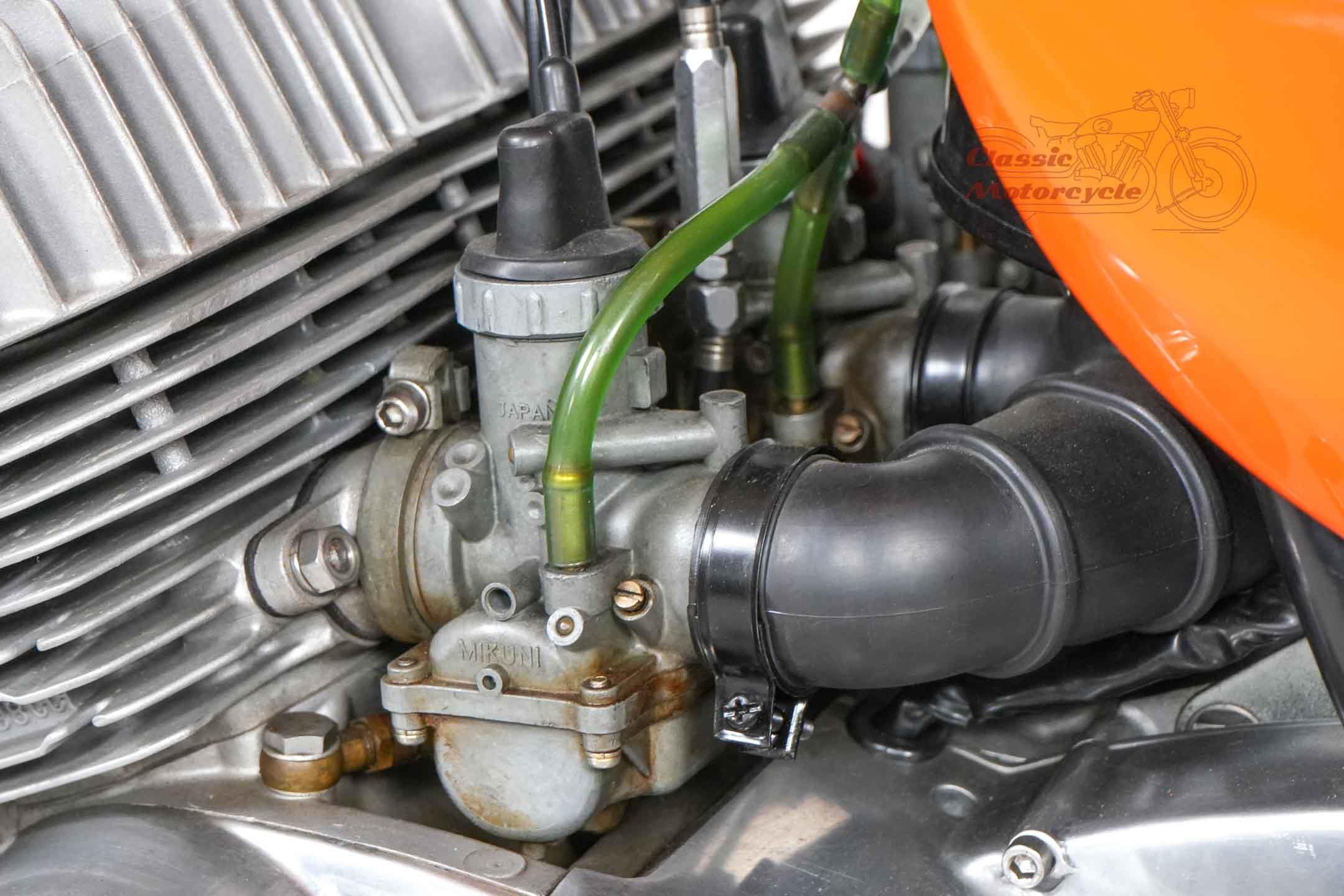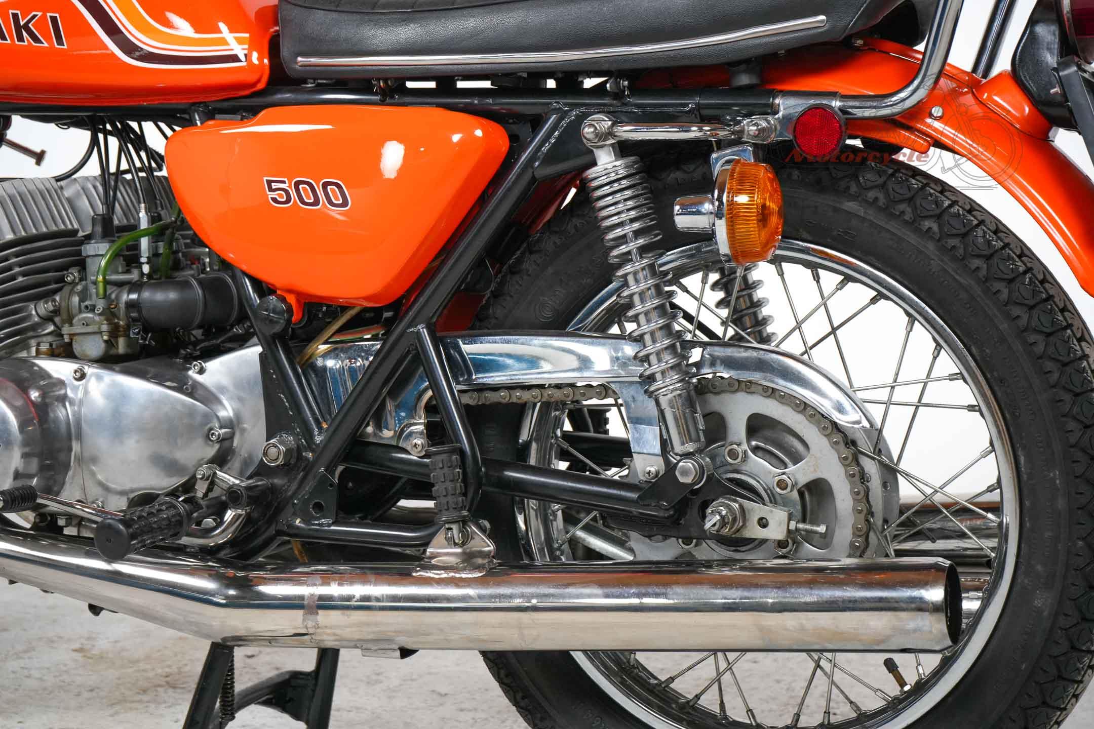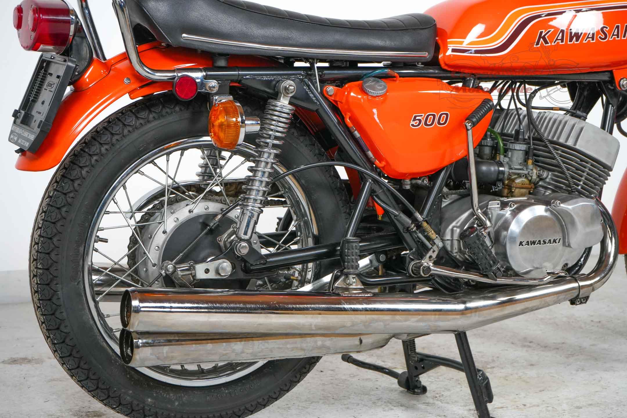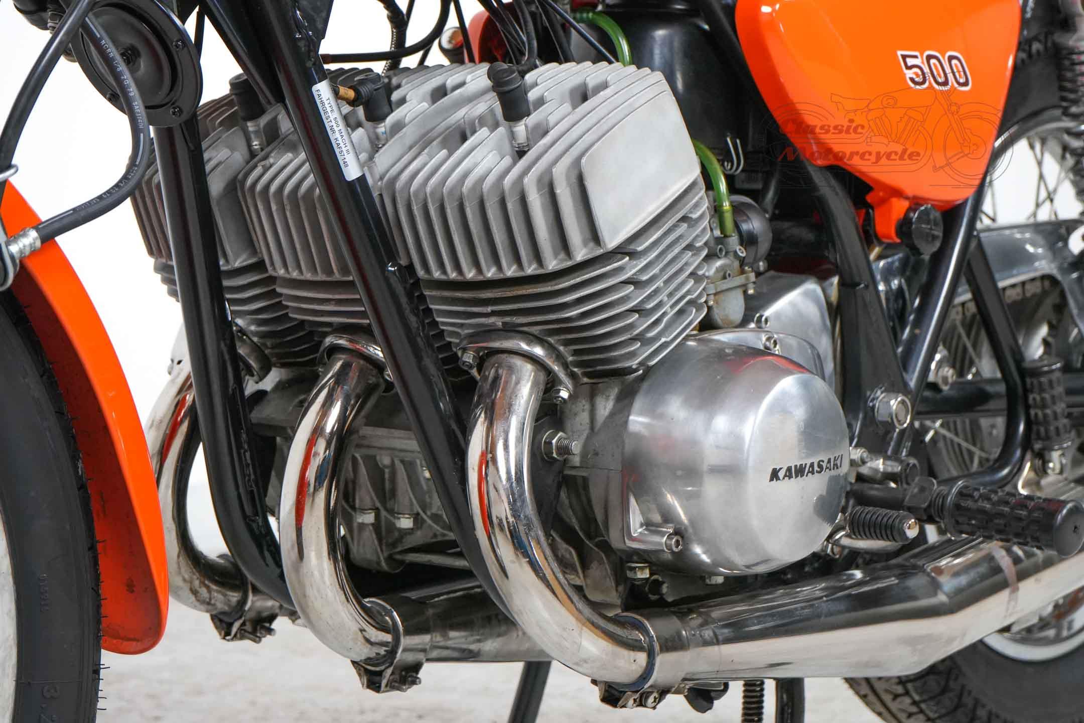 This Kawasaki comes from the Widowmaker model series. The 500cc engine produced almost 60hp with its 3 cylinders. Today these machines are sought-after collector's items. The machine is running. The carburettors should be adjusted again. It will be handed over with old invoices, operating instructions, parts list and all the paperwork from Switzerland.