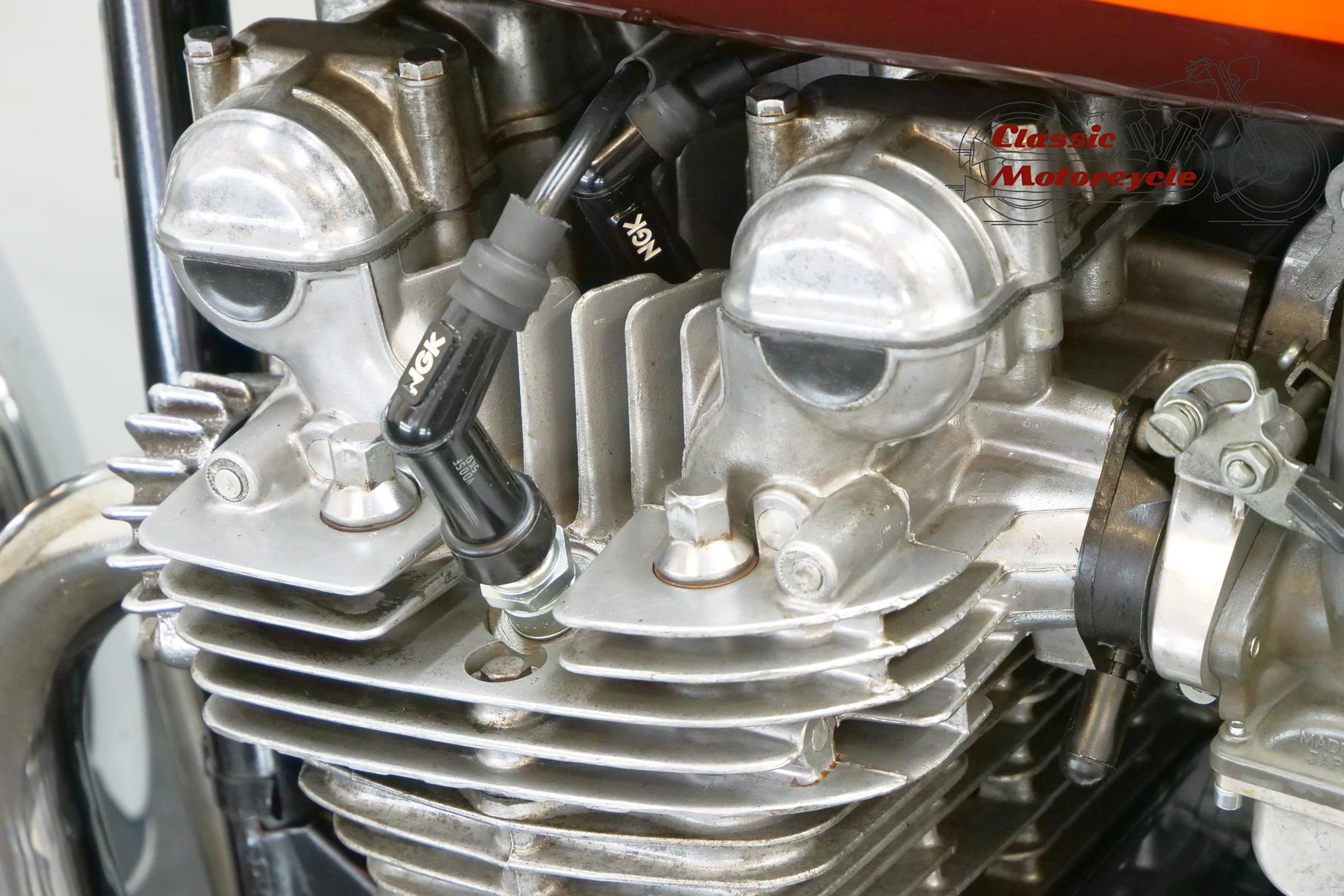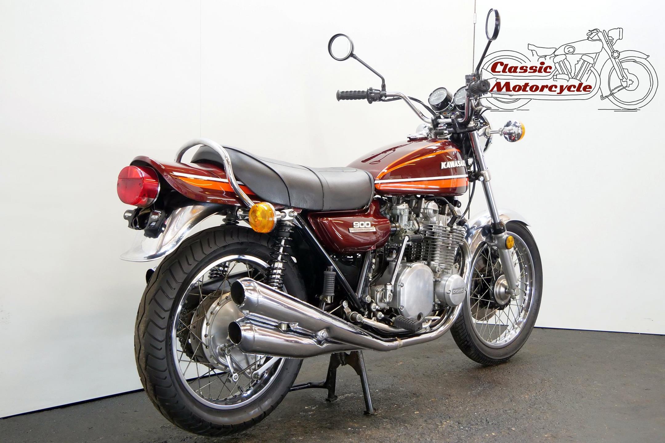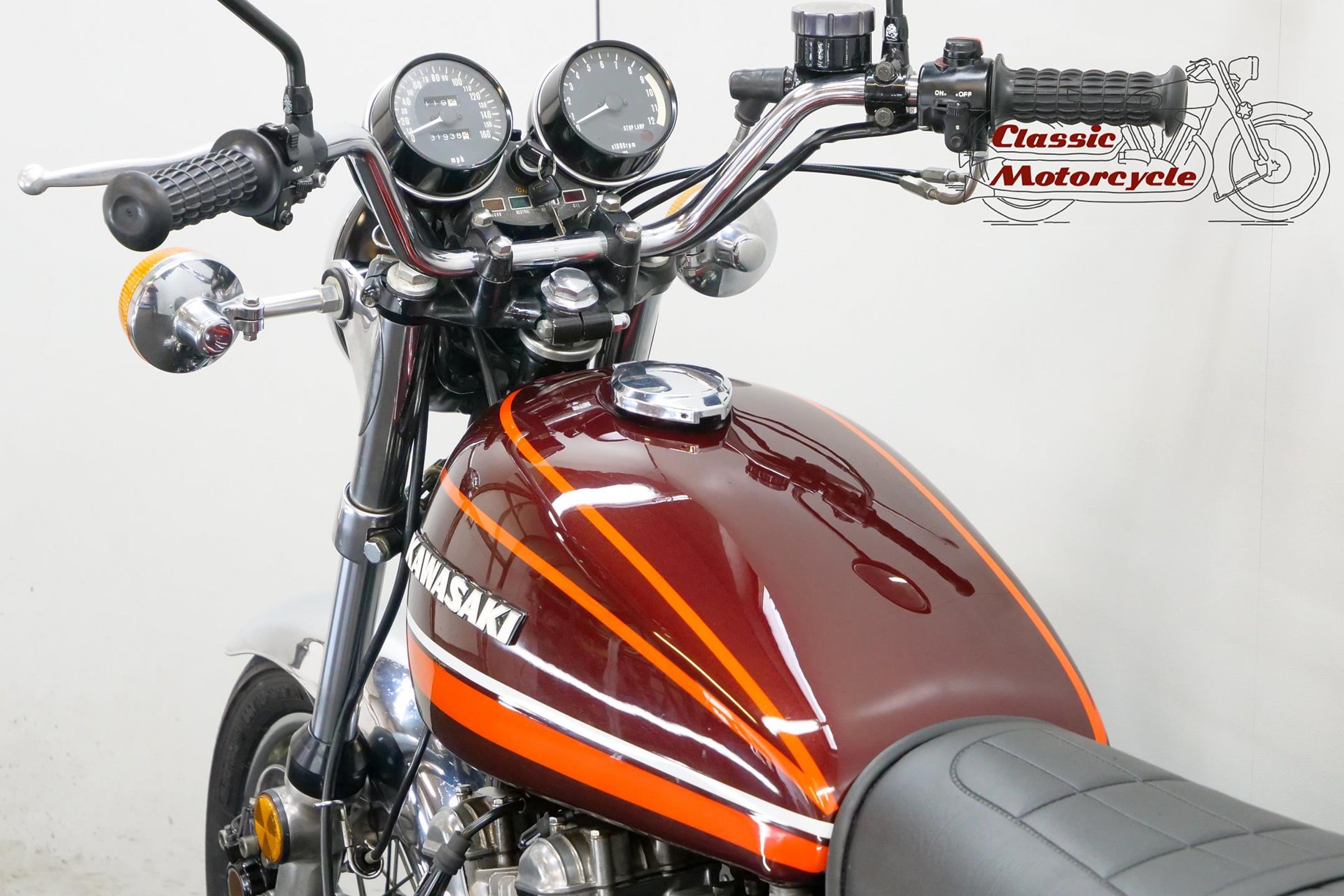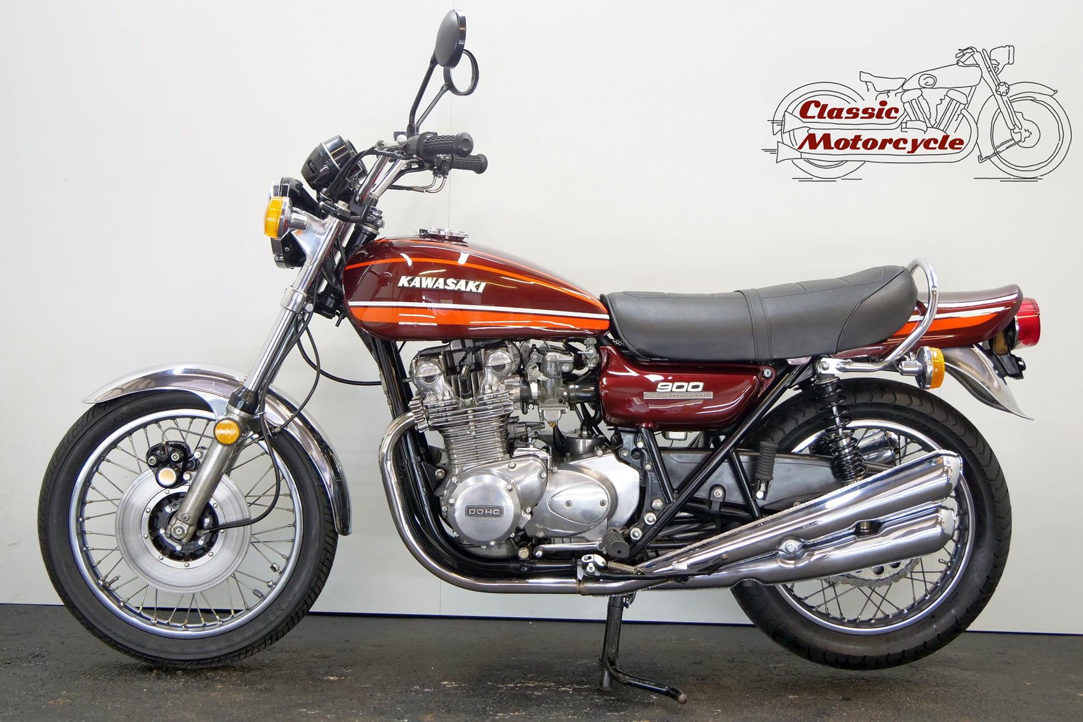 Having established its performance credentials with the Mach III two-stroke triple, Kawasaki went on to ace the opposition with the awe-inspiring Z1. The model had been planned in 750cc form in the late 1960s but was beaten to the showroom by Honda's CB750. Kawasaki's proposed superbike already had two overhead camshafts to the Honda's one, so its designers redrew the motor as a '900'. Launched in 1972 at the Cologne Show, the big 'Z' set new road-bike performance standards, at least as far as straight-line speed was concerned. With 82bhp on tap, top speed was around 130mph, but if the rider used all that power on twisty roads then things could get exciting. As a fast tourer though, the Z1 excelled. Mildly revised year by year, the model progressed through the Z1A and Z1B versions and was renamed 'Z900' for 1976. Introduced in 1974, the Z1A featured different tank livery and a plain alloy finish for the engine's upper half, the Z1's having been black, together with minor mechanical alterations. The Z1B, introduced in 1975, featured different tank livery and the plain alloy finish for the upper engine first seen on the Z1A, together with minor mechanical alterations including the adoption of a sealed drive chain and the deletion of the chain oiler. In 1976 the model was mildly revised yet again and renamed 'Z900', gaining twin front discs and 26mm carburettors among other more minor changes. Few bikes from Japan have had as much of an impact on the motorcycling world as Kawasaki's original 'Big Zed', and today all versions of this landmark model are highly sought after.