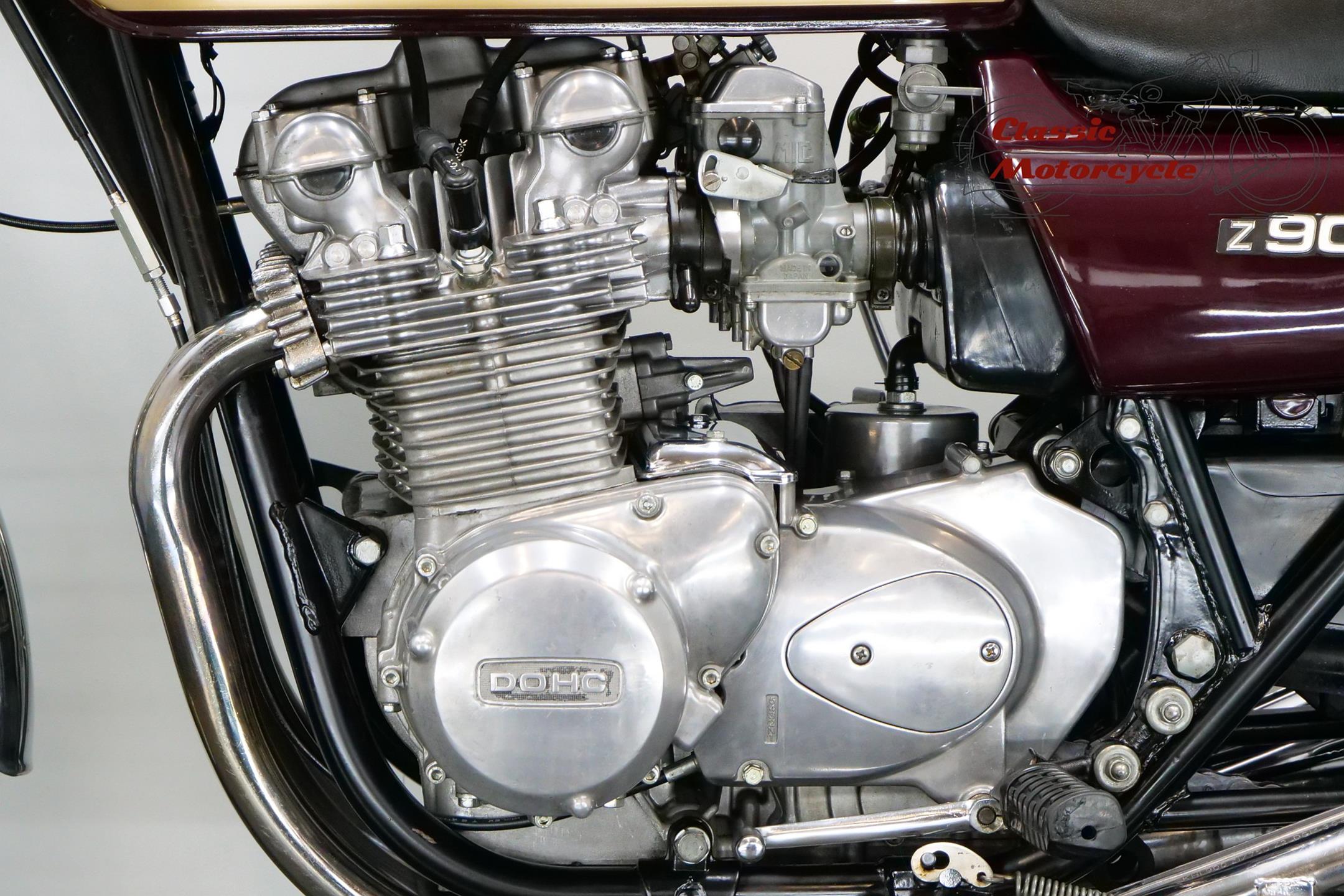 Introduced in 1974, the Z1A featured different tank livery and a plain alloy finish for the engine's upper half, the Z1's having been black, together with minor mechanical alterations. The Z1B, introduced in 1975, featured different tank livery and the plain alloy finish for the upper engine first seen on the Z1A, together with minor mechanical alterations including the adoption of a sealed drive chain and the deletion of the chain oiler. In 1976 the model was mildly revised yet again and renamed 'Z900', gaining twin front discs and 26mm carburettors among other more minor changes. Few bikes from Japan have had as much of an impact on the motorcycling world as Kawasaki's original 'Big Zed', and today all versions of this landmark model are highly sought after.
