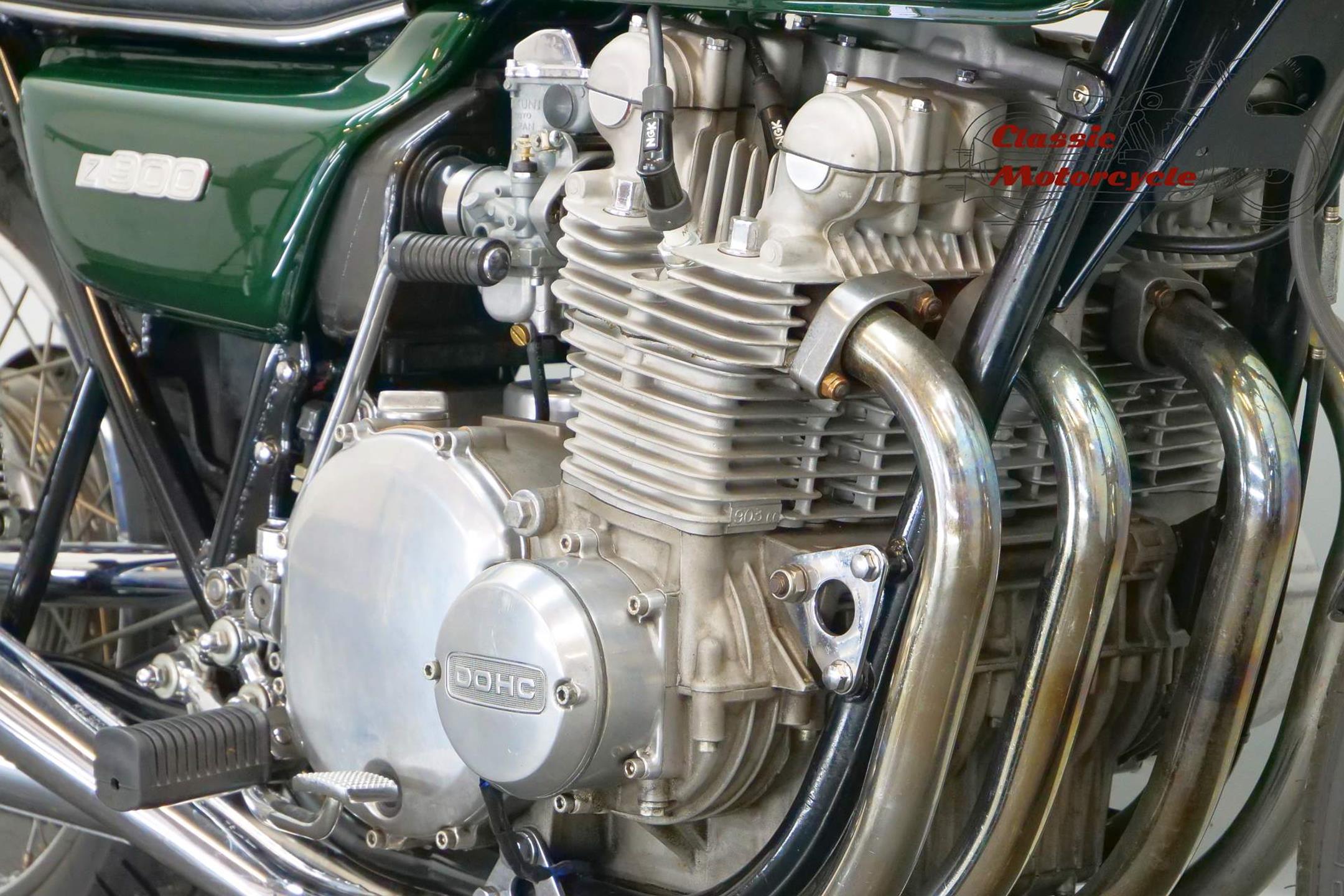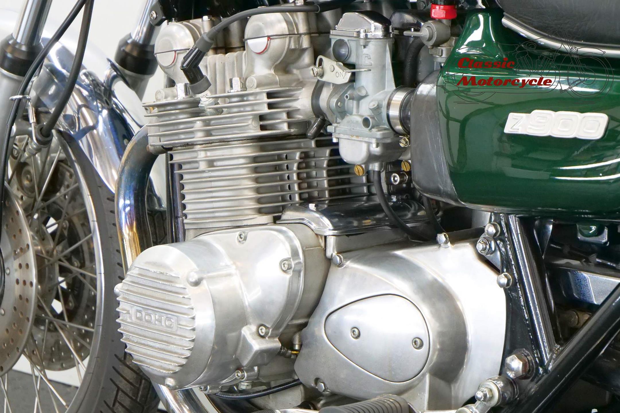 Having established its performance credentials with the Mach III two-stroke triple, Kawasaki went on to ace the opposition with the awe-inspiring Z1. The model had been planned in 750cc form in the late 1960s but was beaten to the showroom by Honda's CB750. Kawasaki's proposed superbike already had two overhead camshafts to the Honda's one, so its designers redrew the motor as a '900'. Launched in 1972 at the Cologne Show, the big 'Z' set new road-bike performance standards, at least as far as straight-line speed was concerned. With 82bhp on tap, top speed was around 130mph, but if the rider used all that power on twisty roads then things could get exciting. As a fast tourer though, the Z1 excelled. Mildly revised year by year, the model progressed through the Z1A and Z1B versions and was renamed 'Z900' for 1976. Introduced in 1974, the Z1A featured different tank livery and a plain alloy finish for the engine's upper half, the Z1's having been black, together with minor mechanical alterations. The Z1B, introduced in 1975, featured different tank livery and the plain alloy finish for the upper engine first seen on the Z1A, together with minor mechanical alterations including the adoption of a sealed drive chain and the deletion of the chain oiler. In 1976 the model was mildly revised yet again and renamed 'Z900', gaining twin front discs and 26mm carburettors among other more minor changes. Few bikes from Japan have had as much of an impact on the motorcycling world as Kawasaki's original 'Big Zed', and today all versions of this landmark model are highly sought after.