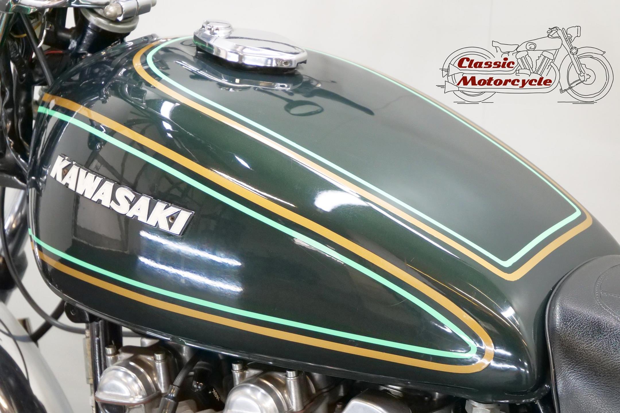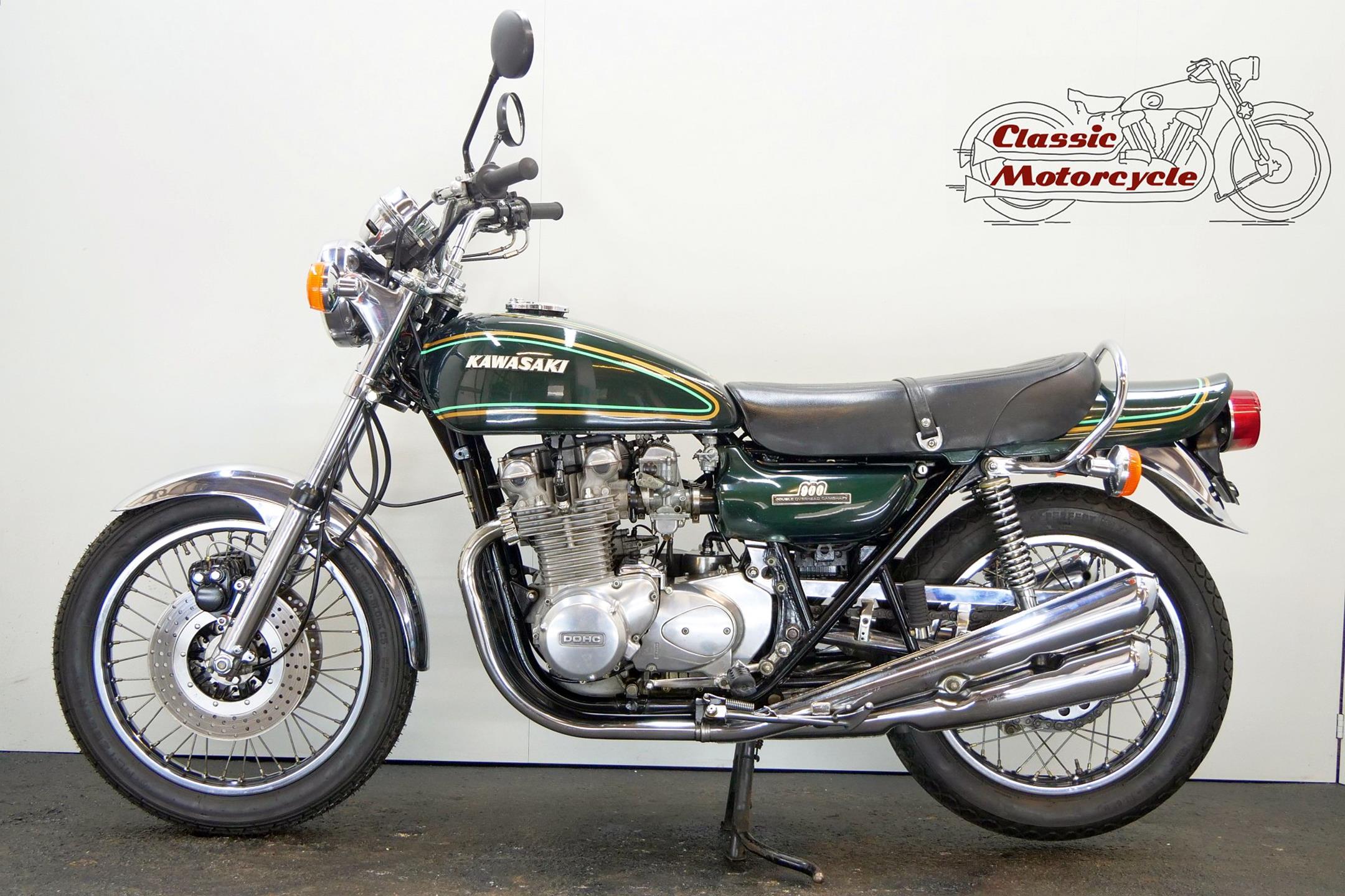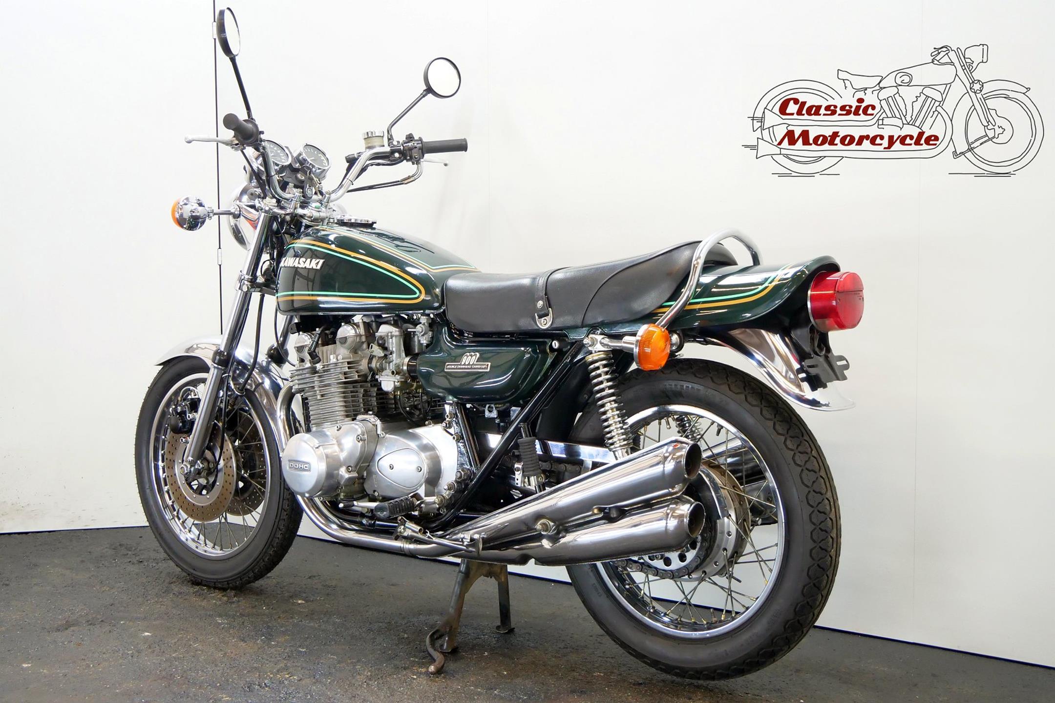 Having established its performance credentials with the Mach III two-stroke triple, Kawasaki went on to ace the opposition with the awe-inspiring Z1. The model had been planned in 750cc form in the late 1960s but was beaten to the showroom by Honda's CB750. Kawasaki's proposed superbike already had two overhead camshafts to the Honda's one, so its designers redrew the motor as a '900'. Launched in 1972 at the Cologne Show, the big 'Z' set new road-bike performance standards, at least as far as straight-line speed was concerned. With 82bhp on tap, top speed was around 130mph, but if the rider used all that power on twisty roads then things could get exciting. As a fast tourer though, the Z1 excelled. Mildly revised year by year, the model progressed through the Z1A and Z1B versions and was renamed 'Z900' for 1976. Introduced in 1974, the Z1A featured different tank livery and a plain alloy finish for the engine's upper half, the Z1's having been black, together with minor mechanical alterations. The Z1B, introduced in 1975, featured different tank livery and the plain alloy finish for the upper engine first seen on the Z1A, together with minor mechanical alterations including the adoption of a sealed drive chain and the deletion of the chain oiler. In 1976 the model was mildly revised yet again and renamed 'Z900', gaining twin front discs and 26mm carburettors among other more minor changes. Few bikes from Japan have had as much of an impact on the motorcycling world as Kawasaki's original 'Big Zed', and today all versions of this landmark model are highly sought after.