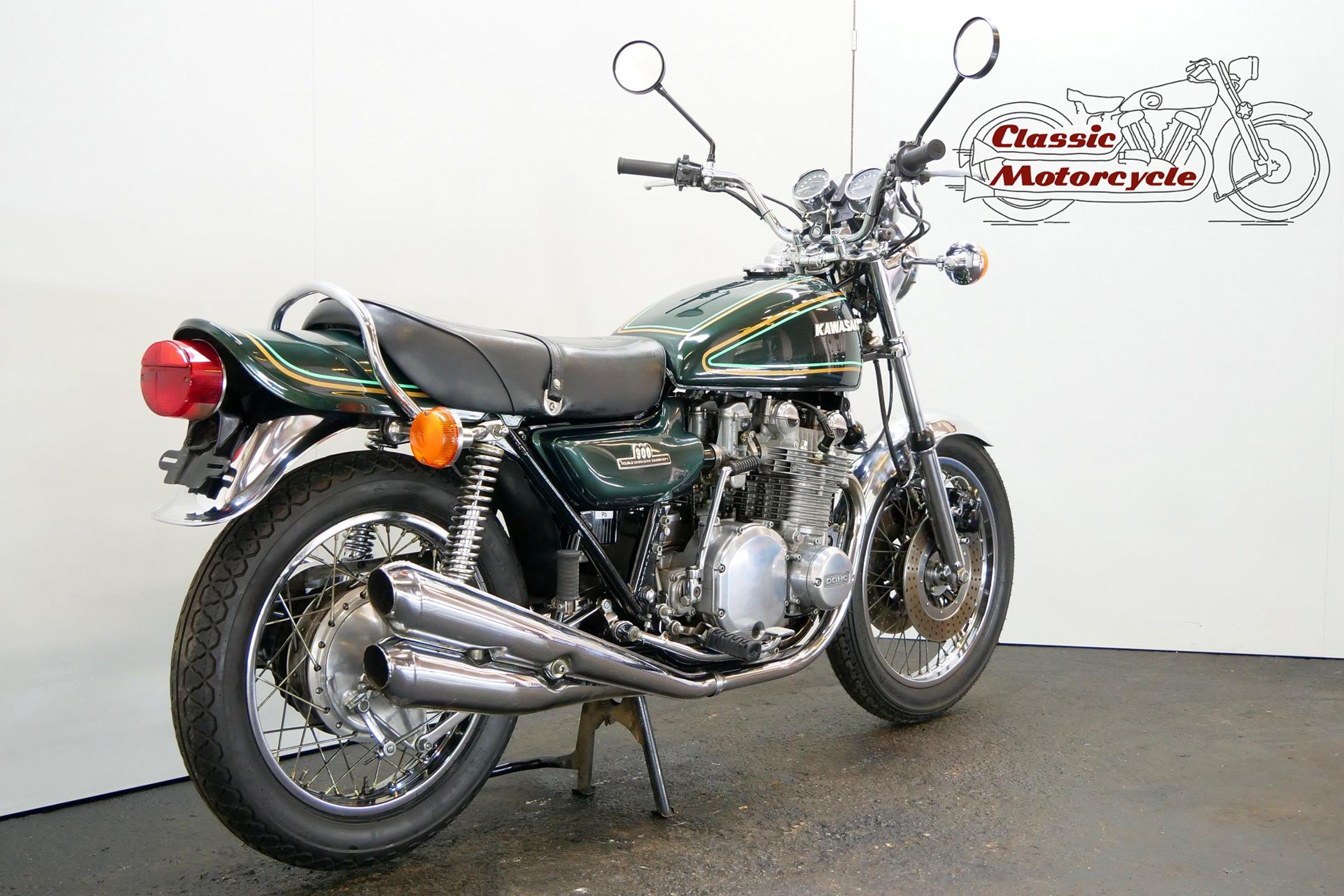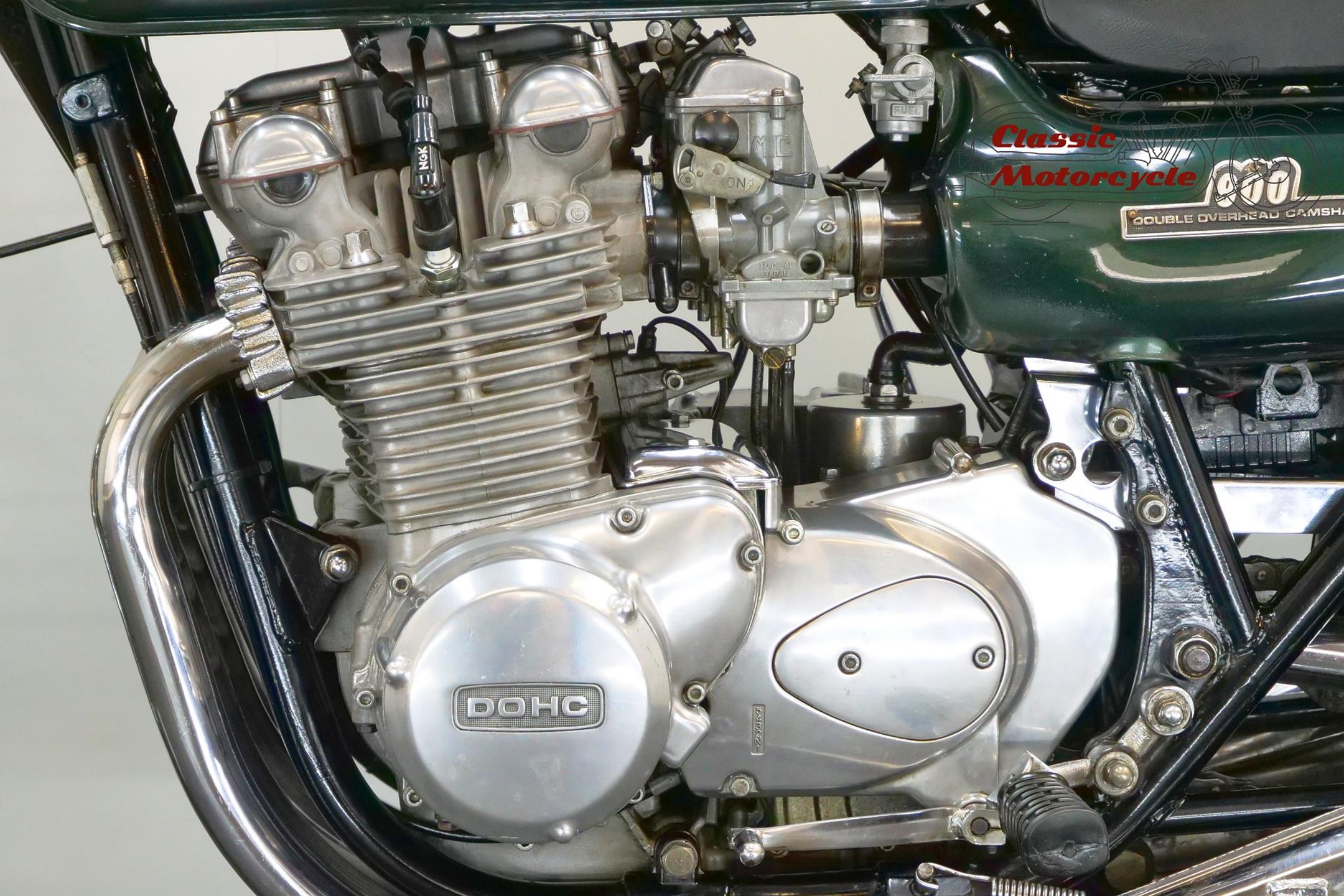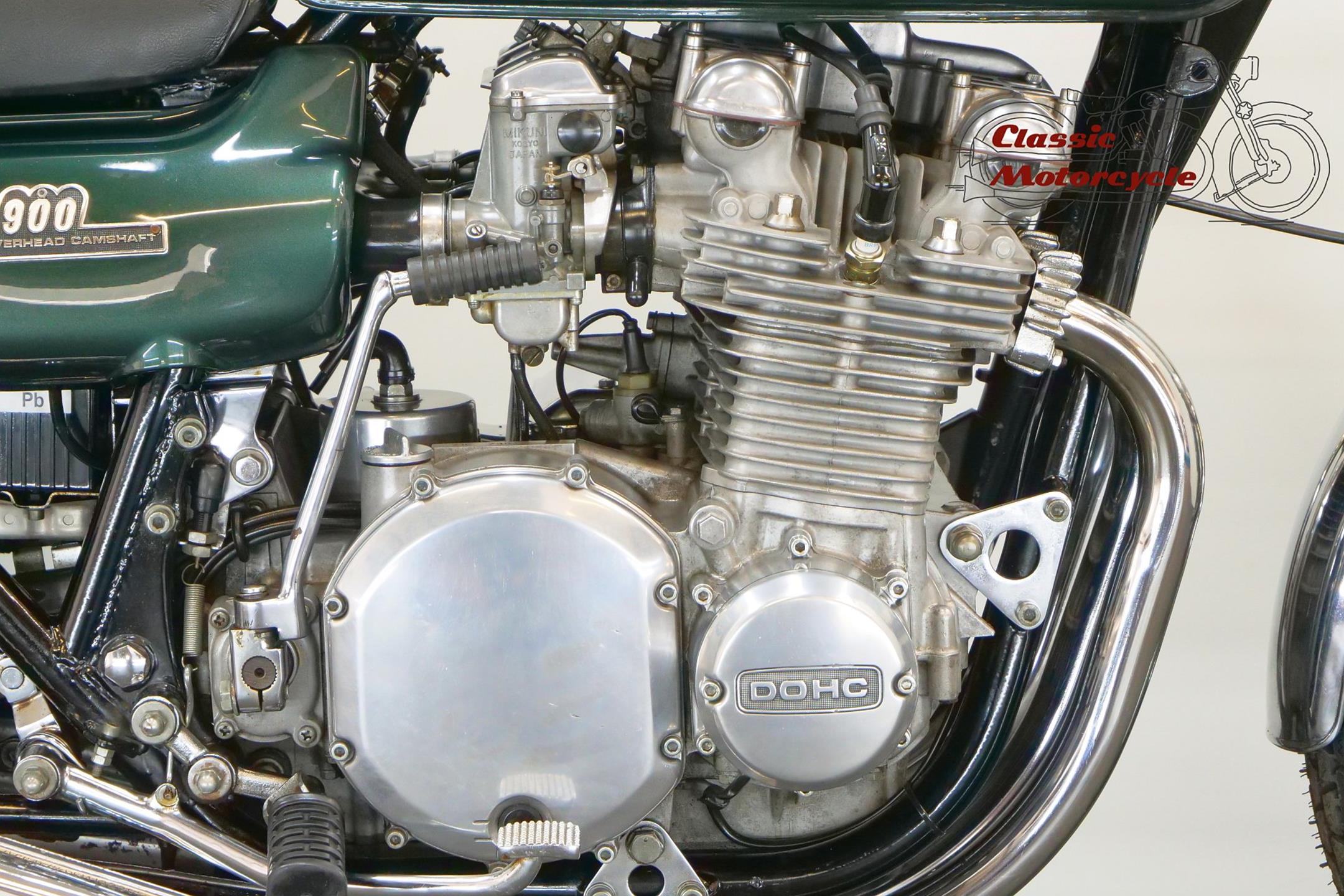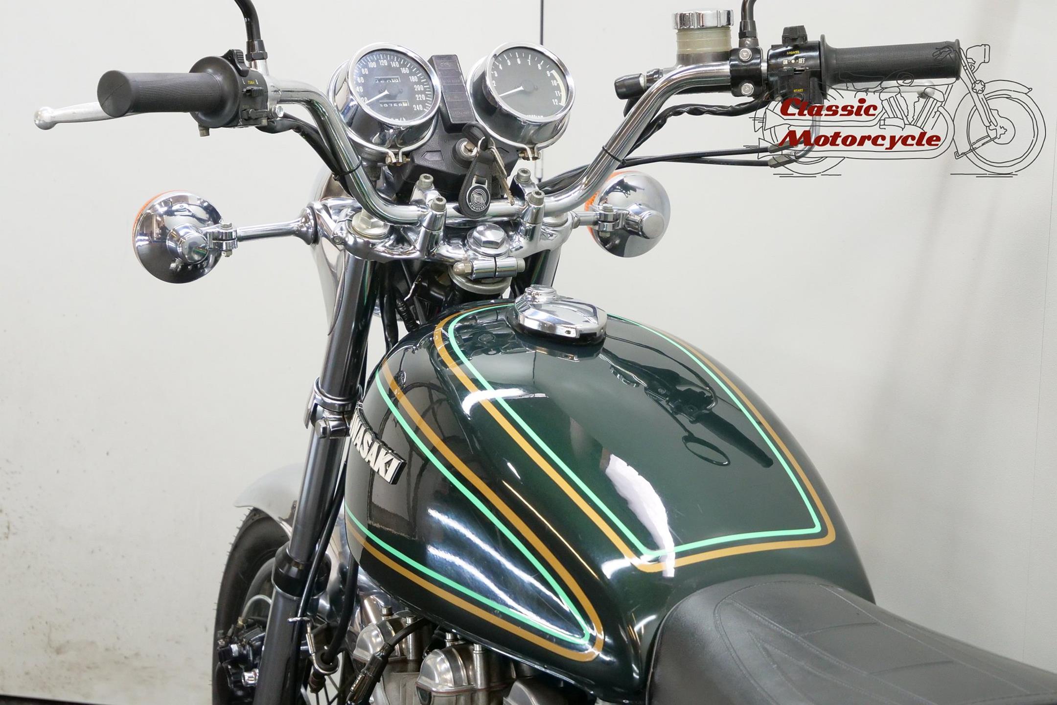 Having established its performance credentials with the Mach III two-stroke triple, Kawasaki went on to ace the opposition with the awe-inspiring Z1. The model had been planned in 750cc form in the late 1960s but was beaten to the showroom by Honda's CB750. Kawasaki's proposed superbike already had two overhead camshafts to the Honda's one, so its designers redrew the motor as a '900'. Launched in 1972 at the Cologne Show, the big 'Z' set new road-bike performance standards, at least as far as straight-line speed was concerned. With 82bhp on tap, top speed was around 130mph, but if the rider used all that power on twisty roads then things could get exciting. As a fast tourer though, the Z1 excelled. Mildly revised year by year, the model progressed through the Z1A and Z1B versions and was renamed 'Z900' for 1976. Introduced in 1974, the Z1A featured different tank livery and a plain alloy finish for the engine's upper half, the Z1's having been black, together with minor mechanical alterations. The Z1B, introduced in 1975, featured different tank livery and the plain alloy finish for the upper engine first seen on the Z1A, together with minor mechanical alterations including the adoption of a sealed drive chain and the deletion of the chain oiler. In 1976 the model was mildly revised yet again and renamed 'Z900', gaining twin front discs and 26mm carburettors among other more minor changes. Few bikes from Japan have had as much of an impact on the motorcycling world as Kawasaki's original 'Big Zed', and today all versions of this landmark model are highly sought after.