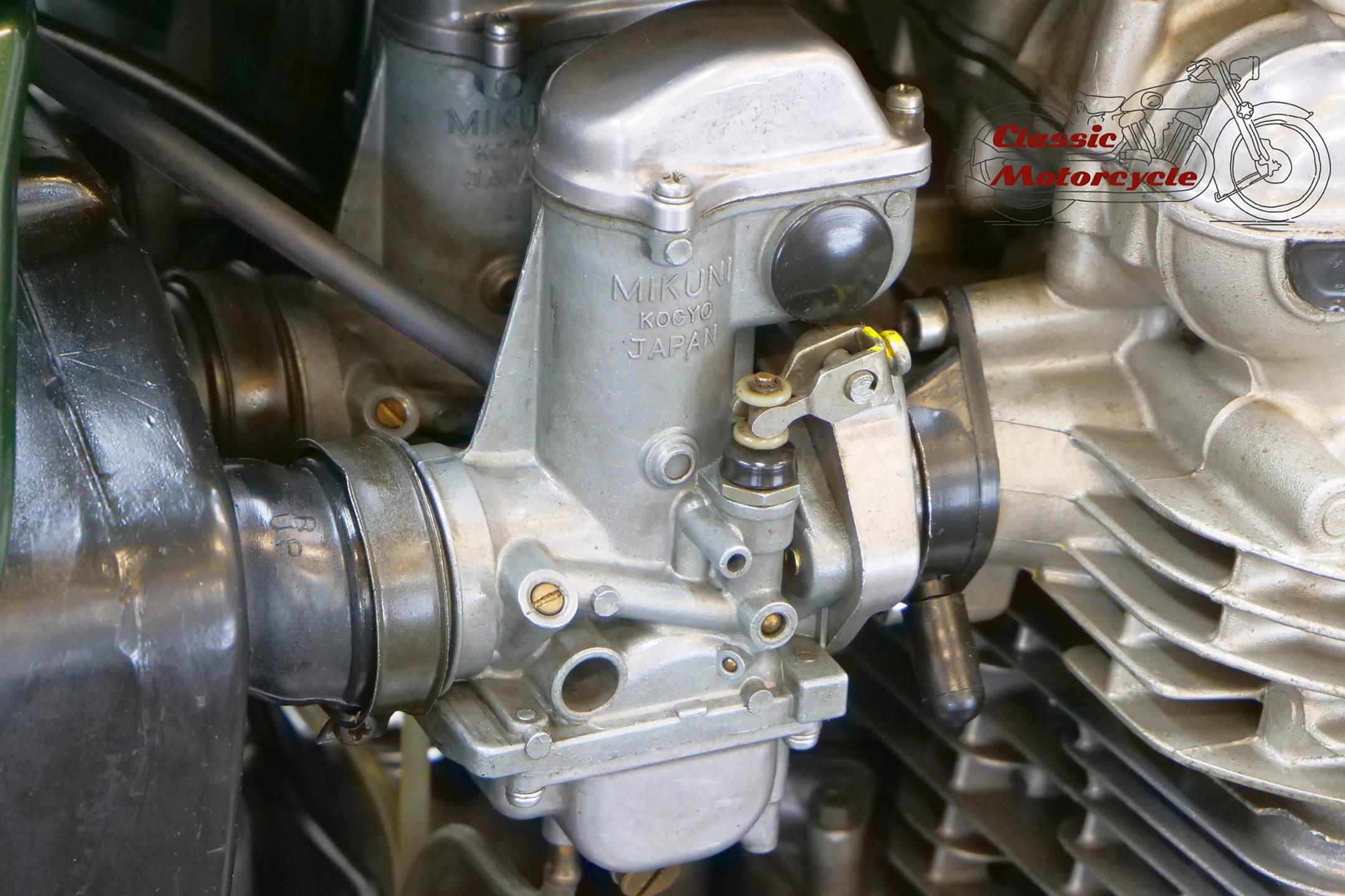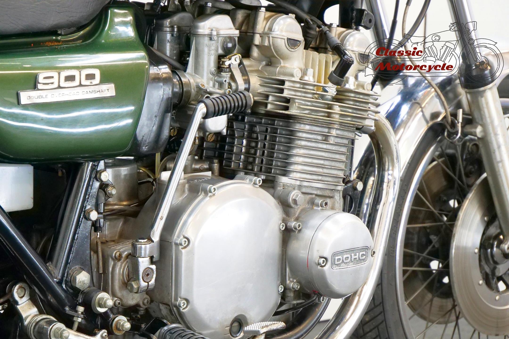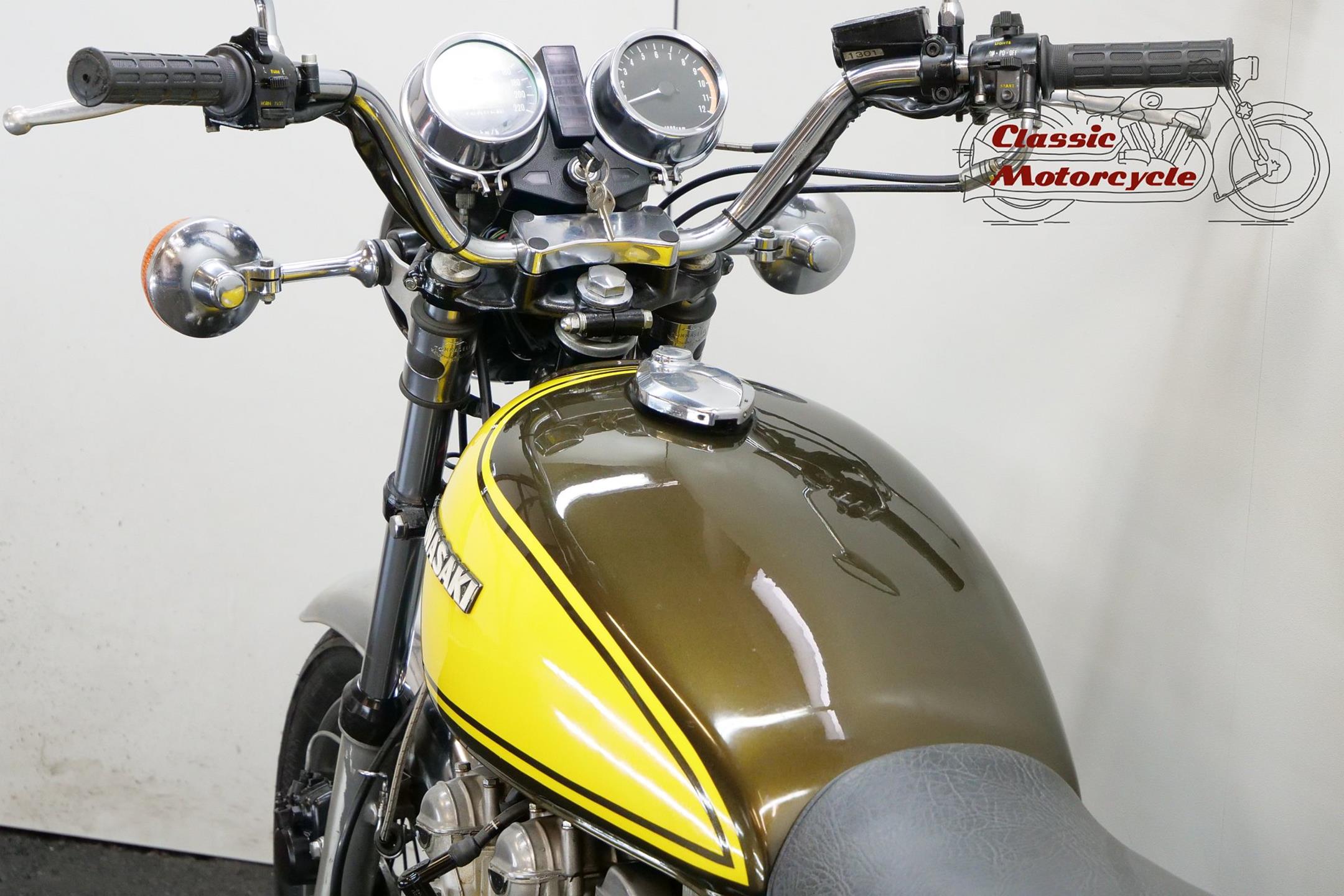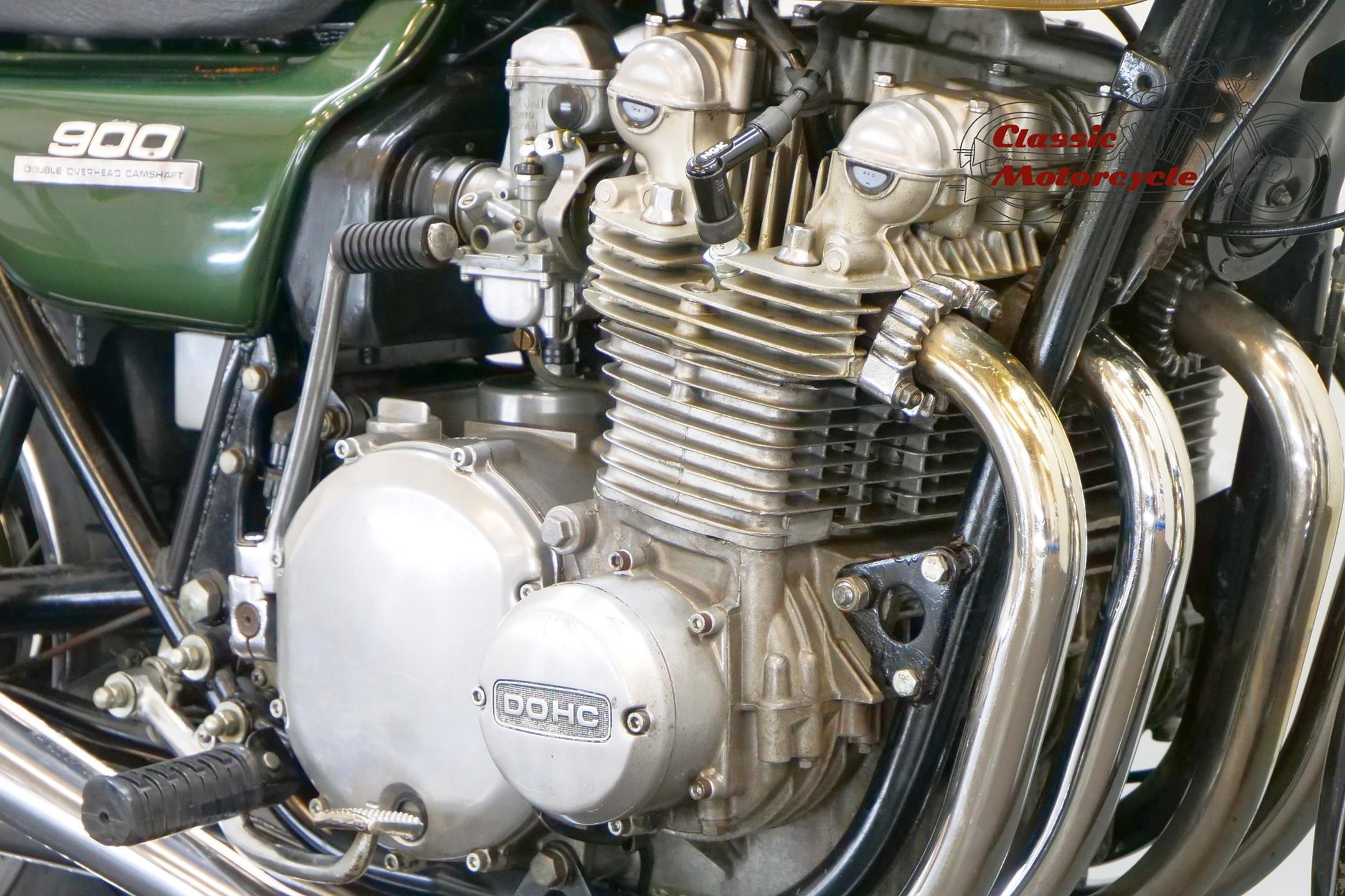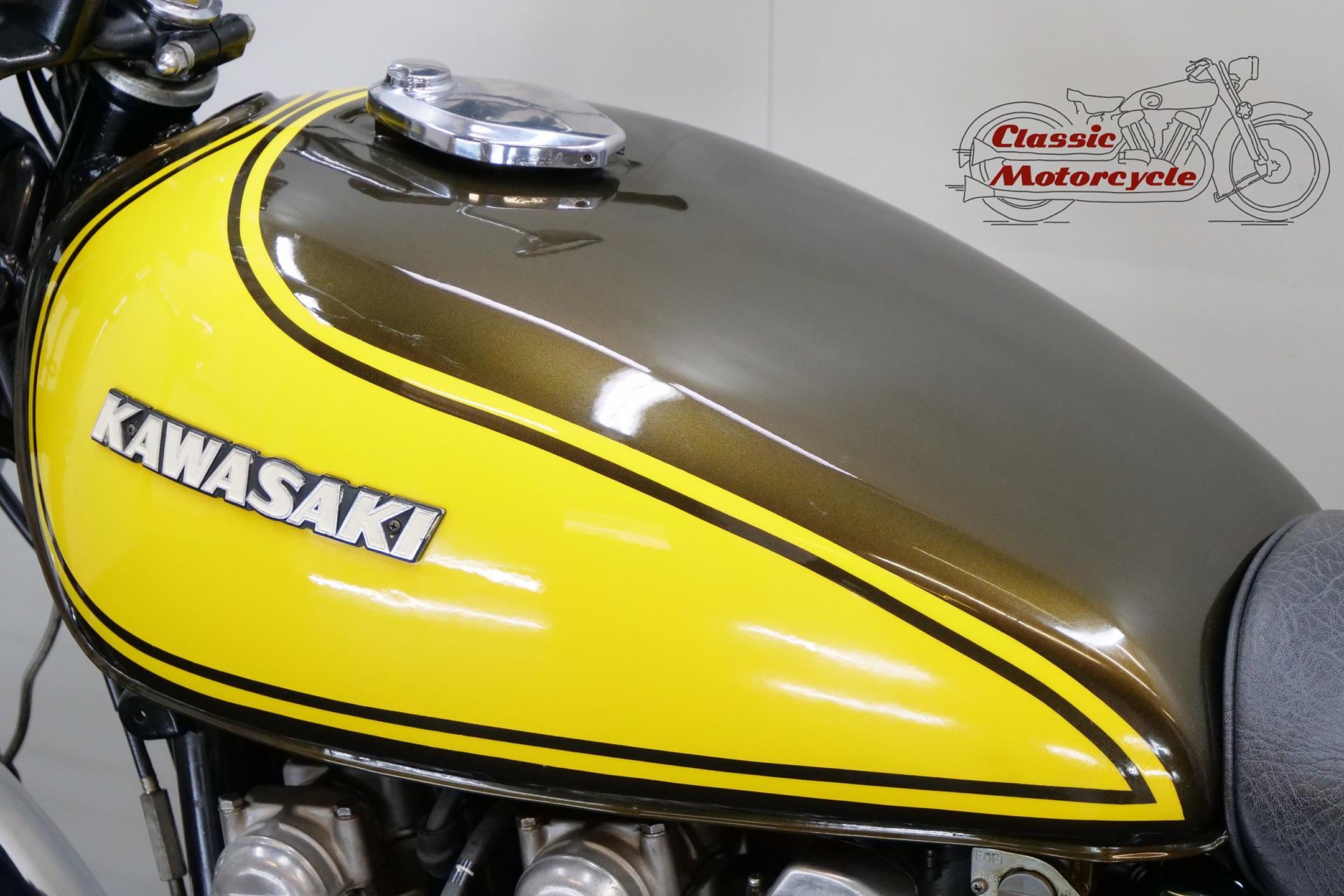 Having established its performance credentials with the Mach III two-stroke triple, Kawasaki went on to ace the opposition with the awe-inspiring Z1. The model had been planned in 750cc form in the late 1960s but was beaten to the showroom by Honda's CB750. Kawasaki's proposed superbike already had two overhead camshafts to the Honda's one, so its designers redrew the motor as a '900'. Launched in 1972 at the Cologne Show, the big 'Z' set new road-bike performance standards, at least as far as straight-line speed was concerned. With 82bhp on tap, top speed was around 130mph, but if the rider used all that power on twisty roads then things could get exciting. As a fast tourer though, the Z1 excelled. Mildly revised year by year, the model progressed through the Z1A and Z1B versions and was renamed 'Z900' for 1976. Introduced in 1974, the Z1A featured different tank livery and a plain alloy finish for the engine's upper half, the Z1's having been black, together with minor mechanical alterations. The Z1B, introduced in 1975, featured different tank livery and the plain alloy finish for the upper engine first seen on the Z1A, together with minor mechanical alterations including the adoption of a sealed drive chain and the deletion of the chain oiler. In 1976 the model was mildly revised yet again and renamed 'Z900', gaining twin front discs and 26mm carburettors among other more minor changes. Few bikes from Japan have had as much of an impact on the motorcycling world as Kawasaki's original 'Big Zed', and today all versions of this landmark model are highly sought after.