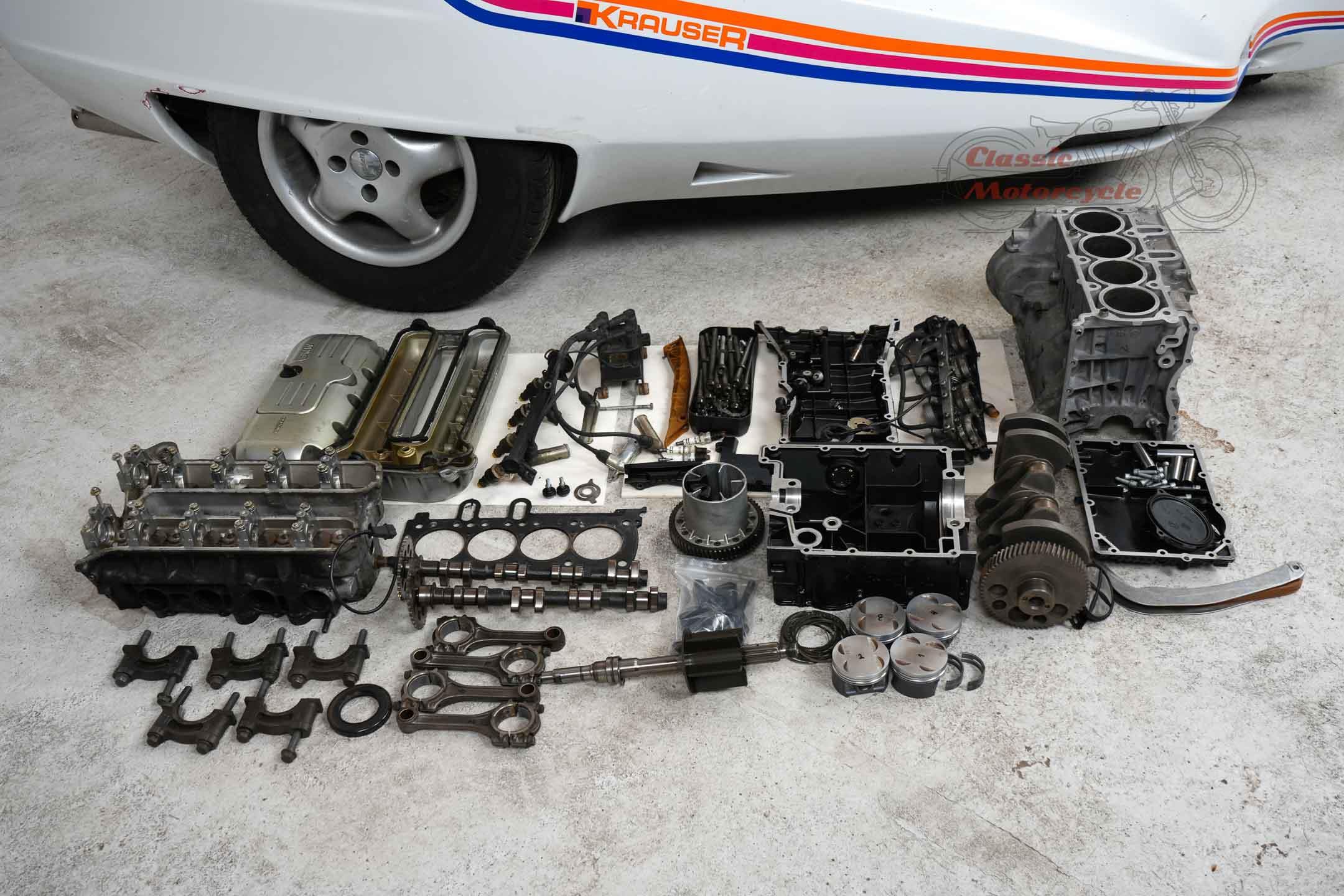 We offer a rare Krauser Domani combination. The Domini was produced from 1988 to 2004 and was ahead of its time. The highlight is the wheel hub steering and the pipe frame carrier. The story starts in Germany on September 21, 1999 where the machine was first registered. A few years later she came to France, Primelin in a collection. In 2016, the combination was acquired by a private collector from Germany, where it was part of the collection until the end. The machine runs with start-up aid, it needs technical attention. All registration numbers and previous owners are known. Another Domini engine is currently installed. The original engine is dismantled and lies in the pictures next to the machine. This has already been partially overhaul and is included in the offer. There are many documents: operating instructions including service history, certificates from France, original sales catalog, invoice for engine overhaul, papers from Germany. Only about 130 pieces were made.