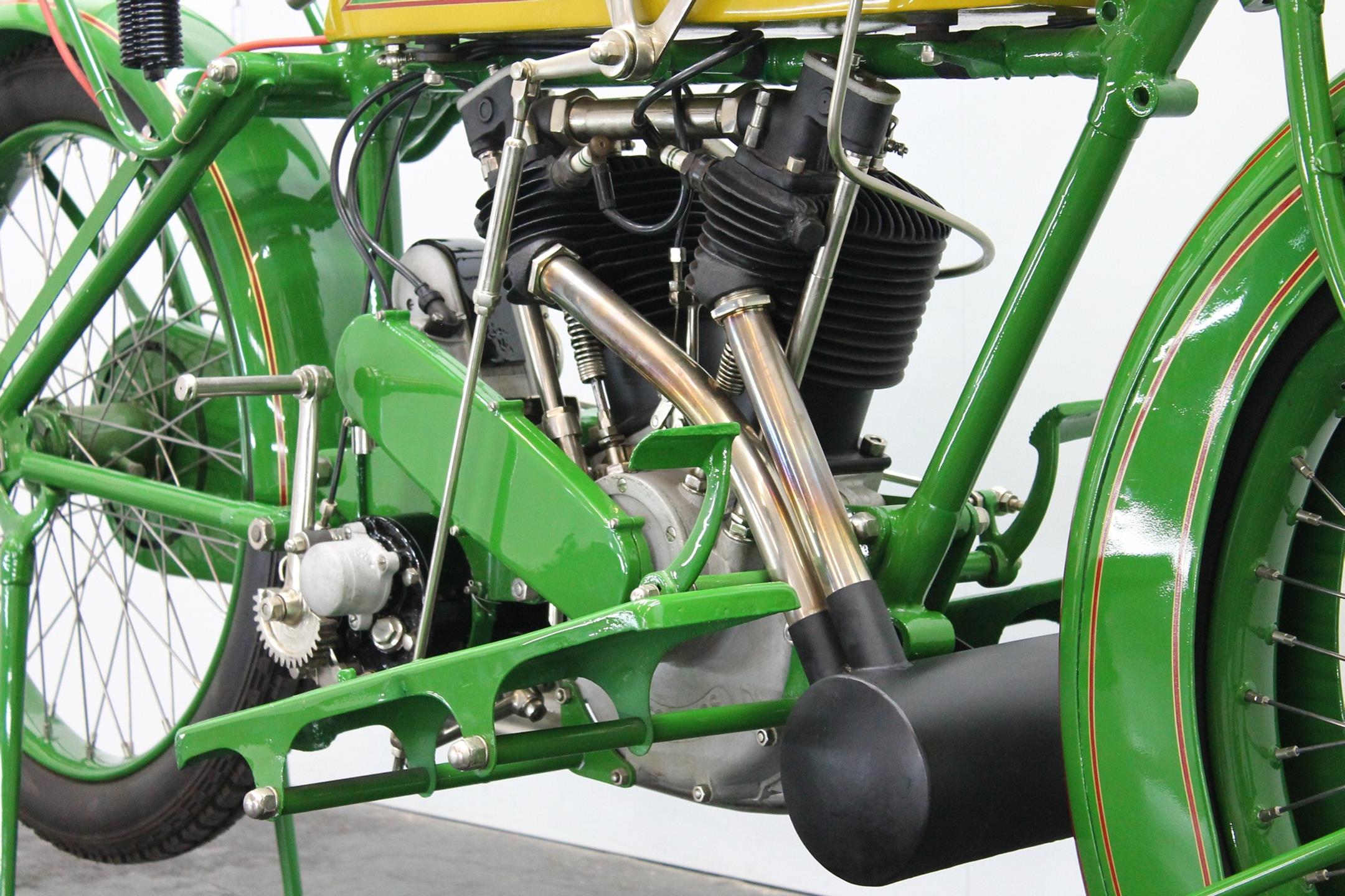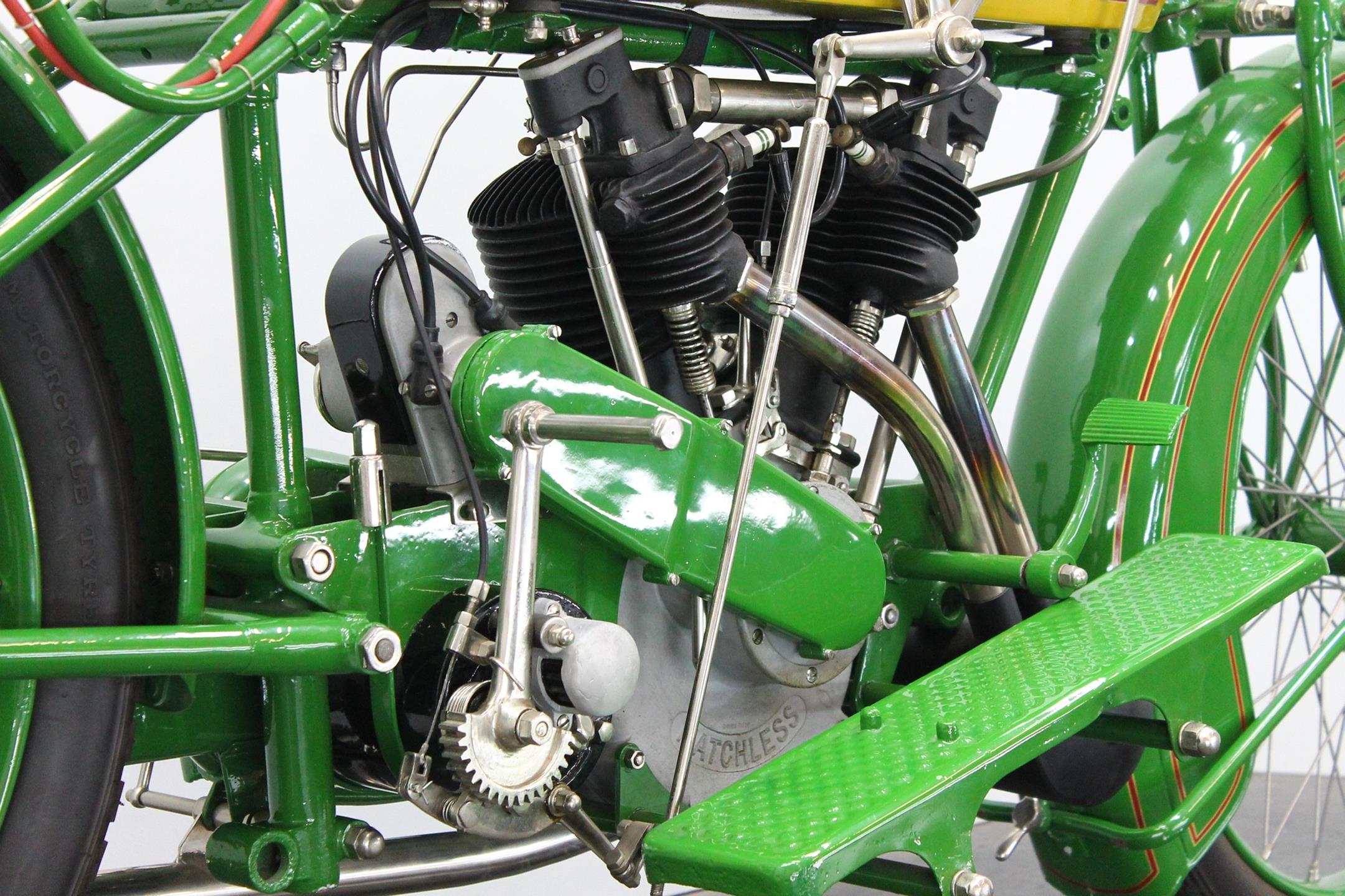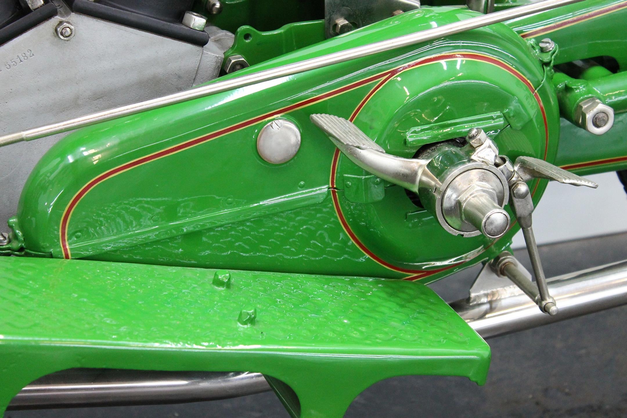 This rare Model J with MAG engine is equipped with a Lucas acetylene lighting set, Brown and Barlow carburetor, toolbox, hand operated horn, foot controlled clutch, three-speed countershaft gearbox (cylindrical gearbox is of Matchless’ own design), automatic exhaust valve lifter, coupled to the kick start mechanism and primary transmission by Coventry silent chain. It´s has been restored with many of love to highest standard.