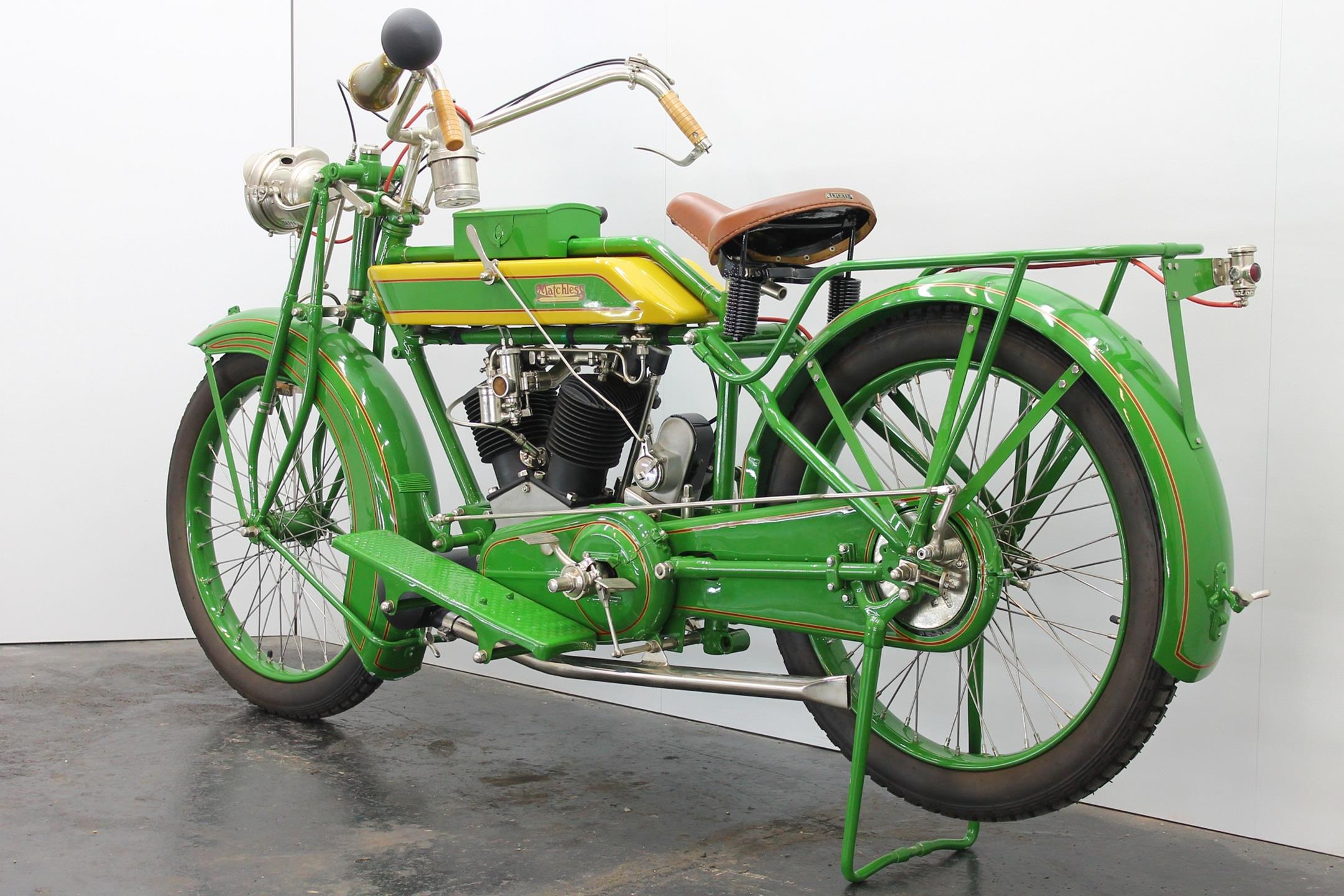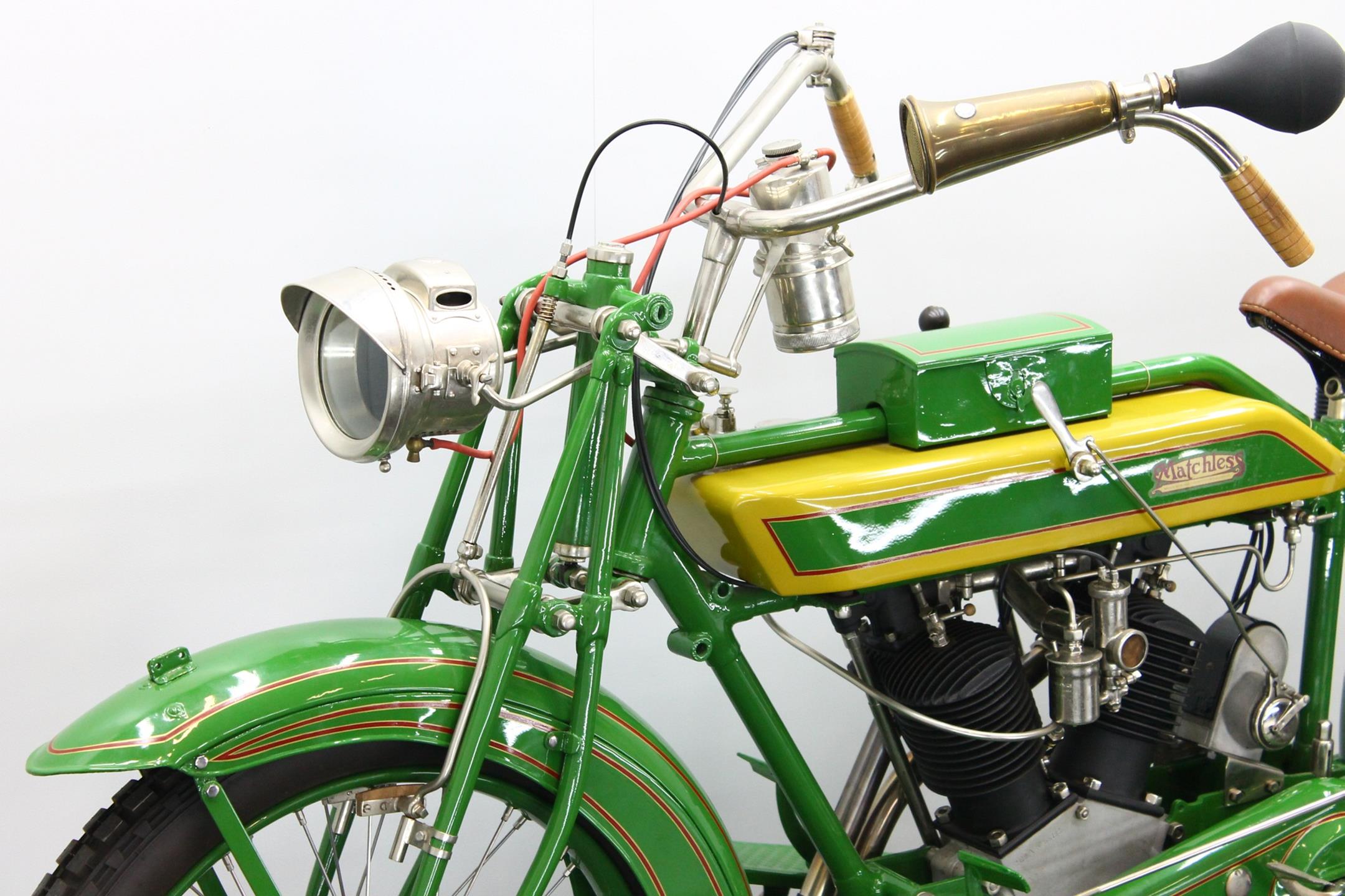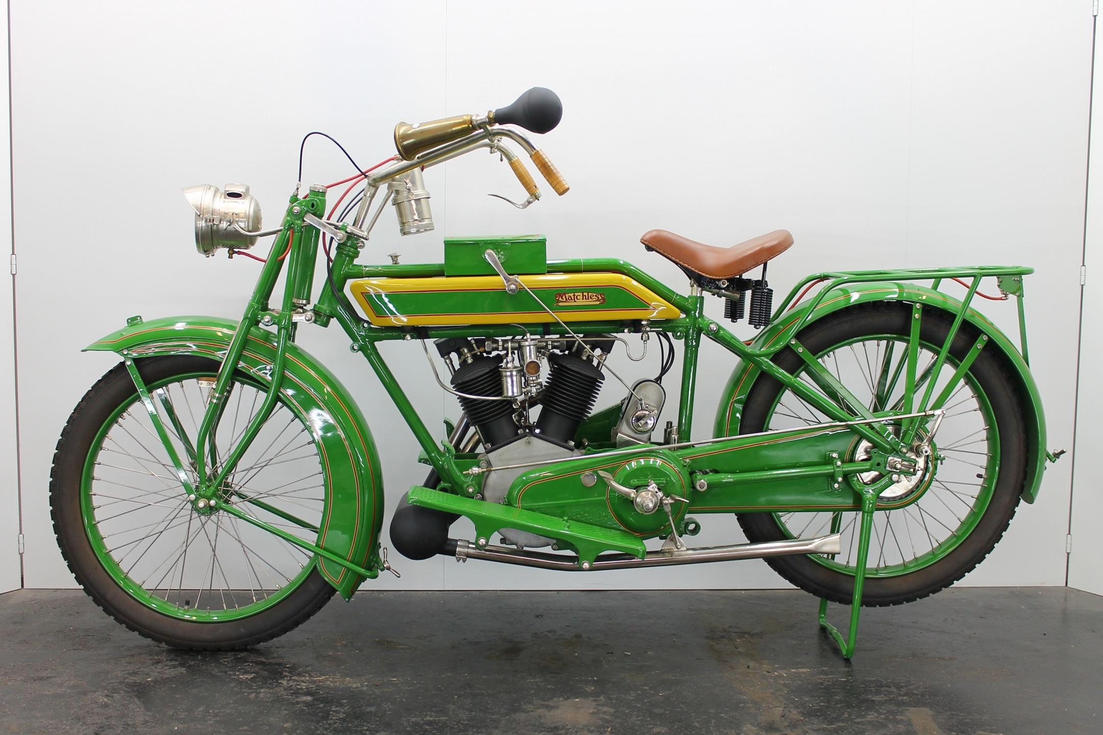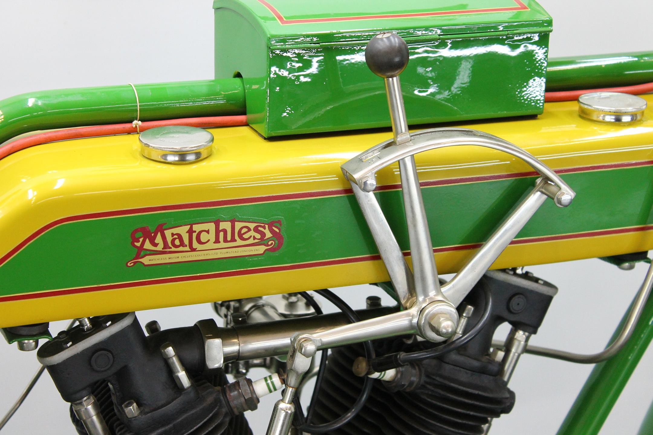 The first Matchless motorcycle was made in 1899, and production began in 1901. Matchless was the trading name of Collier & Sons, the father Henry Herbert Collier and his sons Charlie and Harry. The Matchless tank badge was a winged "M". Like many motorcycle manufacturers of the time, they had started as bicycle manufacturers. They produced a JAP V-twin powered bike in 1905, with one of the earliest swing-arm rear suspensions, coupled with leading-link front forks. Charlie won the inaugural TT singles race in 1907 at an average speed of 38.21 mph in a time of 4 hours 8 minutes 8 seconds. Harry did not finish in 1907, but won in 1909, and Charlie won again in 1910, bringing Matchless motorcycles to the attention of the public. Matchless made mostly singles, but they also made V-twins from 496 cc to 998 cc. They made their own engines from 1912 on. Matchless was not given a contract to make motorcycles for the army during the First World War. Peacetime production resumed in 1919, concentrating at first on V-twins for sidecar use, leaving singles until 1923. In 1926 Henry Collier died, and by 1928 Matchless was a limited company. Matchless engine suppliers were MAG and JAP.