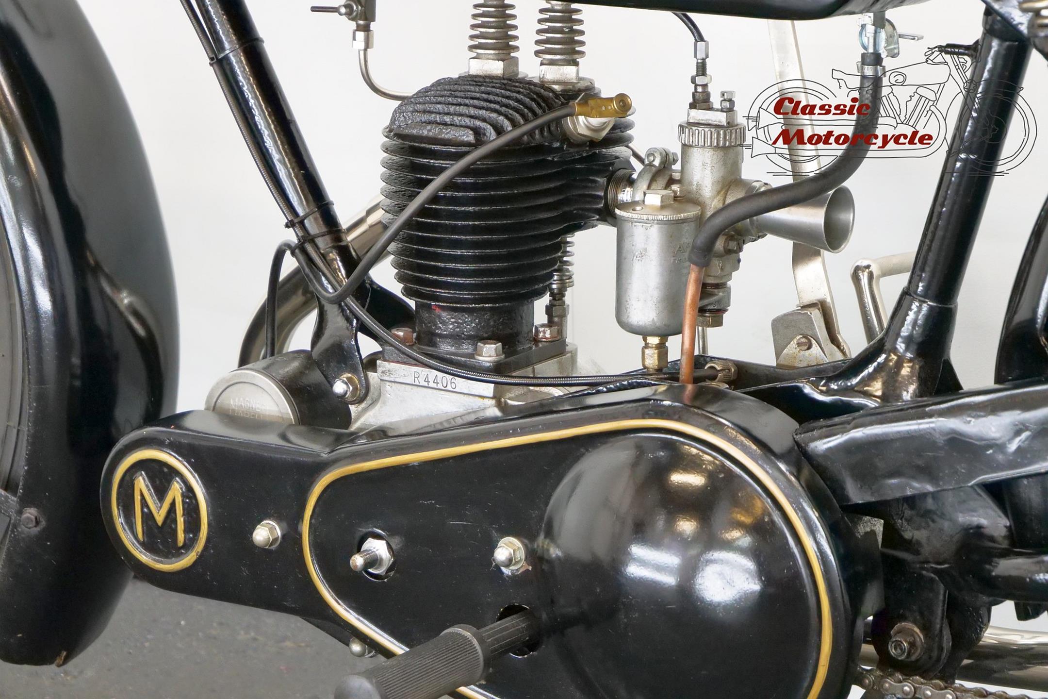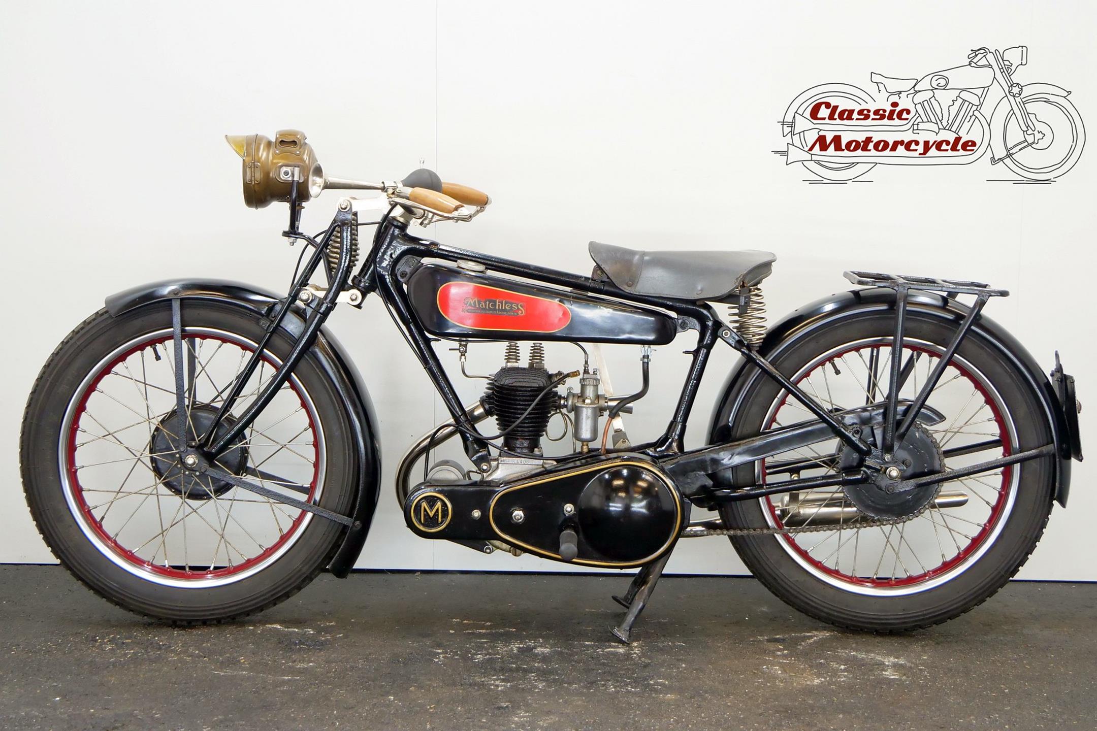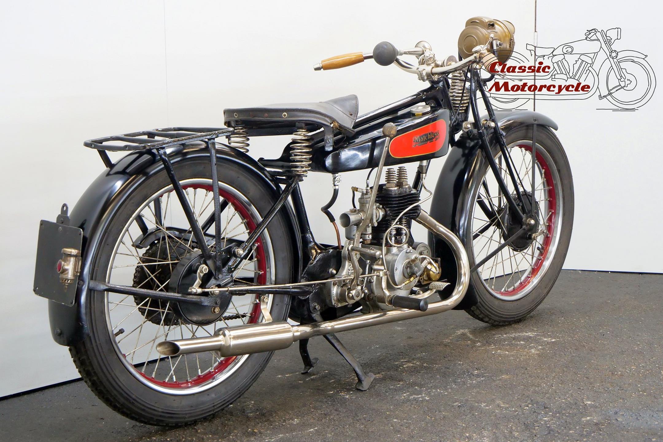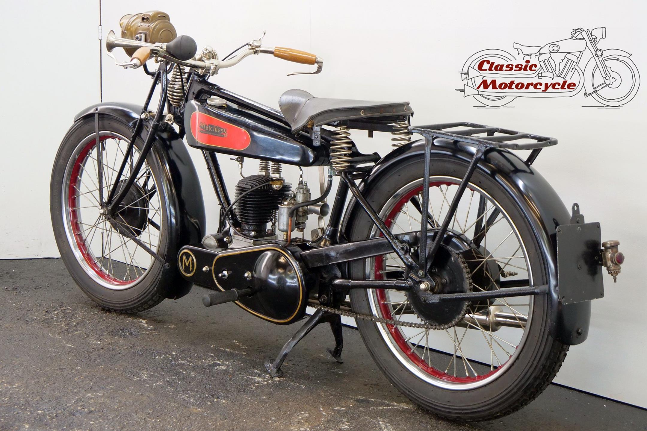 Unlike the vast majority of Britain's motorcycle manufacturers, which were located in the Birmingham and Coventry areas, Matchless were based in Plumstead, South London. Early Matchlesses were JAP powered, but in 1912 the firm introduced a 500cc single of its own design. Nevertheless, within a short time it had gone, along with all the other singles, and for the next several years Matchless built only v-twins. Singles were reintroduced in the mid-1920s, the 250cc Model R sidevalve being the company's first model to feature the gold-lined black tank that would characterise many later offerings. Model R production continued into the early 1930s.