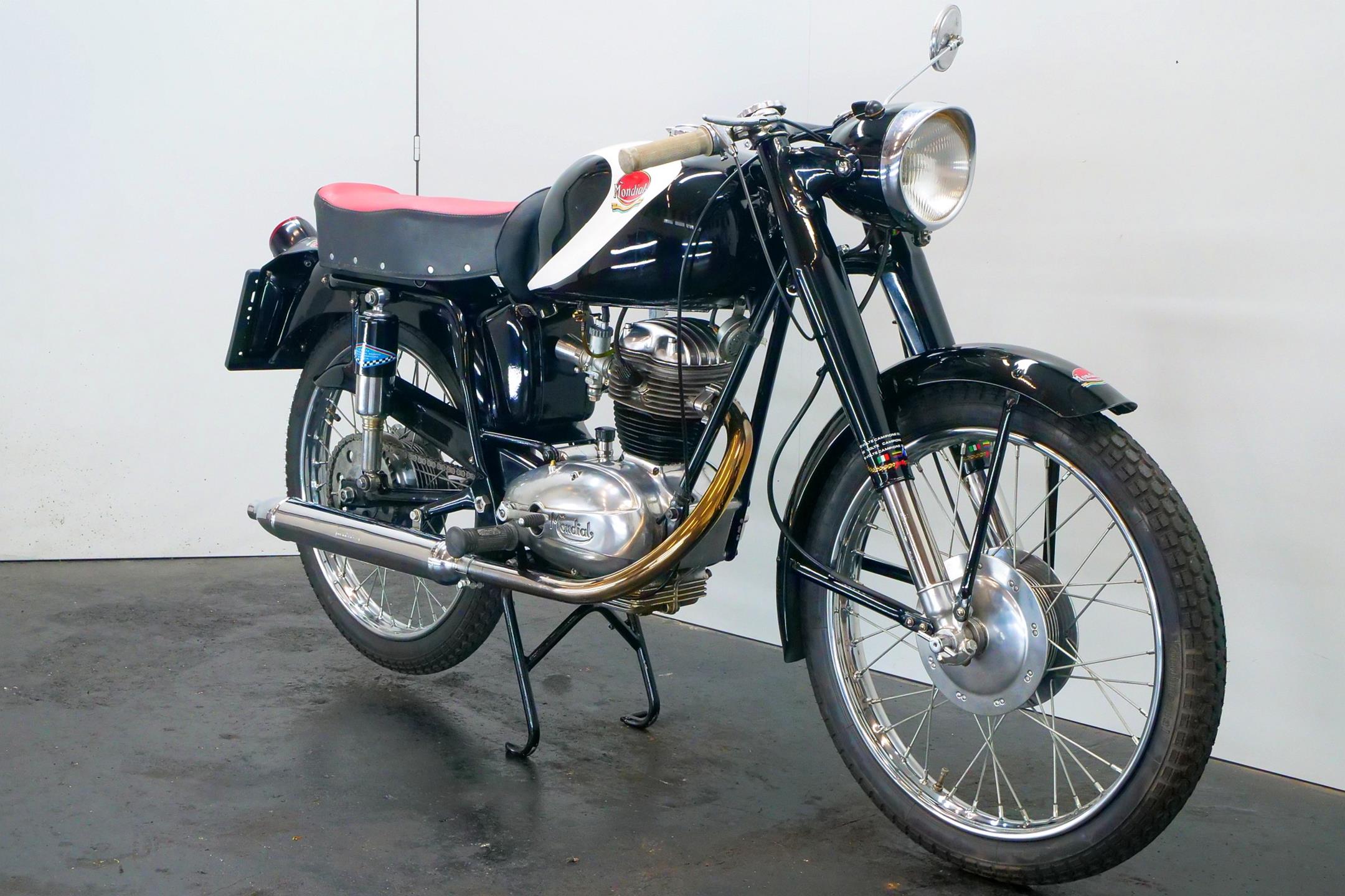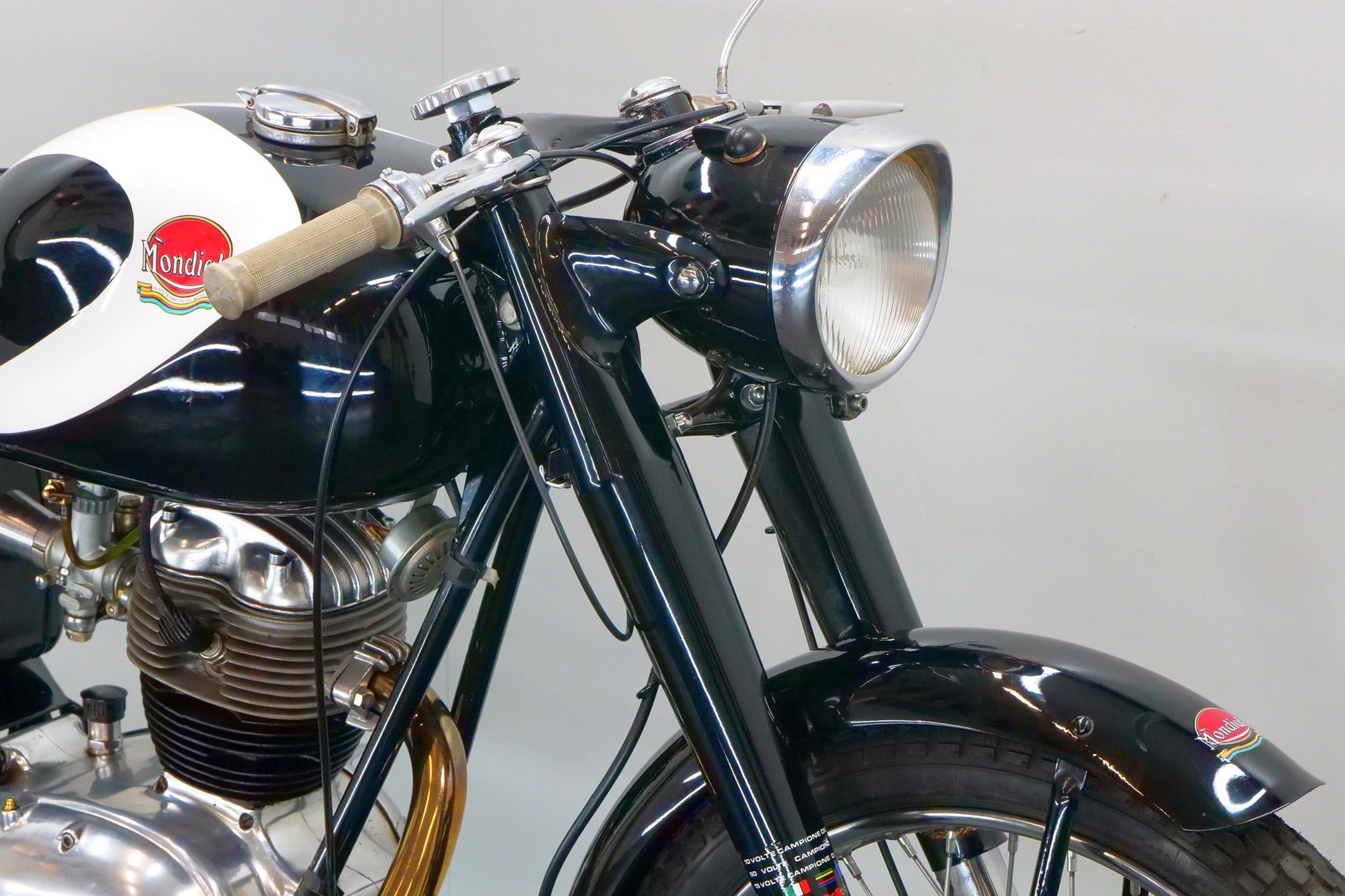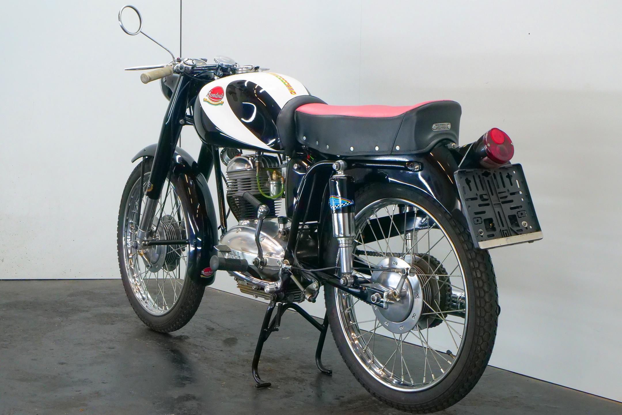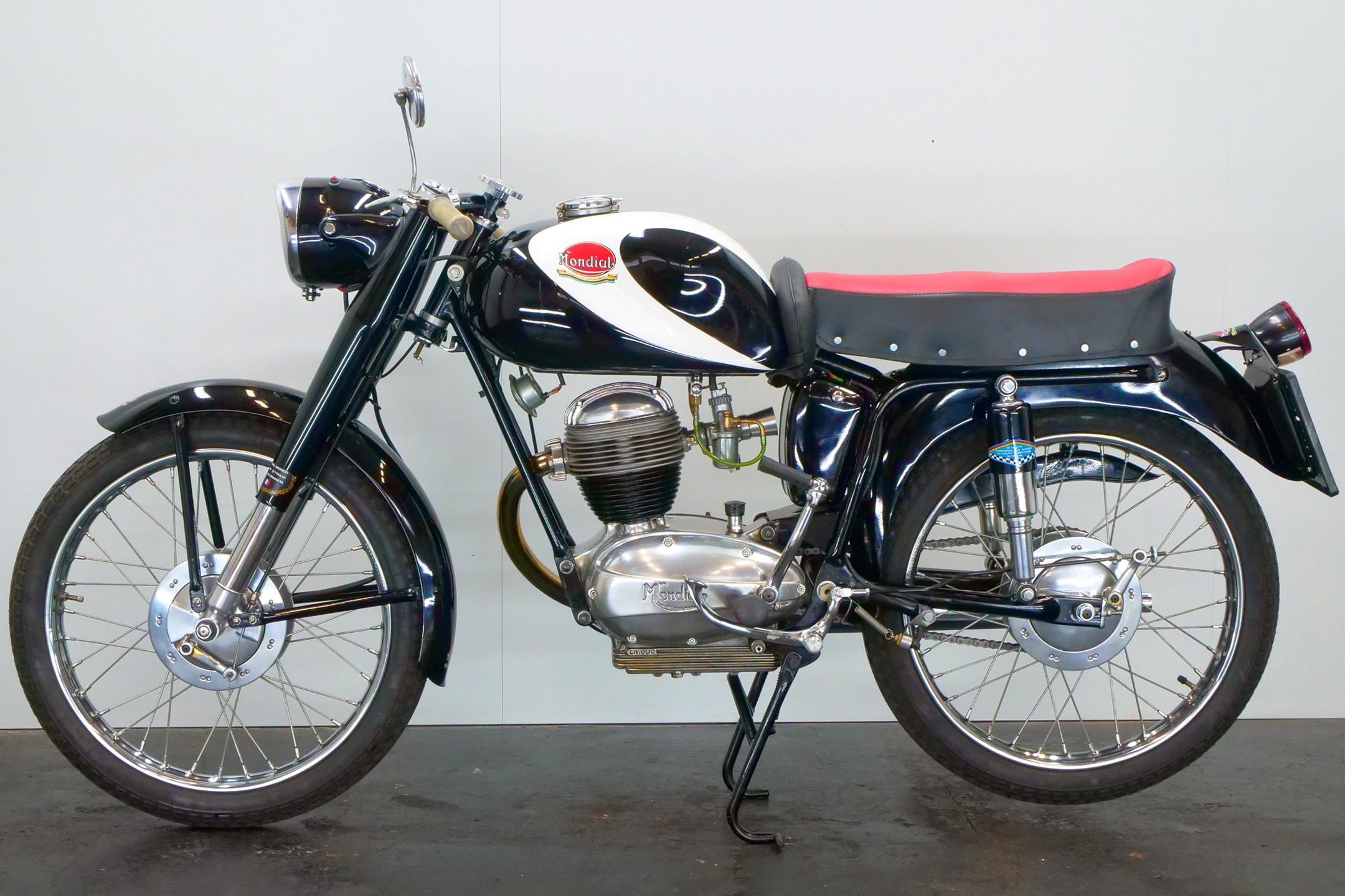 Few marques have achieved so fine a competition record in so short a time as Mondial, the Italian company’s period at the very top of Grand Prix racing encompassing the years 1949-51, plus a gloriously successful comeback in 1957. F B Mondial was founded in the aftermath of WW2 by the Boselli family, whose first venture into powered transport had been with the F B (Fratelli Boselli) three-wheeled delivery van in the 1930s. The name ‘Mondial’ first appeared on a motorcycle in 1948, when the Boselli brothers introduced a revolutionary double-overhead-camshaft 125cc racer. Mondial’s miniature masterpiece duly brought the Bologna manufacturer its first World Championship the following year and proved equally dominant in 1950 and ’51. After a relatively lean spell, Mondial returned to Grand Prix glory in 1957, taking both the 125cc and 250cc World Championships. Not surprisingly, Mondial’s passion for racing rubbed off on its road range, which was exquisitely engineered and beautifully constructed in a manner unmistakably Italian. In the 125cc class there were three variants were offered: Turismo, Lusso, and Special.