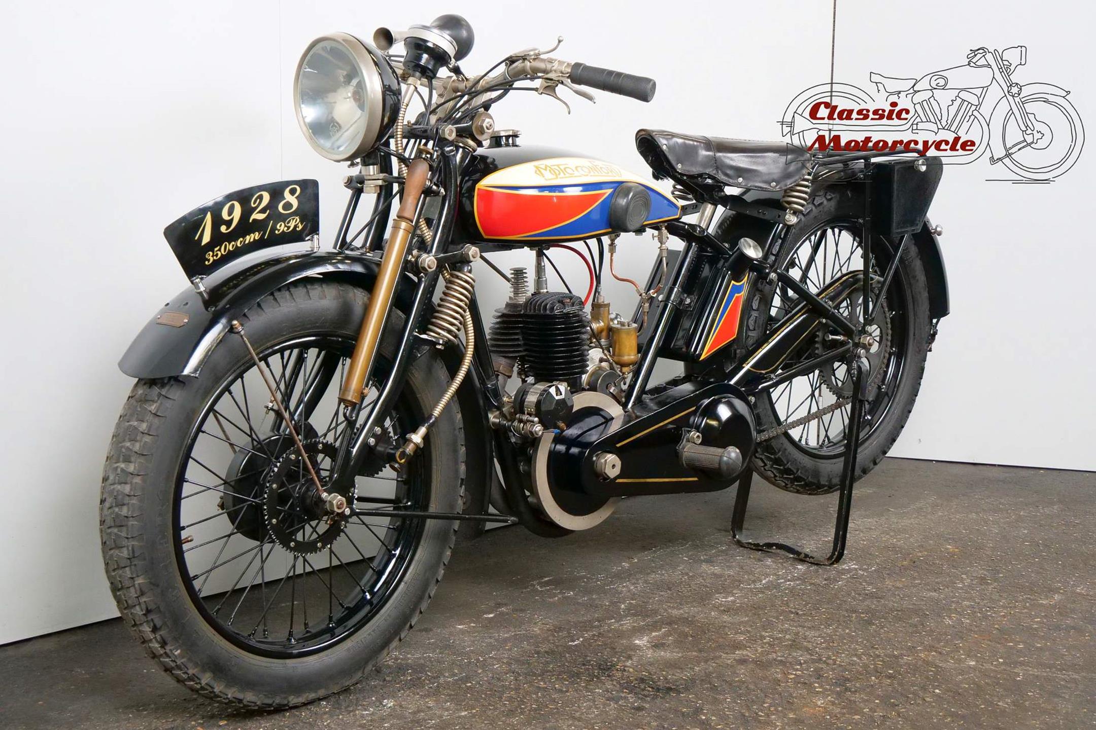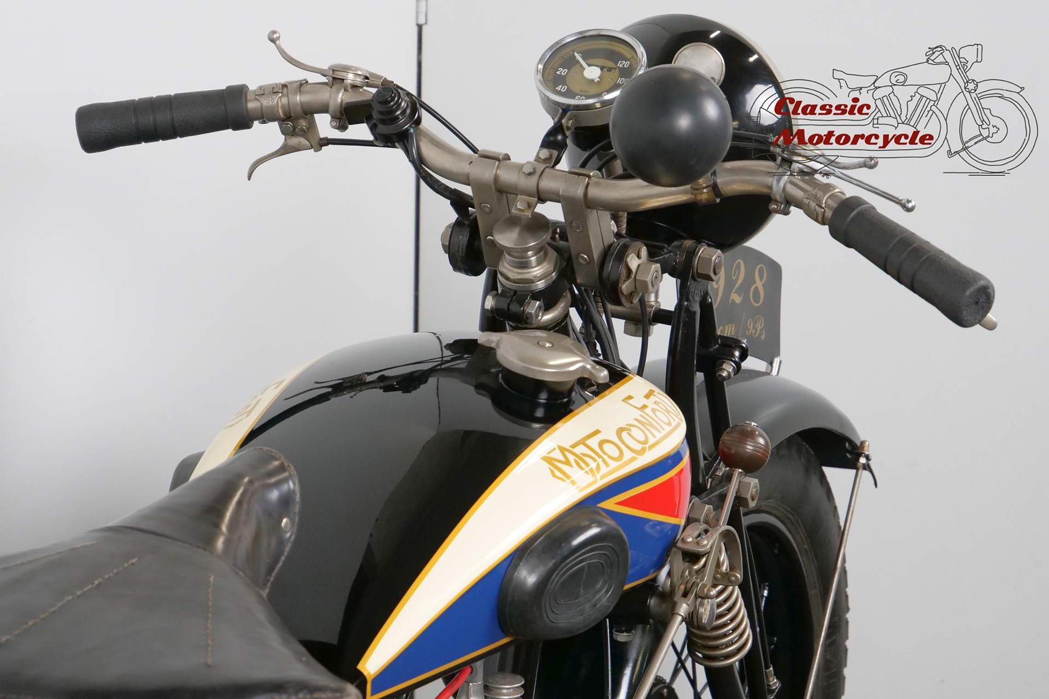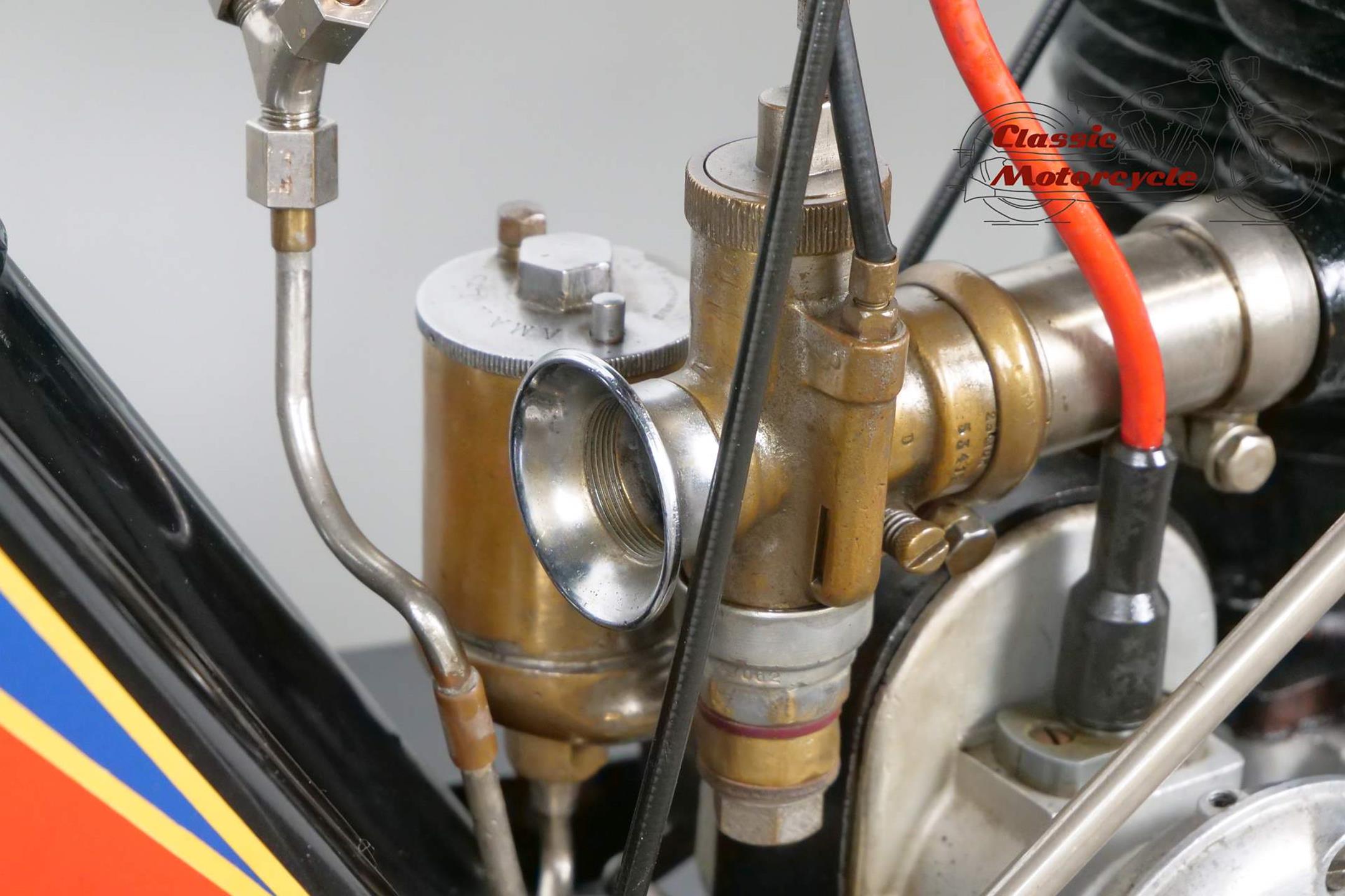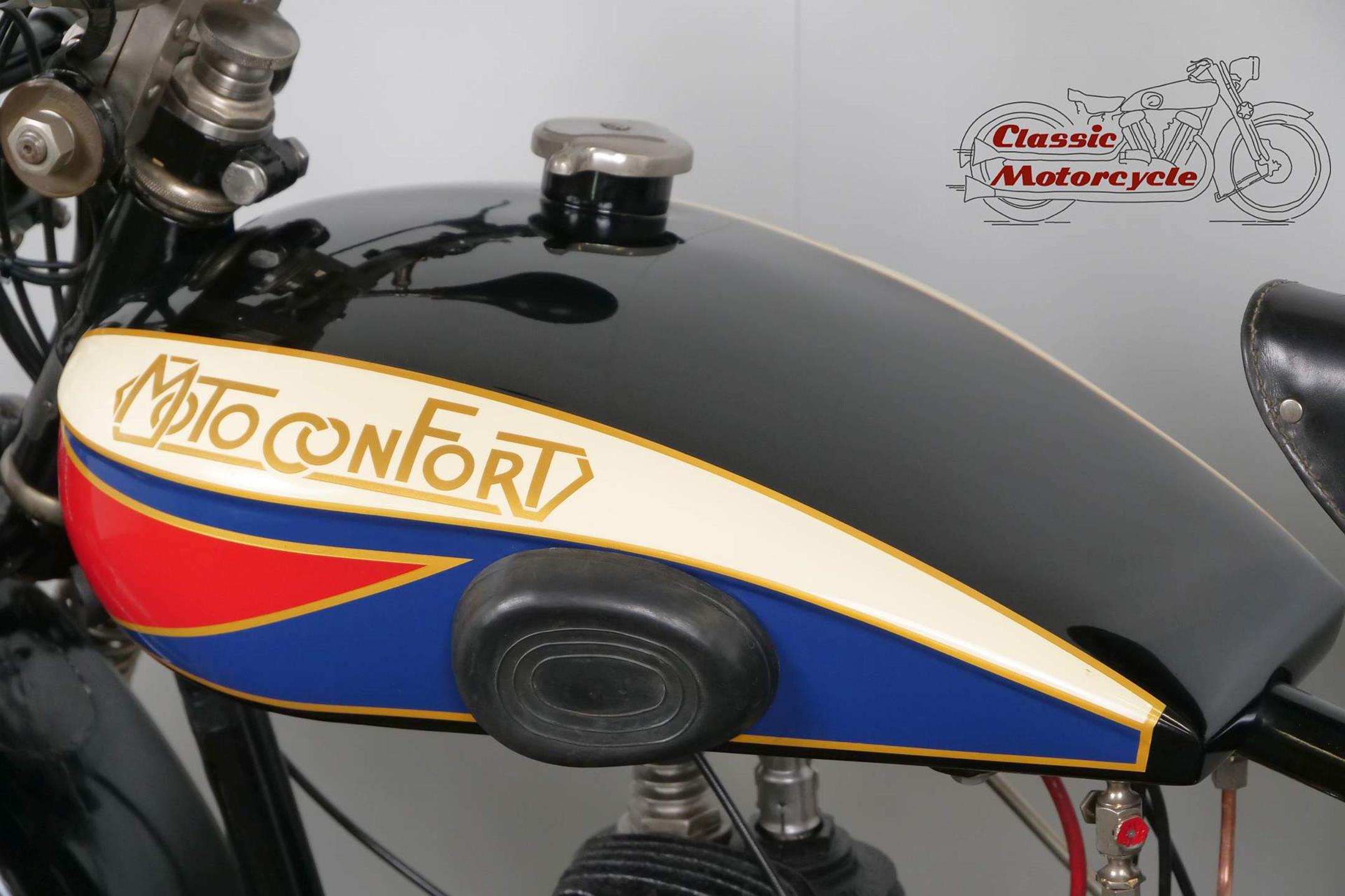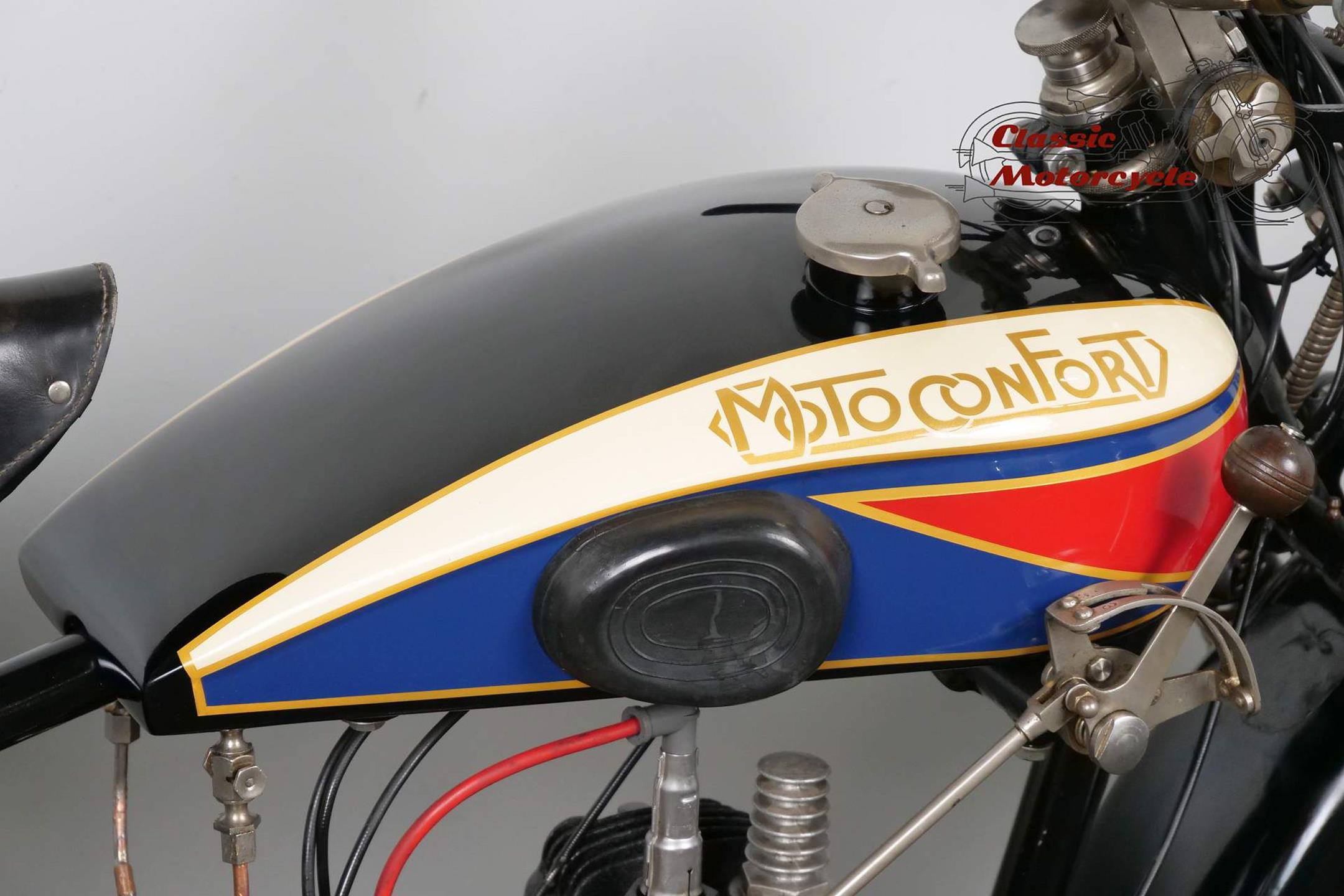We offer here a piece of motorcycle history from France. This Motoconfort was manufactured only two years from 1928-1929. A noble engine with external flywheel from Blackburne was used. The power of the 350cc engine was given as 15ps. The K1 was restored a few years ago and is fully roadworthy condition. It is equipped with a speedometer, lighting set, Gurtner oil pump, Burman gearbox, hand operated horn, Amal carburetor, Novi magneto, Novi alternator and has papers from Germany.