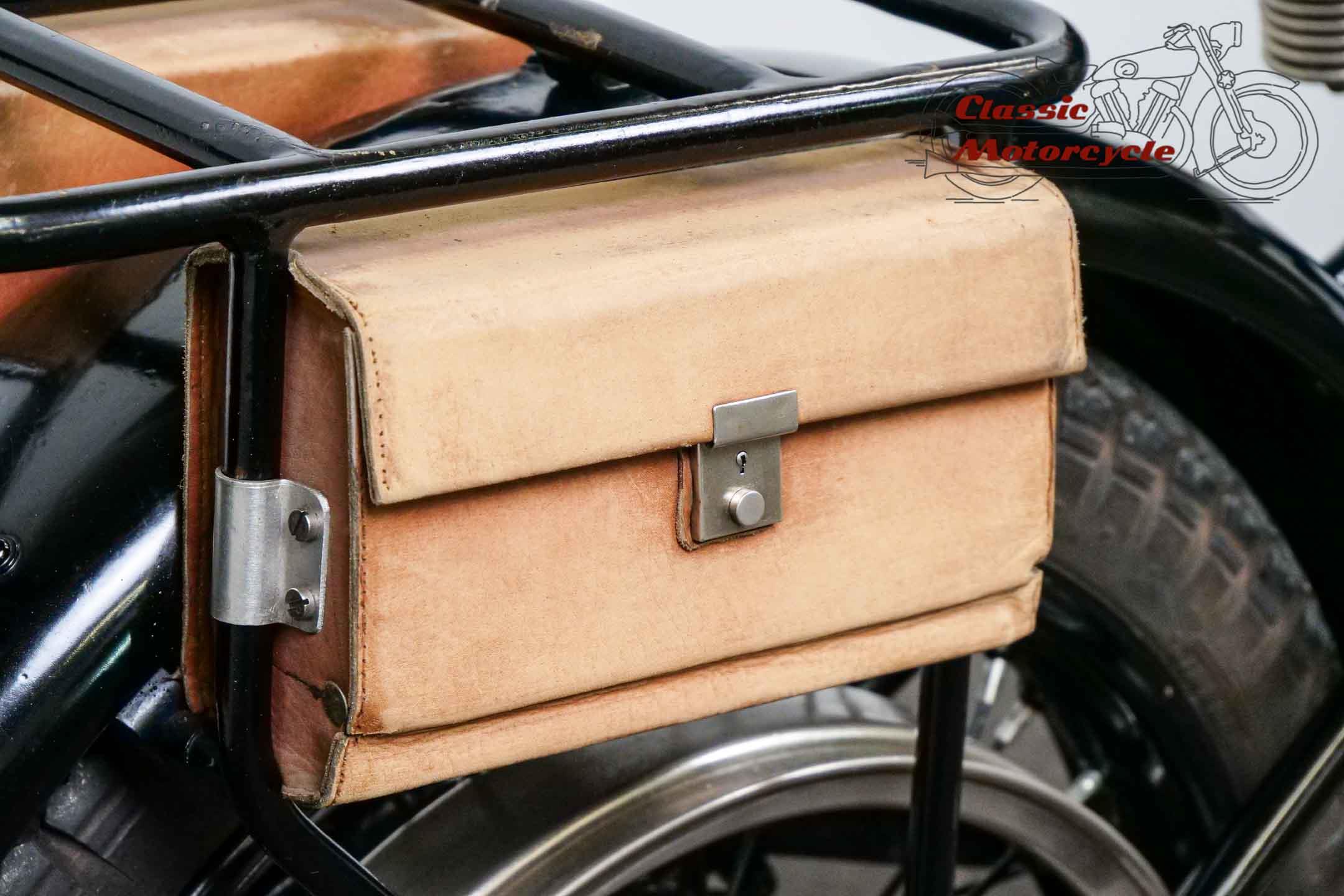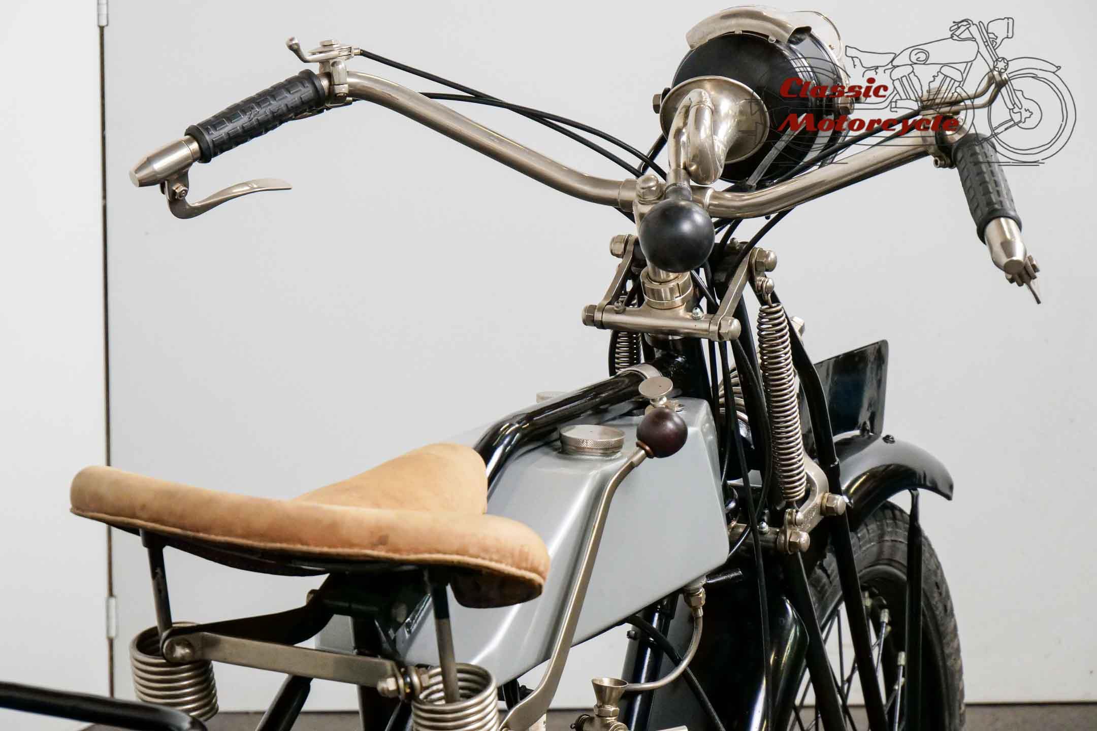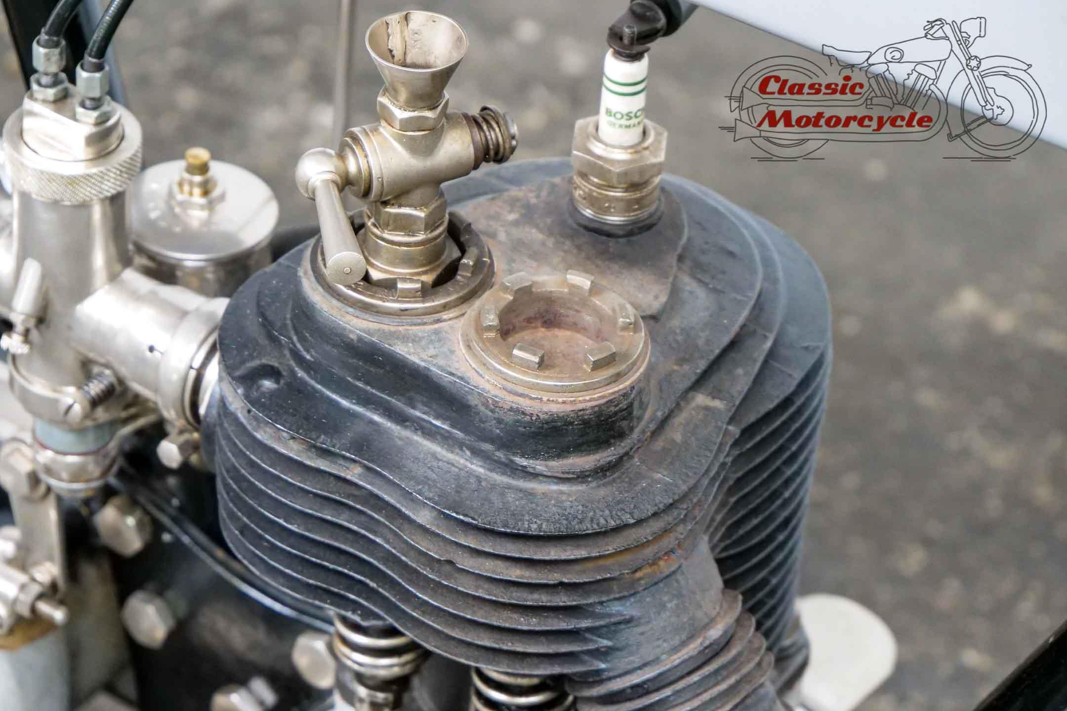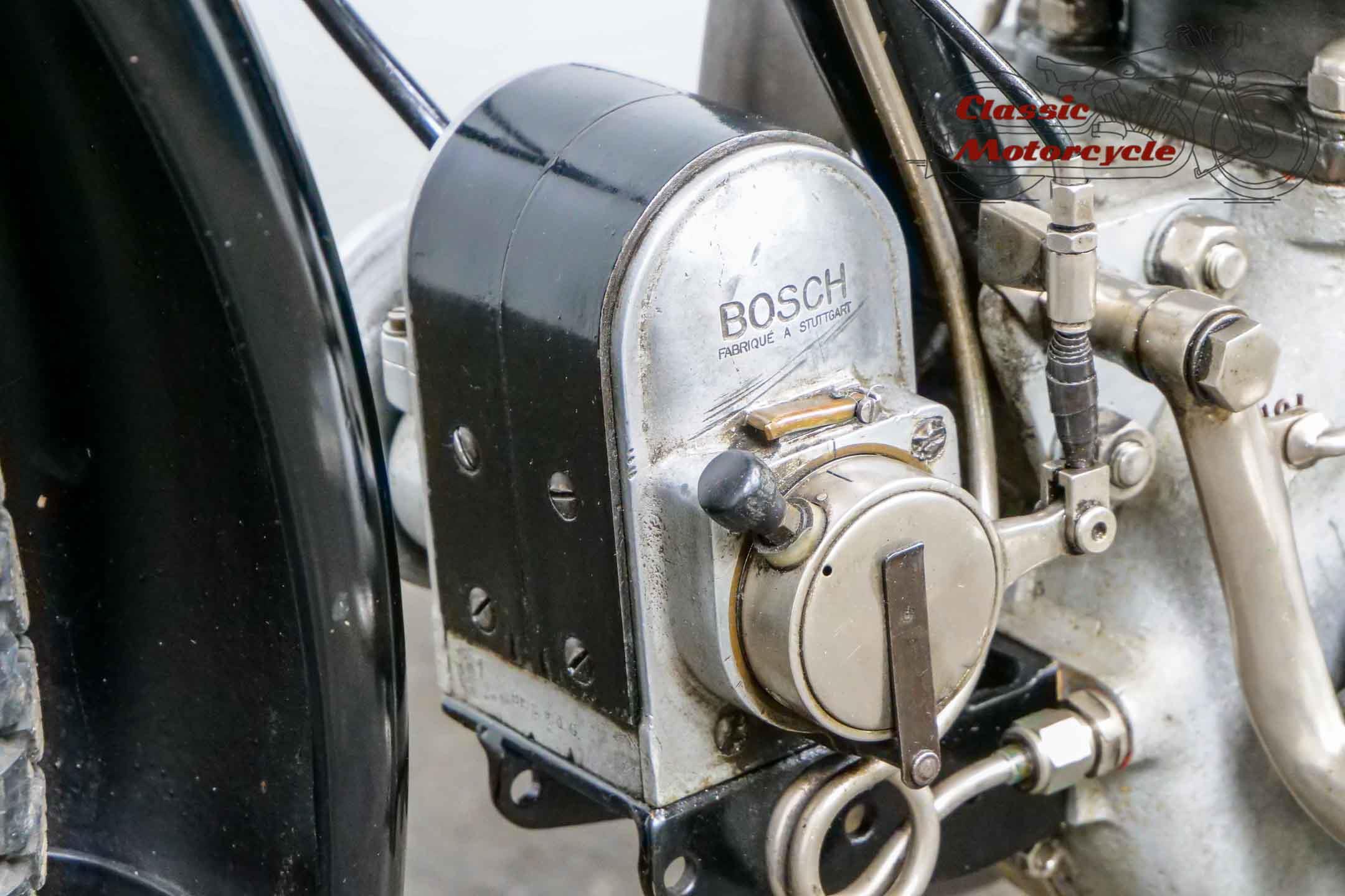 This unexplored machine offers a good entry into the 500cc class. The engine is from Fafnir and has 500cc. The carburetor is from Cozette, ignition is Bosch and the front fork is from Saxon. Acetylene lights and hand horn complete the machine. The motorcycle manufacturer is not known. The new owner has the exciting task of finding out the unexplored history. The machine is ready to ride and runs fine.