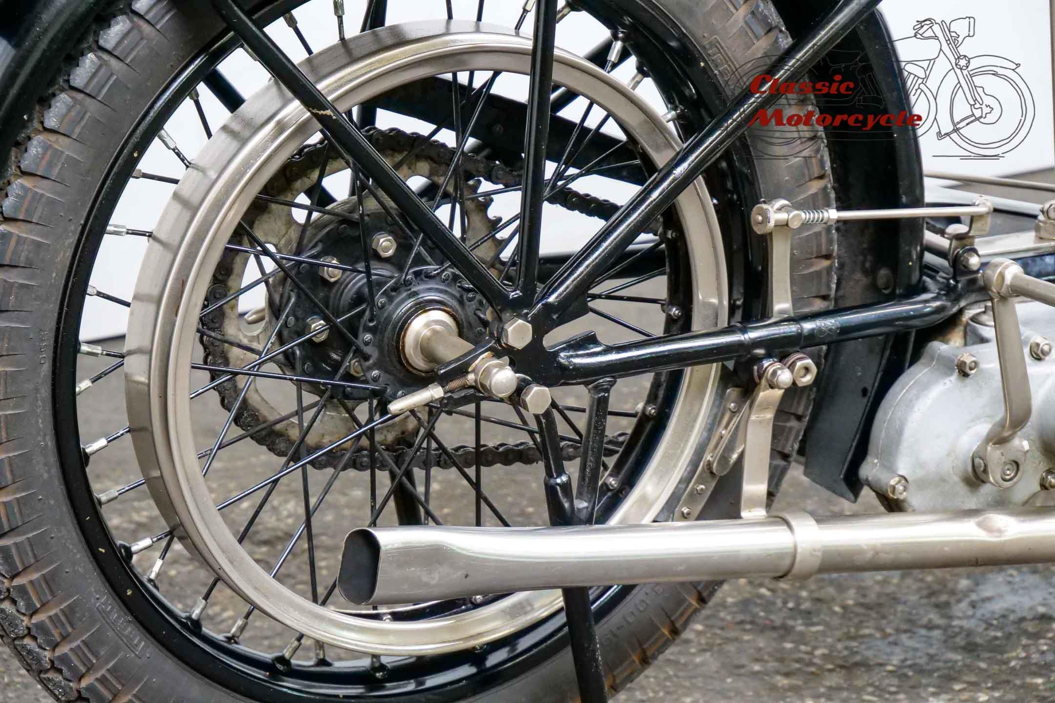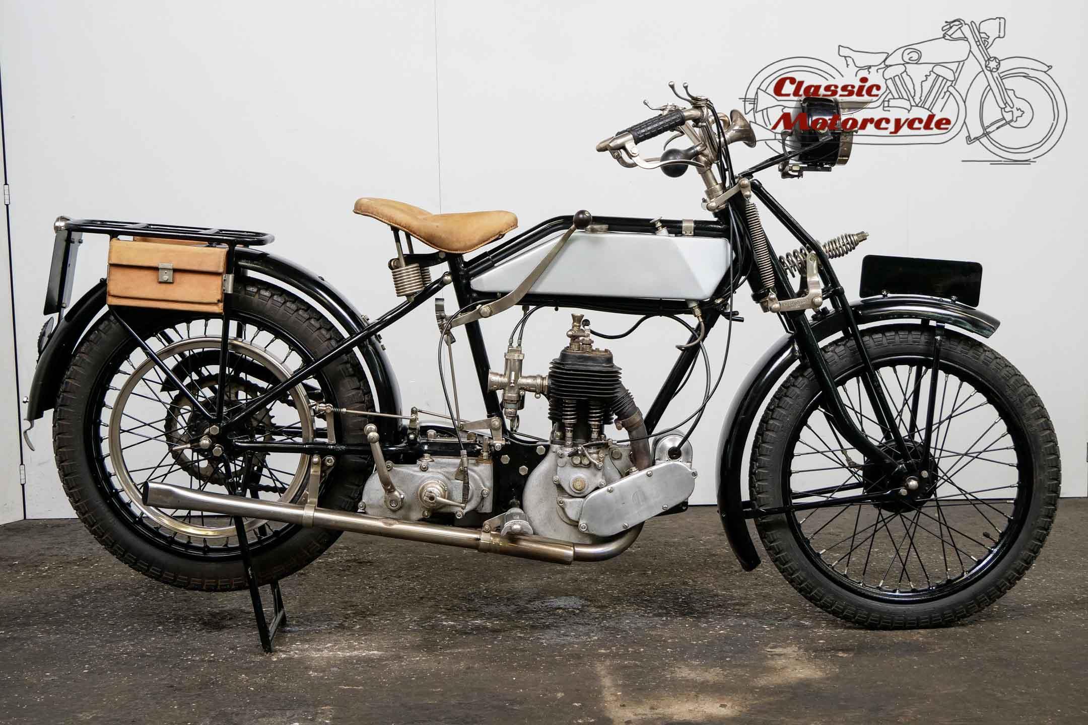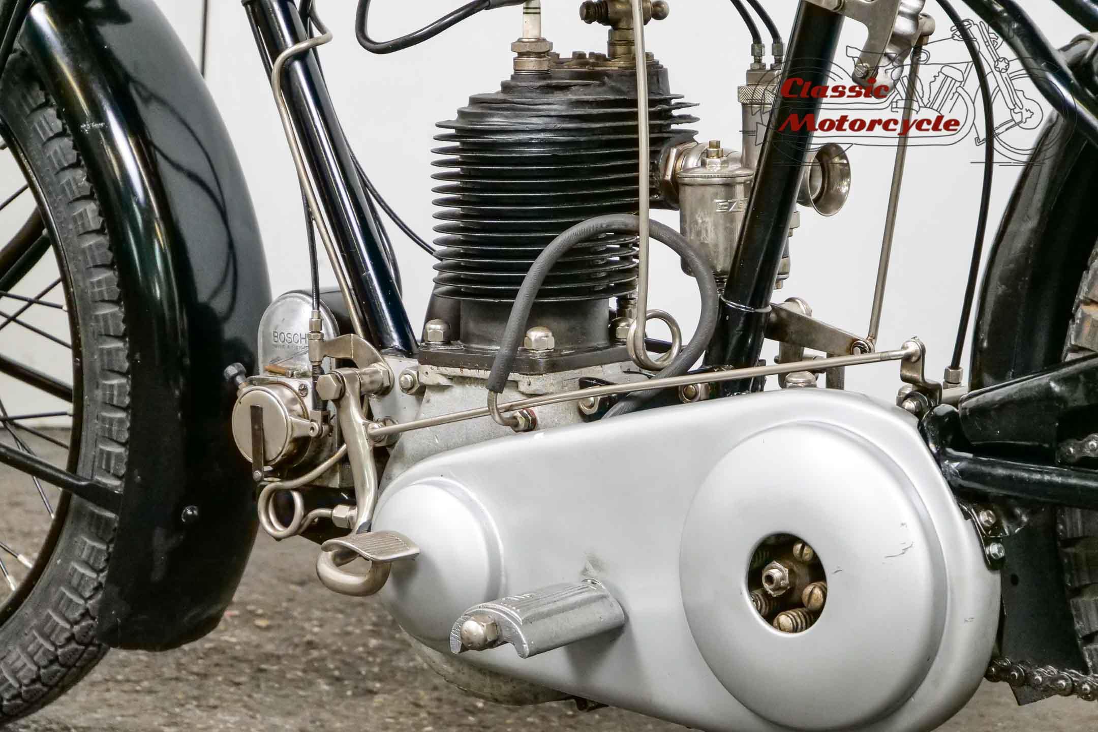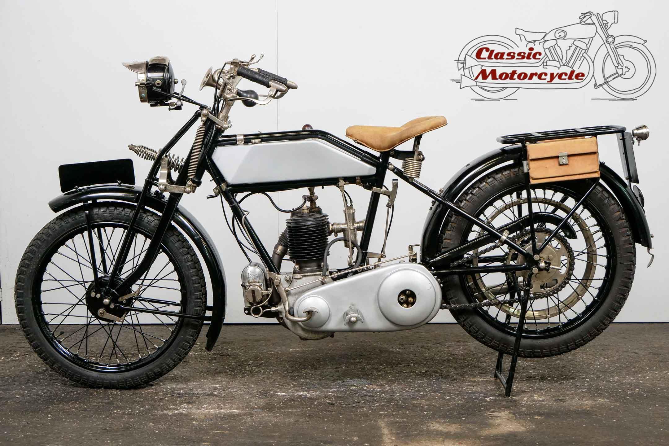 This unexplored machine offers a good entry into the 500cc class. The engine is from Fafnir and has 500cc. The carburetor is from Cozette, ignition is Bosch and the front fork is from Saxon. Acetylene lights and hand horn complete the machine. The motorcycle manufacturer is not known. The new owner has the exciting task of finding out the unexplored history. The machine is ready to ride and runs fine.