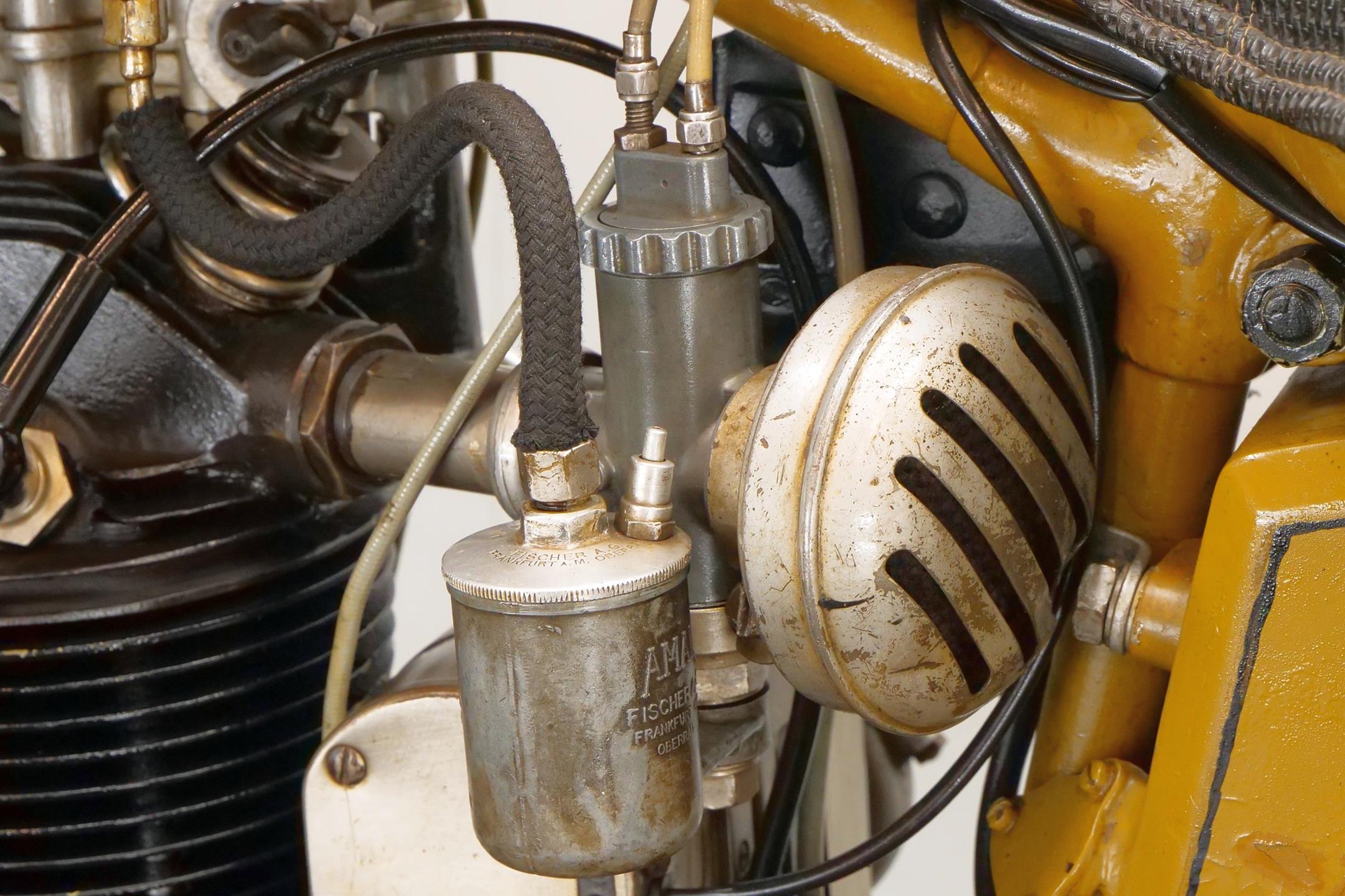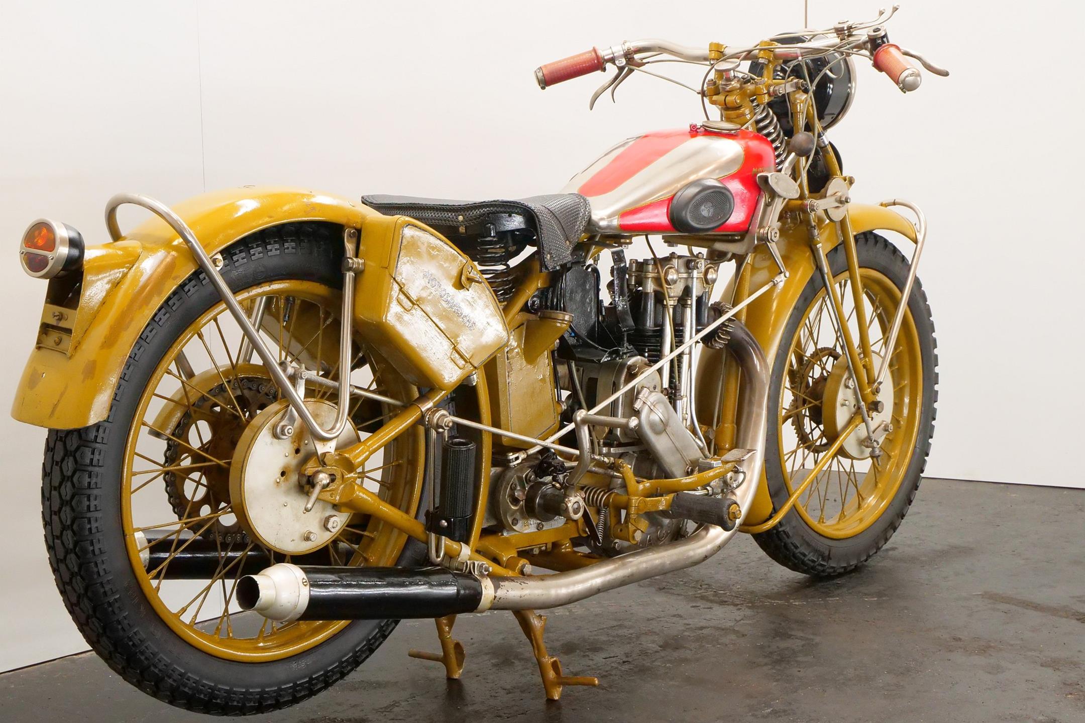 This 1928 ohv 350cc MAG engined bike is an older restoration and a good runner.
