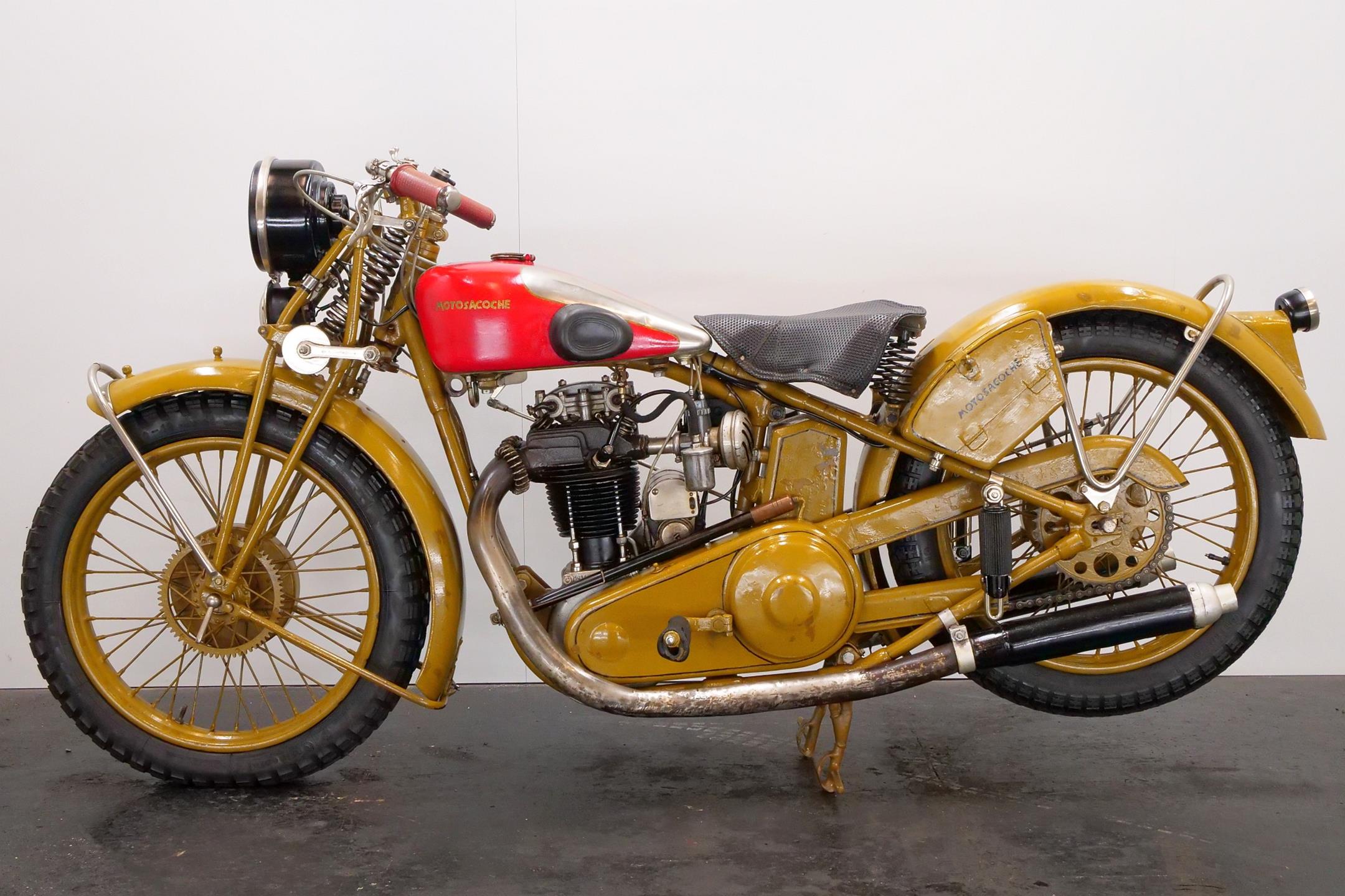 The brothers Henri and Armand Dufaux founded their company Condor in Genf in 1899. Motosacoche produced a wide variety of models during the year and produce bicycles as well. Motorsacoche produced under it´s own name motorcycles and was a well known engine suppliers for a plenty of other motorcycle brands. The engines had the name MAG - Motosacoche Acacias Genéve. 1930 Motorsacoche catalogue the single models with 250cc, 350cc and 500cc both available ohv and inlet over exhaust valve.