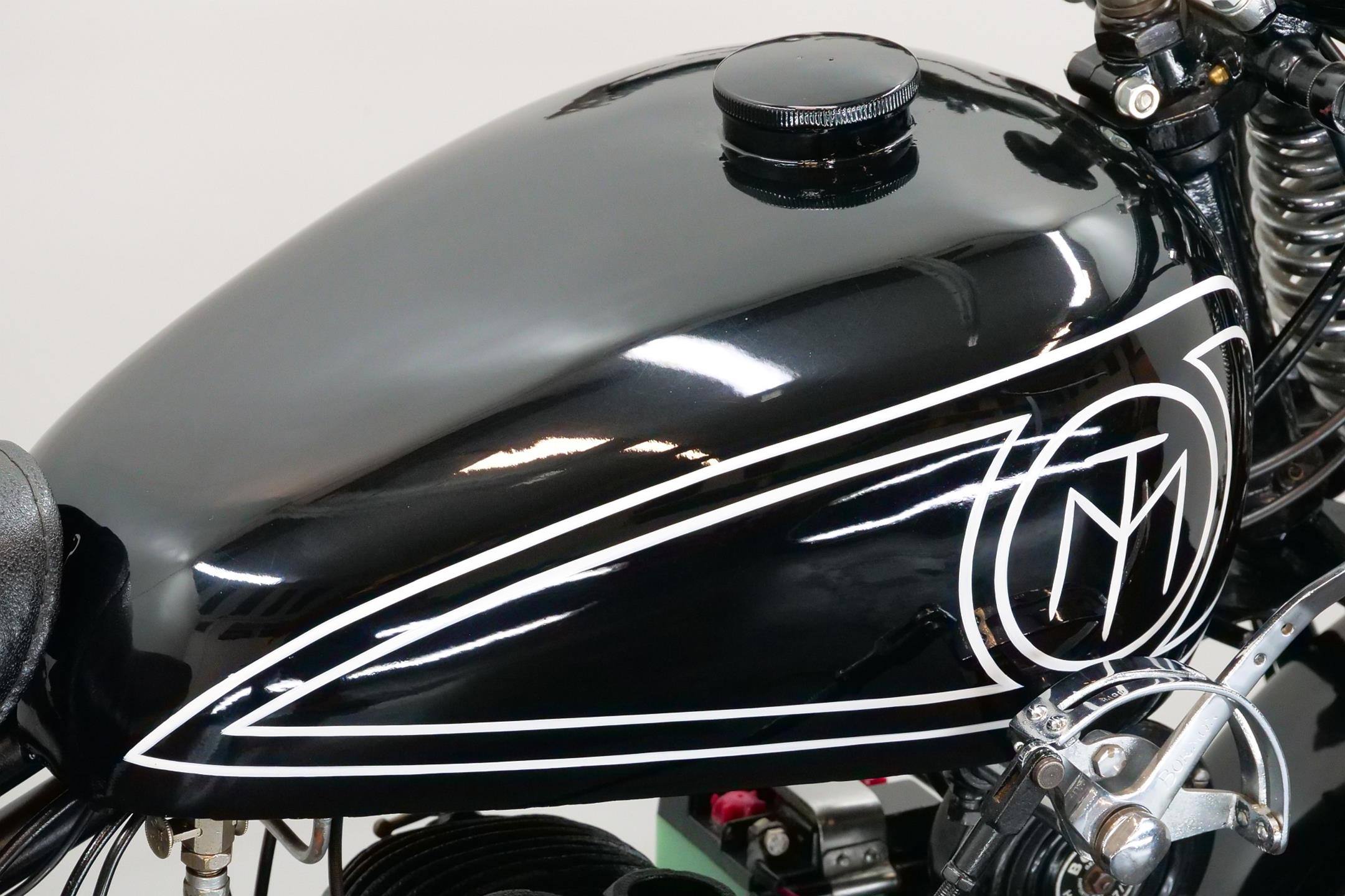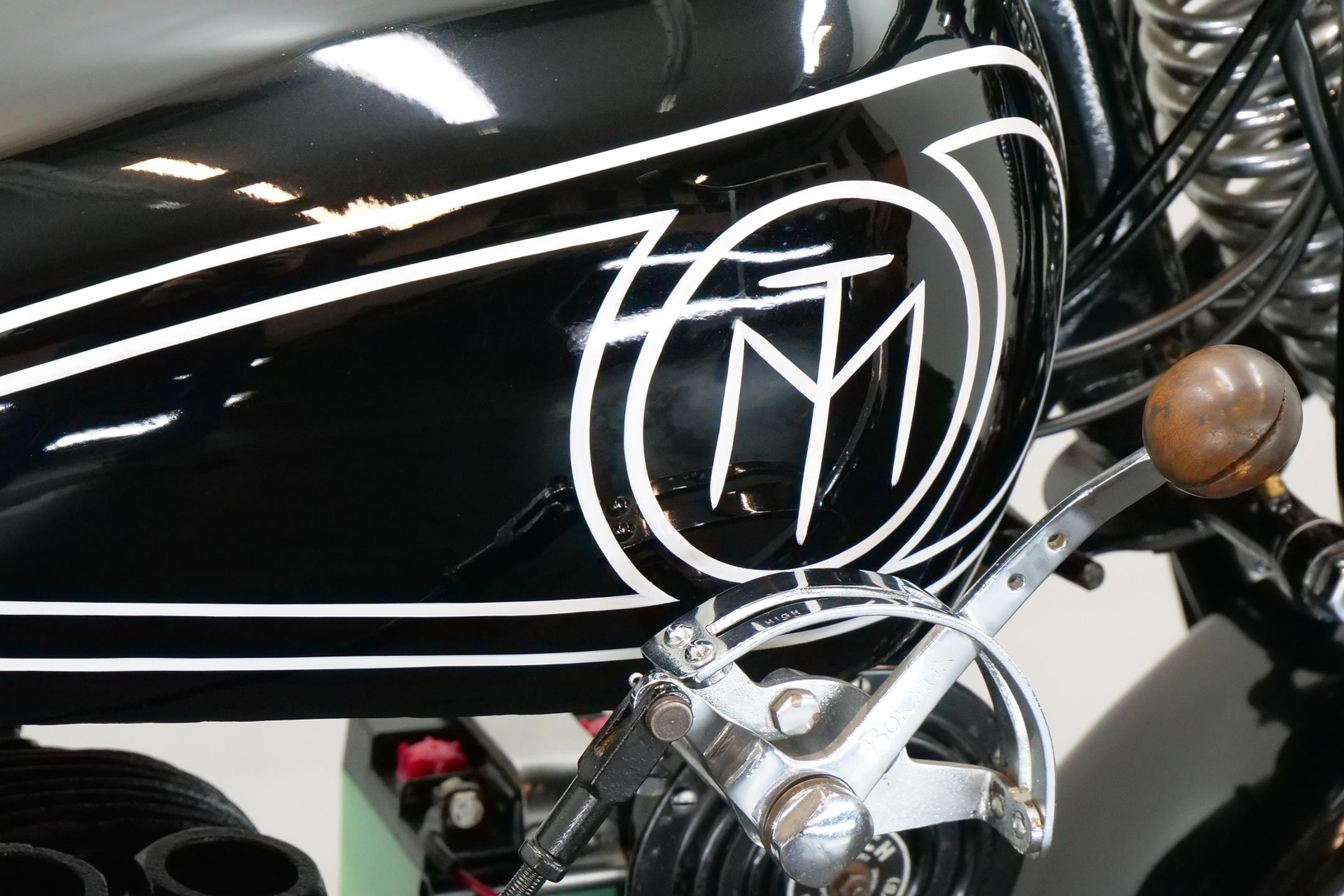 This M.T. is equipped with an Amal carburetor, Bosch MagDyno, 150mm diameter front and rear break, Tege seat, lighting set and a Burman 3 speed gearbox.
