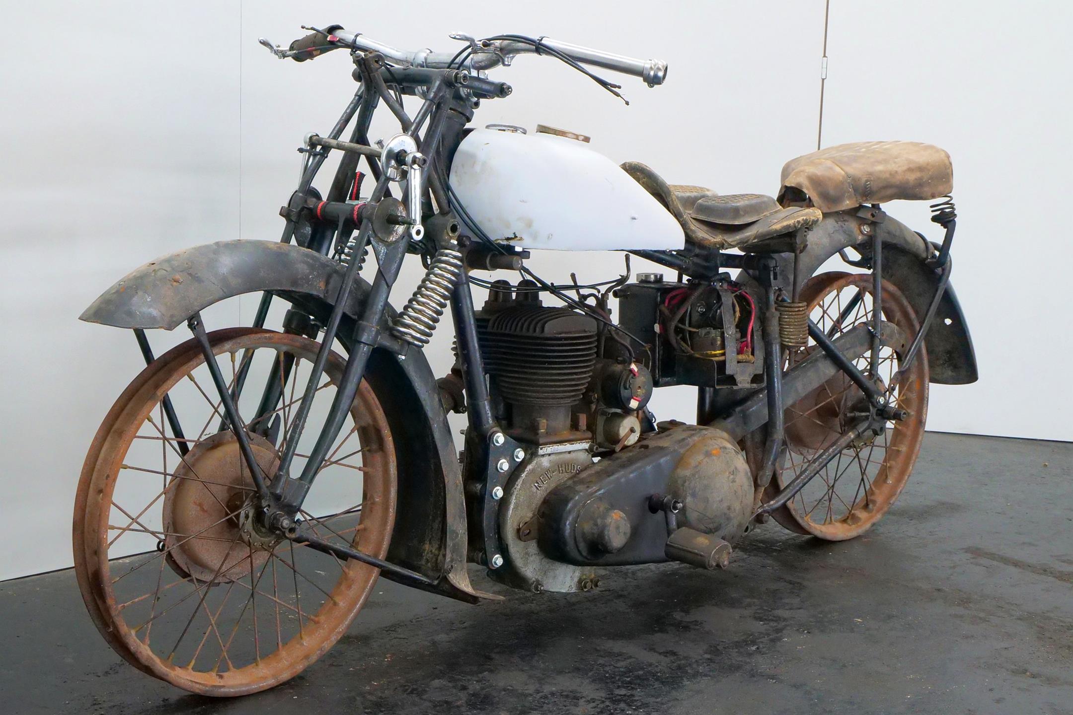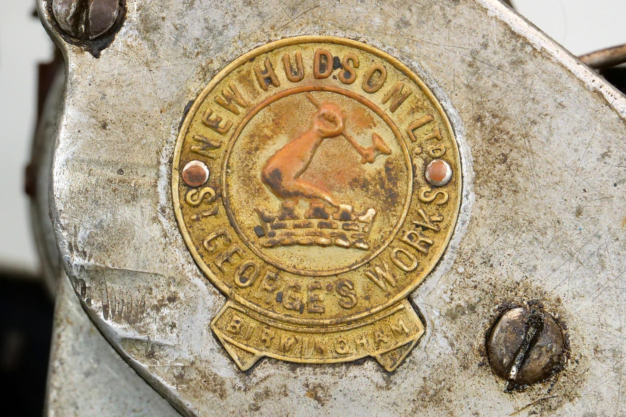 The New Hudson marque began in the late 1800's as a bicycle factory in Birmingham, England. The owner, George Patterson, made his first motorcycle in 1902, but as it was not a sales success, no more motor cycles were produced until 1910. From 1910 to 1932; with the exception of years 1915 to 1919 when WWI meant only munitions and bicycles were made; motorcycle production averaged about 2000 each year. The New Hudson range expanded between 1910 and 1915 using JAP engines, then the factory joined the war effort until 1919. As well as side-valve and OHV single-cylinder engines of 350 to 600 cc, they also built a 211 cc two-stroke and a number of three-wheelers with MAG engines. The company were always keen on gaining success in motor cycle sport and gained many good results. However lacking the finances of larger companies their best result in the Isle of Man TT was Jimmy Guthrie's second place in the Senior event in 1927.In 1932 due to the depression motor cycle production ceased as it was no longer profitable. However, the company continued to make bicycles, and also diversified into making the Girling brake systems for cars. In 1940 the bicycle factory began to produce an autocycle with a 98cc Villiers engine which was a success. The bicycle factory was purchased by BSA in 1943 and production continued under the New Hudson name. The Girling brake factory passed into the ownership of Joseph Lucas. After the second World War B.S.A. continued to make autocycles bearing the New Hudson name until 1957.