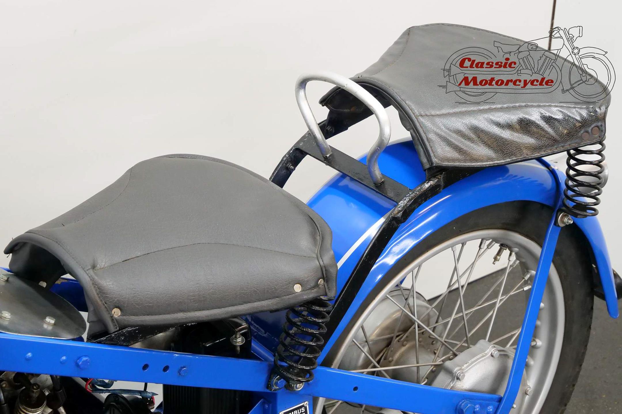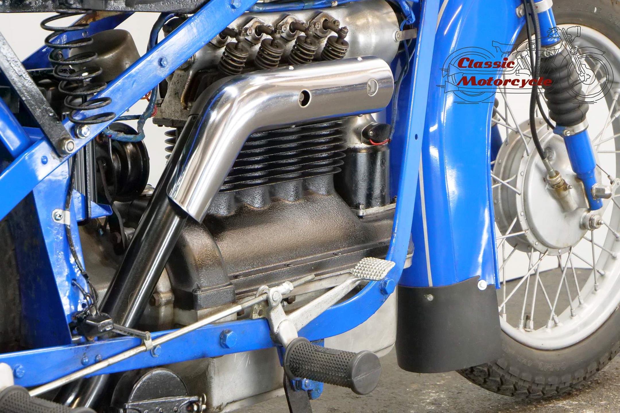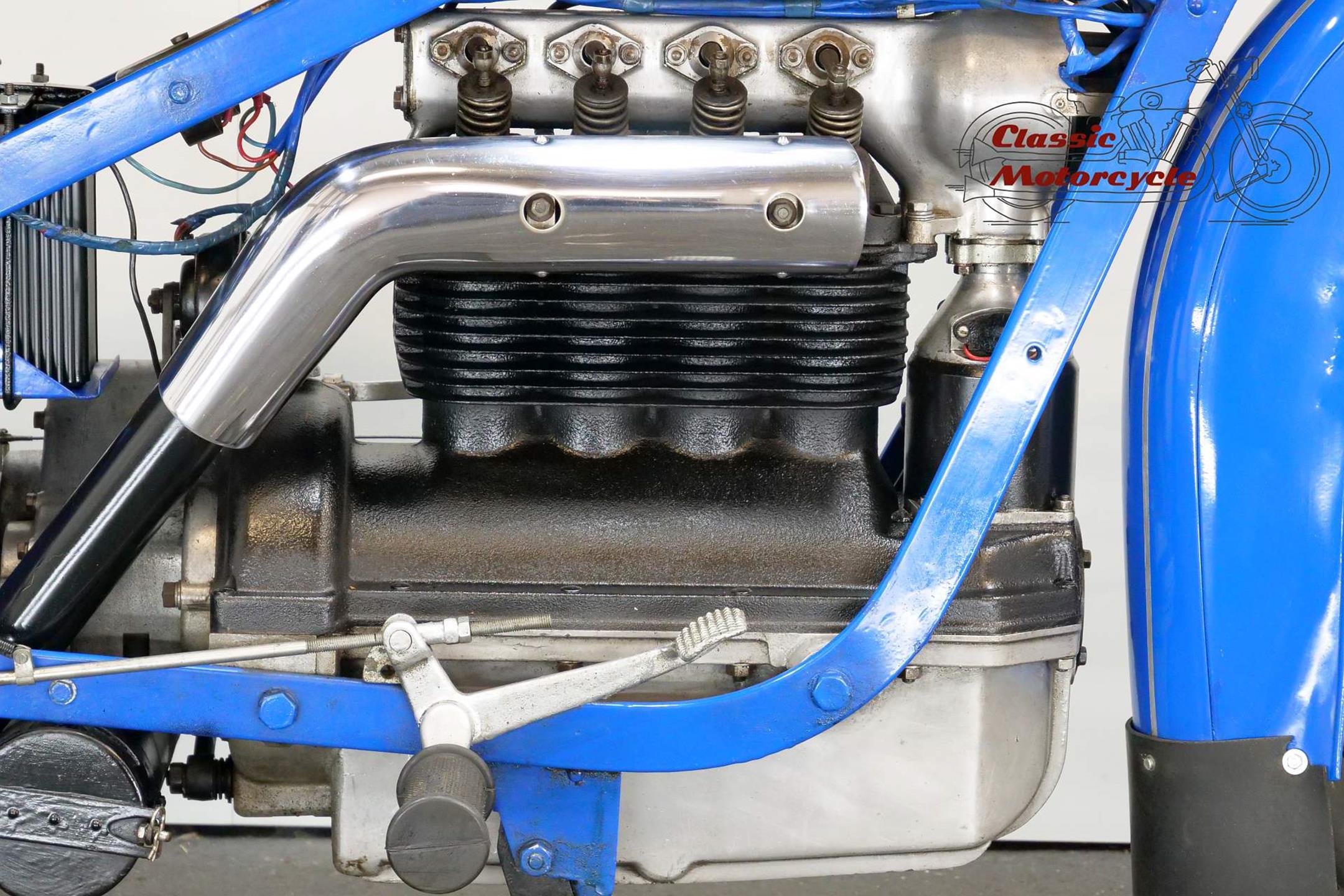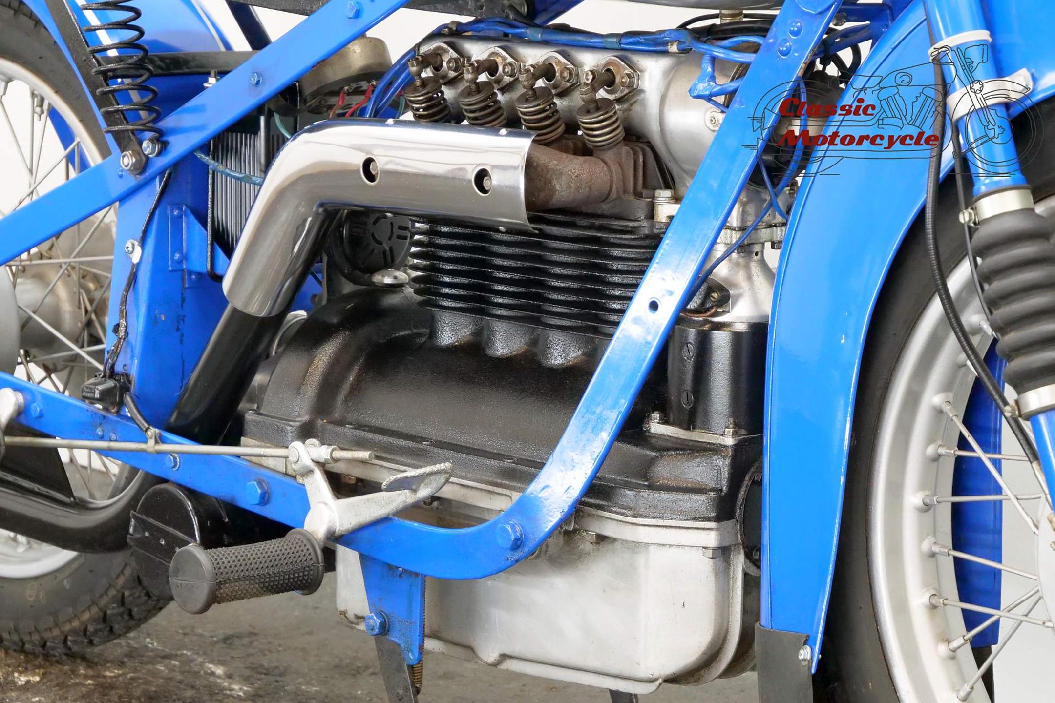 The result of diversification by the Danish vacuum cleaner manufacturer, Fisker & Nielsen, the Nimbus motorcycle first appeared in 1919. Unusually, only inline four-cylinder models were built. These were of advanced design, using shaft final drive and pressed steel frames right from the start of production, and pioneered the use of the telescopic front fork in the mid-1930s. The early models featured a distinctive tubular spine frame that doubled as the fuel tank, soon gaining the nickname 'stovepipe'. The low-compression Nimbus engine was noted for its smoothness and flexibility. In 1928, motorcycle production was suspended to enable the company to concentrate on producing its Nilfisk vacuum cleaners, and when the new Nimbus appeared in 1934 it was with a power unit that showed strong motor-industry influence, being constructed along car lines with integral crankcase/cylinder block in cast iron and a detachable alloy sump. The cast-iron one-piece cylinder head was topped by an alloy housing for the single overhead camshaft, which was driven by shaft-and-bevel gears. A single-plate clutch transmitted power to the three-speed gearbox. The original 'stovepipe' frame had been superseded by one made from flat spring steel, while foot change for the gearbox, a beefier front fork, and larger brakes had been added by the end of the 1930s. Nimbus was ahead of its time in many ways, introducing its first telescopic front fork in 1934 and adopting closed-circuit crankcase ventilation many years before the automobile industry. From then onwards the Nimbus changed little until series production was ended in 1954, once again to free up resources for the vacuum cleaner business. An additional few machines were assembled from spares between 1954 and 1959 but none have been made since then. Production was always on a limited scale, but such is the quality of the Nimbus that many remain in service today.