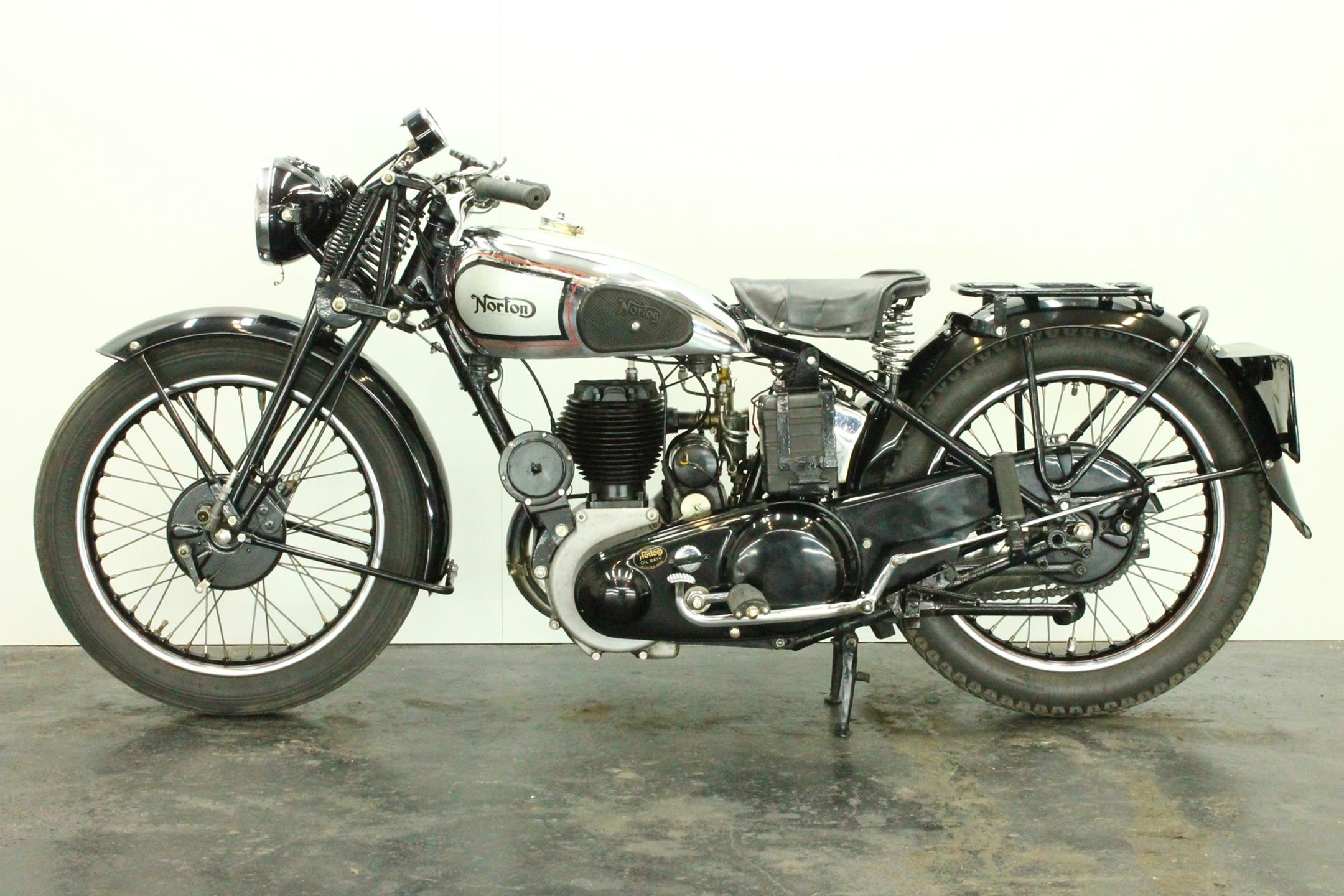 Norton relied on proprietary engines in its formative years - winning the inaugural Isle of Man TT with a Peugeot-engined machine - before introducing its own design of power unit in 1907. Designed by company founder James Lansdowne Norton himself, the long-stroke sidevalve single displaced 633cc, and the new model it powered became known as the 'Big 4'. Smaller capacity versions followed, and in 1911 the 500 adopted the classic 79x100mm bore and stroke dimensions which would characterise the half-litre (actually 490cc) Norton for the next 50 years. The 490cc engine was revised for 1914 and in 1921 the Model 16, as it had become known, received a new lower frame, becoming the 16H. Norton's trusty sidevalve would be continuously up-dated for the next 30-plus years, the engine arriving at its final incarnation, with dry sump lubrication and magneto repositioned behind the cylinder, in 1931. Many 16Hs saw service with Allied forces in WW2 before this long-running model took its final bow, together with the Big 4, in 1954.