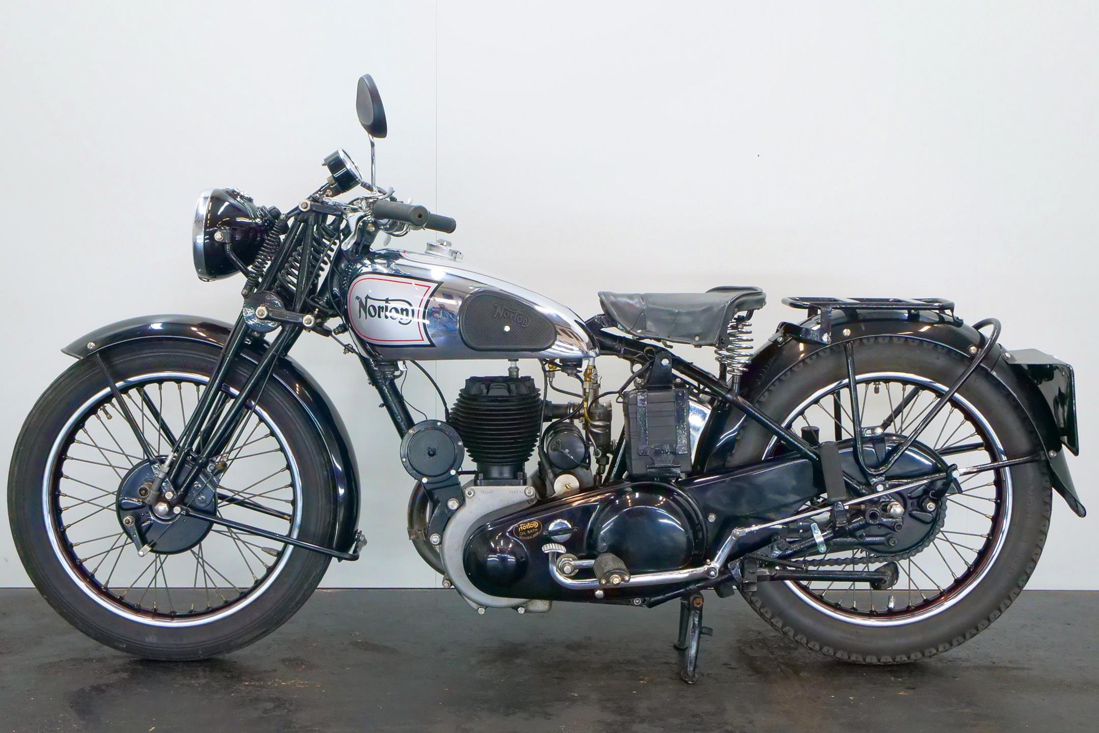 Norton relied on proprietary engines in its formative years - winning the inaugural Isle of Man TT with a Peugeot-engined machine - before introducing its own design of power unit in 1907. Designed by company founder James Lansdowne Norton himself, the long-stroke sidevalve single displaced 633cc, and the new model it powered became known as the 'Big 4'. Smaller capacity versions followed, and in 1911 the 500 adopted the classic 79x100mm bore and stroke dimensions which would characterise the half-litre (actually 490cc) Norton for the next 50 years. The 490cc engine was revised for 1914 and in 1921 the Model 16, as it had become known, received a new lower frame, becoming the 16H. Norton's trusty sidevalve would be continuously up-dated for the next 30-plus years, the engine arriving at its final incarnation, with dry sump lubrication and magneto repositioned behind the cylinder, in 1931. Many 16Hs saw service with Allied forces in WW2 before this long-running model took its final bow, together with the Big 4, in 1954.