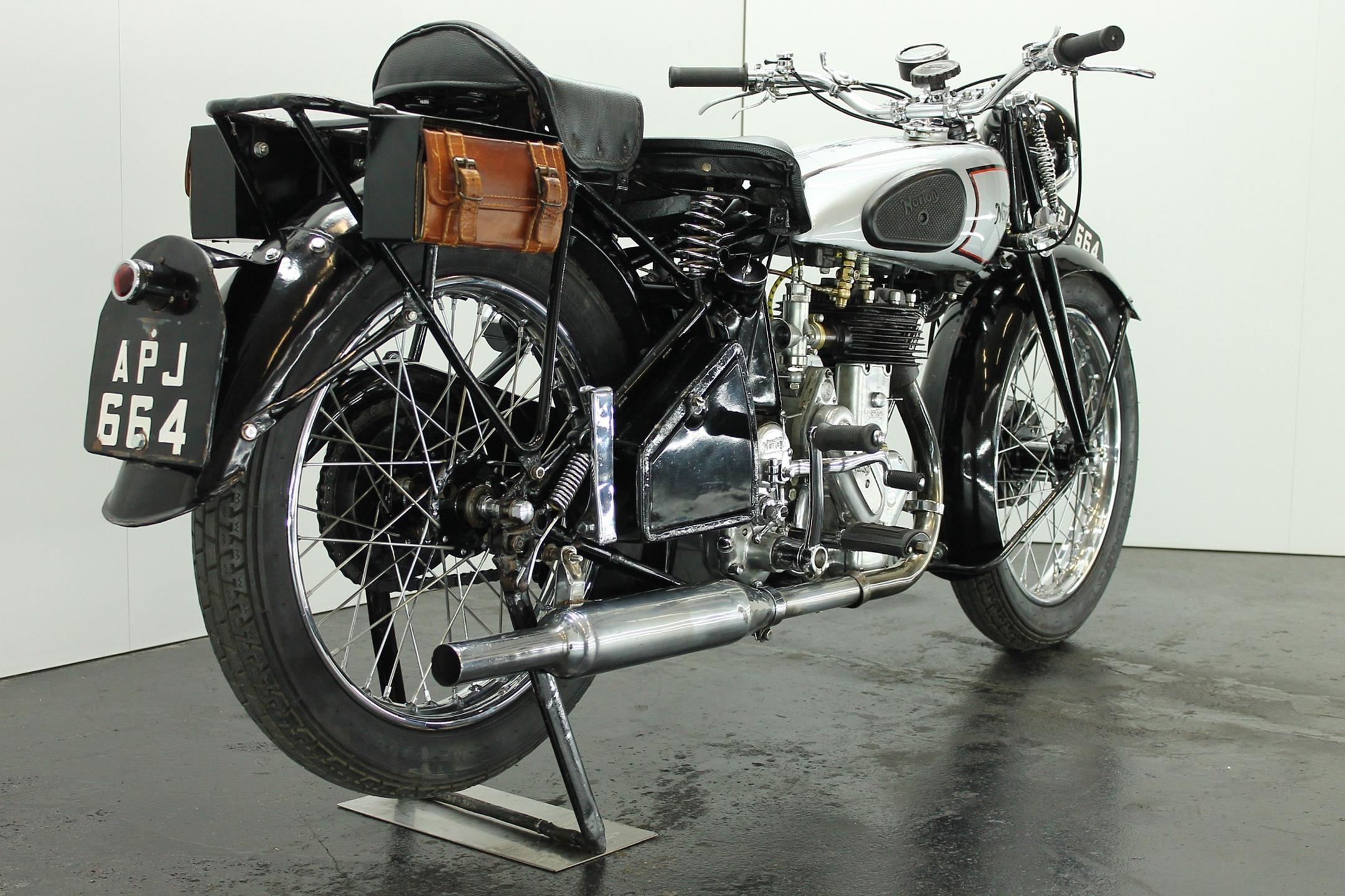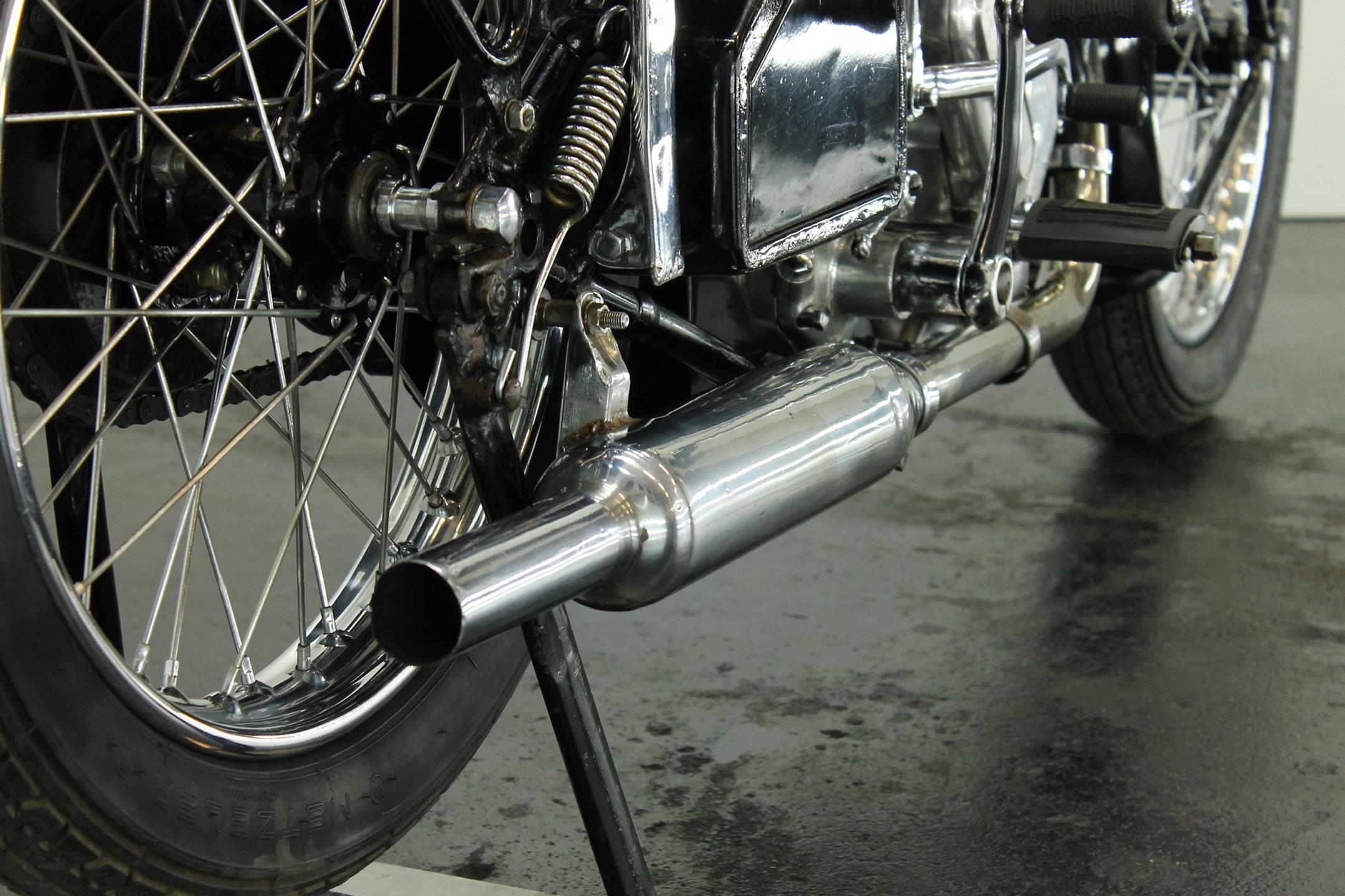 Norton relied on proprietary engines in its formative years - winning the inaugural Isle of Man TT with a Peugeot-engined machine - before introducing its own design of power unit in 1907. Designed by company founder James Lansdowne Norton himself, the long-stroke sidevalve single displaced 633cc, and the new model it powered became known as the 'Big 4'. Smaller capacity versions followed, and in 1911 the 500 adopted the classic 79x100mm bore and stroke dimensions which would characterise the half-litre (actually 490cc) Norton for the next 50 years. The 490cc engine was revised for 1914 and in 1921 the Model 16, as it had become known, received a new lower frame, becoming the 16H. Norton's trusty sidevalve would be continuously up-dated for the next 30-plus years, the engine arriving at its final incarnation, with dry sump lubrication and magneto repositioned behind the cylinder, in 1931. Many 16Hs saw service with Allied forces in WW2 before this long-running model took its final bow, together with the Big 4, in 1954.