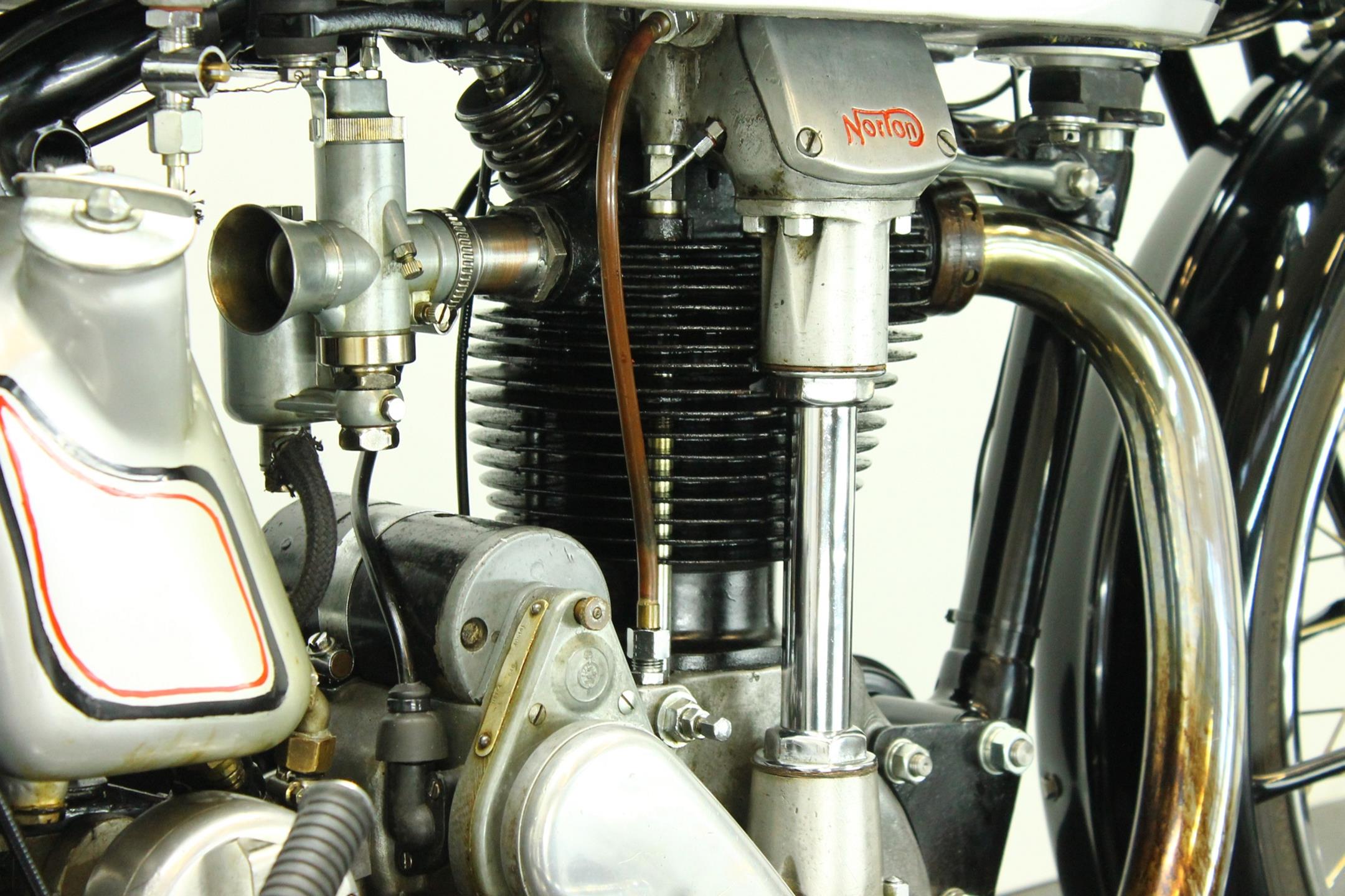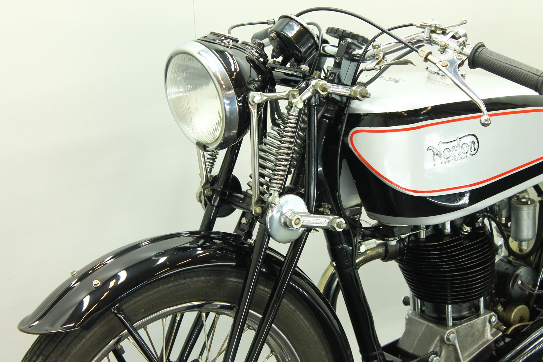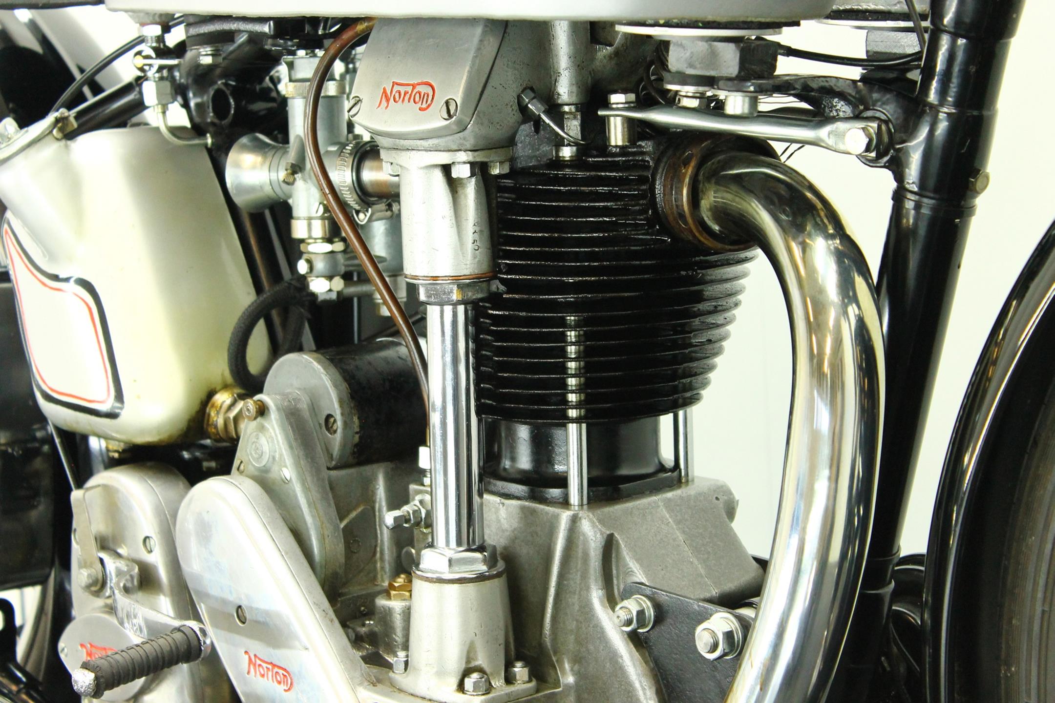 The 1930 Norton model range introduced two new OHC engines, with the 500 at 79 x 100mm bore and stroke and a 350 Junior version at 71 x 88 mm. They were designated the CS1 and CJ. Using the old ‘three stay’ frame and three speed Sturmey Archer gearbox the new models were yet to be fully ‘tweaked’ and their victories that season were few and far between. By 1931 Norton had ironed out the problems of the previous year and the ‘Cammy’ Nortons swept the board, with Tim Hunt taking the first ever ‘double’ at the TT races with a first in both the Senior and Junior races. With riders of the calibre of Hunt, Stanley Woods, Jimmie Simpson and Jimmie Guthrie, the Norton race machines won practically every TT and continental race during the early 1930s. And when the likes of ‘Crasher’ White, Freddie Frith and Harold Daniells joined the team, Norton continued to dominate the world of motorcycle racing during the decade. In 1932, the 500cc International, as it was now called, was given the Model number ‘30’ and the 350 junior was designated the Model 40. In keeping with Norton’s dictum of “we only race standard products”, the machines available to the public were very similar to the works machines and many ‘privateers’ enjoyed racing their ‘Inters’ at numerous race meetings all over the world.
