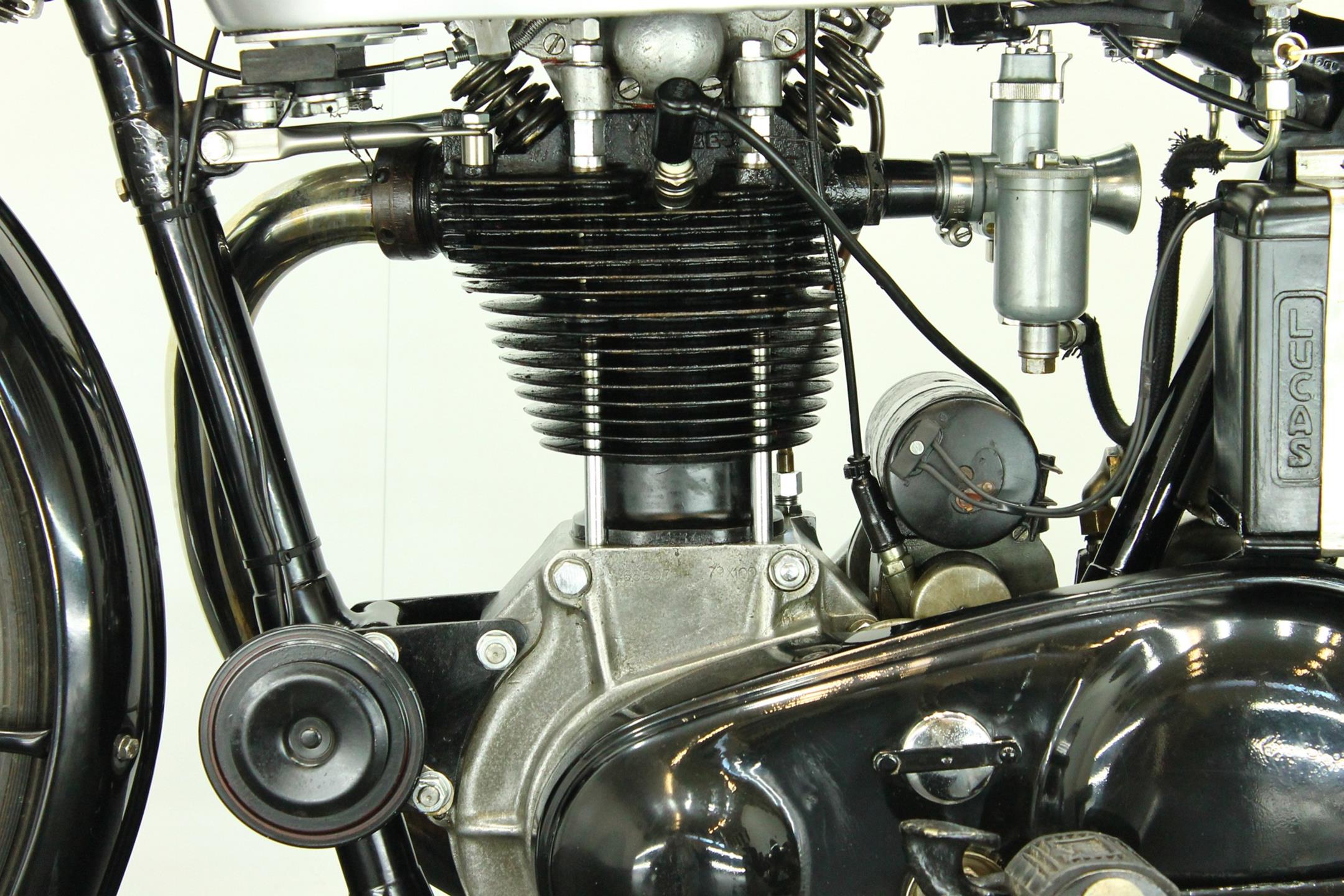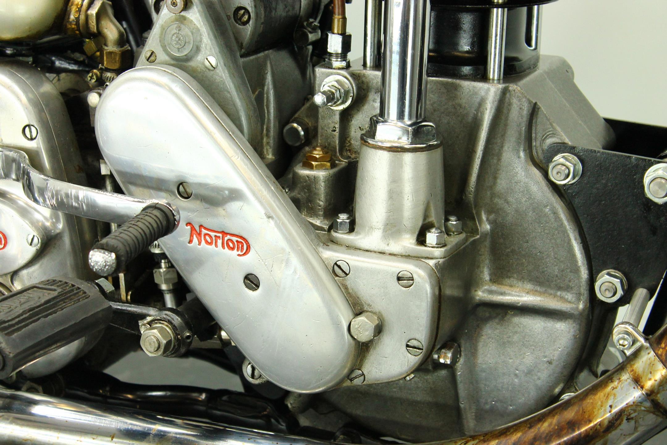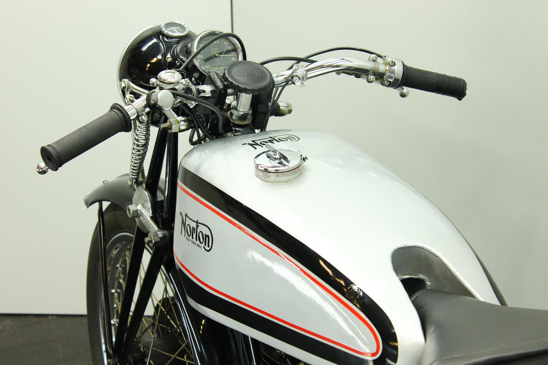 The 1930 Norton model range introduced two new OHC engines, with the 500 at 79 x 100mm bore and stroke and a 350 Junior version at 71 x 88 mm. They were designated the CS1 and CJ. Using the old ‘three stay’ frame and three speed Sturmey Archer gearbox the new models were yet to be fully ‘tweaked’ and their victories that season were few and far between. By 1931 Norton had ironed out the problems of the previous year and the ‘Cammy’ Nortons swept the board, with Tim Hunt taking the first ever ‘double’ at the TT races with a first in both the Senior and Junior races. With riders of the calibre of Hunt, Stanley Woods, Jimmie Simpson and Jimmie Guthrie, the Norton race machines won practically every TT and continental race during the early 1930s. And when the likes of ‘Crasher’ White, Freddie Frith and Harold Daniells joined the team, Norton continued to dominate the world of motorcycle racing during the decade. In 1932, the 500cc International, as it was now called, was given the Model number ‘30’ and the 350 junior was designated the Model 40. In keeping with Norton’s dictum of “we only race standard products”, the machines available to the public were very similar to the works machines and many ‘privateers’ enjoyed racing their ‘Inters’ at numerous race meetings all over the world.
