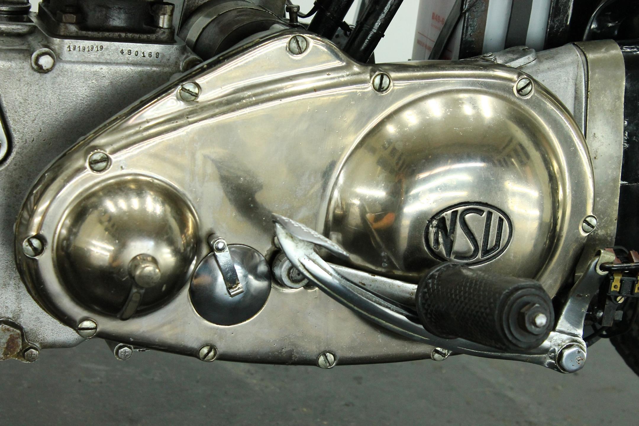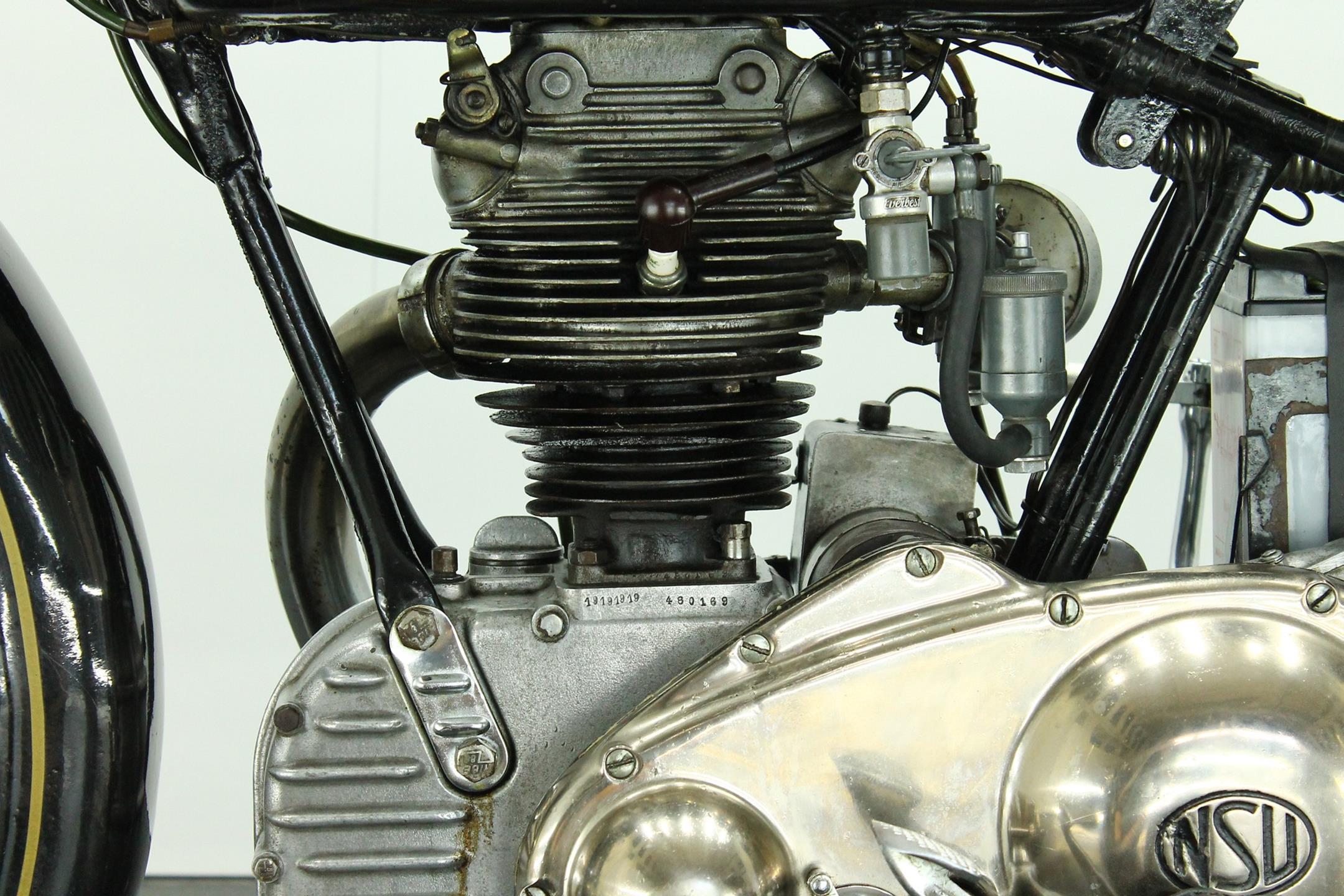 NSU was one of the biggest motorcycle manufacturers in Germany. NSU has been founded in 1873 and produced bicycles in first step. At the beginning of the 1900 century NSU was very involved in developed in motorcycles and begun to produce bikes. NSU was one of the first manufacturer of motorized bikes in Germany. They develop it´s motorcycle in amazing speed. In 1933 NSU catalogued the model NSU 251 OSL first time. This model has been produced from 1933 – 1943 and resume the production from 1947. The last 251 OSL left it´s work 1952.