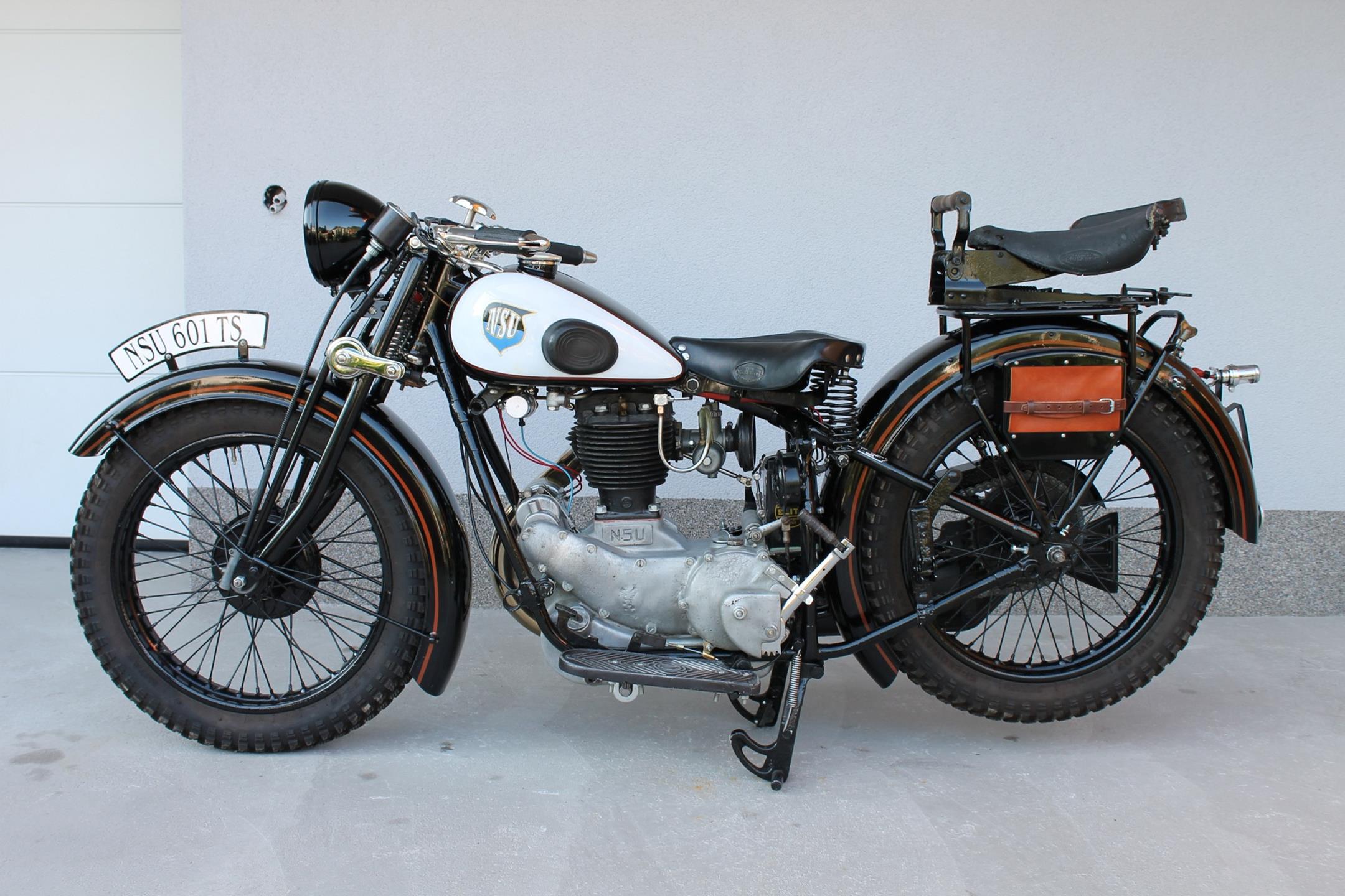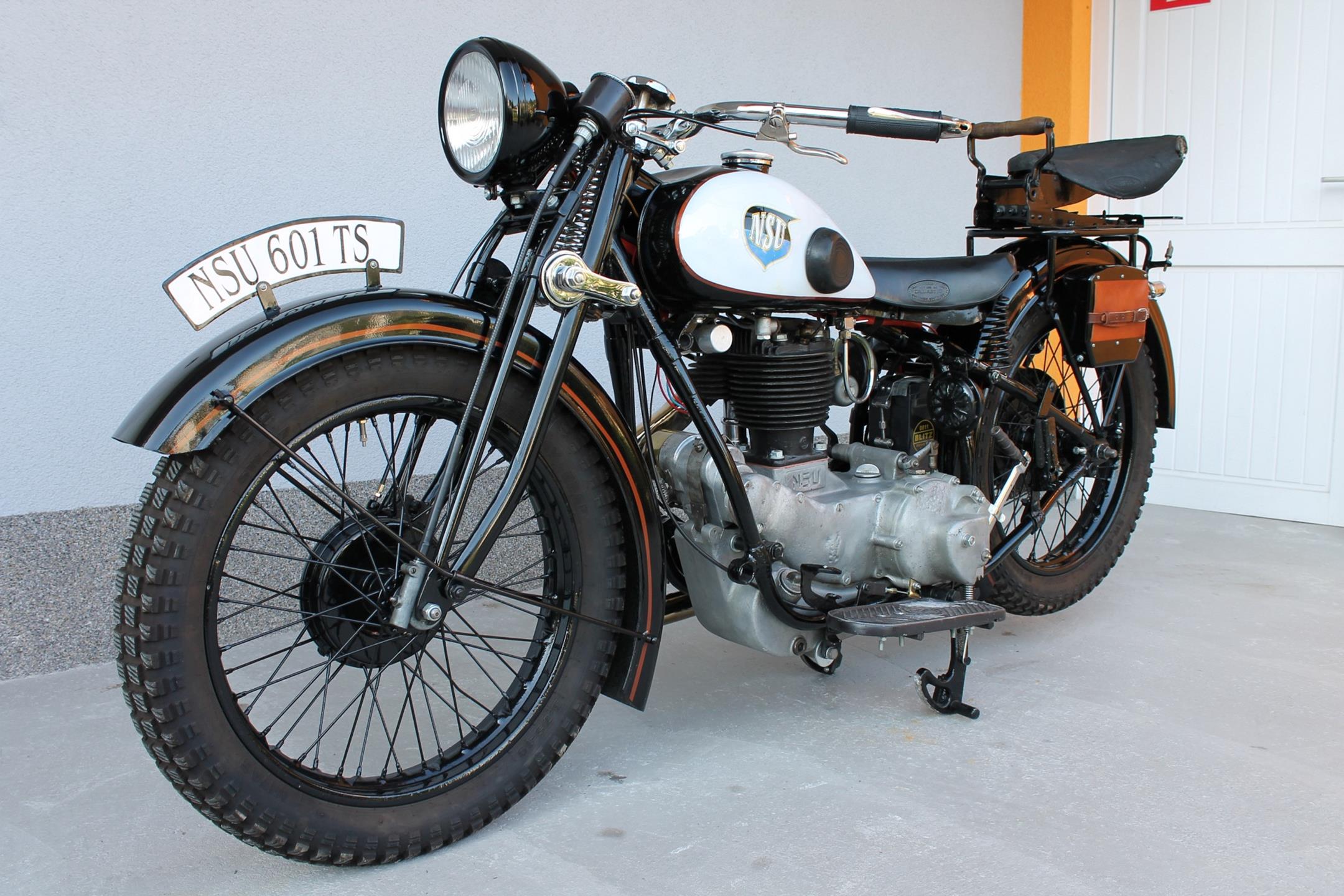 The original company name was "Mechanische Werkstätte zur Herstellung von Strickmaschinen" and was founded by Christian Schmidt and Heinrich Stoll in 1873. 1892, the company was renamed NSU. NSU was decisive role in the development of motorcycle technology. Mid-1950s NSU was one of the largest two-wheeler manufacturer in the world. From 1930 NSU 601 TS was made. The bike was sold mainly as a sidecar for the transport of persons or goods. Reason was the engine with a displacement of 592cc had the high power reserves. Many authorities such as the police, the military and imperial post opted due to the robustness and the good handling of difficult terrain. Due to the robustness and high tractive power she was very popular with touring riders. The NSU 601 TS was produced until 1939. That was the last of the series-produced motorcycle with side valve. The electrical system was made by Bosch. The engine had a bore diameter of 87.5 mm and a stroke of 99 mm. The 601 TS brought it with its 4speed gearbox and its 165kg at 105km / h