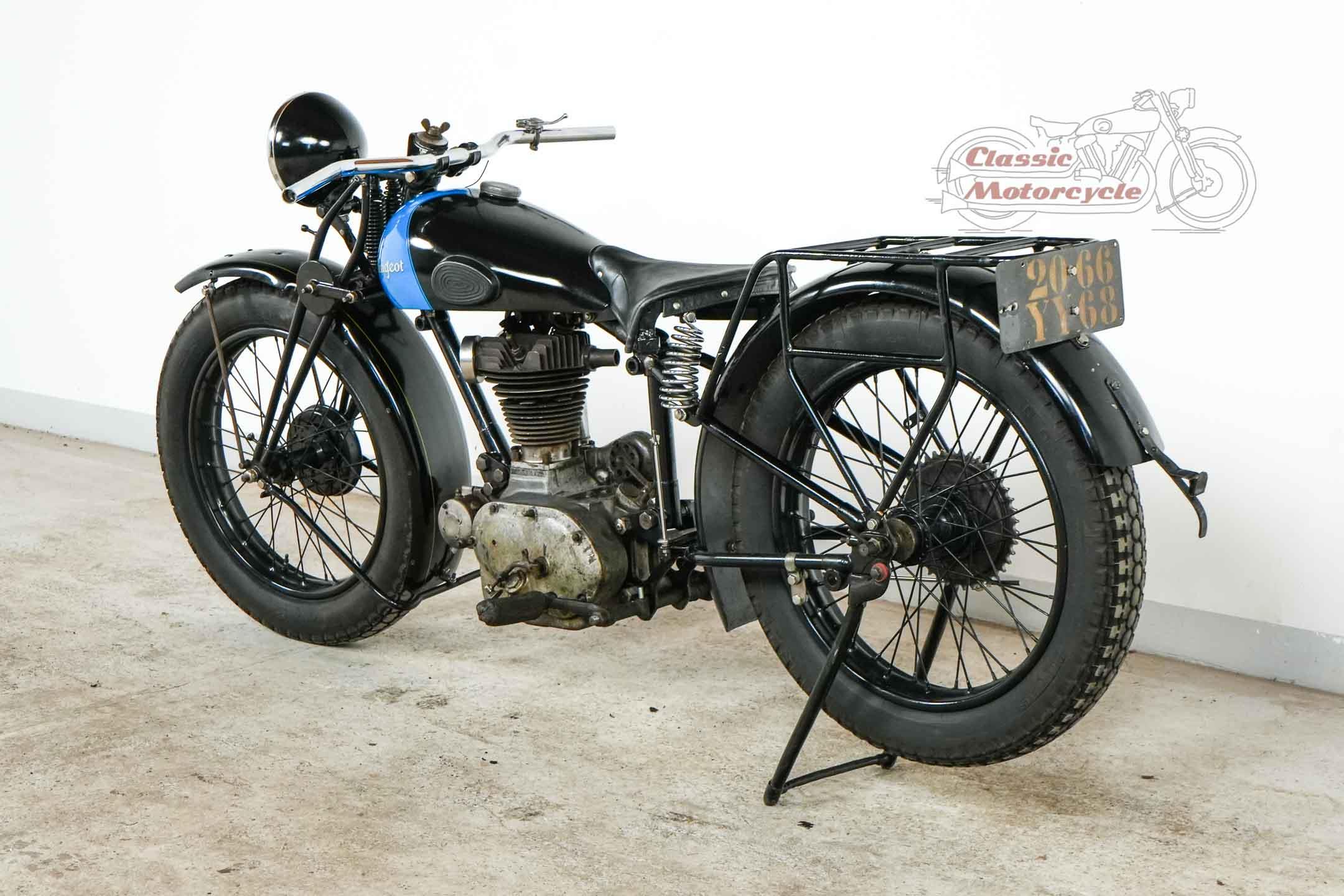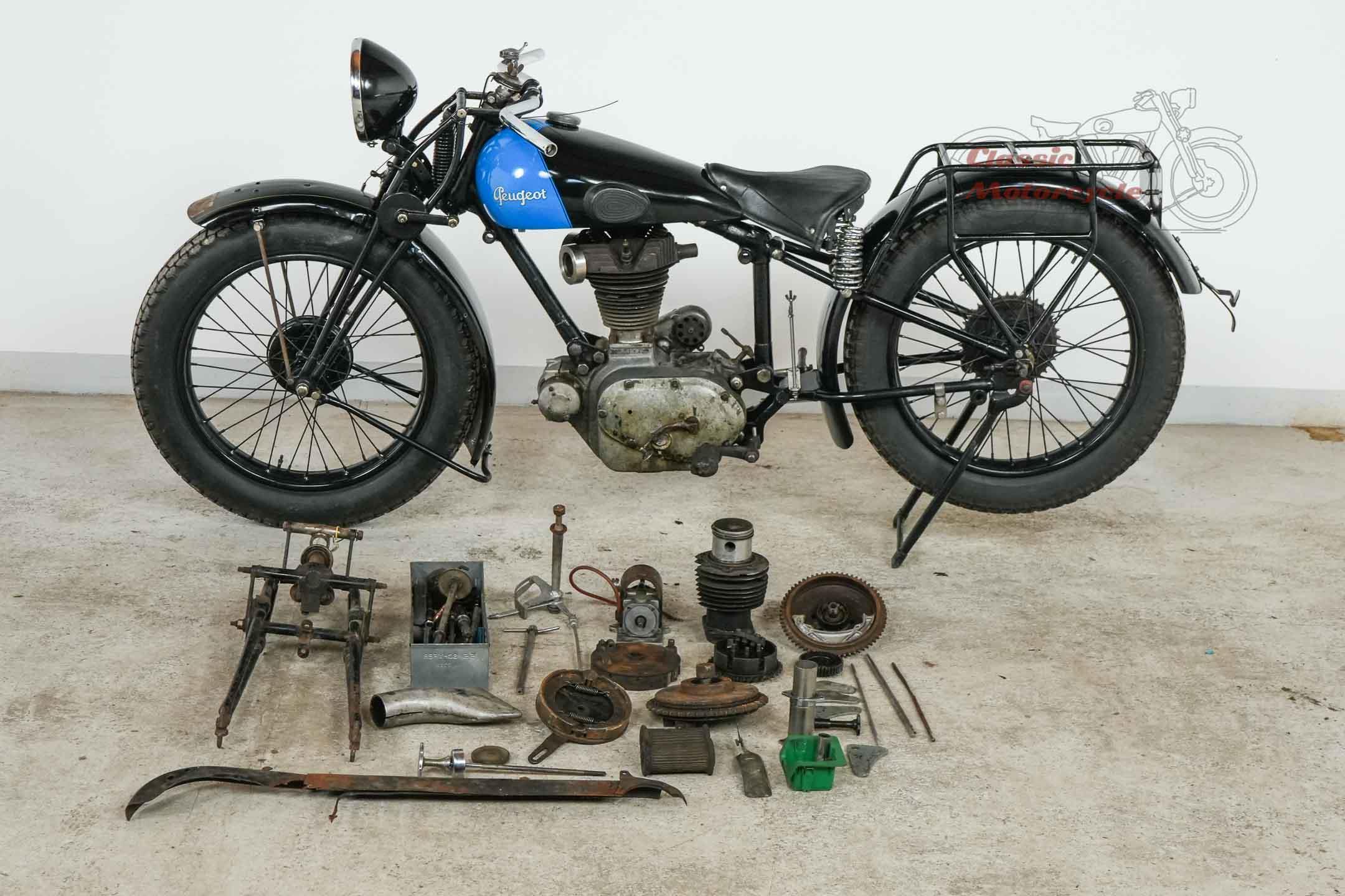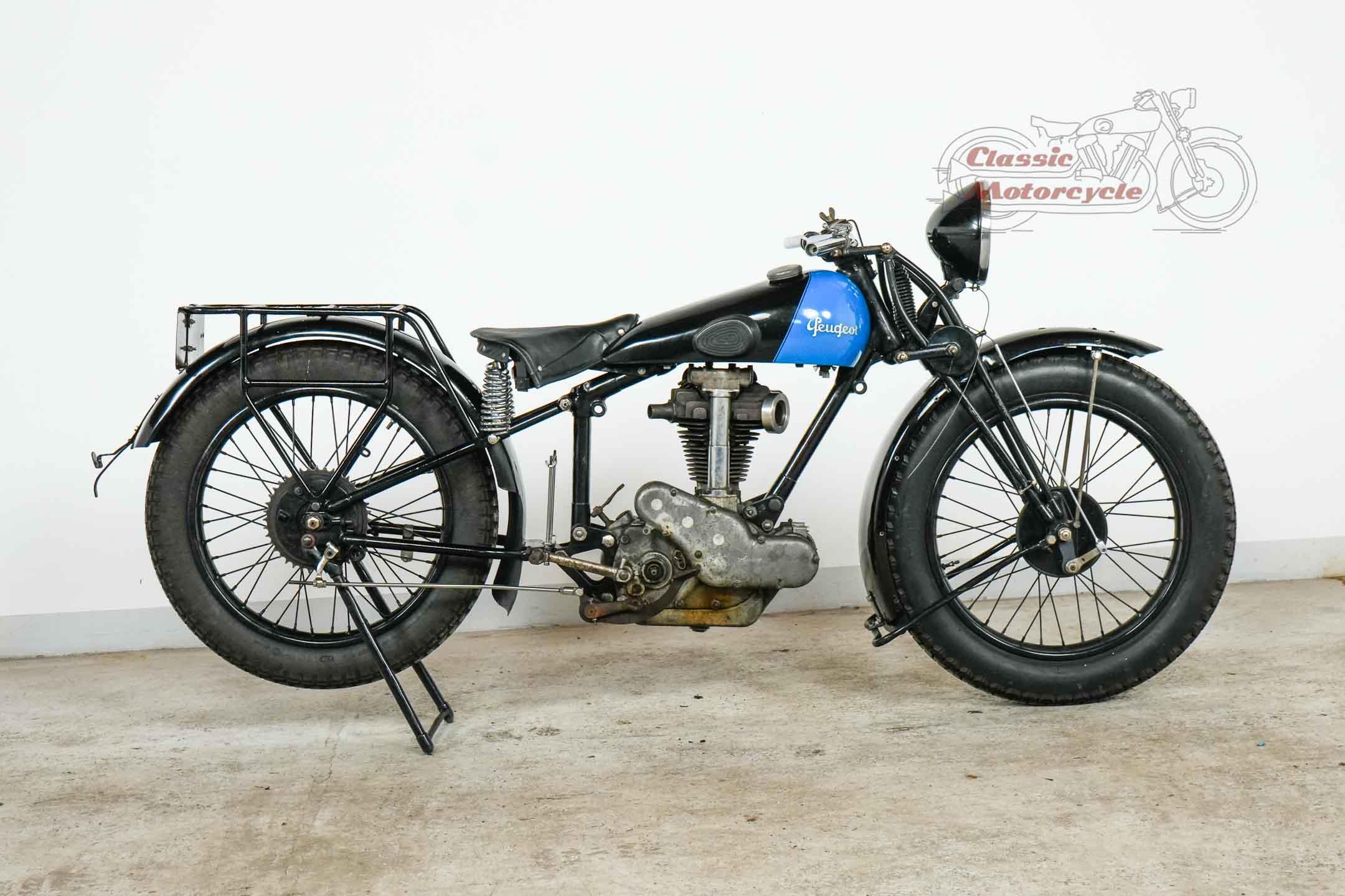For sale is a rare 1928 Peugeot P105 with a 350cc single-cylinder OHV engine. This pre-war model is particularly notable for its rare twin-exhaust configuration, making it a highly desirable collector’s piece.