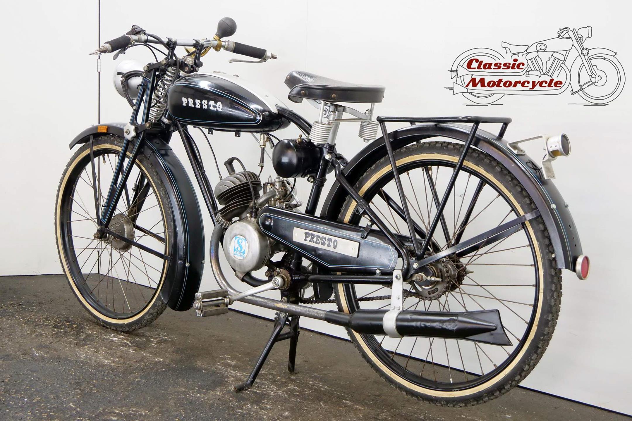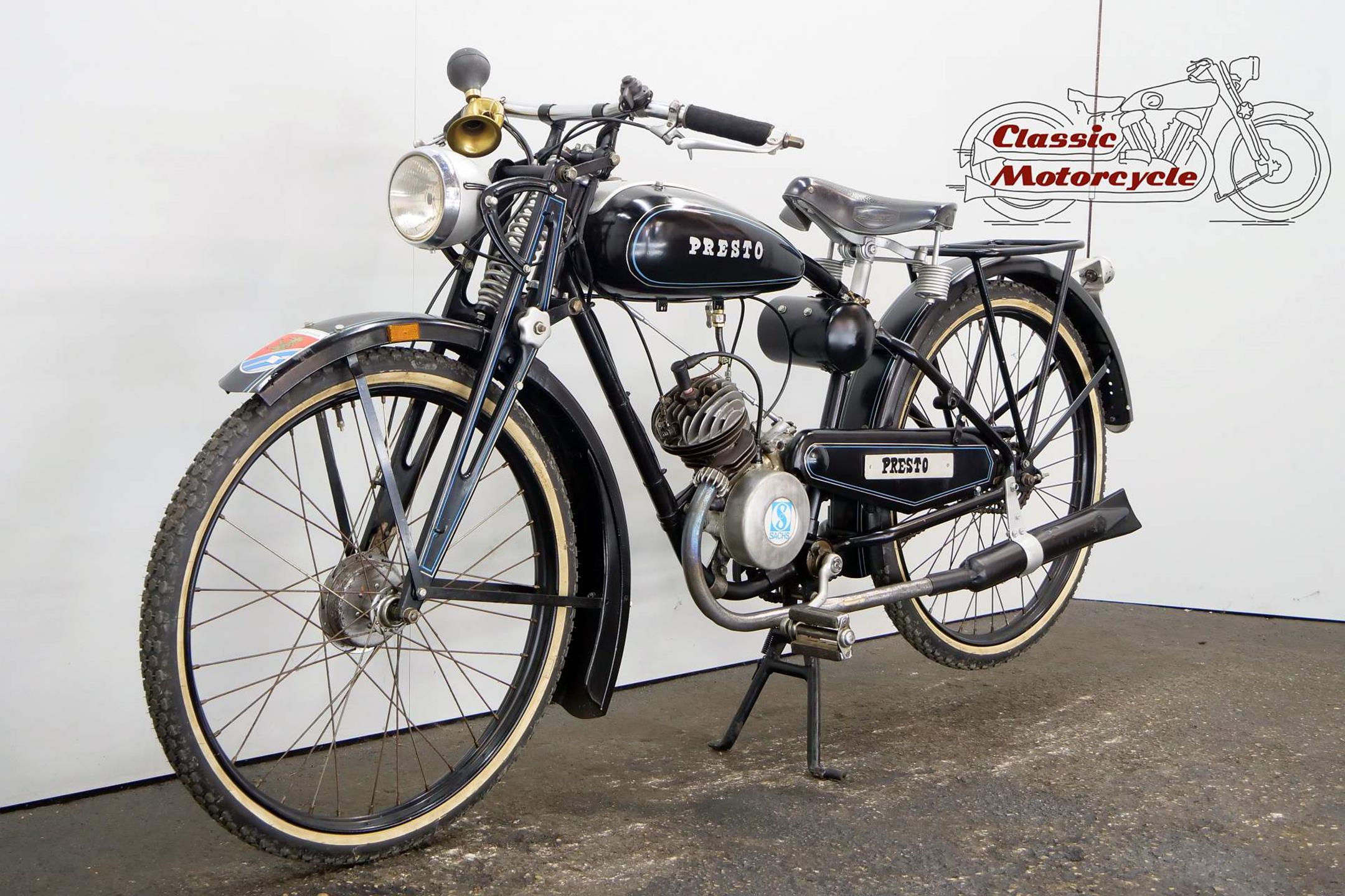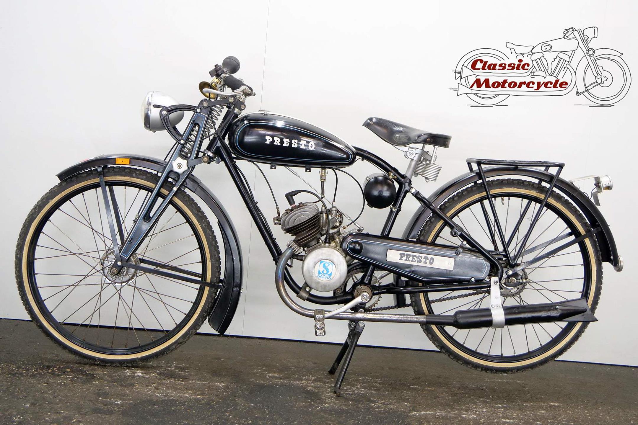 At the beginning of the 1930s, small Fichtel & Sachs engines with 74cc capacity were now available. As early as the 1920s, Presto had gained some experience with the DKW Reichsfahrtmotor and from 1930 became one of the first producers of motorized bicycles. Numerous other models followed. With the use of larger 98cc engines, Presto also briefly used ILO engines with kick starters for its own vehicles in 1938-1939. At the end of the 1930s, Presto also had to switch to armaments production in two departments. In addition to bicycles, track chains and transmissions for Wehrmacht armored vehicles were also manufactured. From 1943, bicycle production was completely discontinued in favor of chain production, which remained almost the only field of activity for Prestowerke until the end of the war in 1945. In the end, the remaining materials had to be handed over to the Elite Diamant-Werke in Siegmar-Schönau, for a long time one of the biggest competitors of the Presto-Werke.