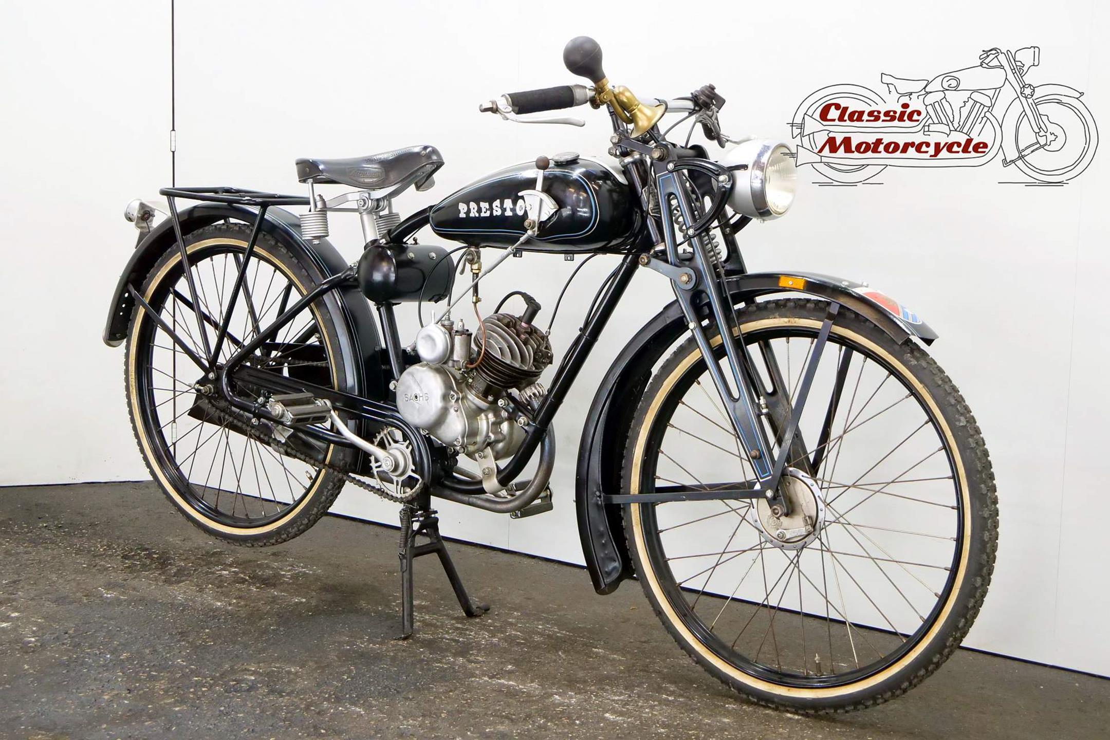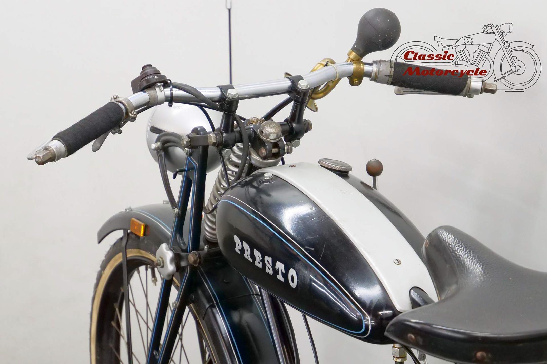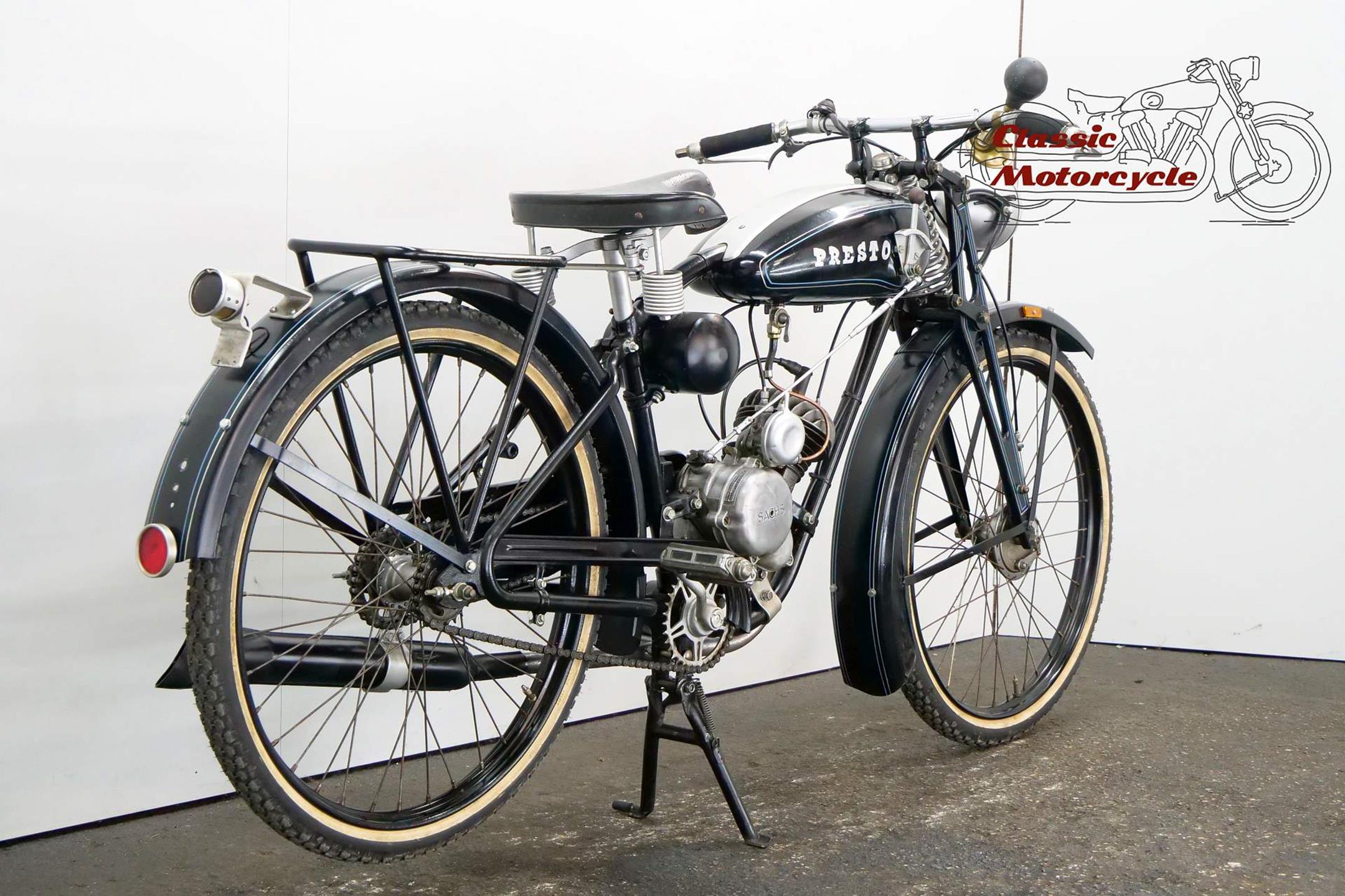 At the beginning of the 1930s, small Fichtel & Sachs engines with 74cc capacity were now available. As early as the 1920s, Presto had gained some experience with the DKW Reichsfahrtmotor and from 1930 became one of the first producers of motorized bicycles. Numerous other models followed. With the use of larger 98cc engines, Presto also briefly used ILO engines with kick starters for its own vehicles in 1938-1939. At the end of the 1930s, Presto also had to switch to armaments production in two departments. In addition to bicycles, track chains and transmissions for Wehrmacht armored vehicles were also manufactured. From 1943, bicycle production was completely discontinued in favor of chain production, which remained almost the only field of activity for Prestowerke until the end of the war in 1945. In the end, the remaining materials had to be handed over to the Elite Diamant-Werke in Siegmar-Schönau, for a long time one of the biggest competitors of the Presto-Werke.