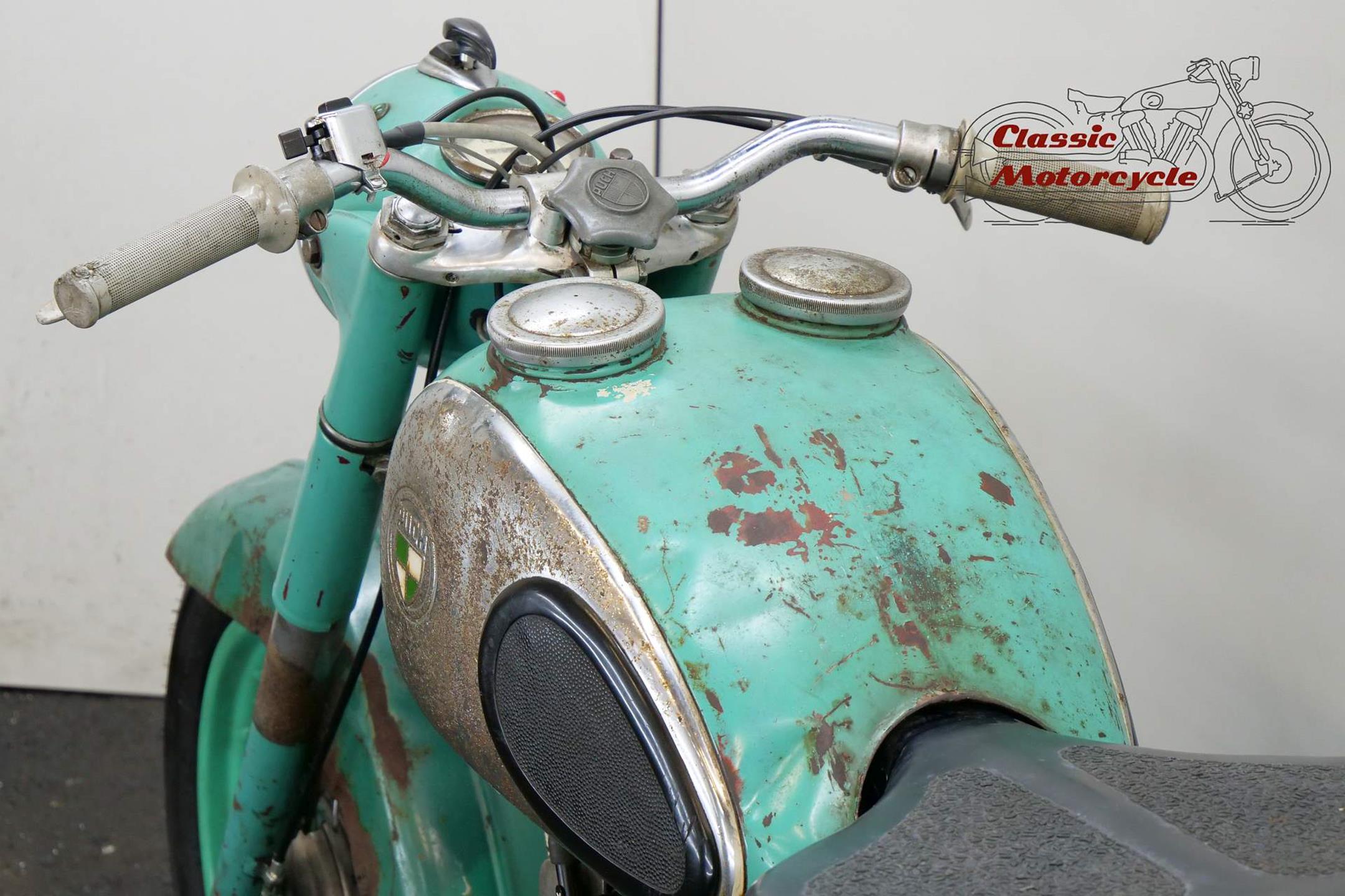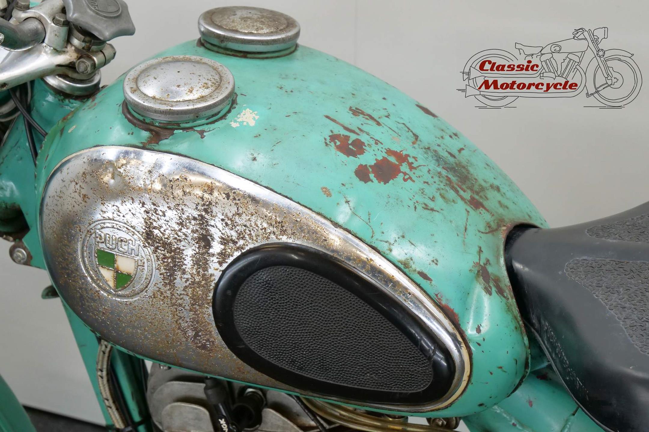 It was told us the engine of this Puch has been restored 20 years ago ago since the motorcycle has only run a few kilometers. It bears a wonderful patina and has matching numbers and has still the original type plate. This bike is fitted with an electronic regulator. The engine runs and the motorcycle is drivable but needs some attention to get a roadworthy bike.