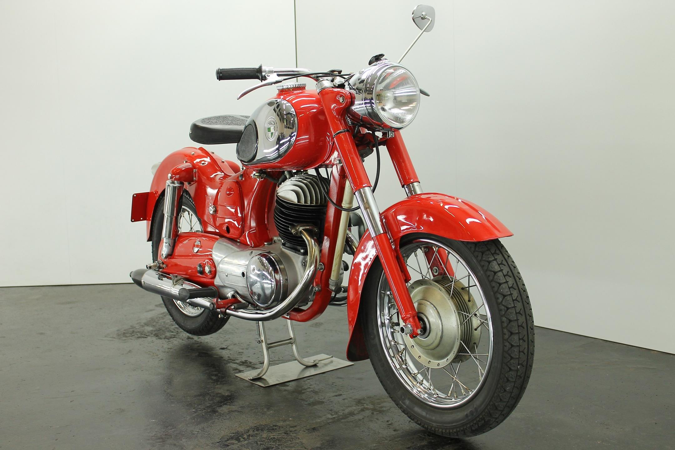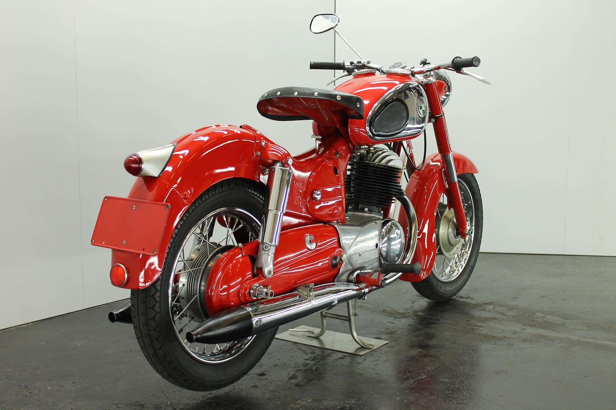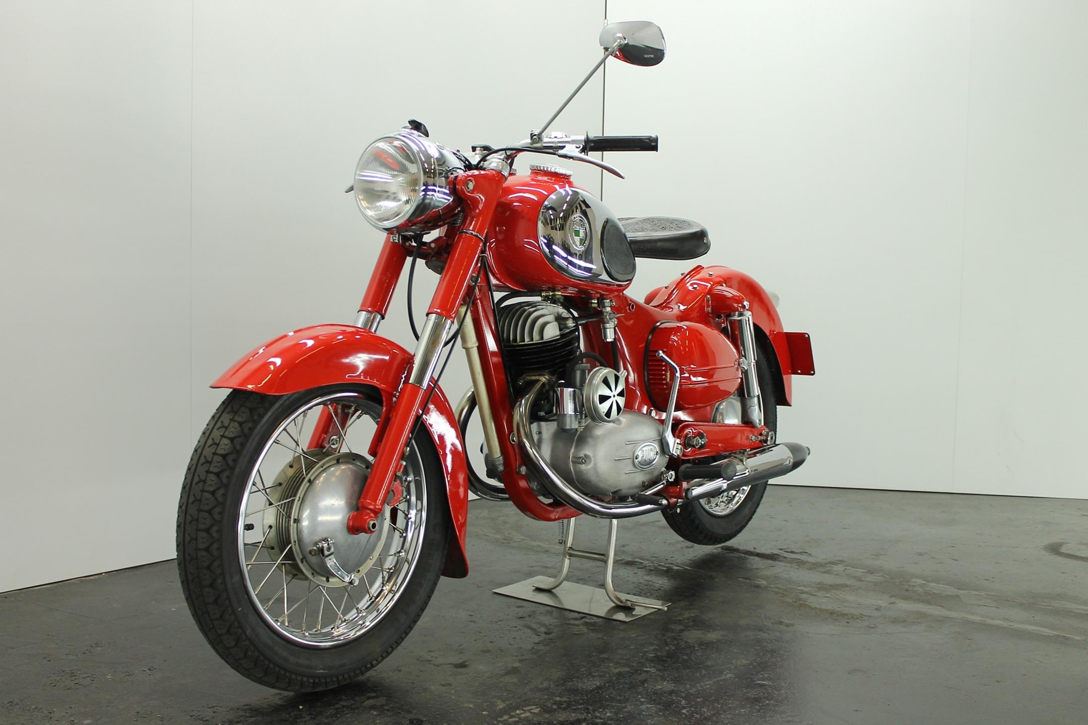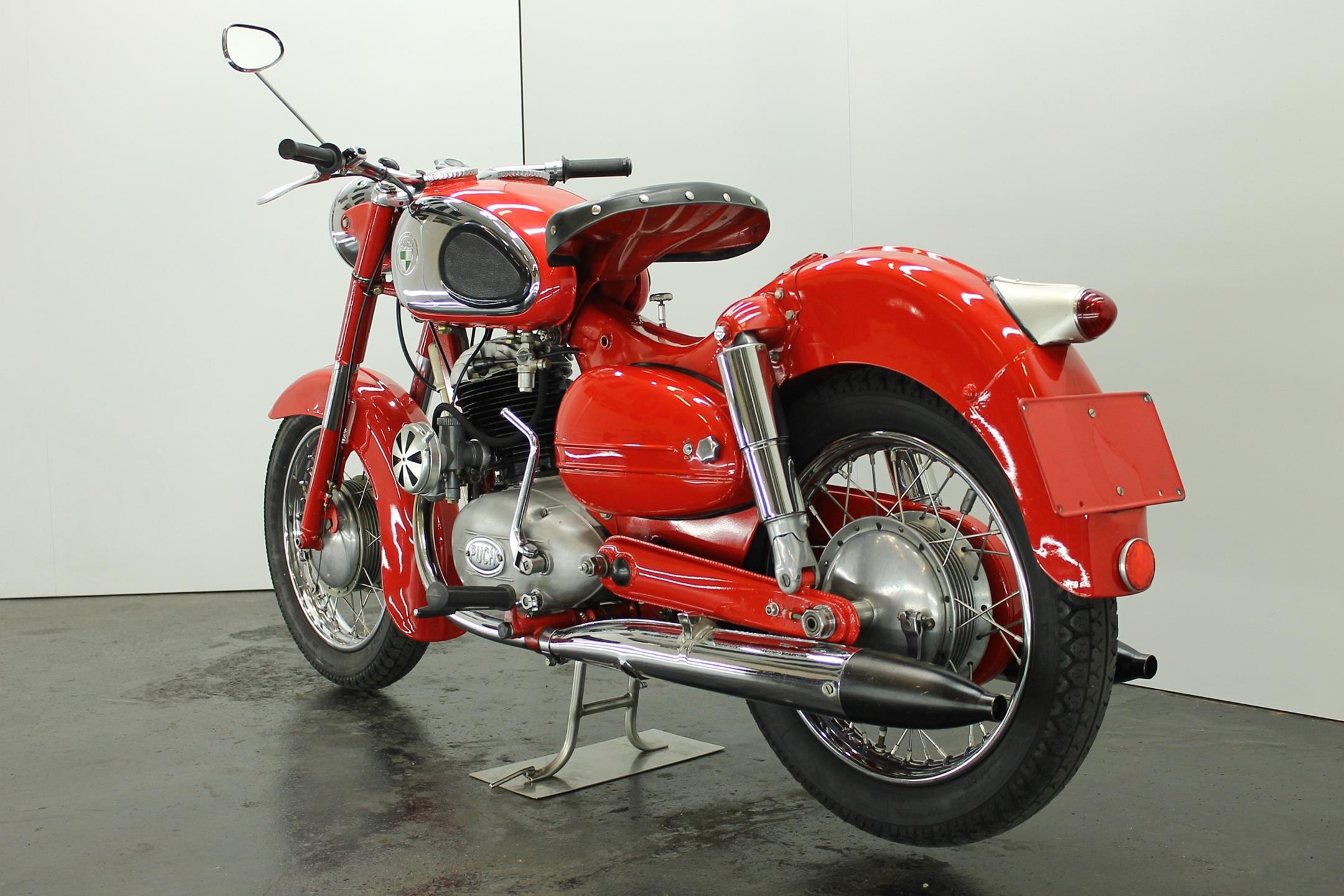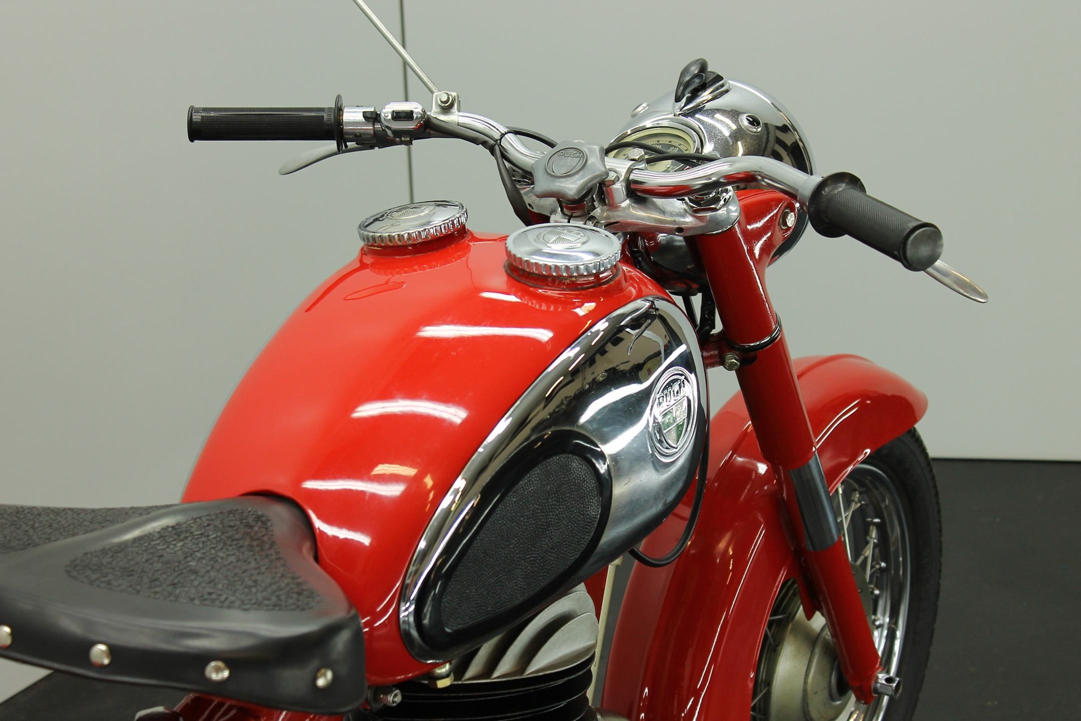 The motorcycle part of the Austrian Steyr-Daimler-Puch combine, Puch introduced its first motorcycle in the early 1900s. These days the firm is best remembered for its pioneering 'split-single' two-strokes, the first of which was developed in the 1920s. In its final form the engine featured tandem cylinders whose pistons were driven via a single connecting rod. After WW2 Puch built two-strokes only, commencing with split-singles in 125, 150, 175 and 250cc capacities built in both tourer and sport guises. Cycle parts were conventional for the time and featured plunger rear suspension and twin 'swing' saddles. Updated in 1954 with revised engine and a swinging-arm frame, Puch's split-single range remained in production well into the 1960s.