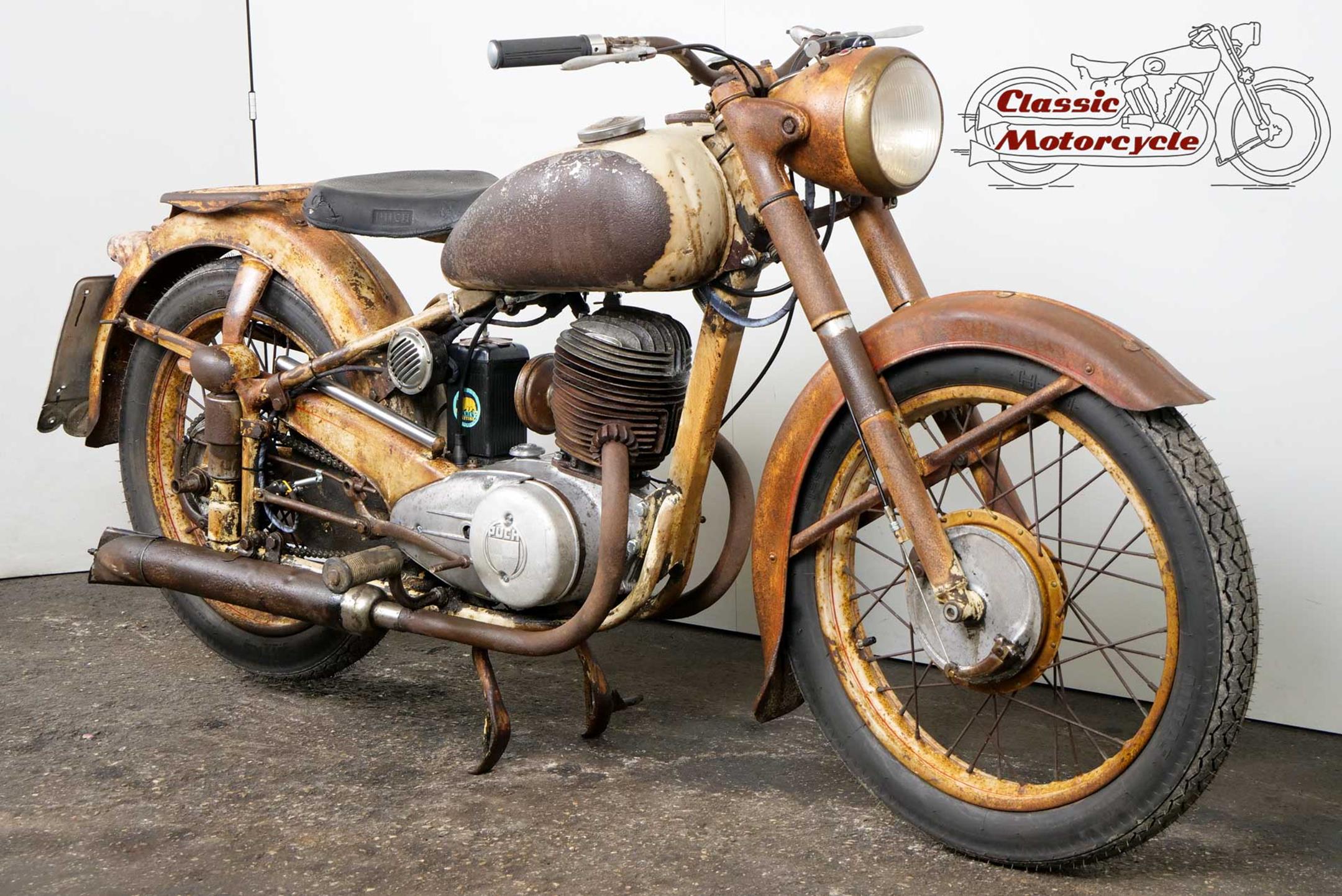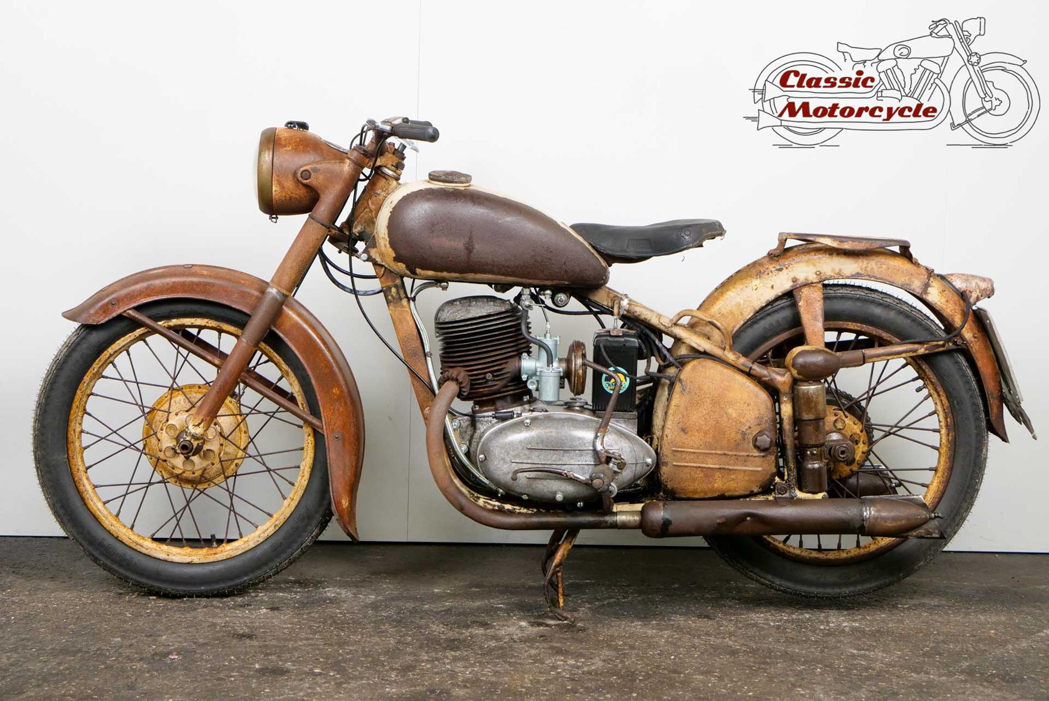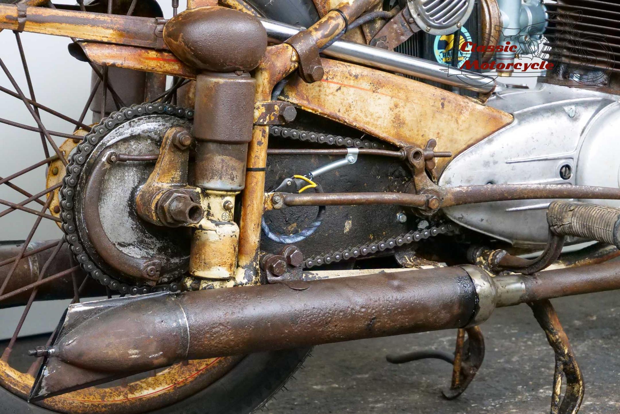 The TF is a true patina jewel. The motorcycle is in original condition. It was technically completely overhauled in 2021. The aim of the restoration was to overhaul the technic without touching the patina. The overhaul of the engine and the complete technic is provable with invoices. The paint was preserved many years ago with a wax/grease mixture which is still visible today. The Engine and frame number match the original nameplate. The TF has non-number matching Austrian papers. The bike is fully roadworthy.