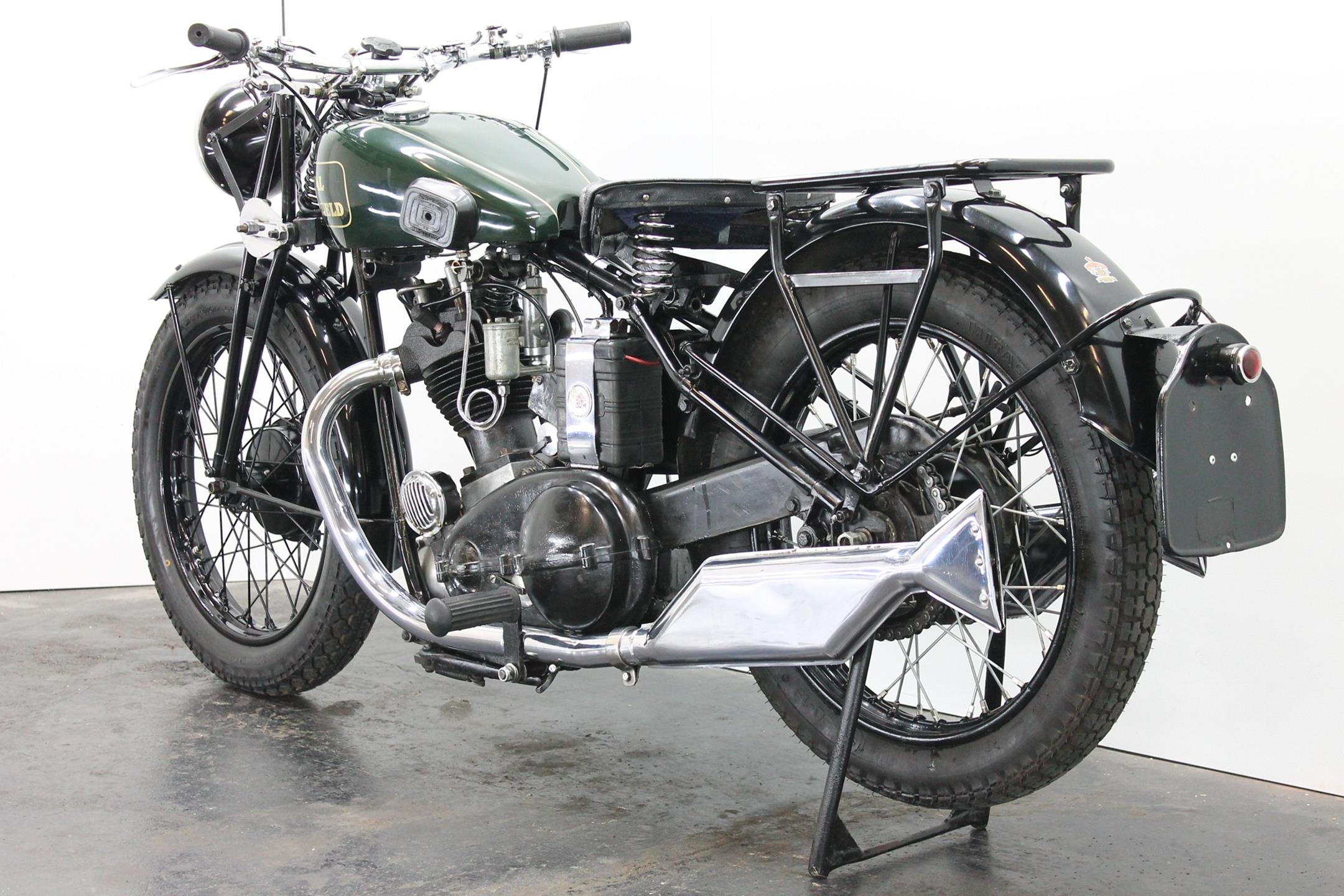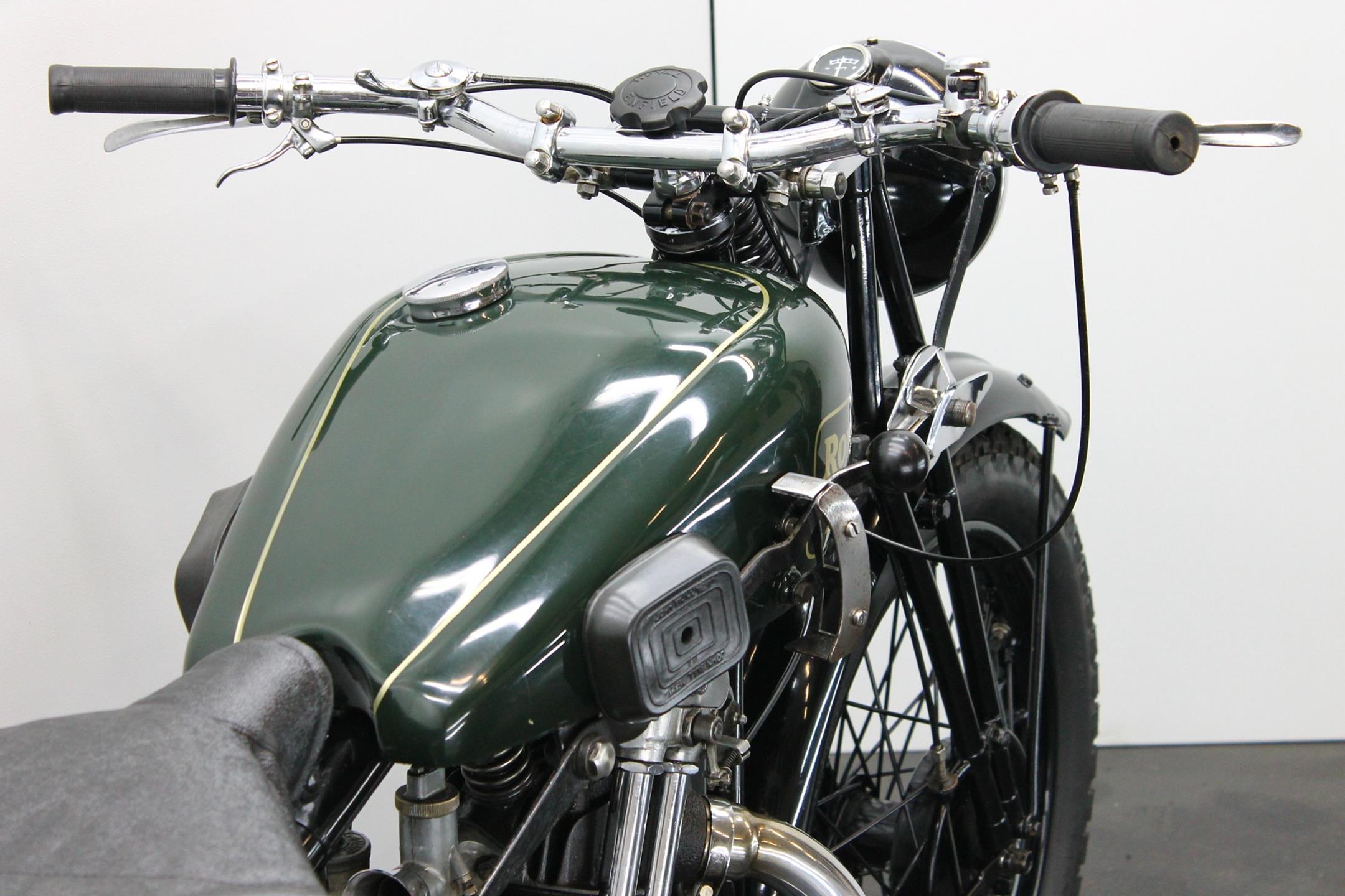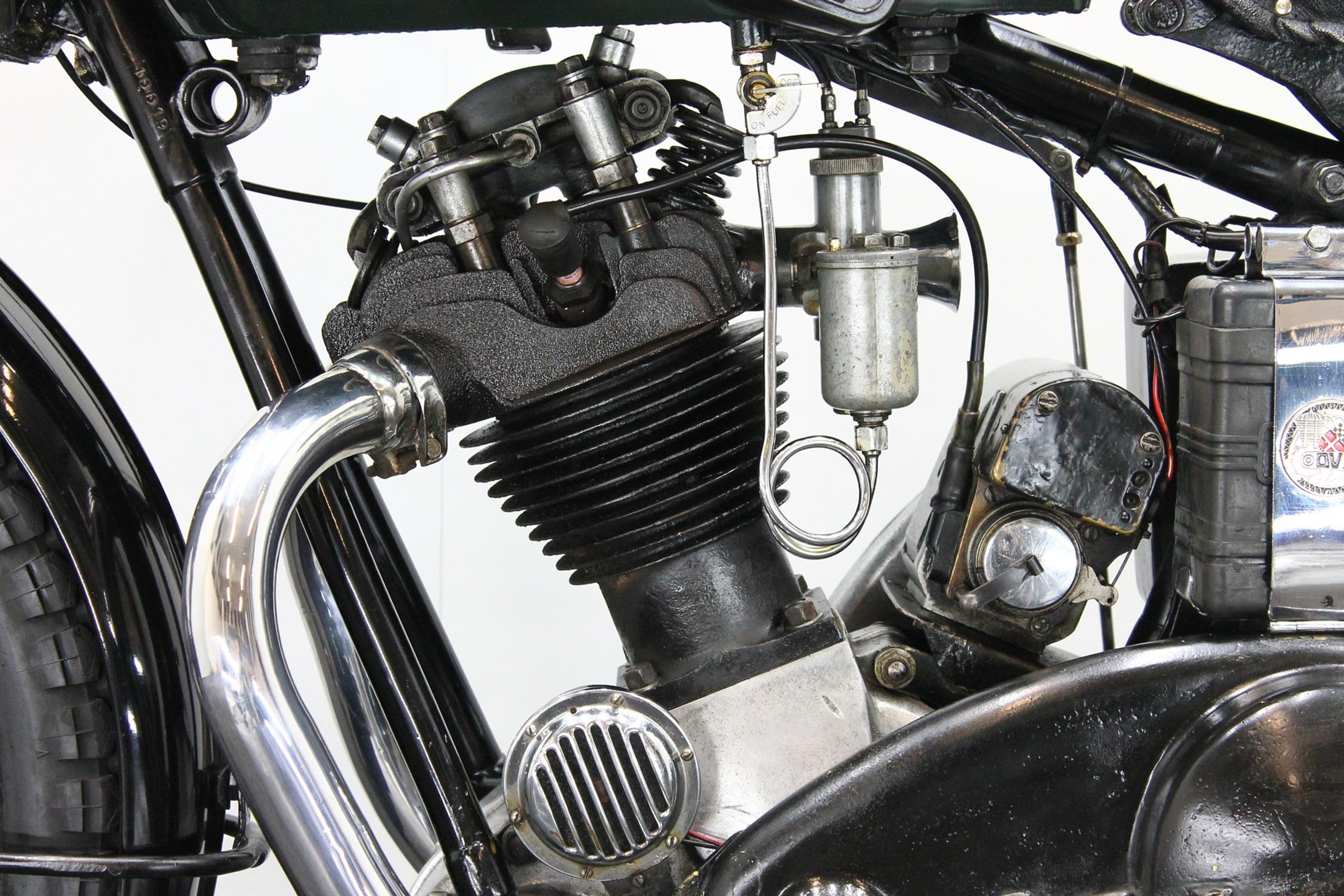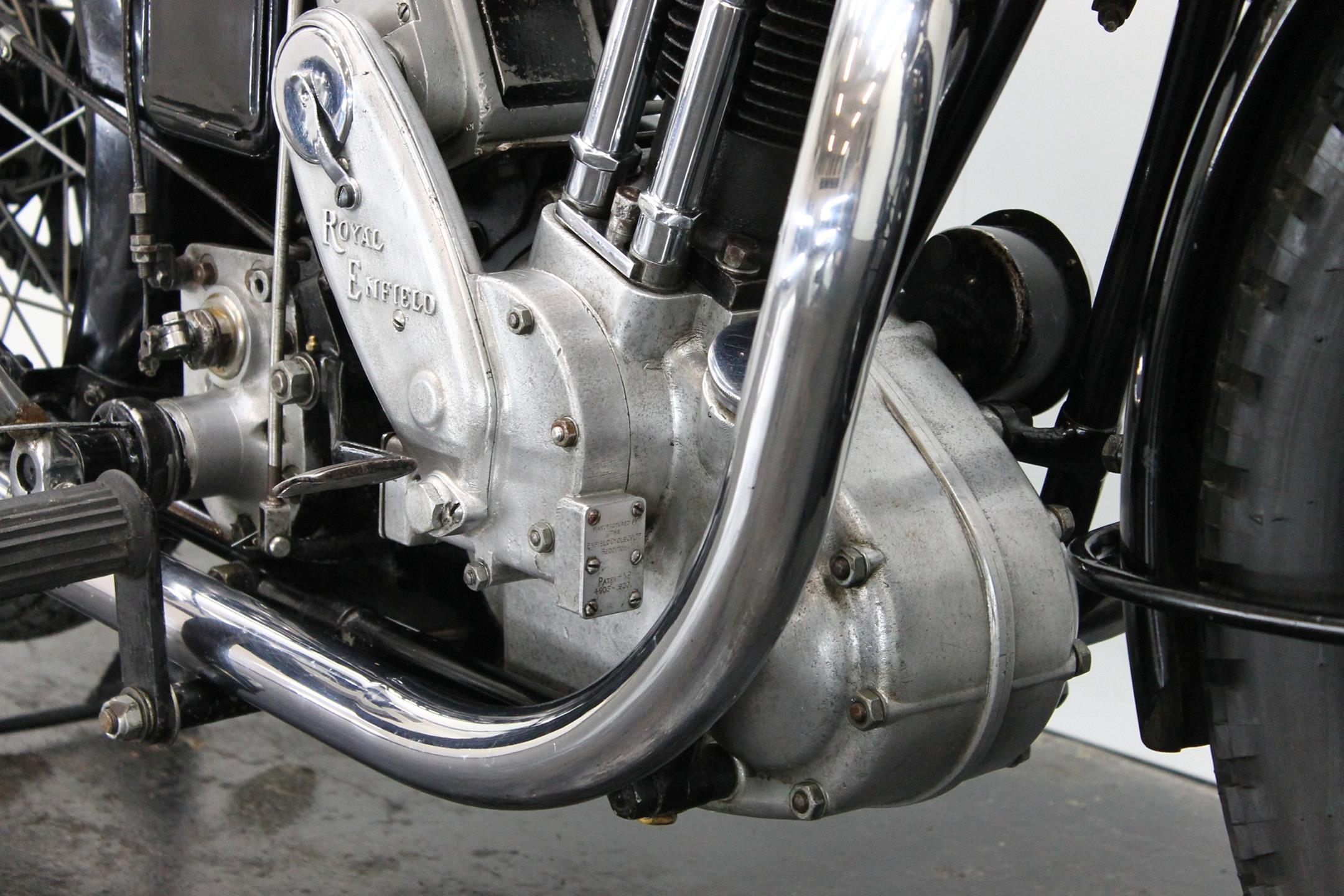 Royal Enfield’s origins can be traced back to a small light engineering firm - George Townsend & Company - founded in Redditch, Worcestershire, in mid-Victorian times. The firm moved into bicycle manufacture and by the turn of the Century had been reorganised as the Enfield Cycle Company, makers of the ‘Royal Enfield’. By 1904 the firm was concentrating on car production, resuming motorcycle manufacture in 1910 with a v-twin Motosacoche-powered lightweight which was followed by the famous JAP v-twin-engined 7hp sidecar outfit for 1912. Enfield’s first 350cc single appeared in 1924 in overhead-valve and sidevalve versions, both of which used engines supplied by J A Prestwich. The JAP engine gave way to one of Royal Enfield’s own manufacture for 1925, and in 1927 the firm introduced its first 500cc (3½hp) model, which used the 1,000cc v-twin’s 85.5x85mm bore/stroke dimensions for an actual capacity of 488cc. An overhead-valve version joined the sidevalve original for 1929 and both used Enfield’s own four-speed gearbox. In 1931 Royal Enfield the model J was the top model in the 500cc class.